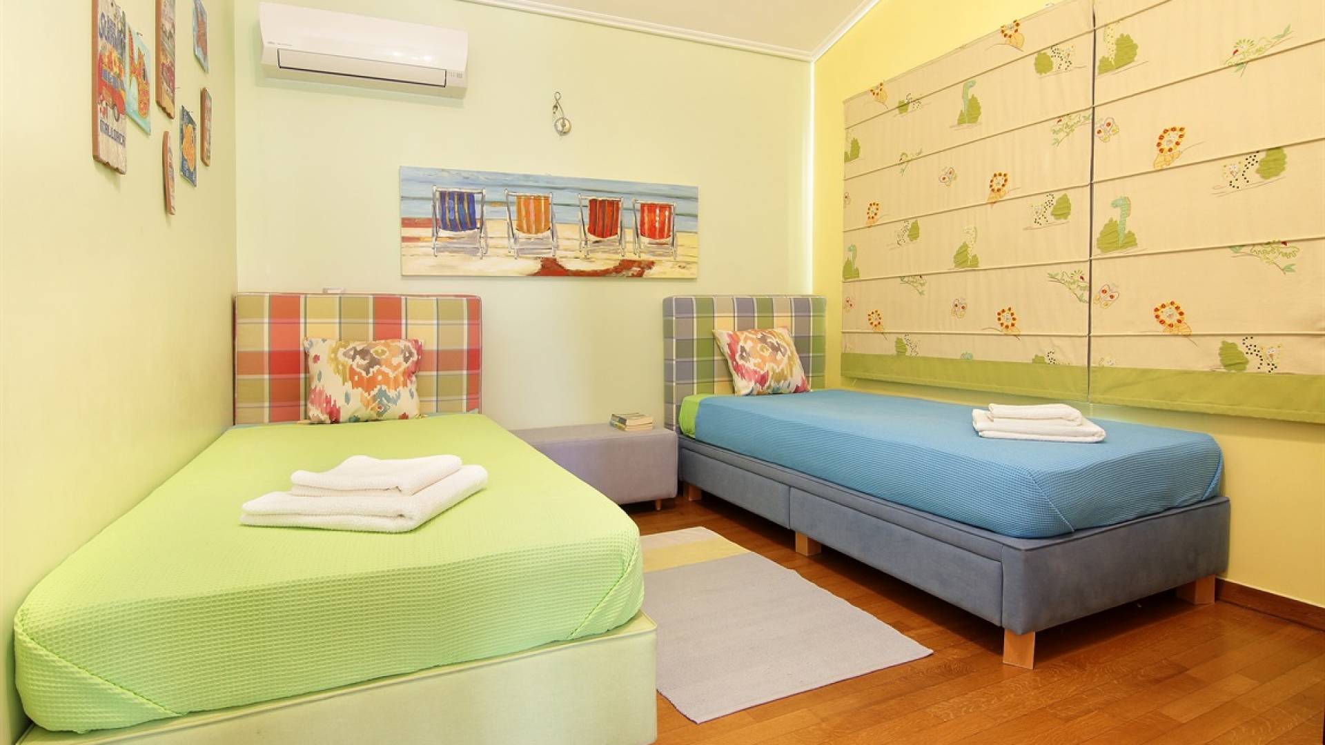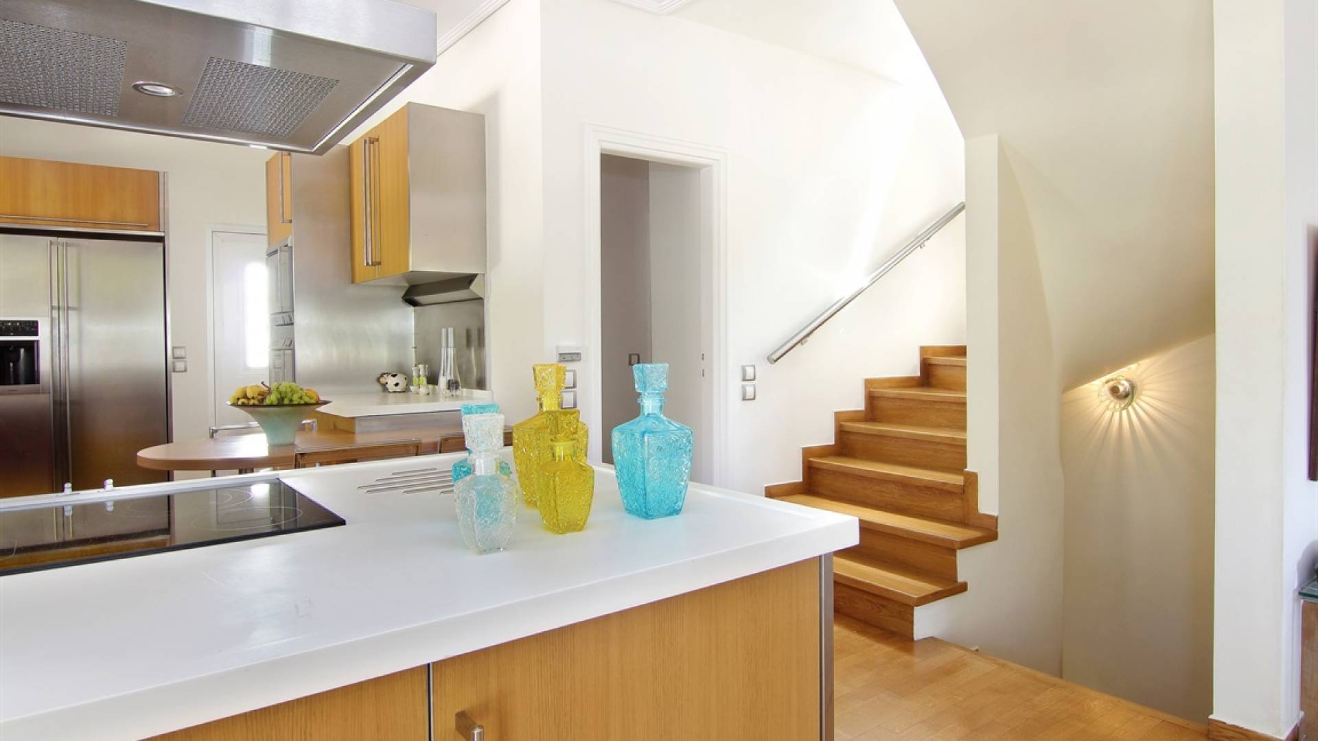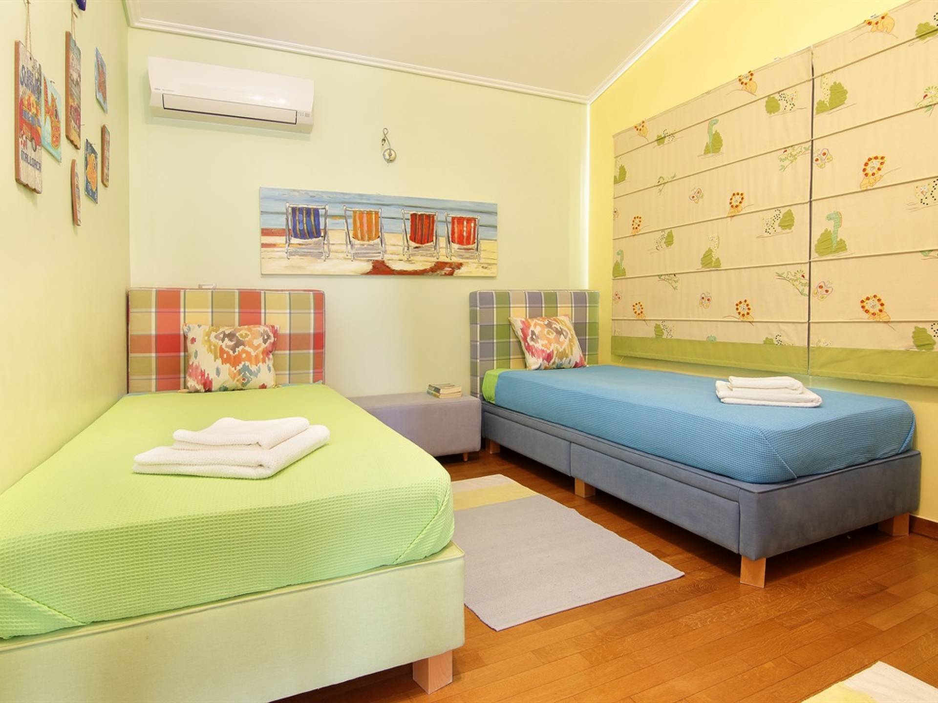 Sea Melody Anavissos is comfortably furnished and equipped with all new appliances. Quality wi-fi in the territory and in the houses, air conditioners, 4 tv, music center, mosquito nets, hairdryers in each bathroom, iron, board, washing, and drying machines. Also fully equipped two kitchens: ceramic electric stove and oven, microwave, dishwasher, refrigerator with cooling of drinking water and freezer, toaster, boiler, coffee maker, mixer, juicer in every kitchen. In the VIP bedroom king size bed for 2 persons, in the second bedroom there is a double bed for 2 persons, in the third bedroom two single beds for two persons, In the fourth bedroom large double bed for two persons. Also a single bed for the 9th person to the ground floor's living room.