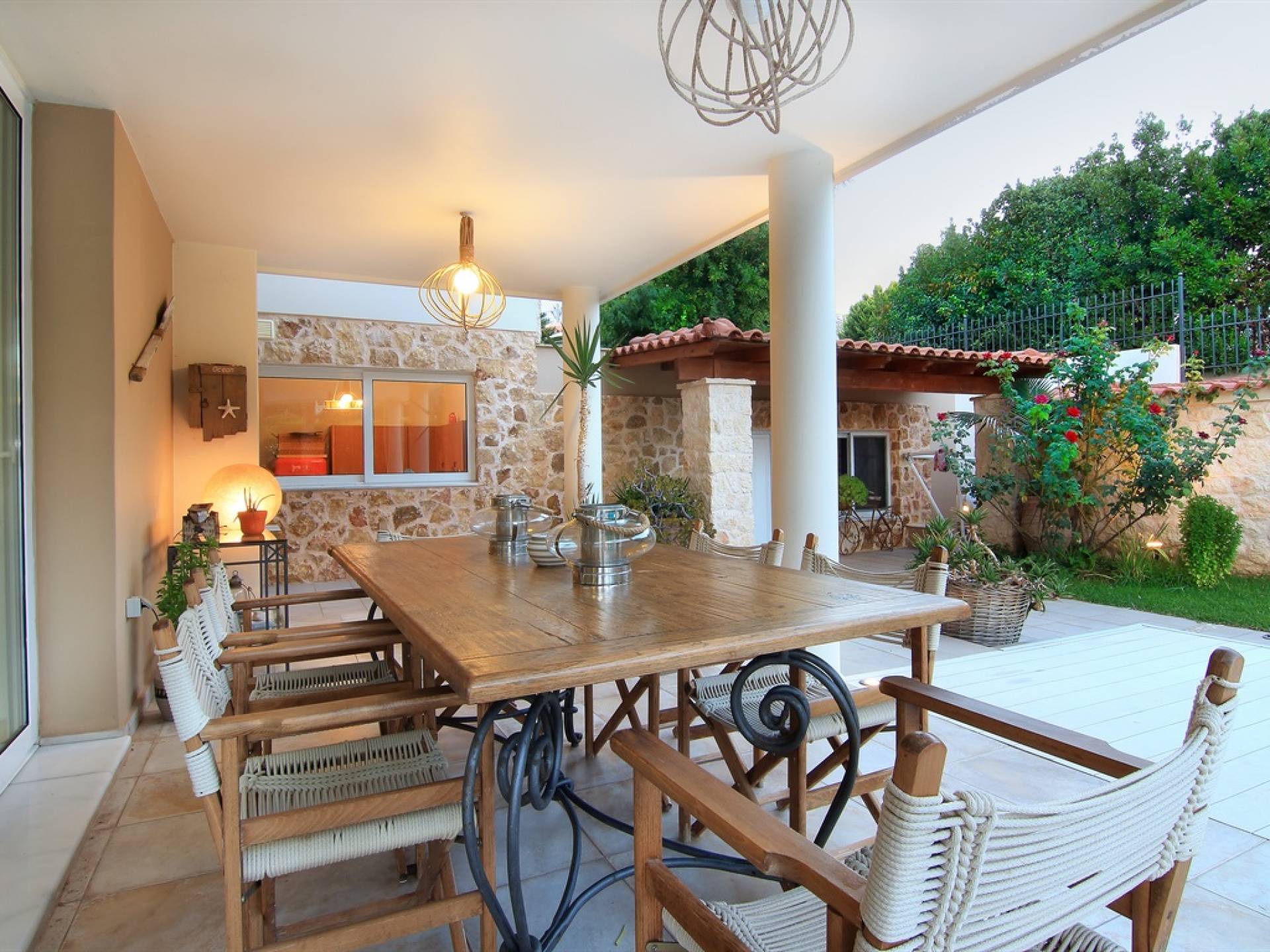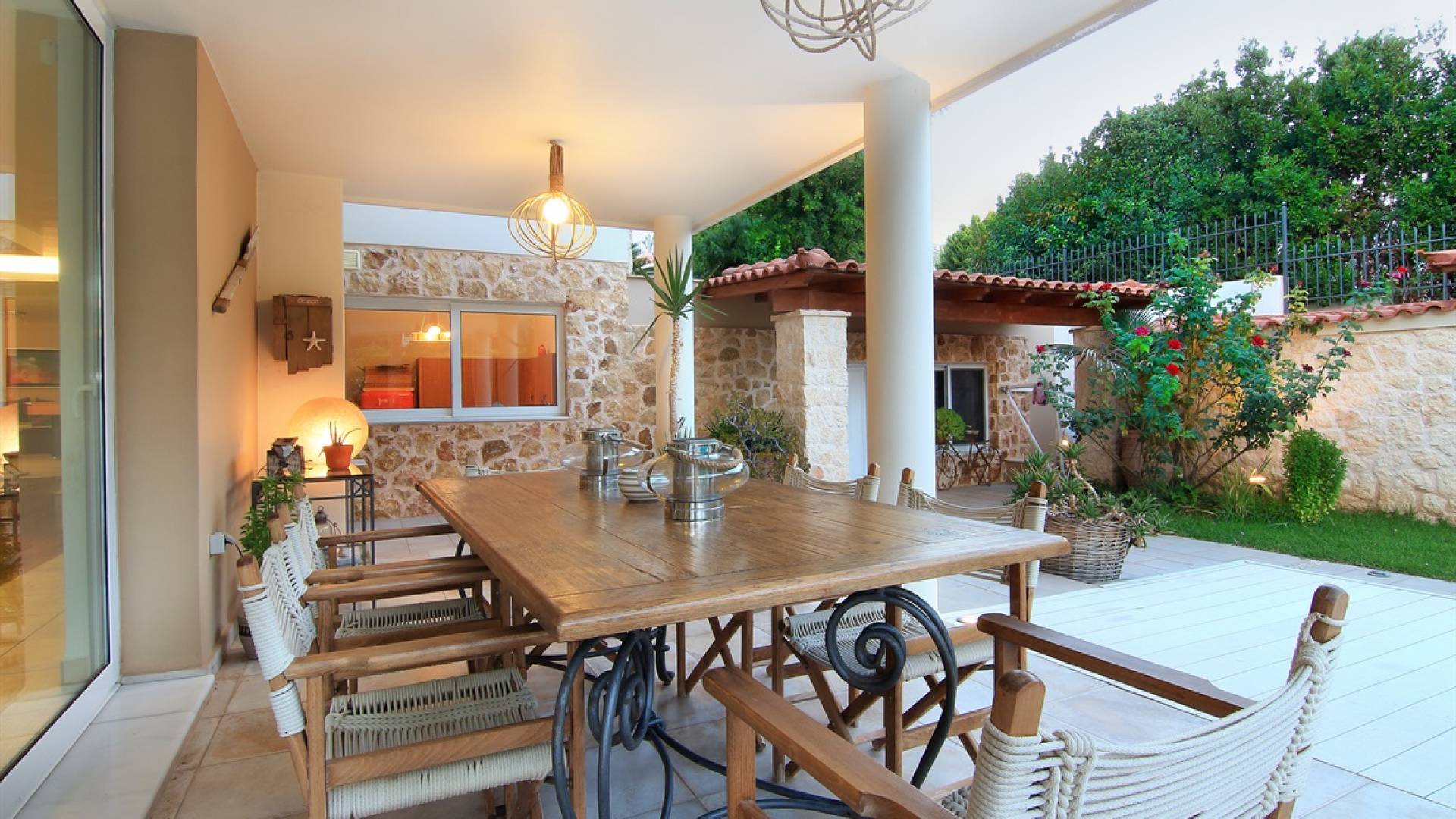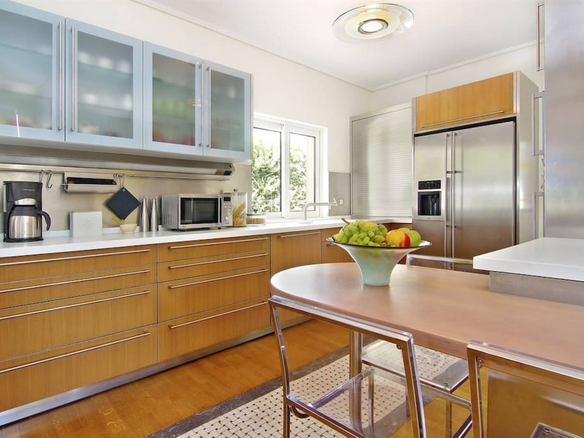 Sea Melody Anavissos is comfortably furnished and equipped with all new appliances. Quality wi-fi in the territory and in the houses, air conditioners, 4 tv, music center, mosquito nets, hairdryers in each bathroom, iron, board, washing, and drying machines. Also fully equipped two kitchens: ceramic electric stove and oven, microwave, dishwasher, refrigerator with cooling of drinking water and freezer, toaster, boiler, coffee maker, mixer, juicer in every kitchen. In the VIP bedroom king size bed for 2 persons, in the second bedroom there is a double bed for 2 persons, in the third bedroom two single beds for two persons, In the fourth bedroom large double bed for two persons. Also a single bed for the 9th person to the ground floor's living room.