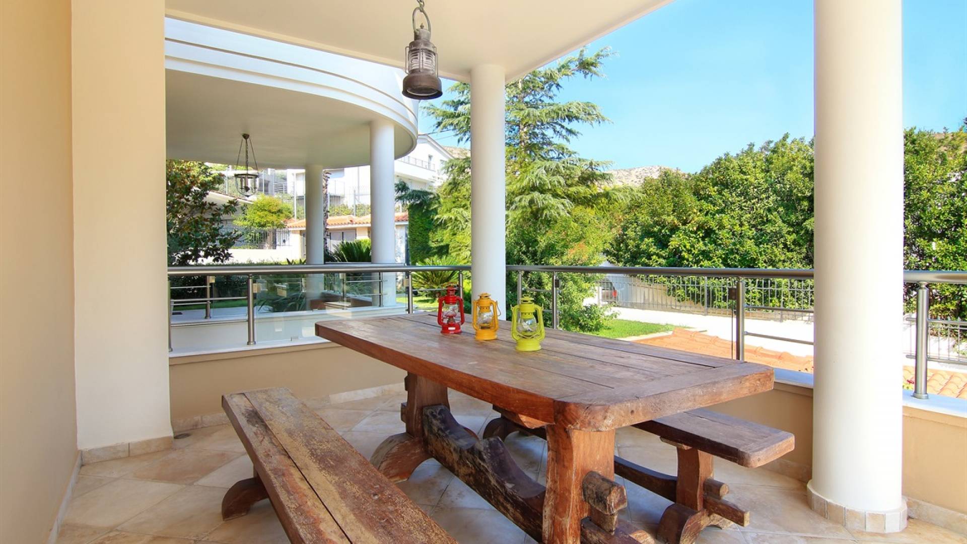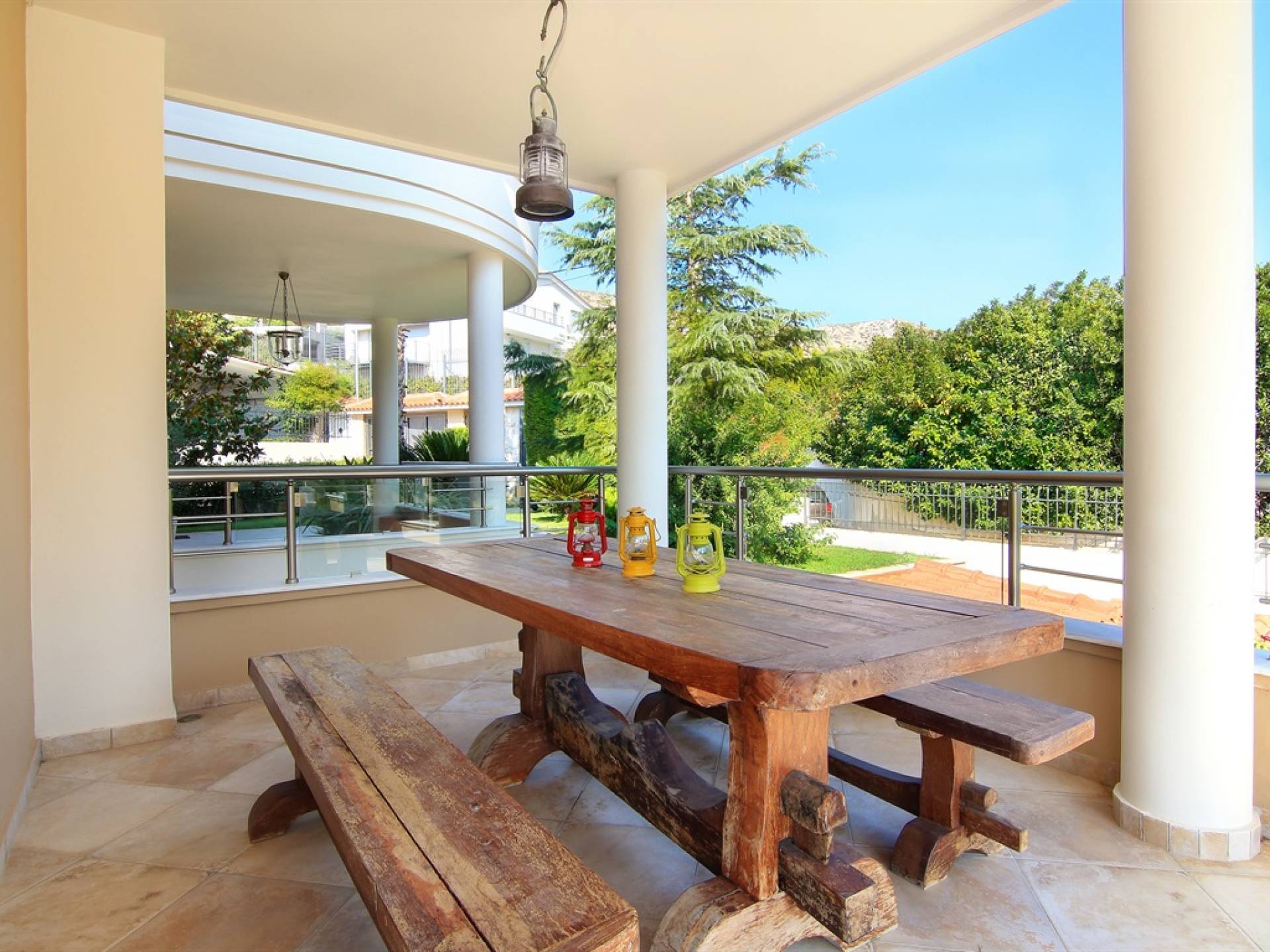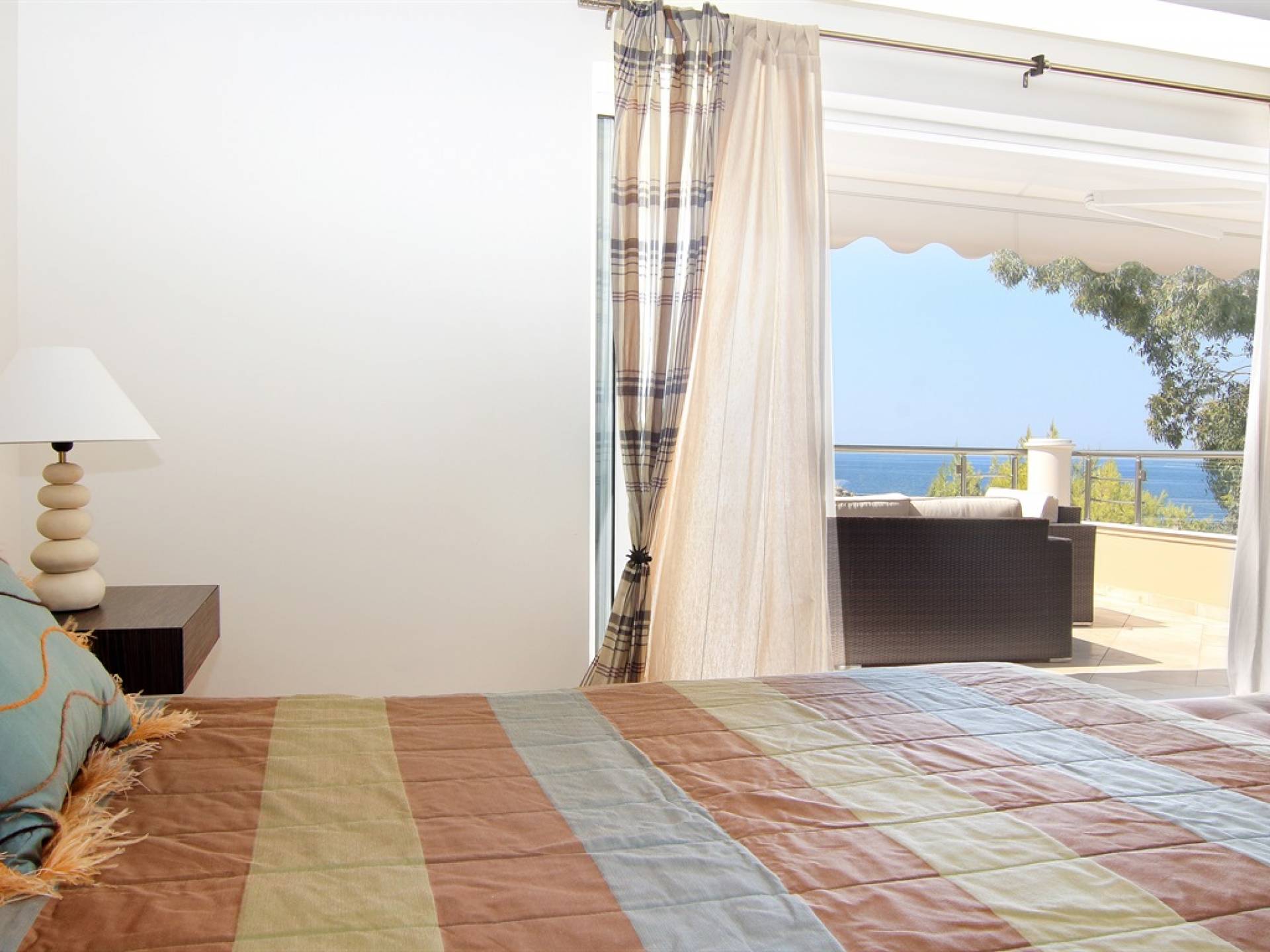 On the second floor of the second living room - dining room also with large front windows with panoramic sea views and access to the veranda. In the back of the hall is a large main kitchen, a shower room with a toilet and a storage room with all household equipment, and a washing and drying machine. On the third floor, there are three bedrooms and two bathrooms, one of the VIP bedrooms with a private bathroom with a Jacuzzi. With two bedrooms a delightful panoramic view of the sea from the beds. From the third bedroom a view of the green mountain landscape.
