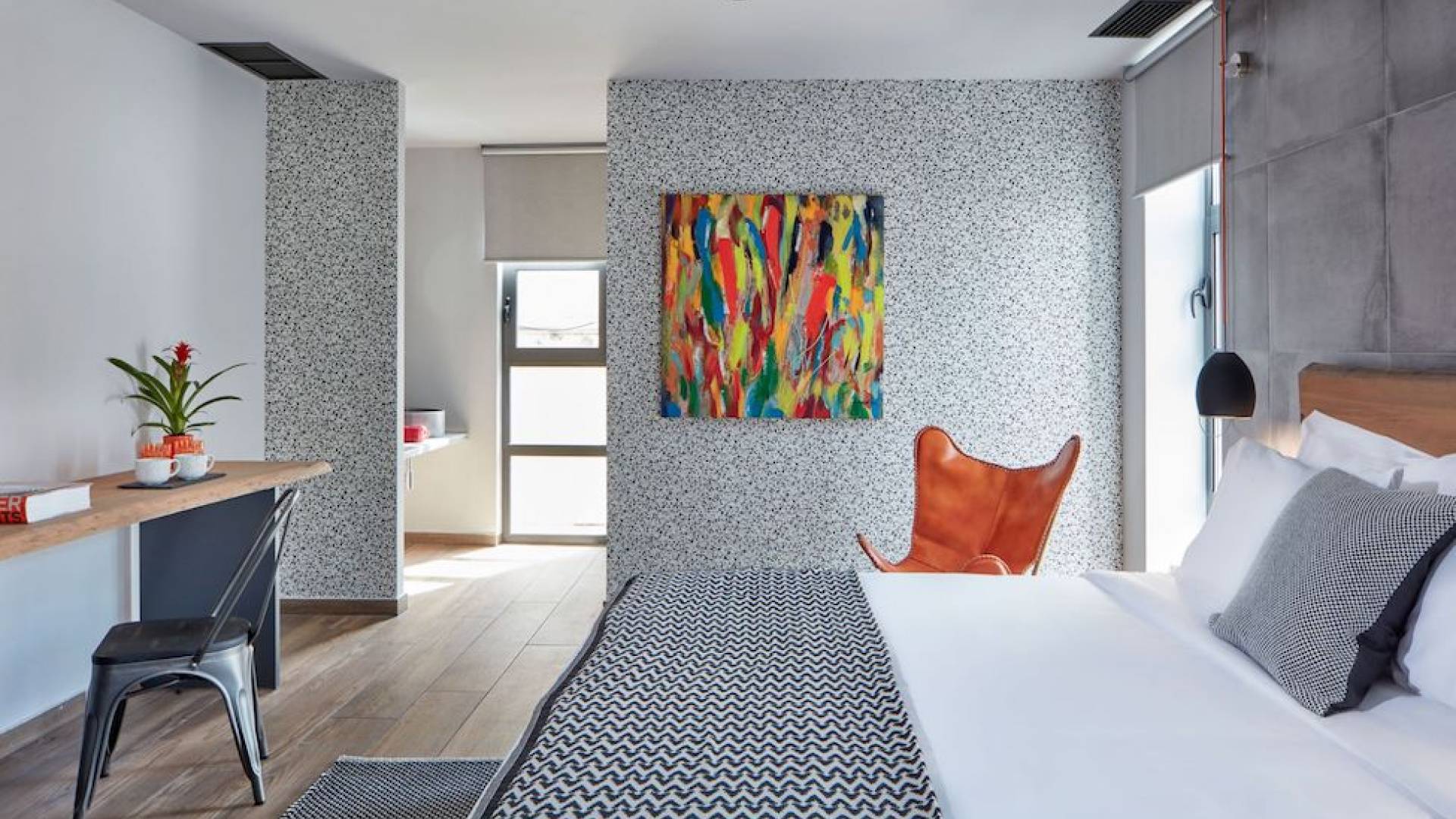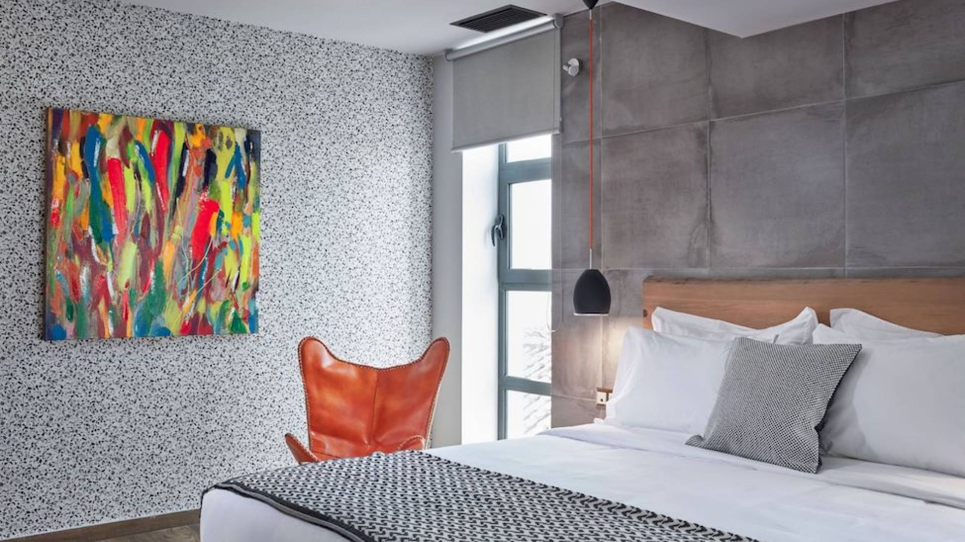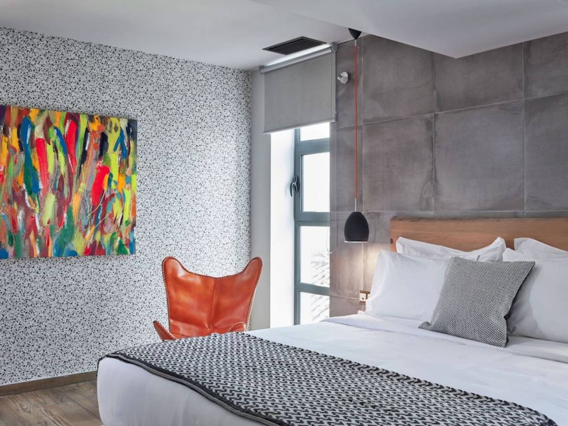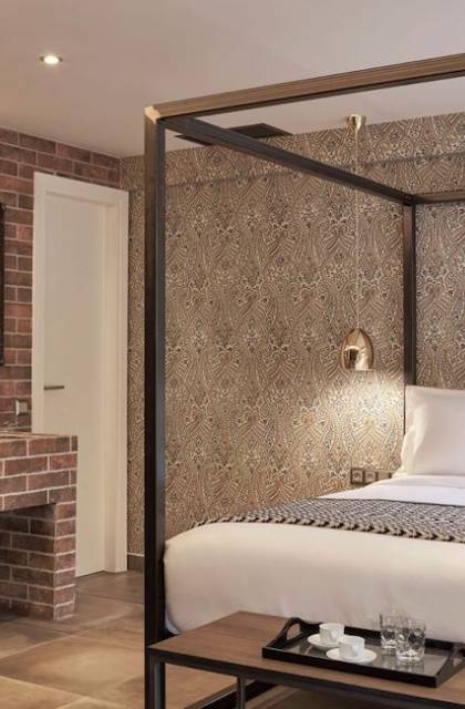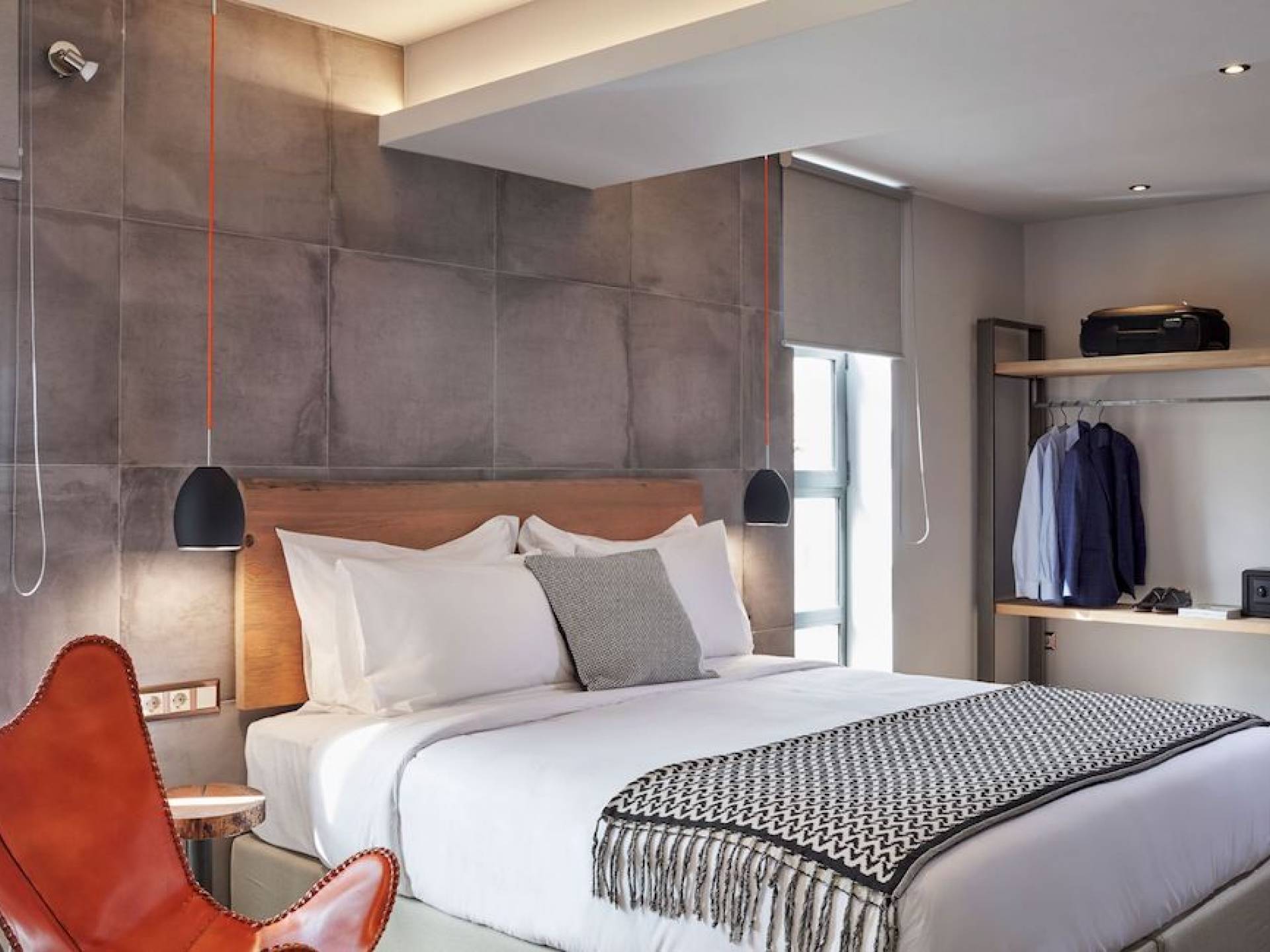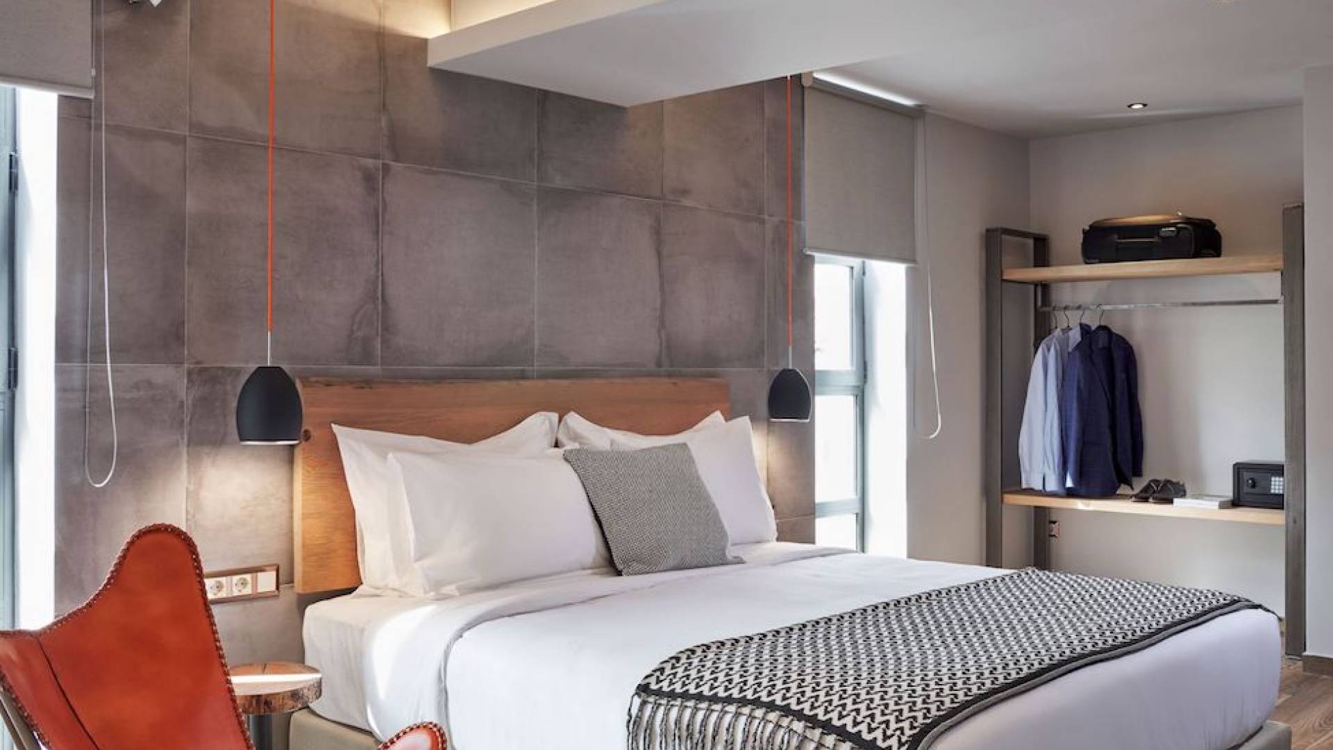 The junior suites feature an open design concept which creates a feeling of connection. A combination of decorative wallpaper and cement or brick is accented by locally handcrafted furniture and industrial-style windows. The designer's thoughtful details in each room foster a personalized experience making you feel at home.