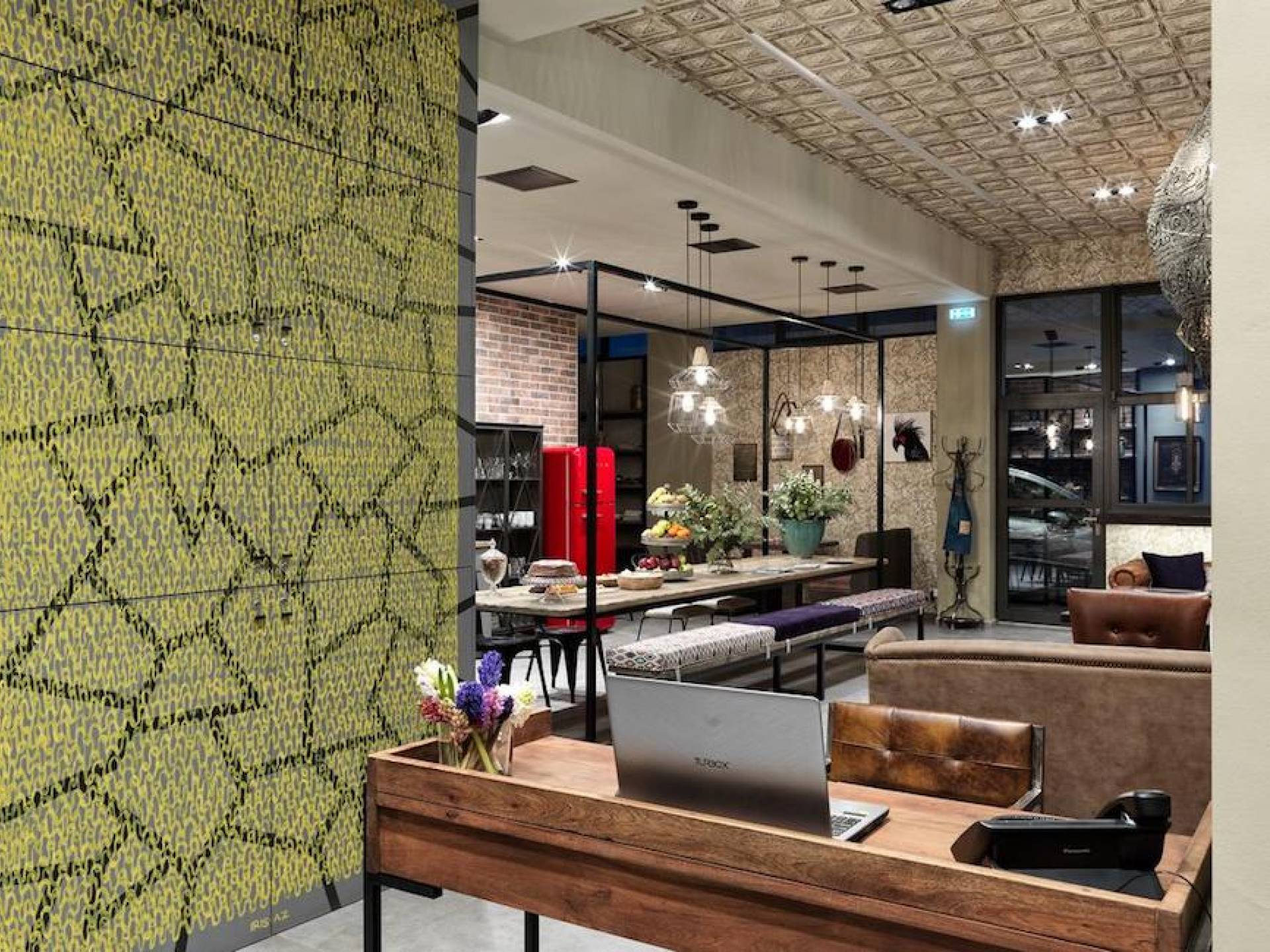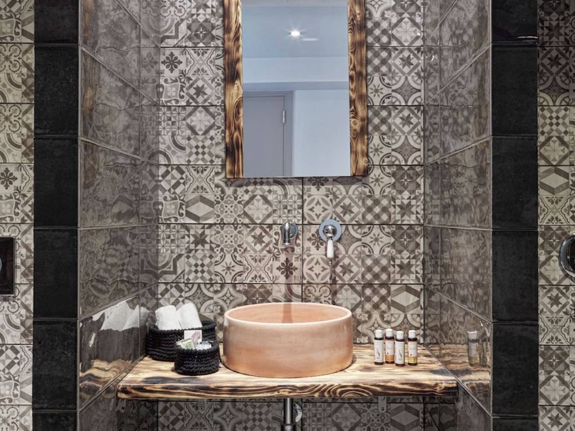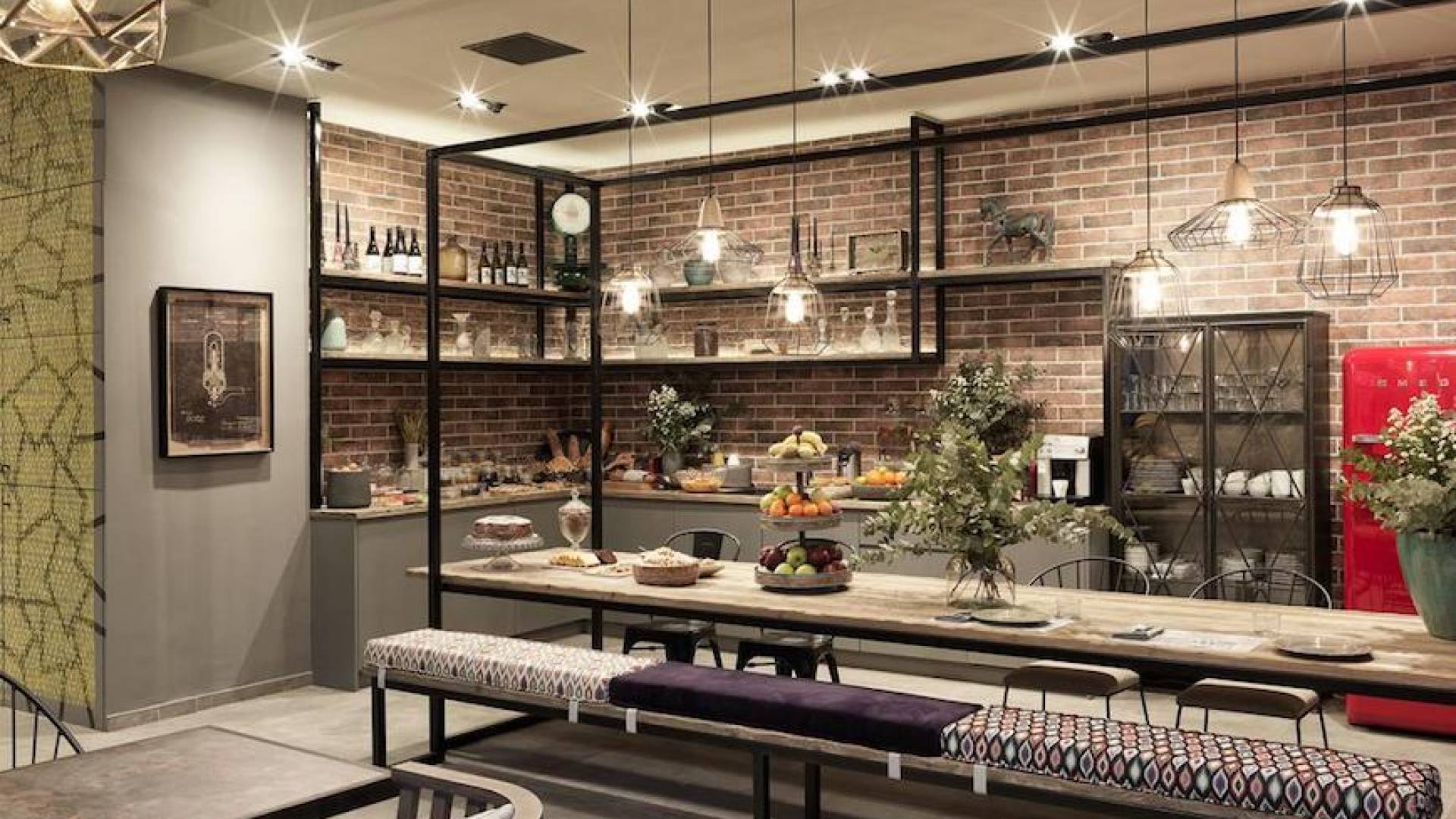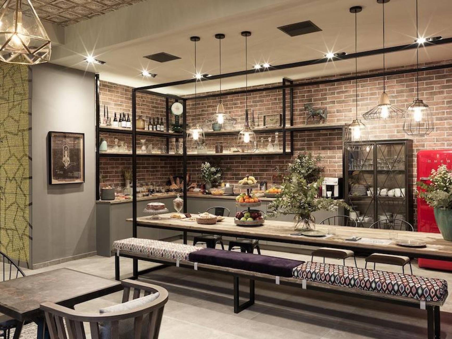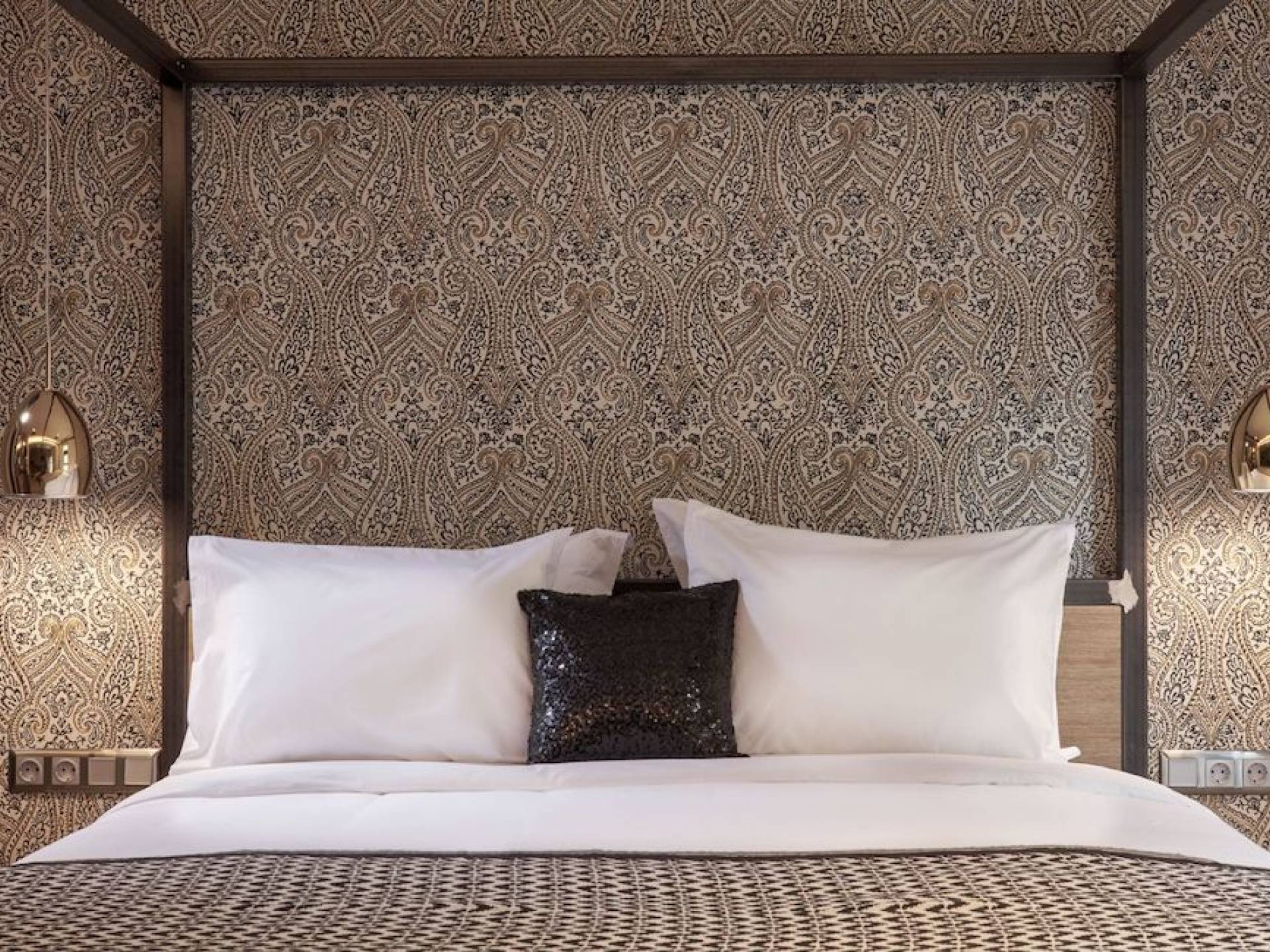 The junior suites feature an open design concept which creates a feeling of connection. A combination of decorative wallpaper and cement or brick is accented by locally handcrafted furniture and industrial-style windows. The designer's thoughtful details in each room foster a personalized experience making you feel at home.