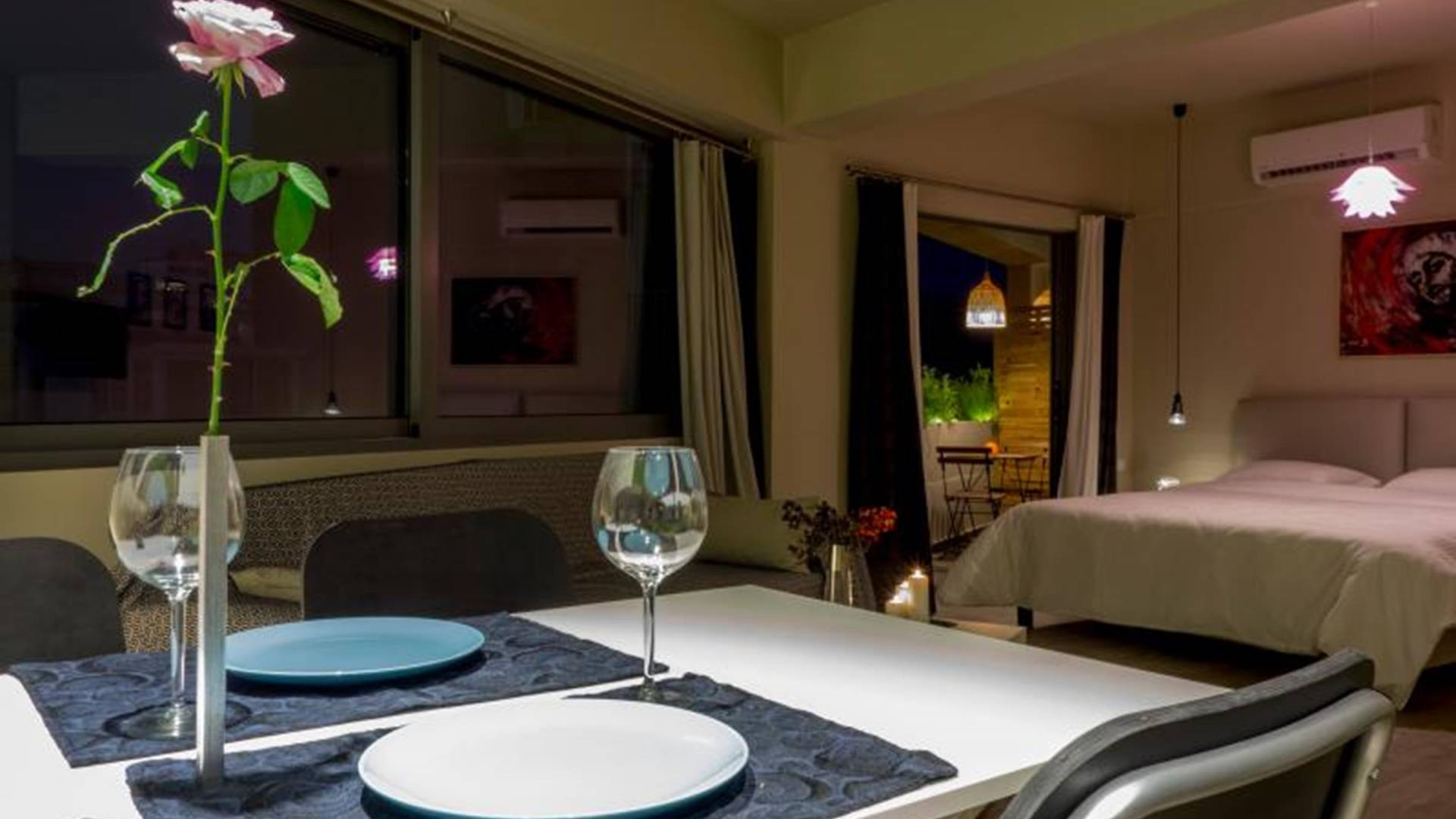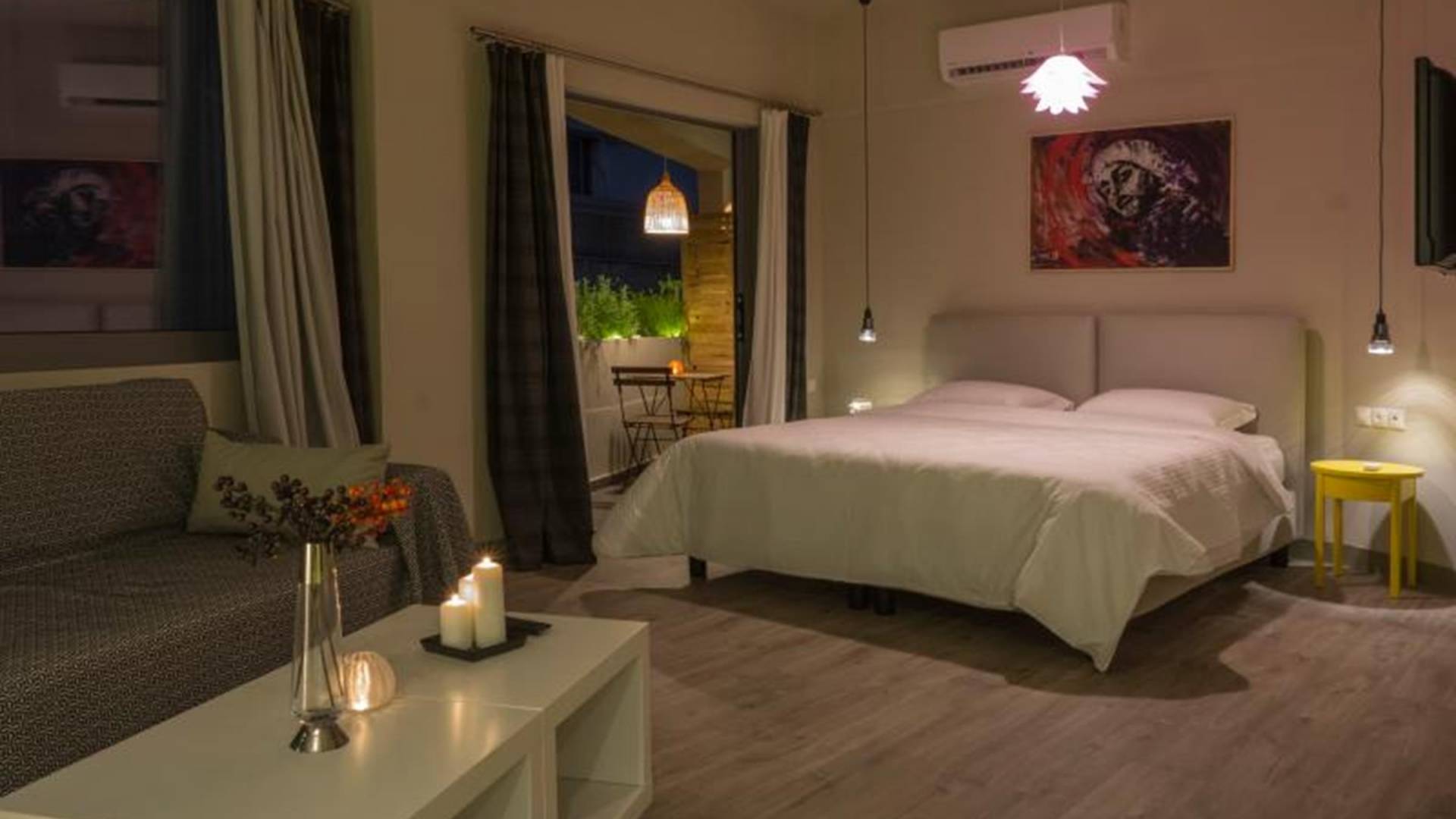 The apartment is absolutely brand new 40m2/430square feet with a cozy balcony. King size bed (180x200cm) with super comfortable mattress, natural latex top-mattress, premium quality pillows and comforter with goose feathers. UniqueVillas.gr