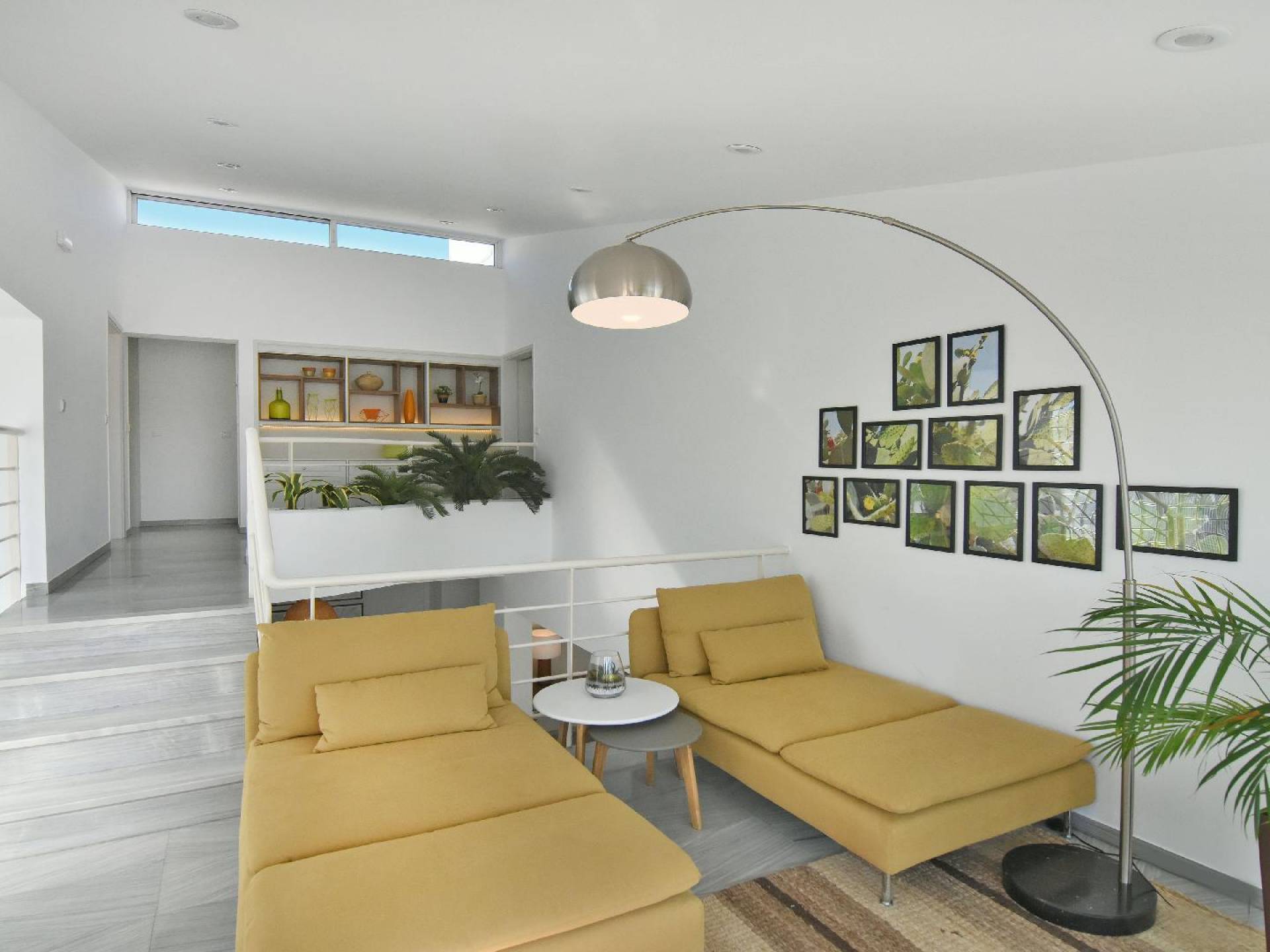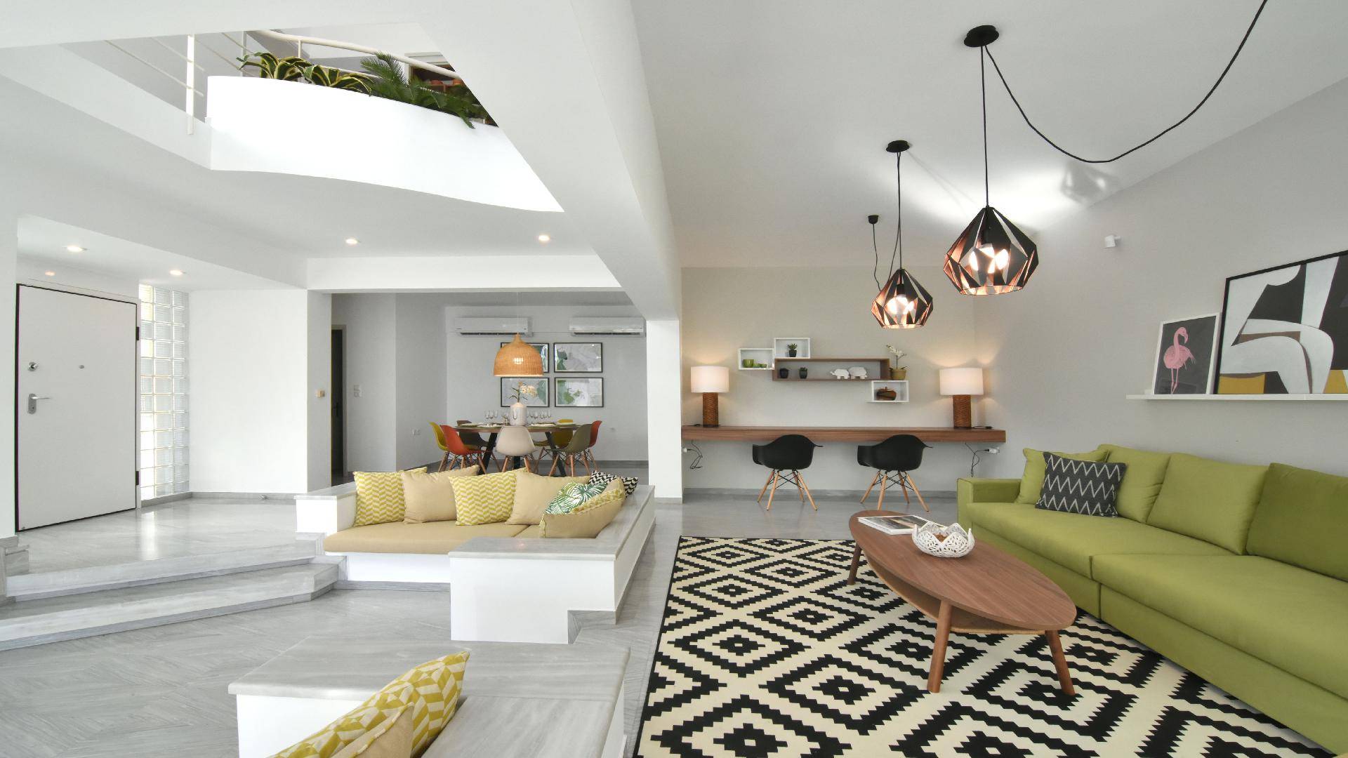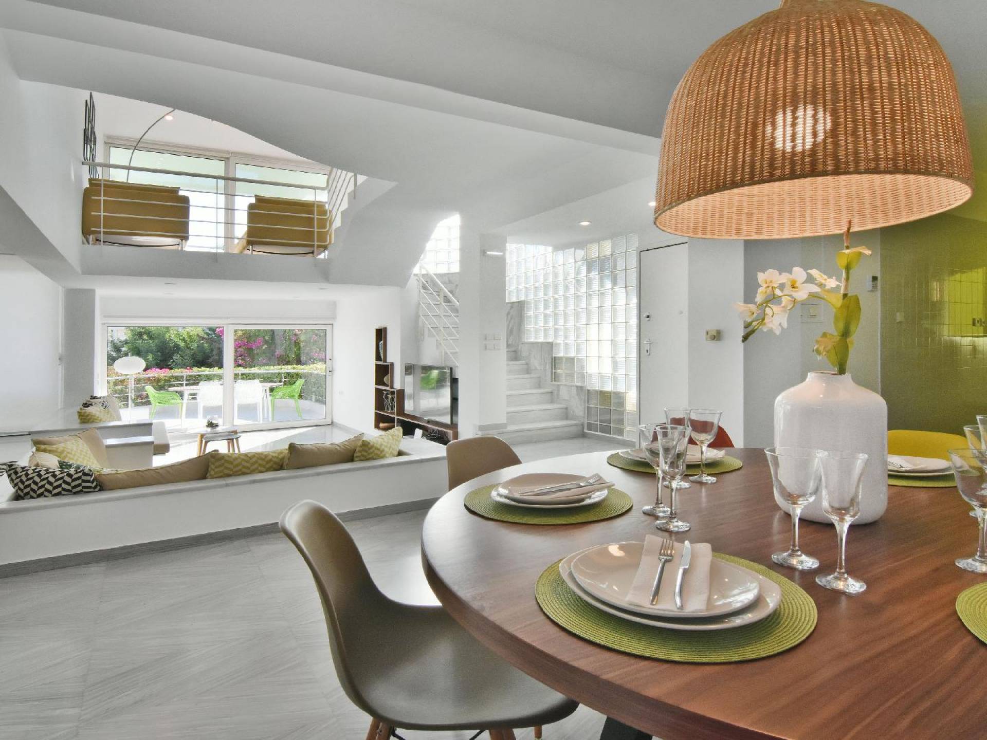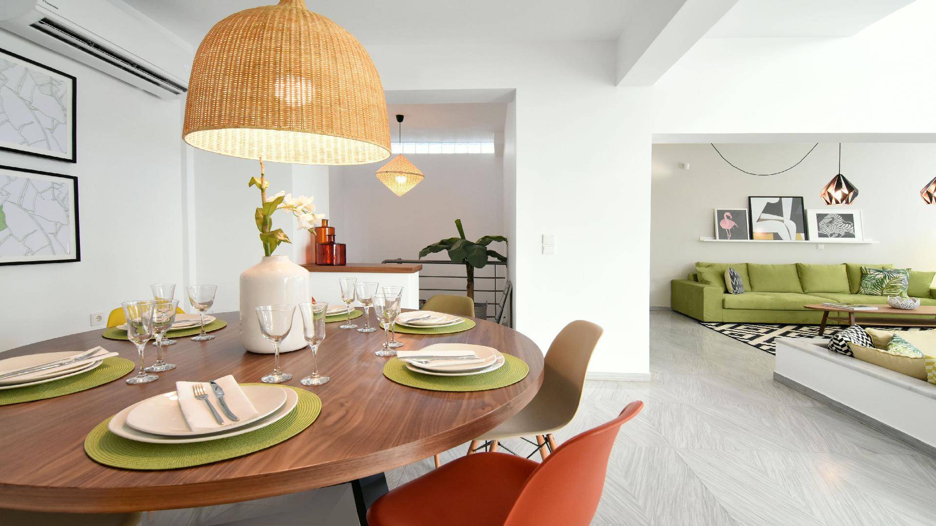 Coconut Villa is a luxury villa in Athens of 300sqm built in three levels and can accommodate up to eight guests. The architecture lines are simple, strict and manage to create an overall feeling of modern elegance. The light-colored walls blend harmoniously with the unique pieces of furniture, the wooden surfaces, and the various colorful decorating details.