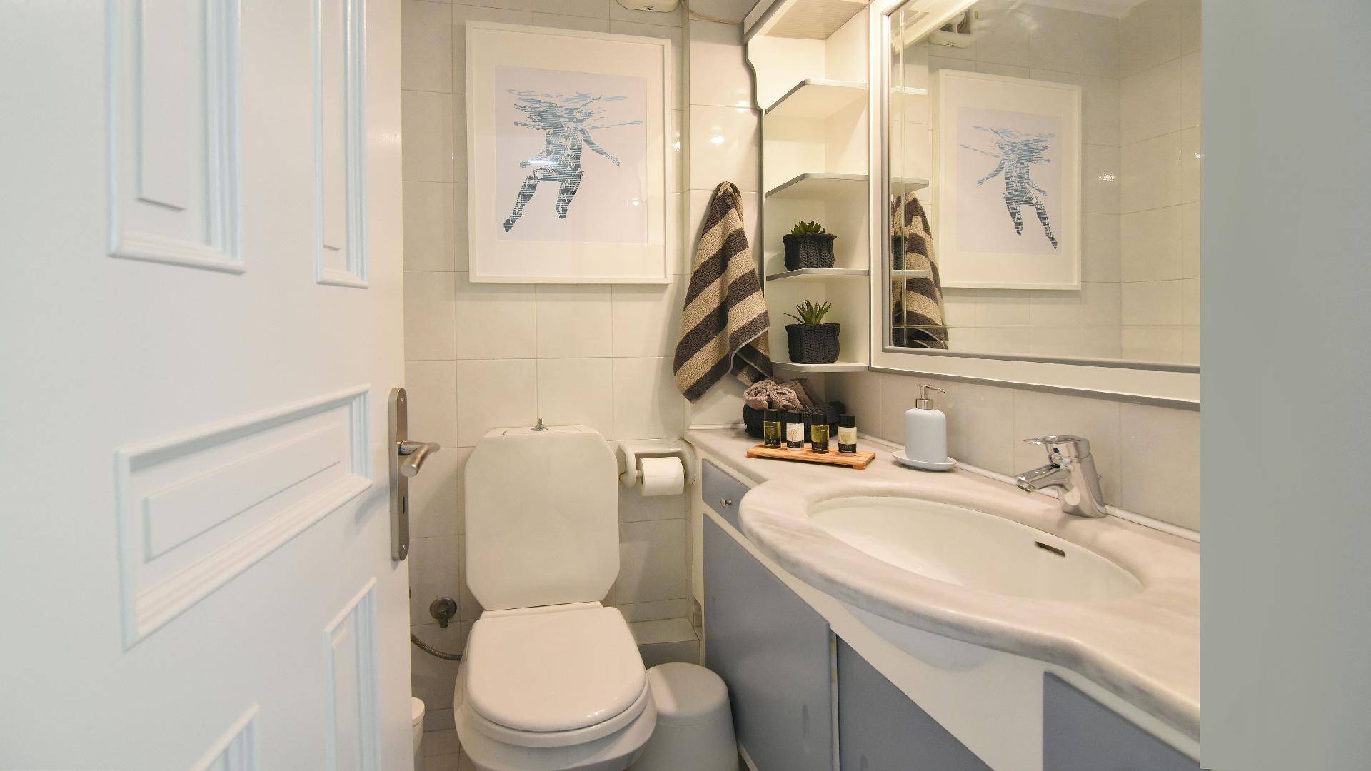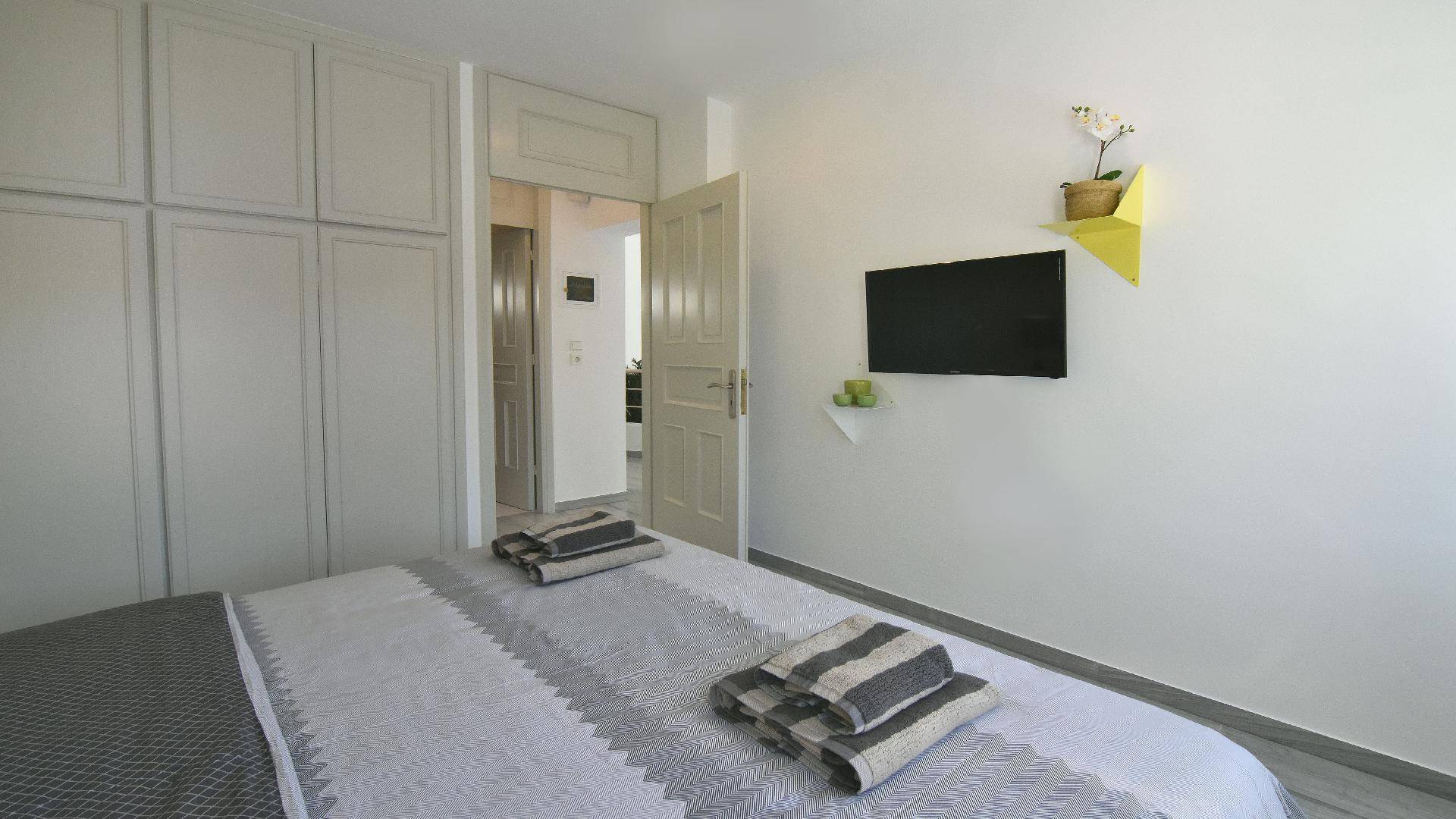 This floor consists of 3 bedrooms. A Double room with a king-size bed and en suite bathroom. A Double room with a king-size bed and a double room with 2 single beds and a communal big bathroom with bathtub. All bedrooms have access to a balcony and provide astonishing views of the sea or the park.