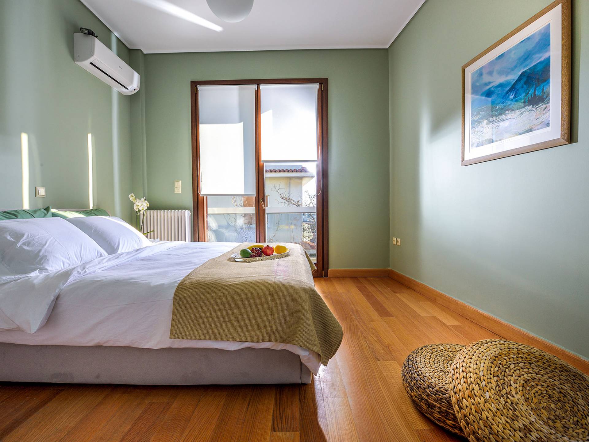 Karyatis Luxury Maisonette Athens features a comfortable seating area as well as a fully equipped kitchen along with two bedrooms with double beds as well as a smaller bedroom with sofa bed, appropriate for a children’s room. Two bathrooms and an additional guest WC, offering basic amenities: shampoo, body wash, toiletries etc. complete the apartment.