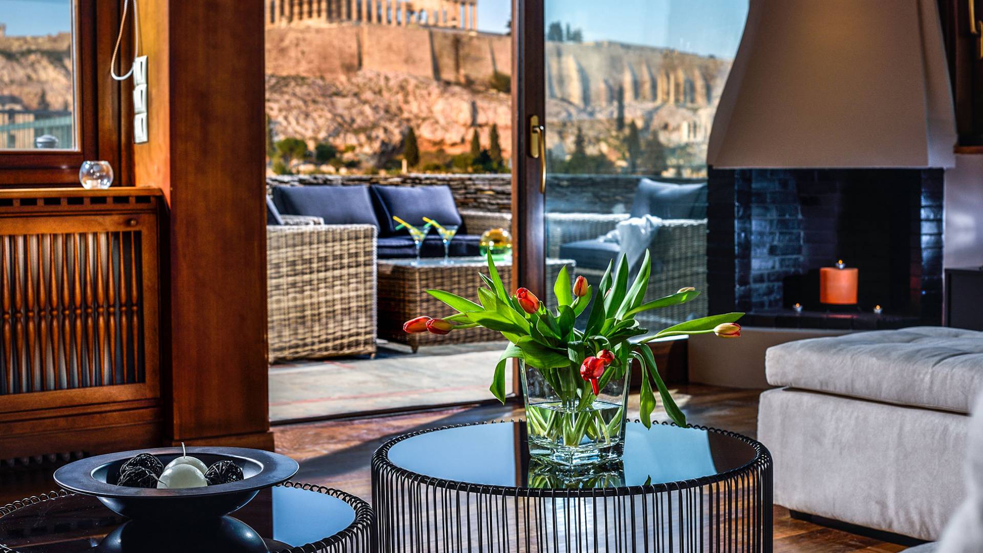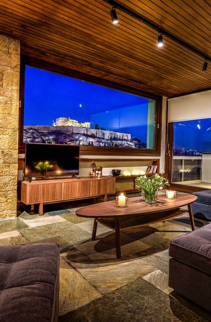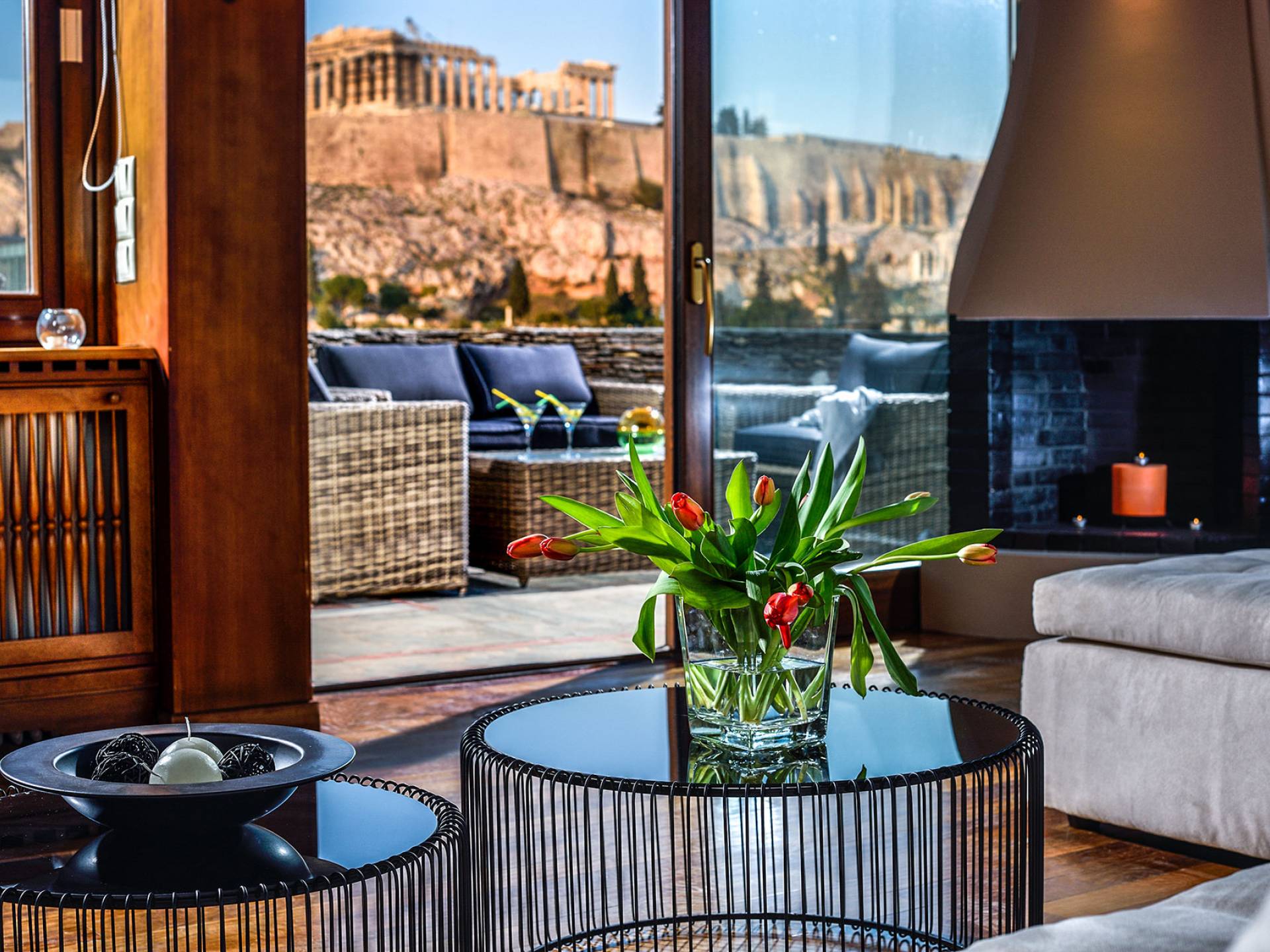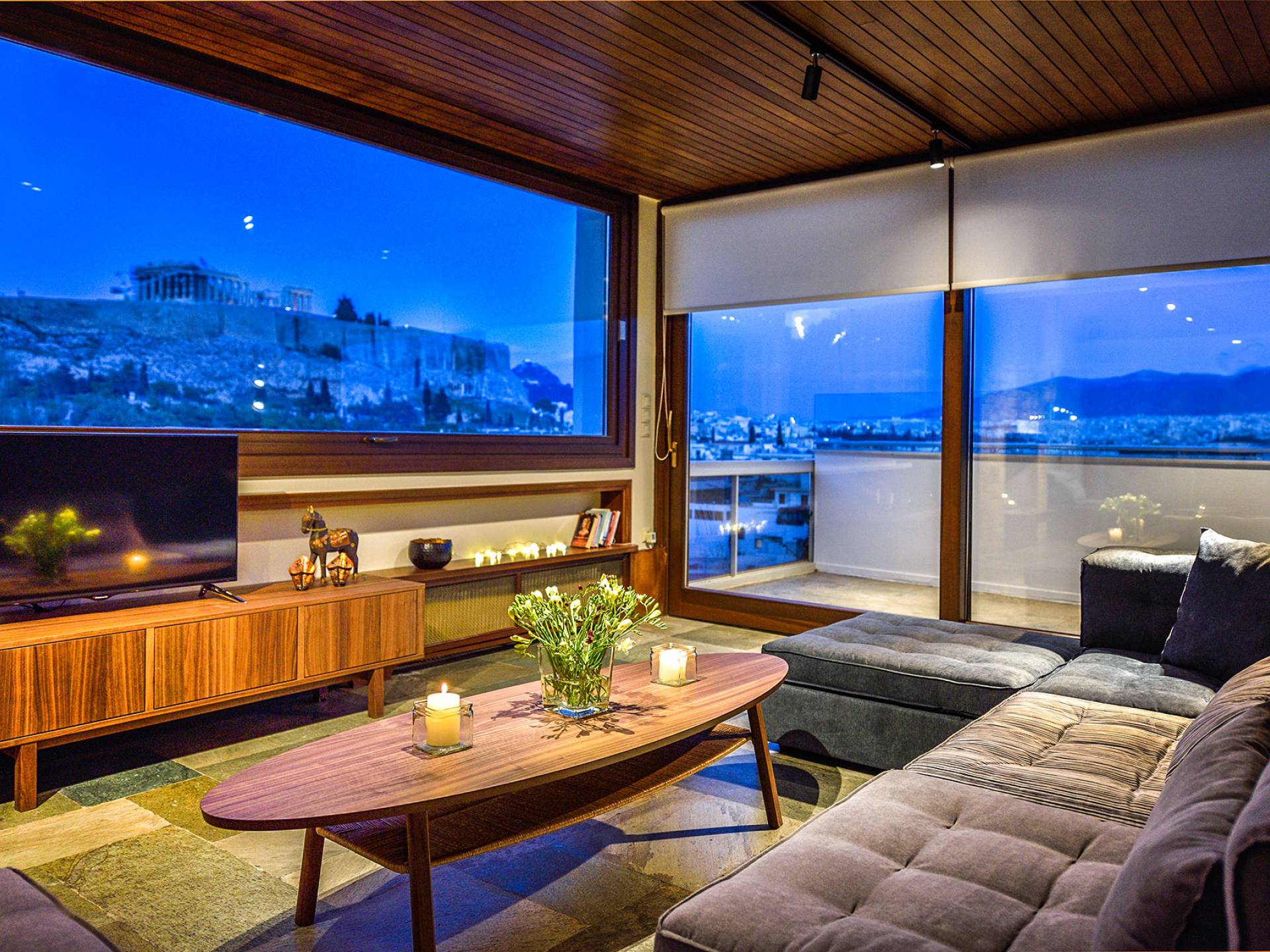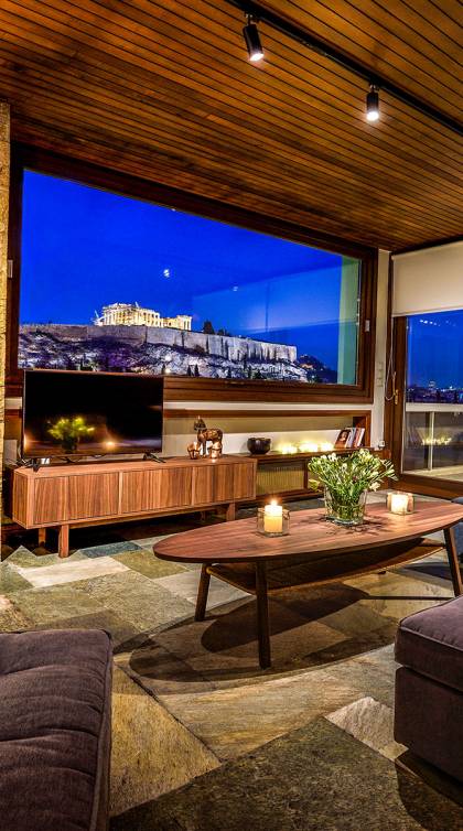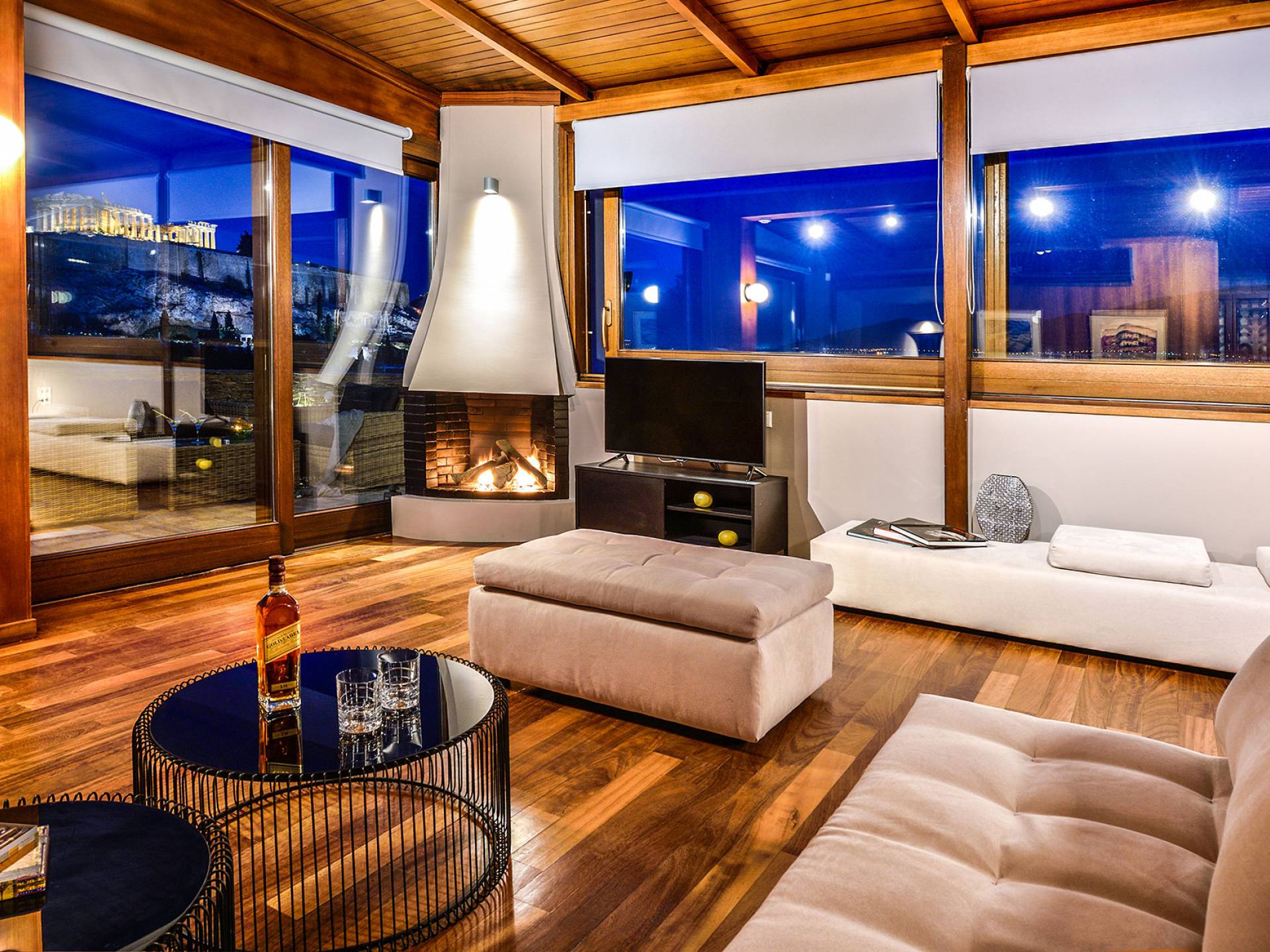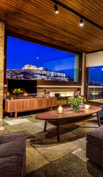 Ideally located in the heart of Athens, Karyatis Luxury Maisonette Athens of 200 sq.m., offers unobstructed views to the Acropolis Hill and the Parthenon from its private Sun Terrace. Only 300 m away from the Odeum of Herodes Atticus and 400 m away from the new Acropolis Museum, the apartment provides easy access to all major archaeological sites and museums. It is also conveniently located close to a variety of shops, cafes, nightlife, and restaurants.