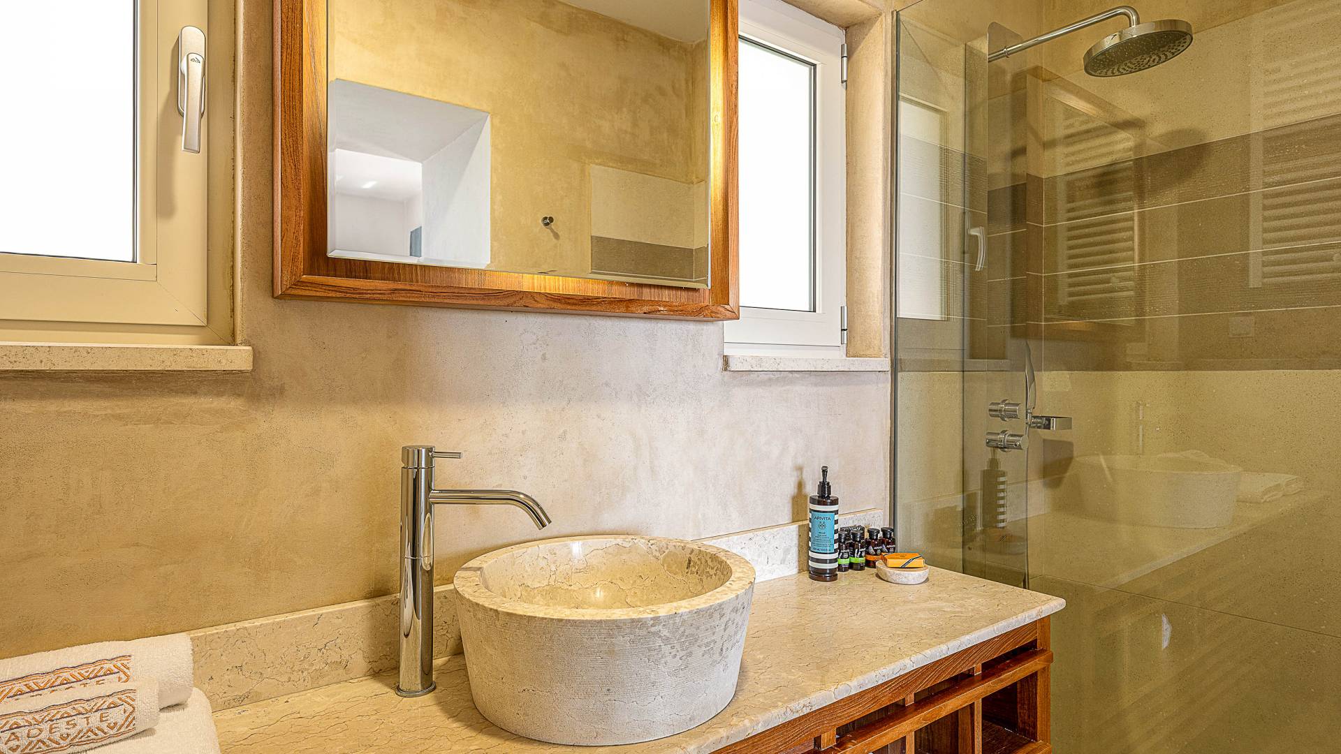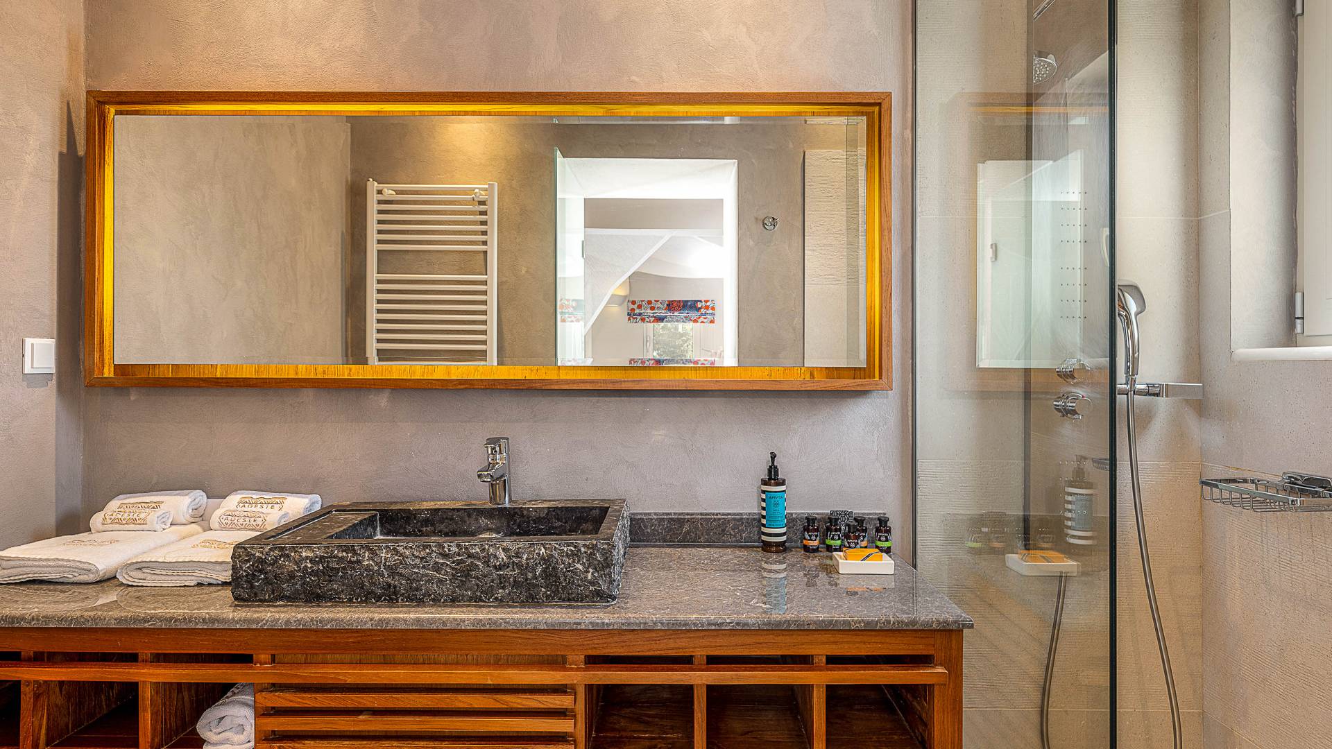 The modern taste of each villa is expressed in every detail of the residence, where the lines between indoor and outdoor seem blurred. The luxury bedding, smart electronic devices, and natural bath products assure your every relaxation with the finest amenities available. Enjoy your morning coffee in the outdoor large balcony while checking your iPad mini or simply by checking the view.