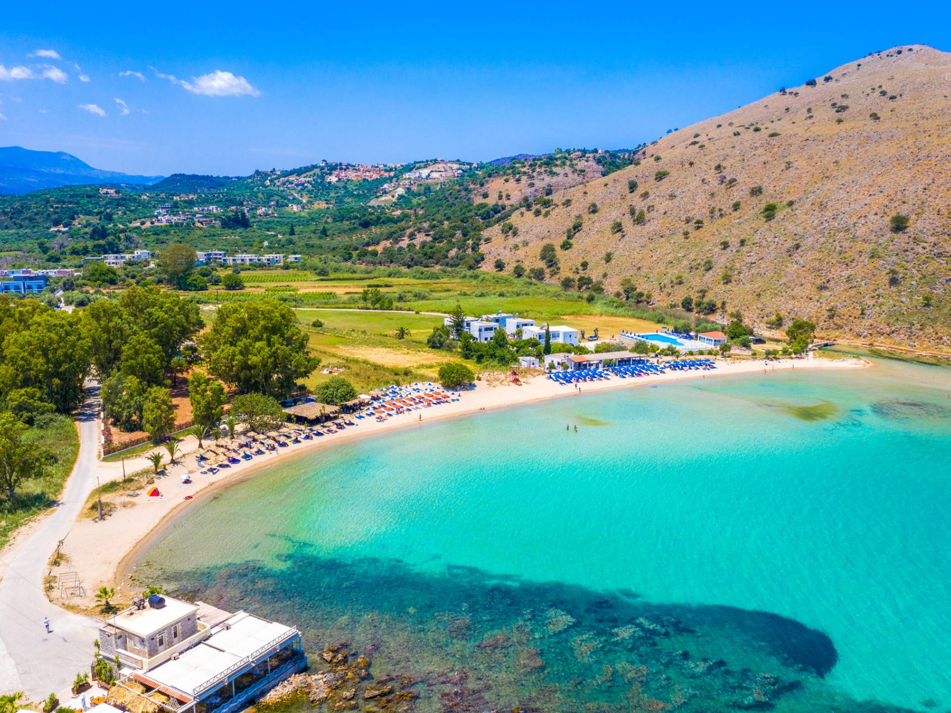 Kalyves Beach (4 km) – A larger town beach with sunbeds, restaurants, and plenty of amenities.