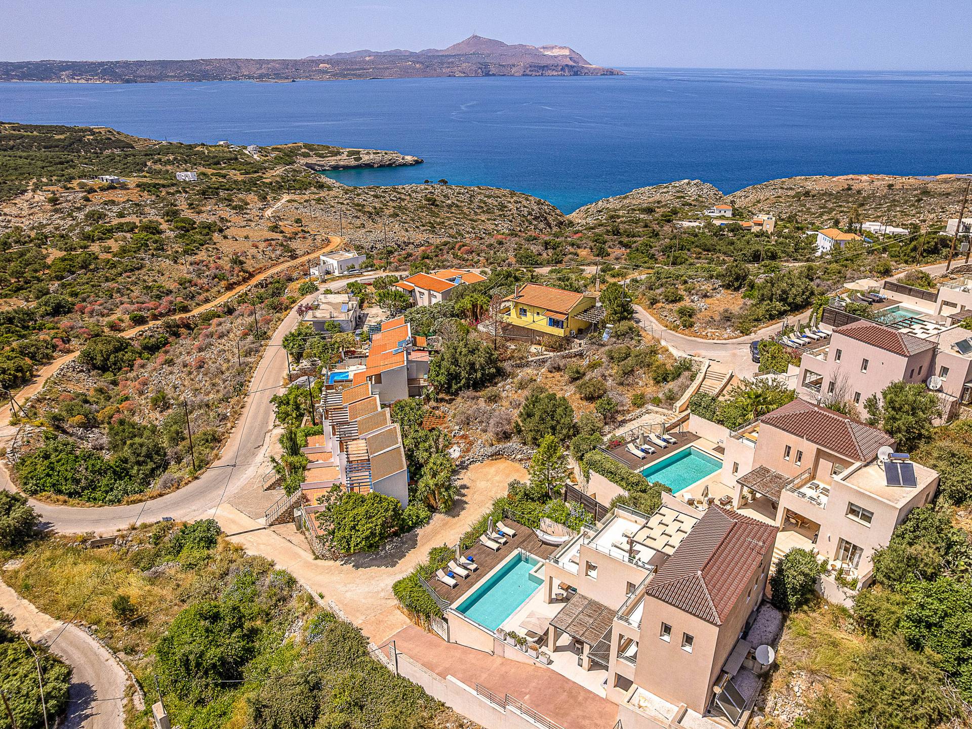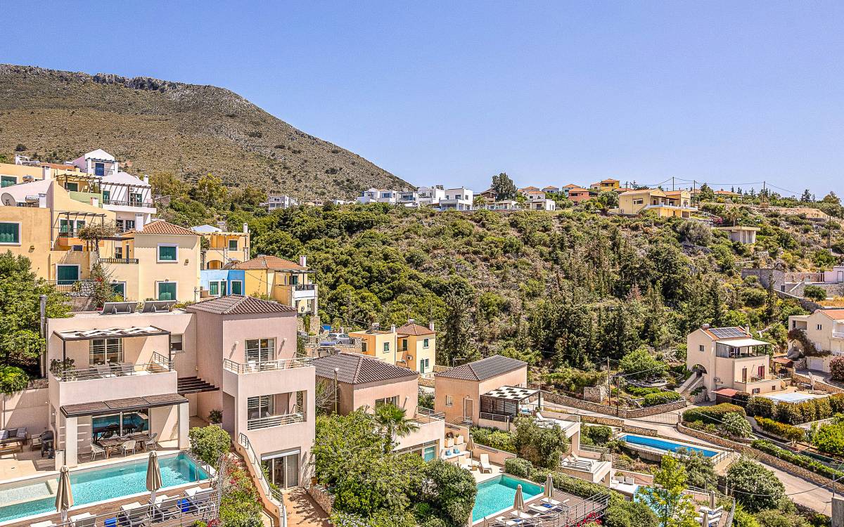 Aori & Alai Villas Chania is a luxury holiday rental with 7 bedrooms and a private pool. Aori & Alai Villas Chania is a combination of two modern luxury villas, Villa Aori and Villa Alai. This luxury rental is located in Apokoronas, Chania, Crete. Beautiful surroundings, thoughtful design and five-star services make an irresistible combination. With a privileged view of the hills and mountains of Apokoronas, extending to the blue strip of Souda Bay, Aori & Alai Villas Chania is a brilliant reflection of the diverse scenery that surrounds it.