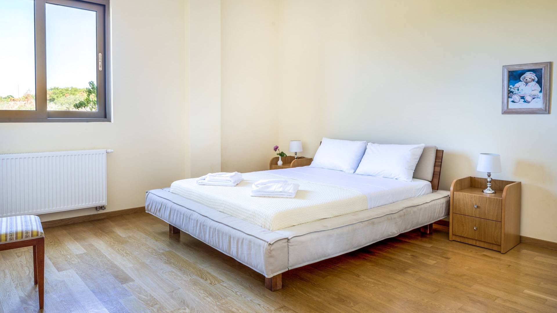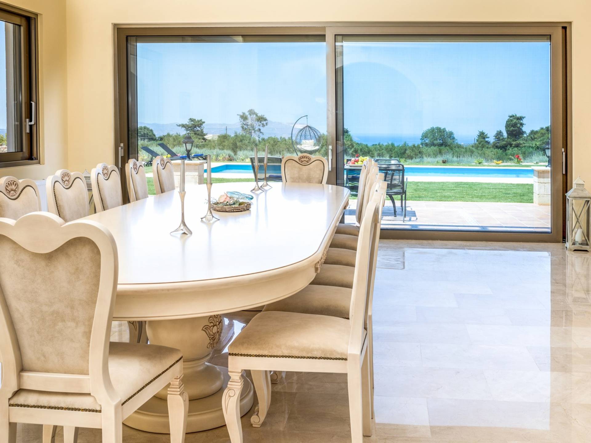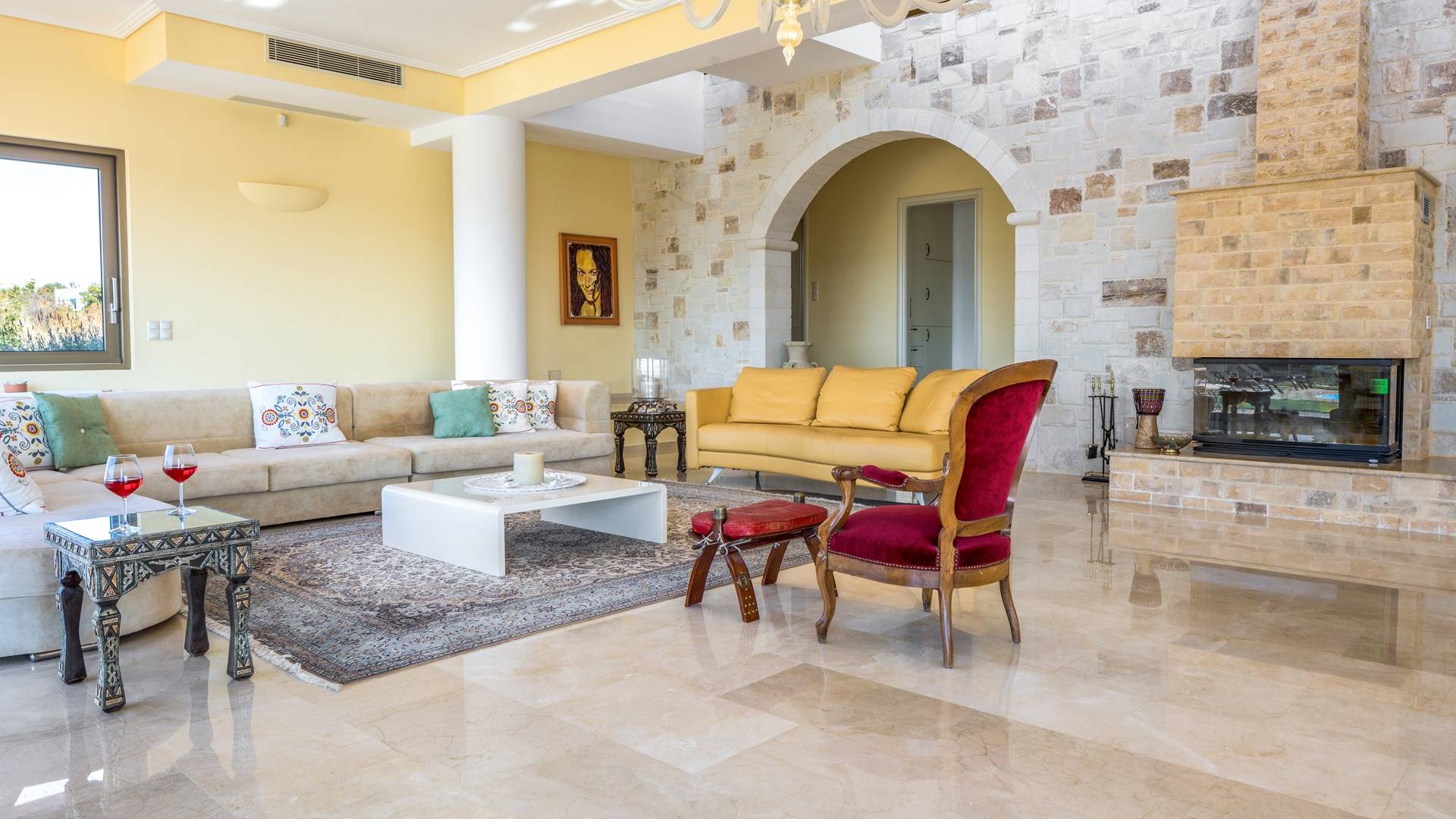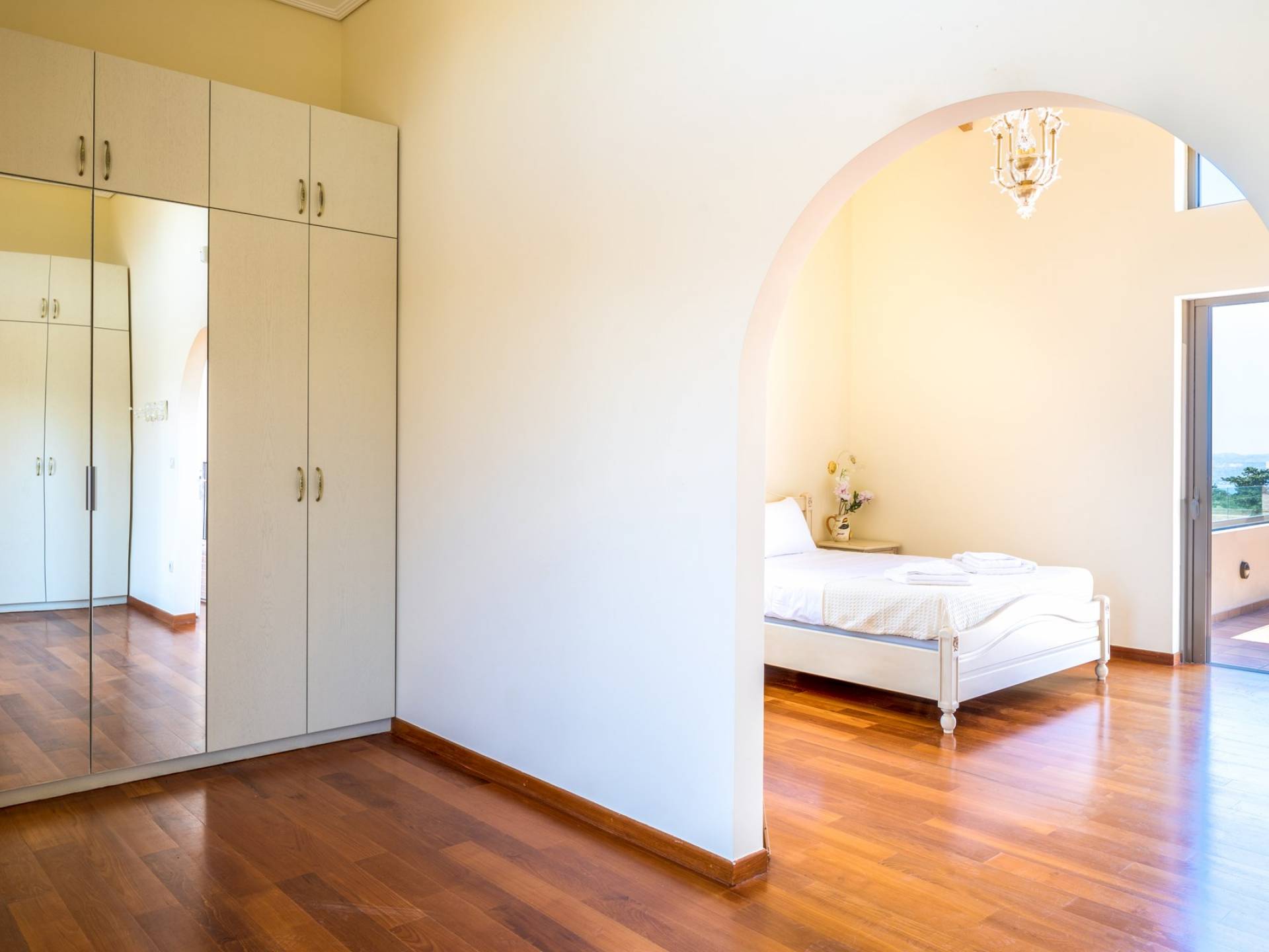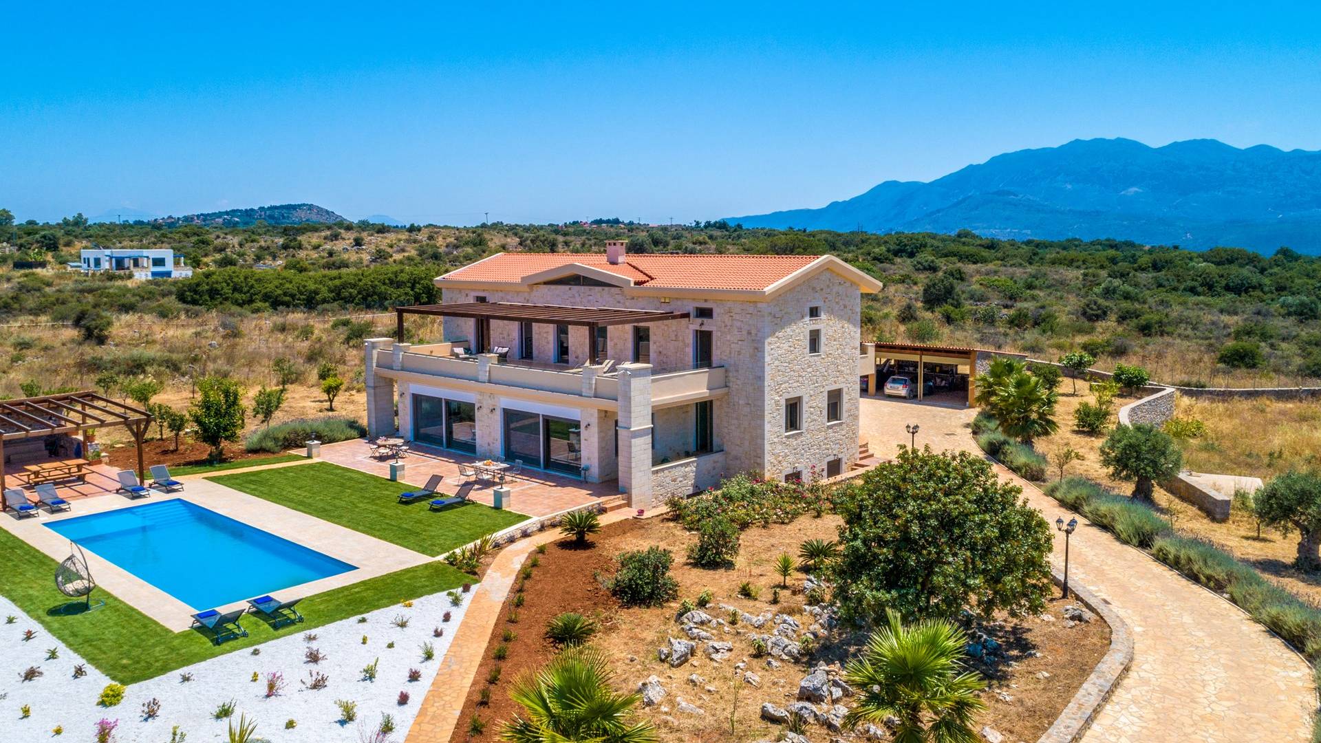 Surrounded by lush olive groves and multi varieties of vineyards, Villa Aphrodite sits dominant, elegant, and spacious at the center of a large, well-maintained land brimming with fragrant rosemary and lavender, providing complete tranquility and privacy in the heart of a truly Mediterranean landscape. Built to comply with the standards of bioclimatic architecture in its functioning, its design, layout, and decor were an inspiration to its owners so that the home would harmoniously blend in with its natural surroundings.