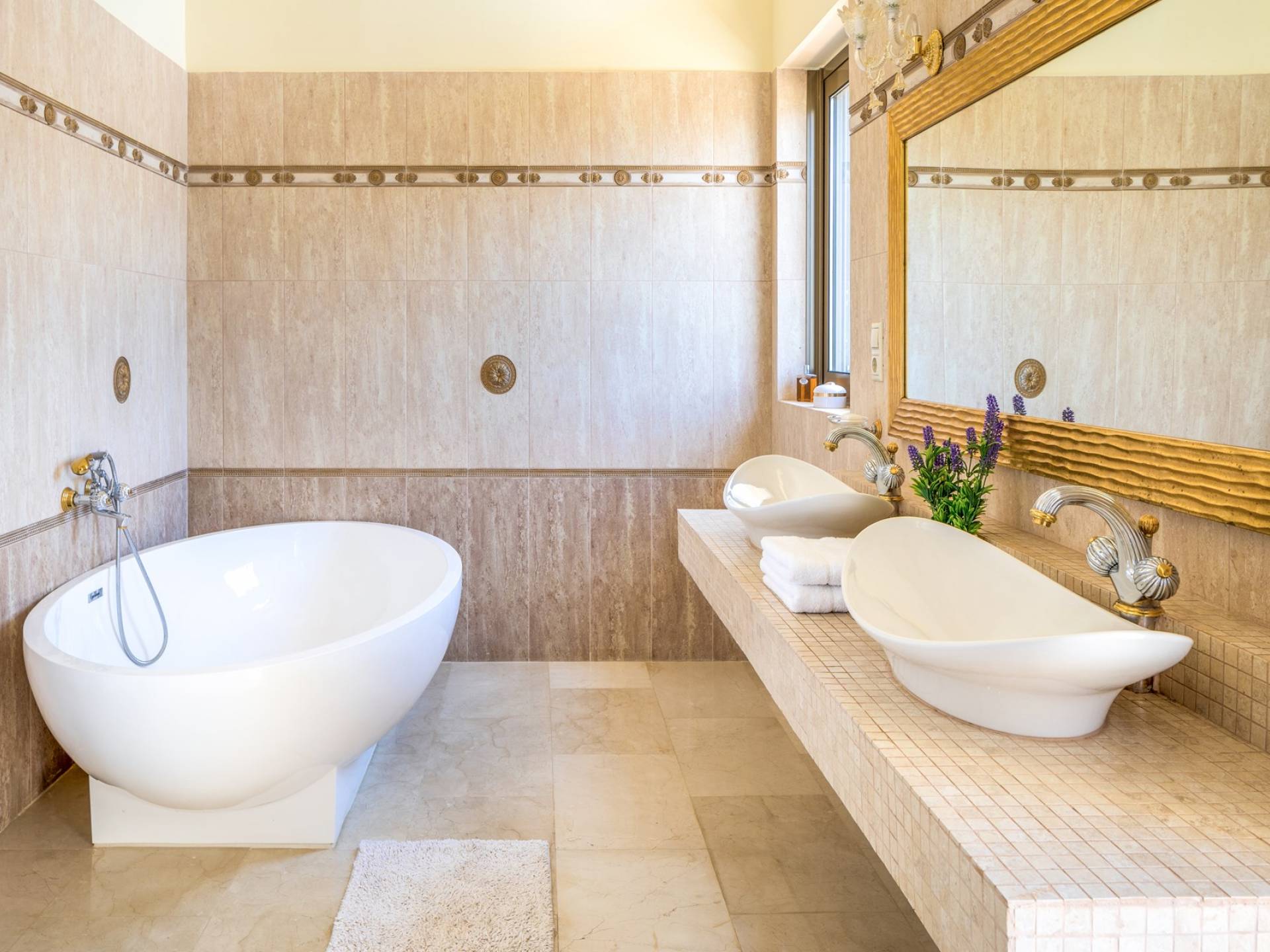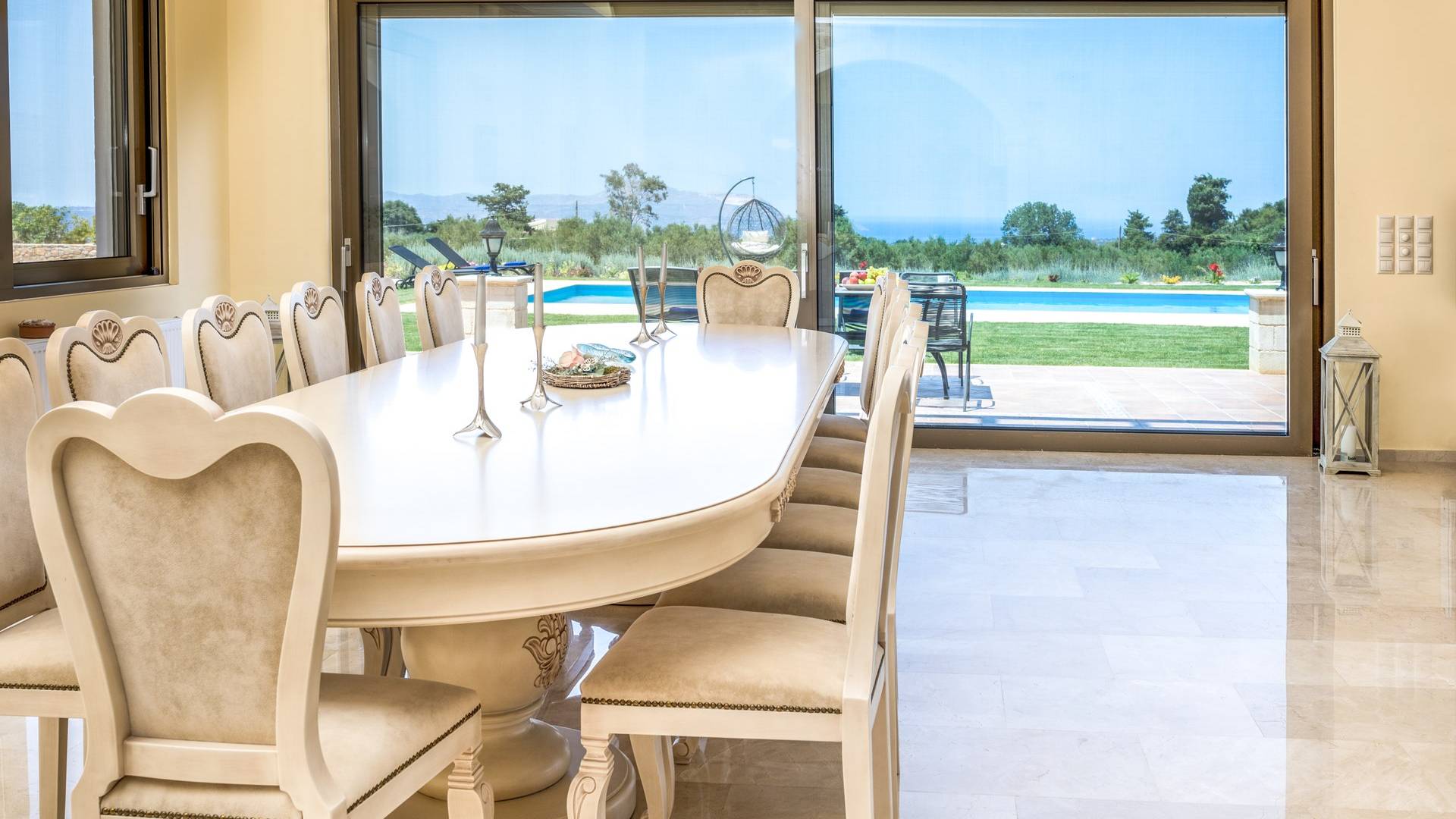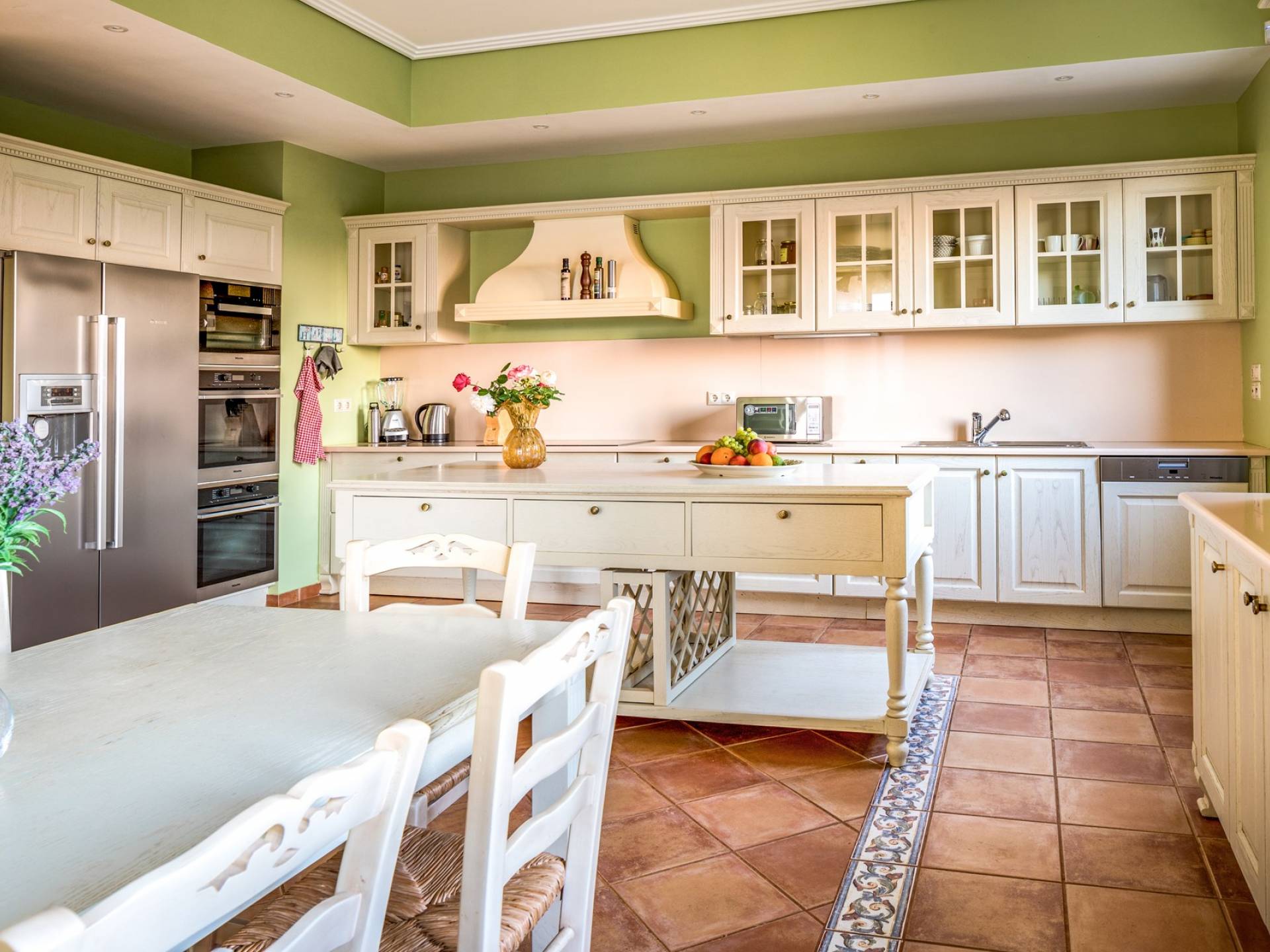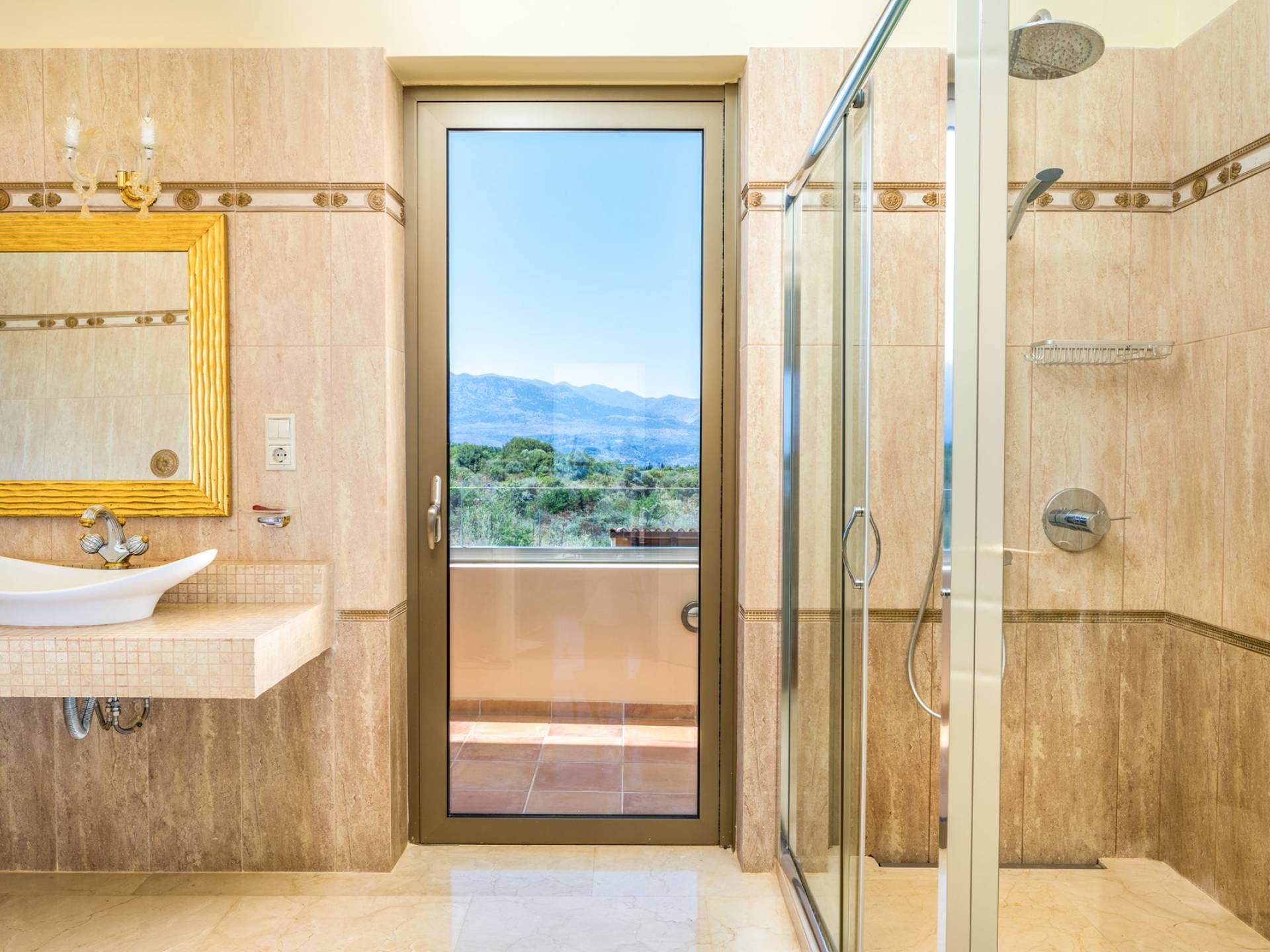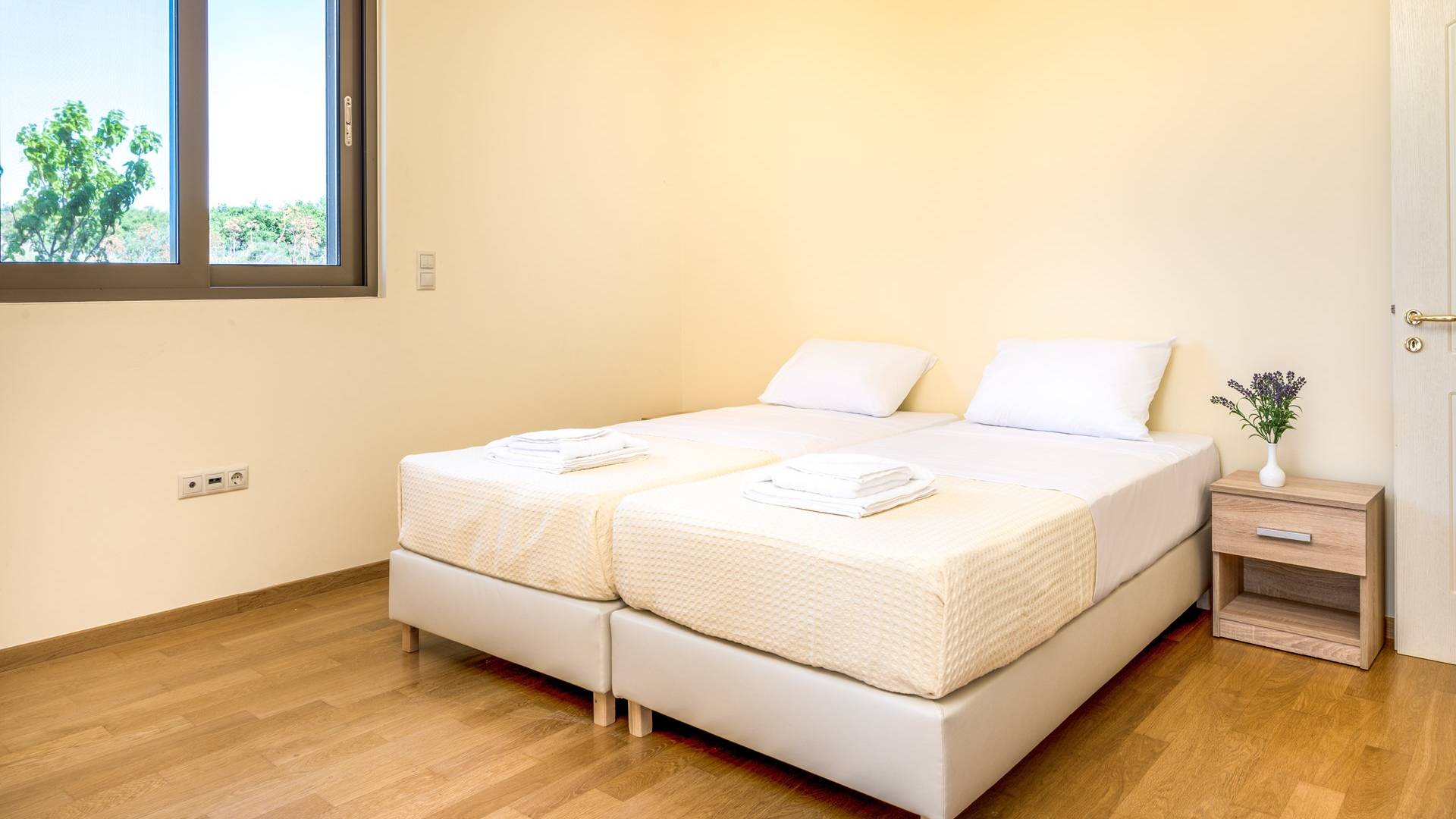 Surrounded by lush olive groves and multi varieties of vineyards, Villa Aphrodite sits dominant, elegant, and spacious at the center of a large, well-maintained land brimming with fragrant rosemary and lavender, providing complete tranquility and privacy in the heart of a truly Mediterranean landscape. Built to comply with the standards of bioclimatic architecture in its functioning, its design, layout, and decor were an inspiration to its owners so that the home would harmoniously blend in with its natural surroundings.