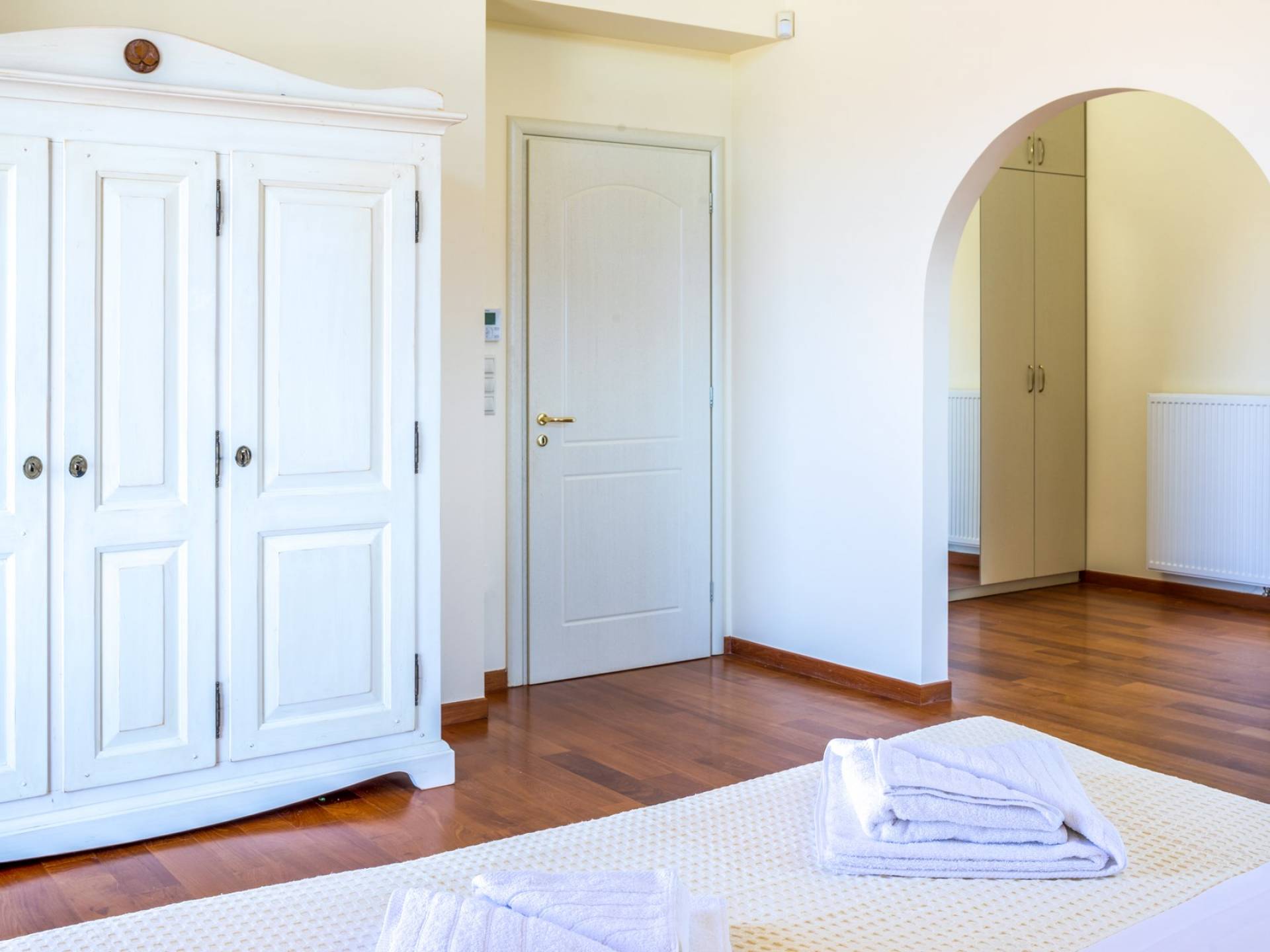 Furthermore, on the Lower Ground Floor, there are 2 bright Bedrooms, a Storeroom with a washing machine, clothes dryer, iron and ironing stand, a Wine cellar with local Cretan and other Greek wines, and a private gym & yoga - meditation hall, 2 bathrooms. A Private Apartment is situated on the lower ground floor, there is also an additional private apartment with a fully equipped kitchen, living room, a bedroom with a comfortable double bed, and a bathroom. The apartment has a separate entrance from the main house and is the perfect solution when traveling with your personal nanny or maid.
