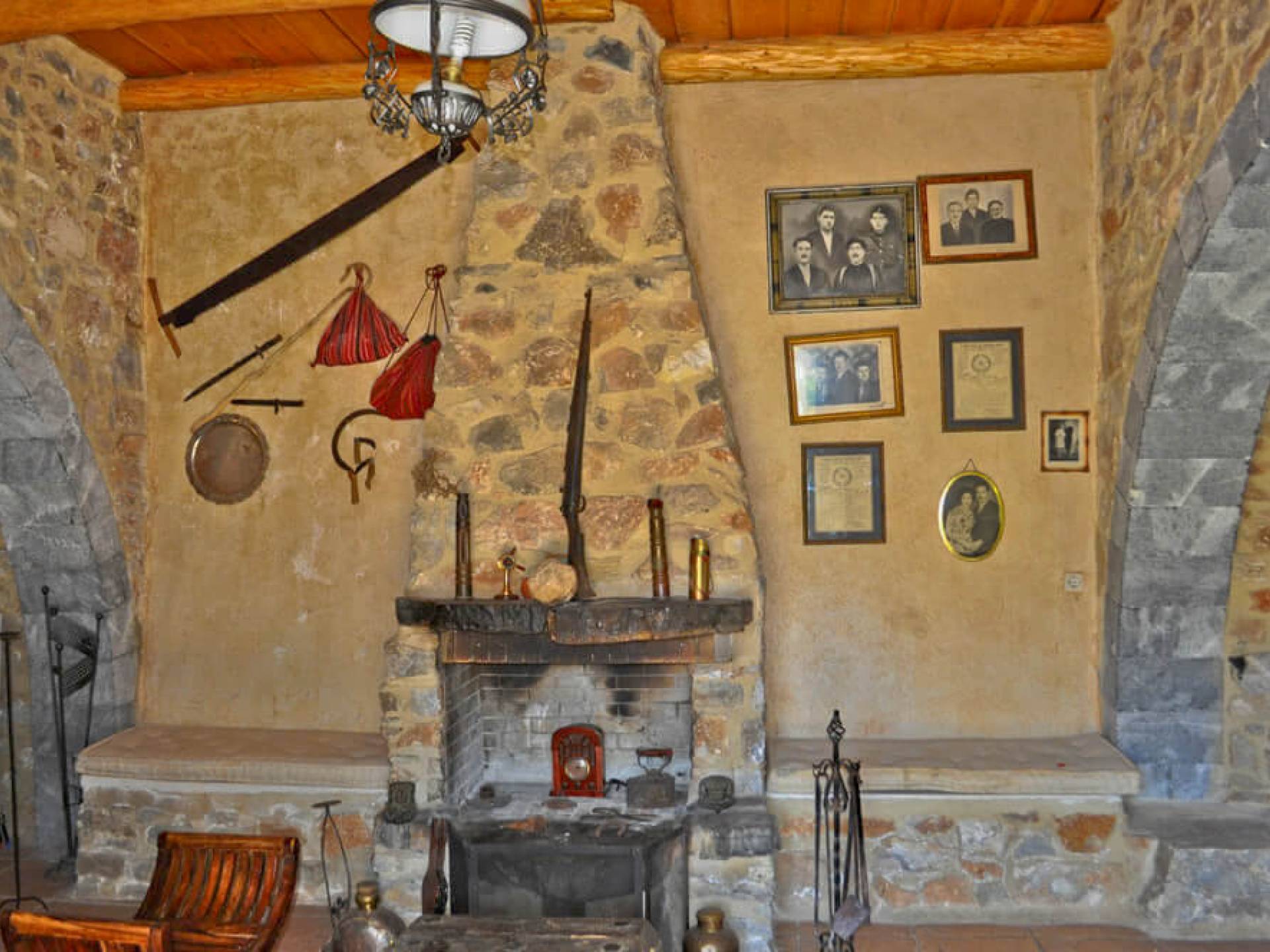 All bedrooms are equipped with new metal beds. On the second floor you can find another living room with two wooden sofa beds from which you can enjoy an amazing view through the wide window. On the third floor there is a large suite with independent entrance. The suite has a dining room, a fully equipped kitchen with refrigerator, a TV, WC and a big vintage bathtub. The interior wooden staircase leads to a living room with glass partition that provides a panoramic view. At the top end of the staircase, in the attic, there is an old loom, which is adjusted as a double bed. The stone-built barbecue is situated in a separate area next to the swimming pool and is great for friendly meetings. In summertime you can also enjoy the swimming pool, which offers a stunning view to the plateau.