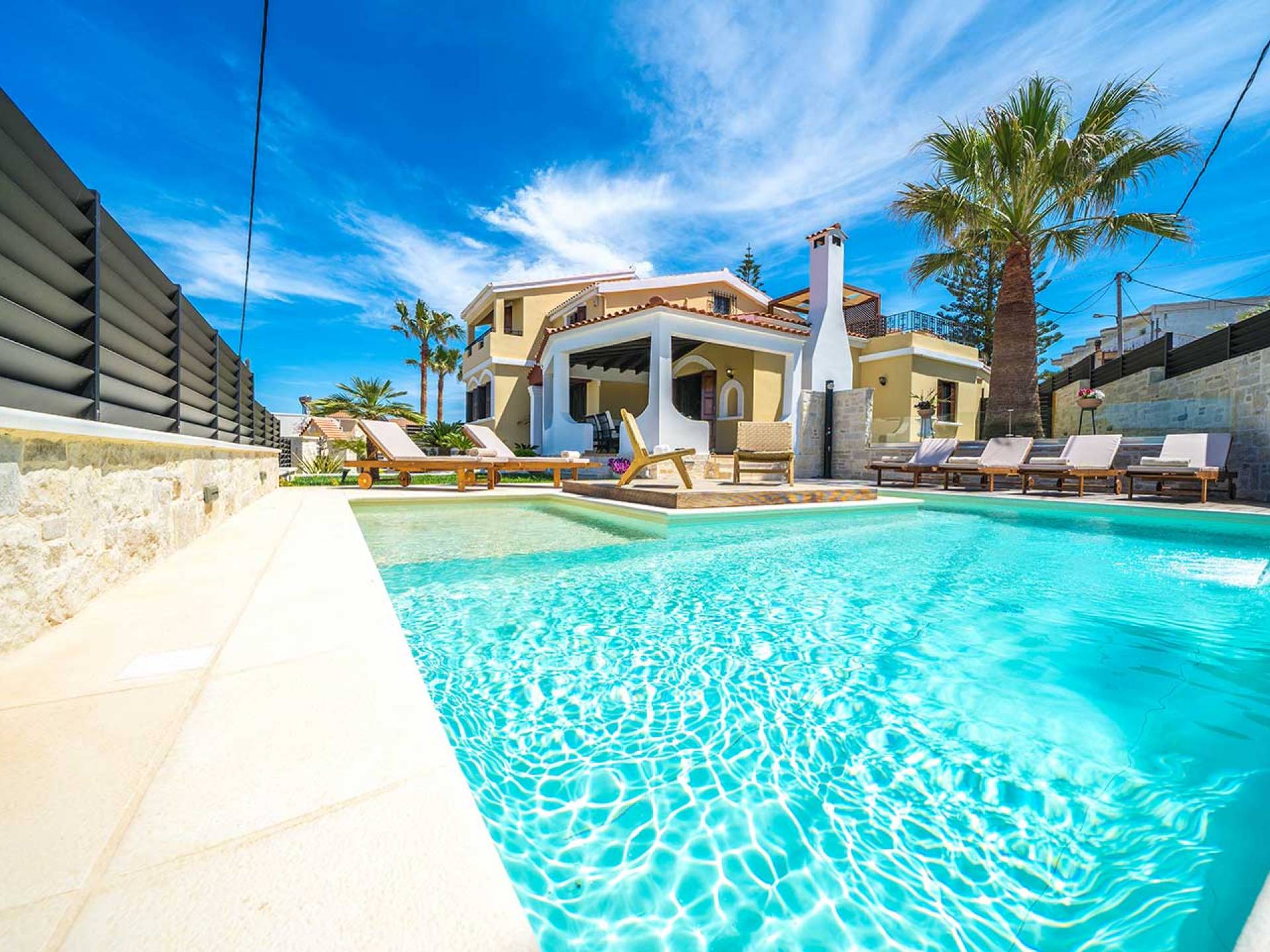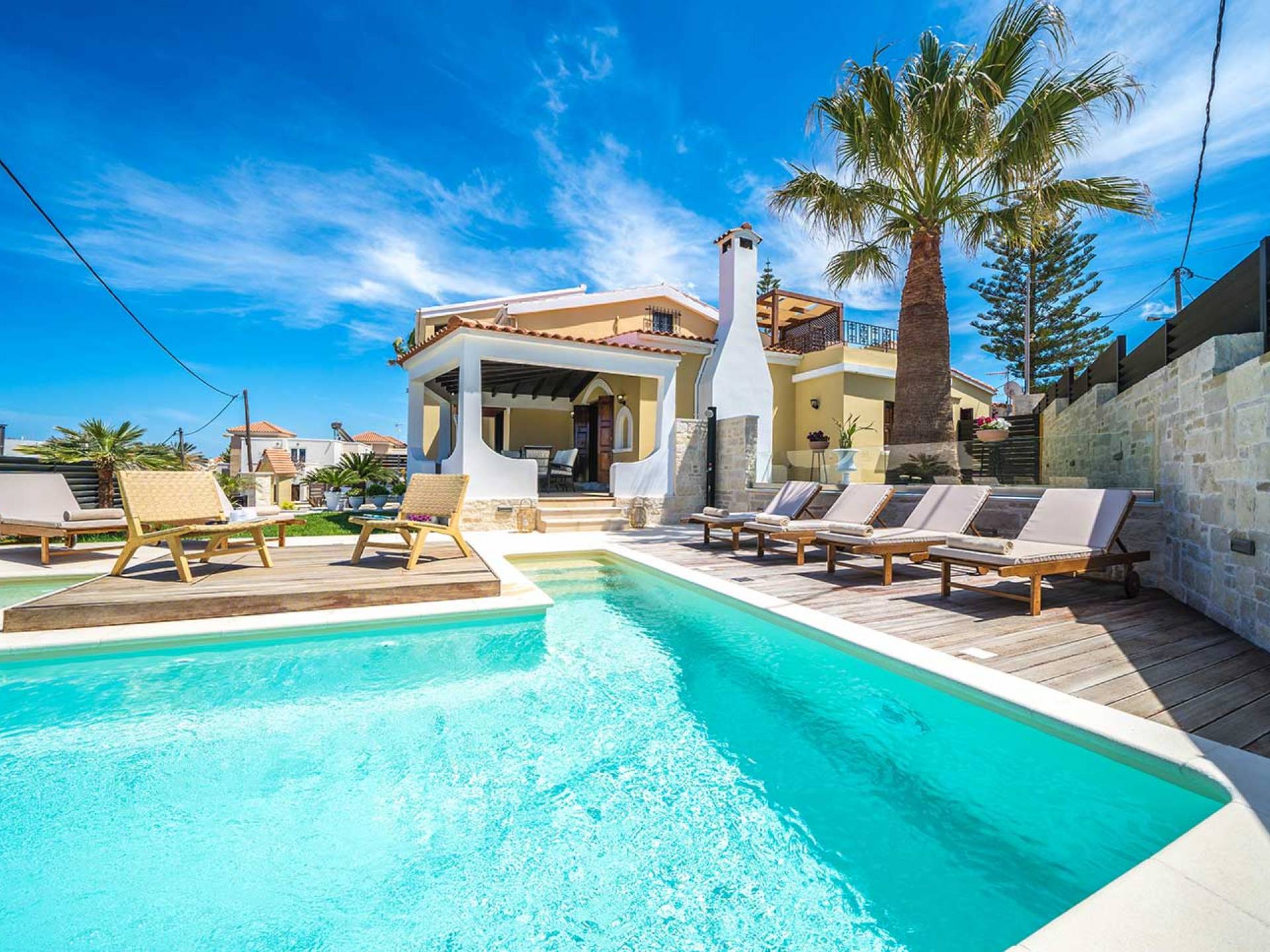 Casa Catalina Villa Chania is a luxurious 4-bedroom retreat with a private heated pool, just 100m from the renowned sandy beach of Agia Marina. Only 30m away, you’ll find restaurants, cafés, and shops for ultimate convenience. Ideal for families, couples, or friends seeking a stylish and comfortable base to explore Chania and Western Crete, this villa offers a perfect blend of relaxation and sophistication.