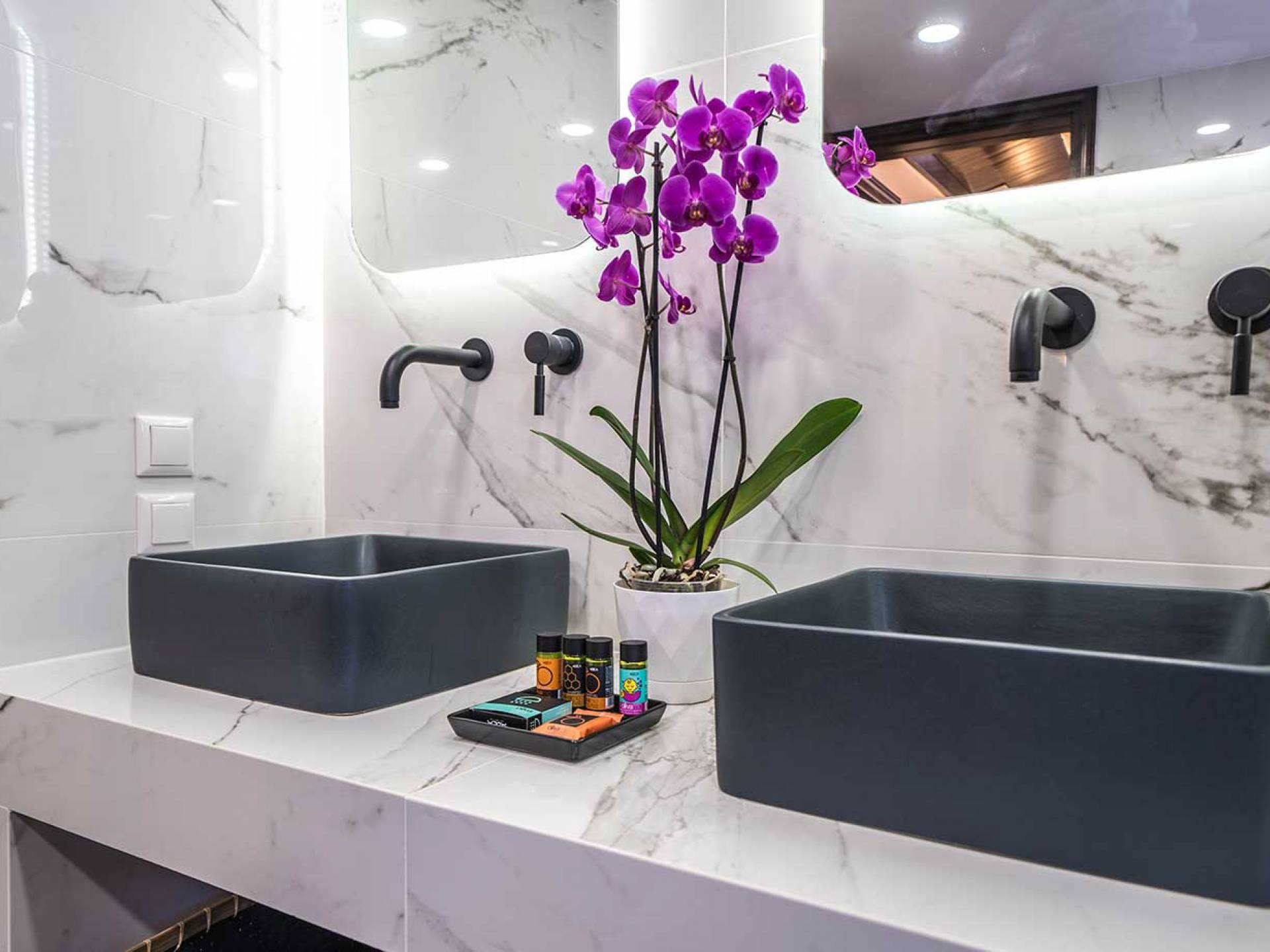 Spread across two levels, Casa Catalina Villa Chania accommodates up to 8 adults + 1 child in 4 beautifully appointed bedrooms, making it ideal for families or groups of friends.