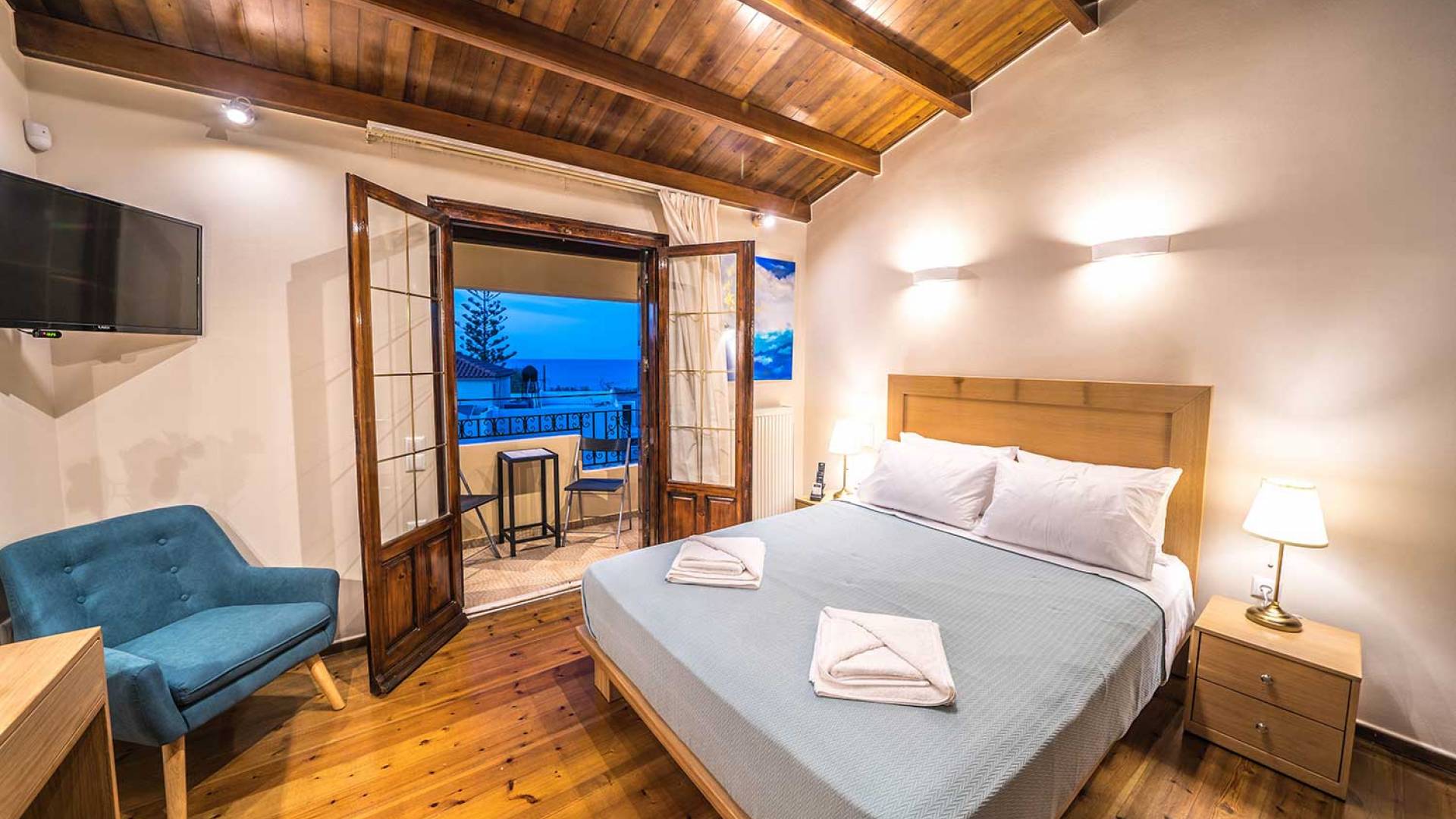 - Platanias (5 min) – Buzzing with nightlife, seafront restaurants, and local shops