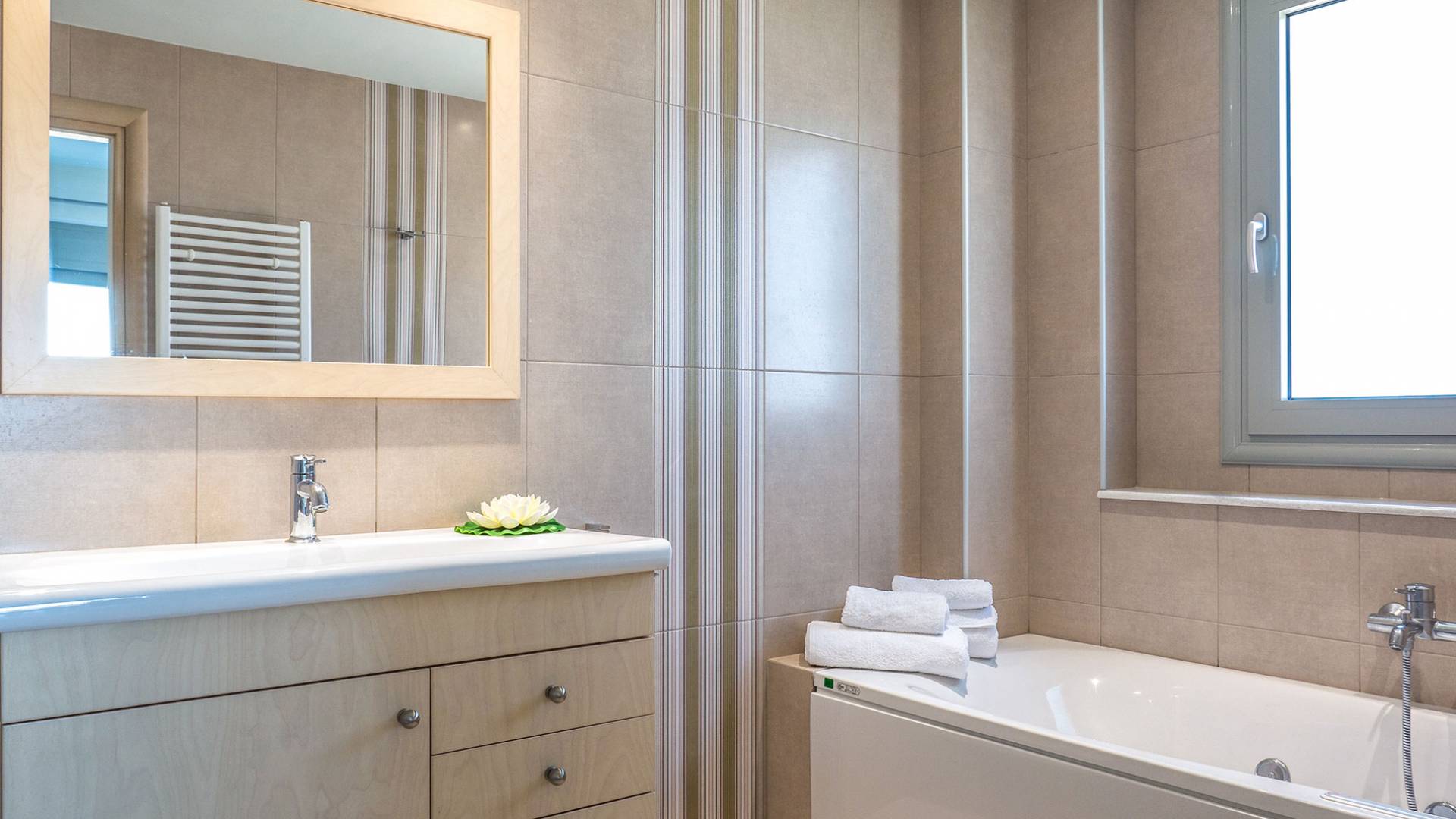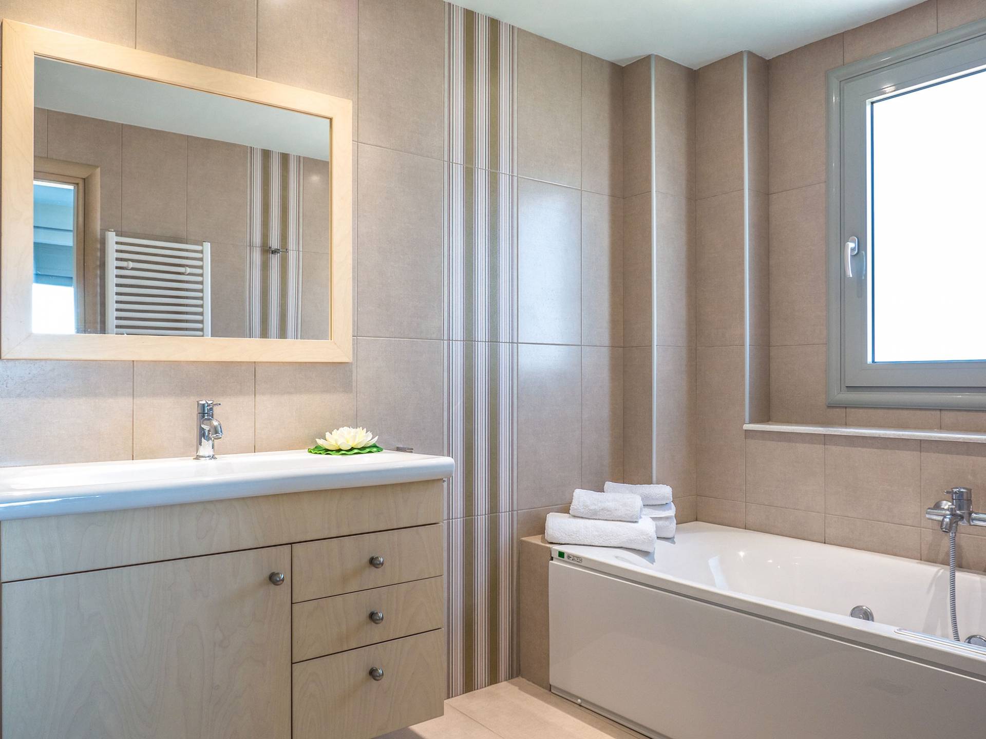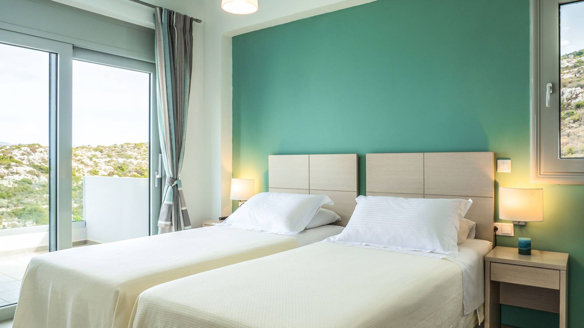 The ground floor of Christina Villas has a bathroom for disabled people, a living room with a Sofa Bed, flat-screen TV/DVD and Satellite. At the same level, there is a dining room and a spacious kitchen with refrigerator, stove, microwave, dishwasher, tea and coffee maker. As we continue our tour, on the 1st floor there are two Bedrooms, with their own bathroom with bathtub. Even each of the Master Suites does have a washing machine and a safe deposit box. Upstairs, on the 2nd floor, there is a common balcony overlooking the Cross where filmed the movie “Zorbas” (or more commonly, “Zorbas Dance”). In the exterior space, there are a wheelchair ramp, a year- round outdoor swimming pool, garden varieties, different lawn trees and various herbs to use them in our traditional Cretan Cuisine!!! Even Demetra, the goddess of agriculture would be jealous of these!