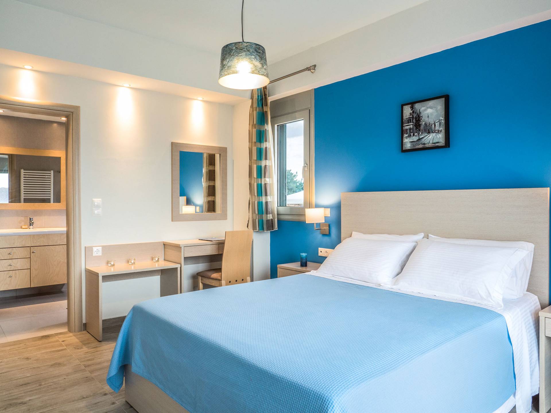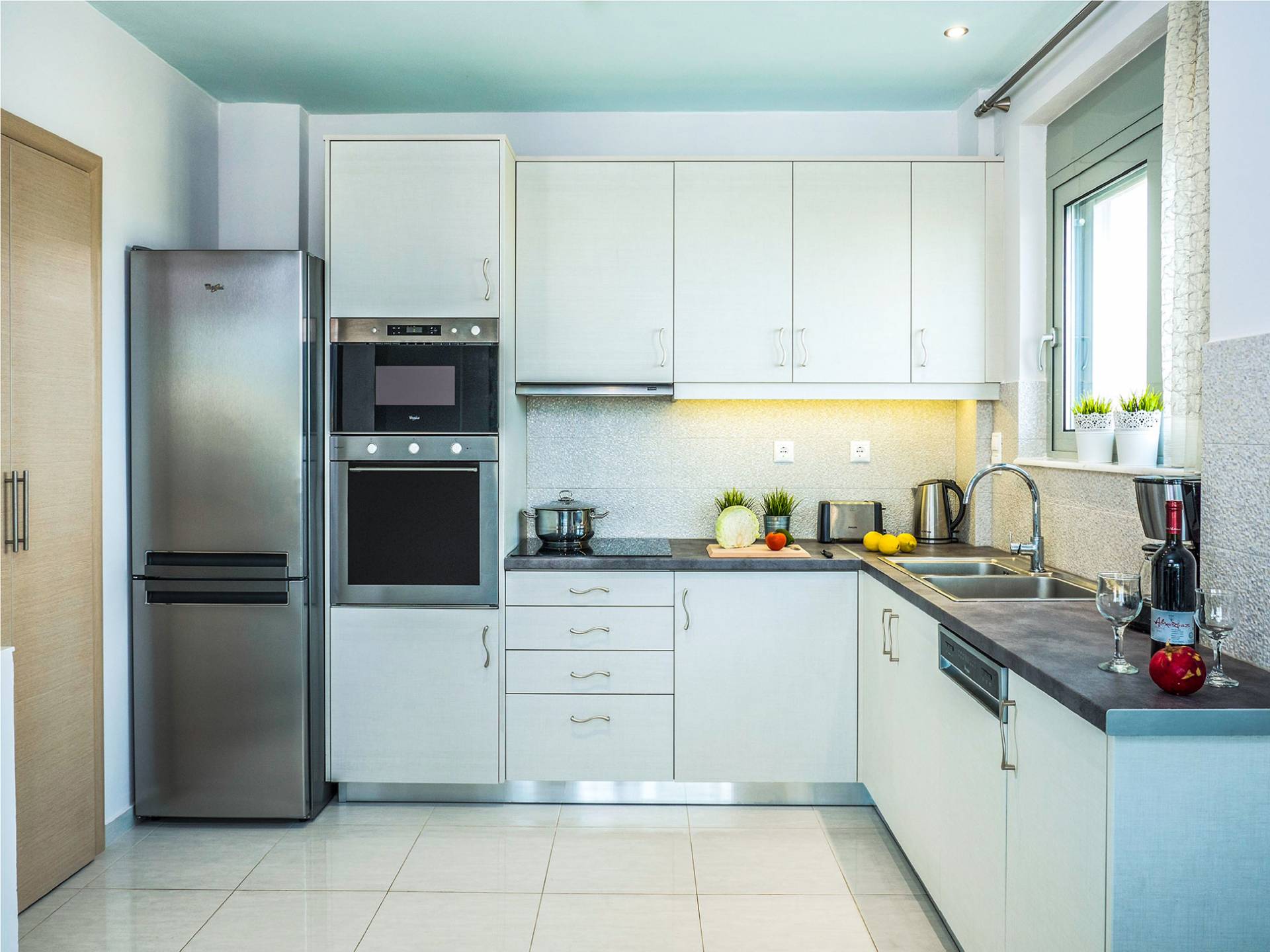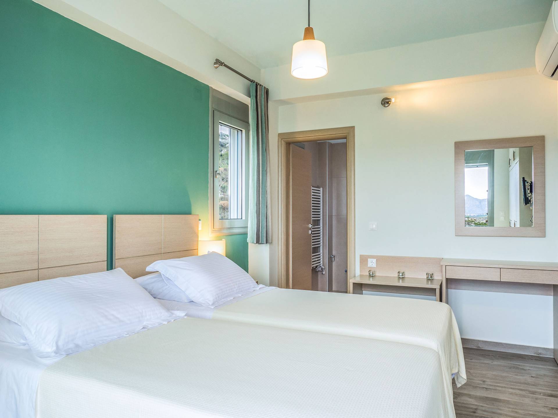 The ground floor of Christina Villas has a bathroom for disabled people, a living room with a Sofa Bed, flat-screen TV/DVD and Satellite. At the same level, there is a dining room and a spacious kitchen with refrigerator, stove, microwave, dishwasher, tea and coffee maker. As we continue our tour, on the 1st floor there are two Bedrooms, with their own bathroom with bathtub. Even each of the Master Suites does have a washing machine and a safe deposit box. Upstairs, on the 2nd floor, there is a common balcony overlooking the Cross where filmed the movie “Zorbas” (or more commonly, “Zorbas Dance”). In the exterior space, there are a wheelchair ramp, a year- round outdoor swimming pool, garden varieties, different lawn trees and various herbs to use them in our traditional Cretan Cuisine!!! Even Demetra, the goddess of agriculture would be jealous of these!