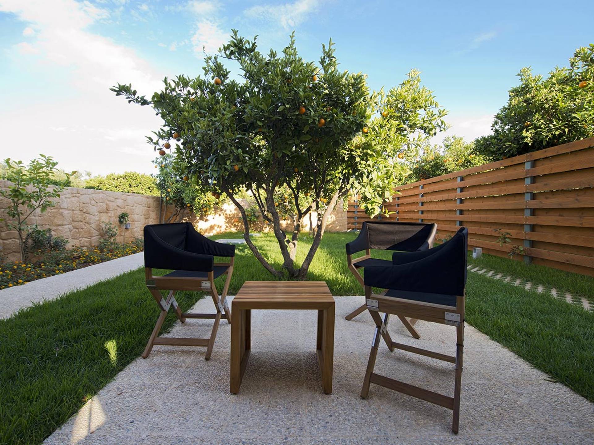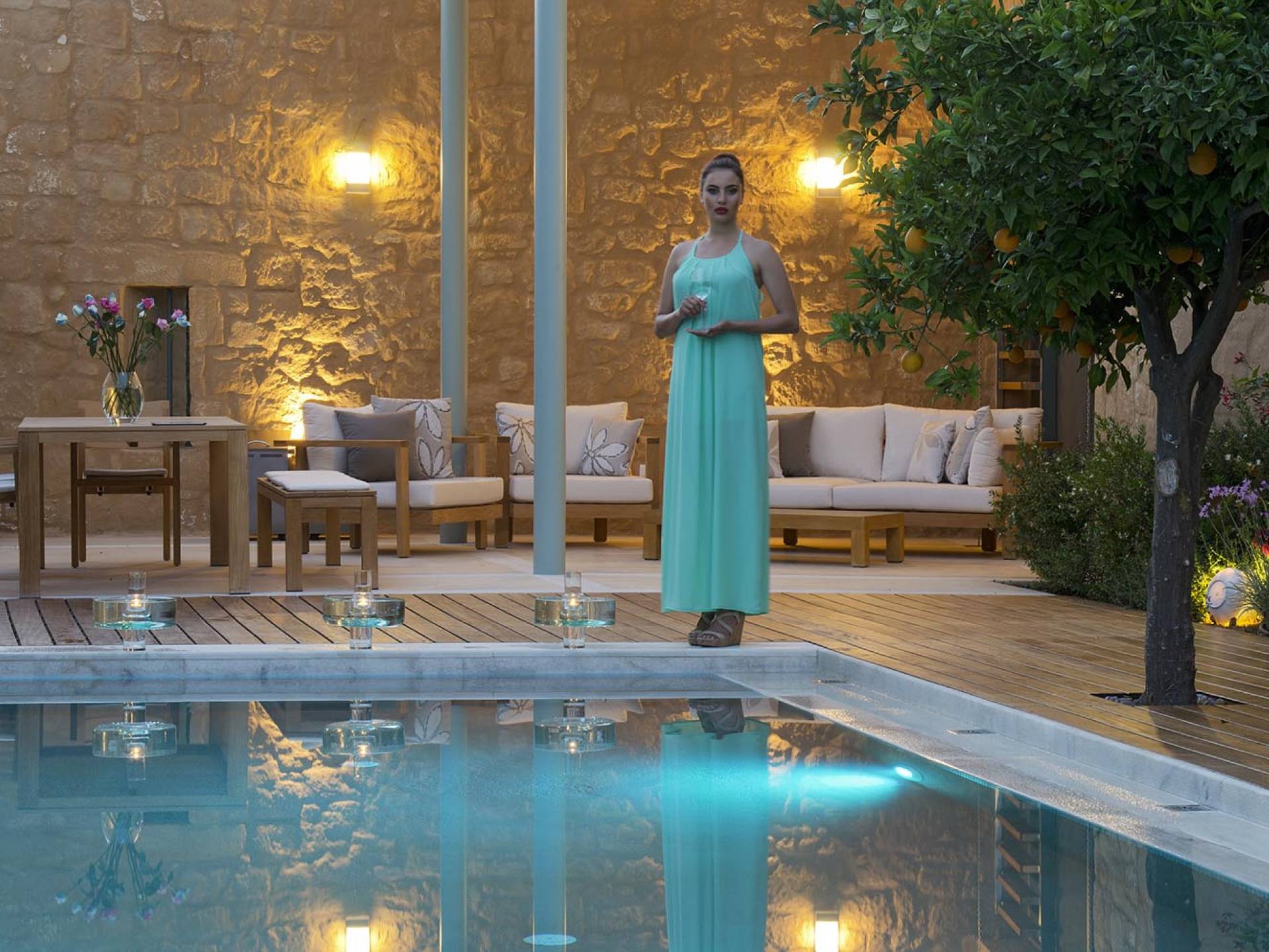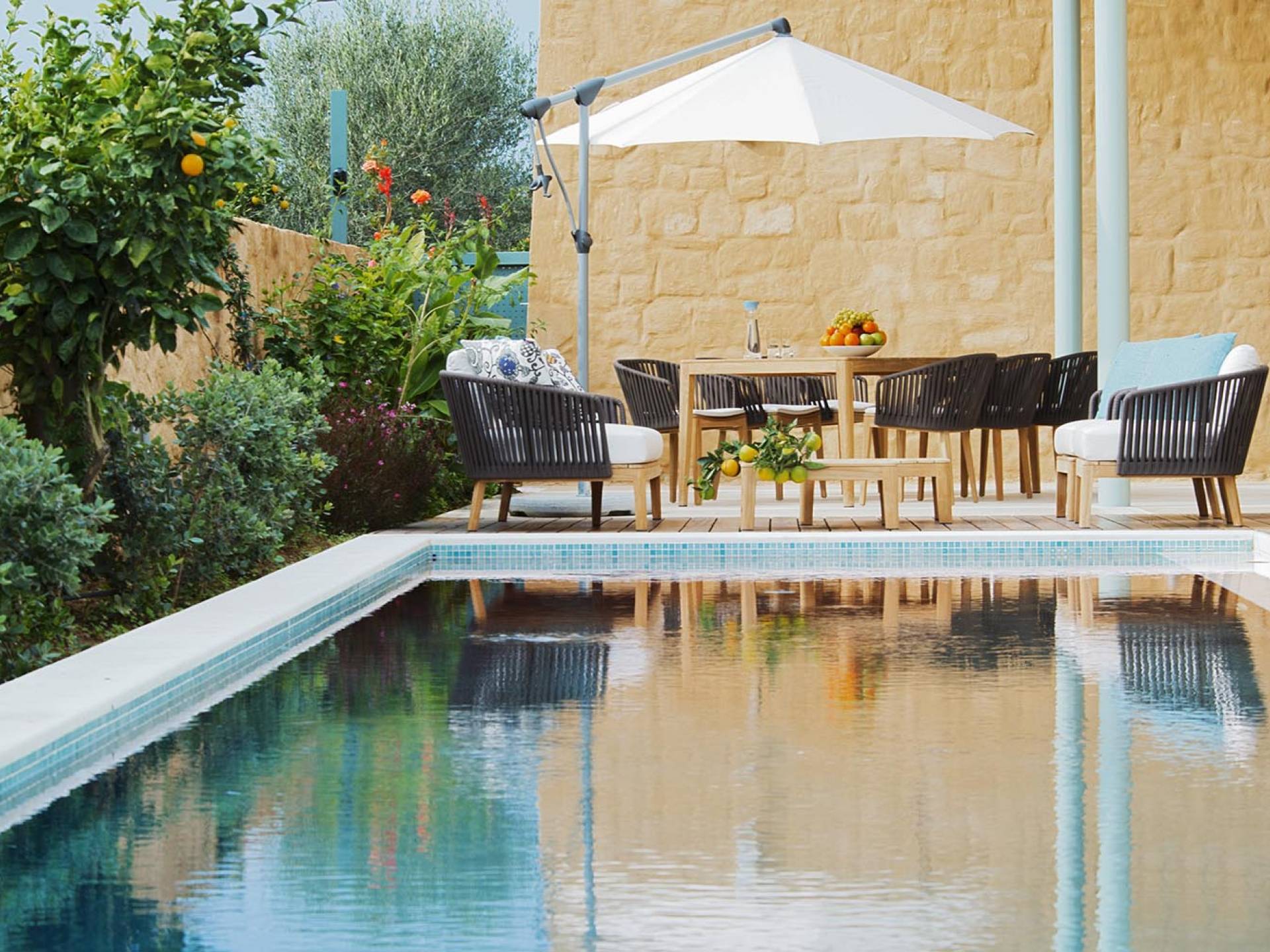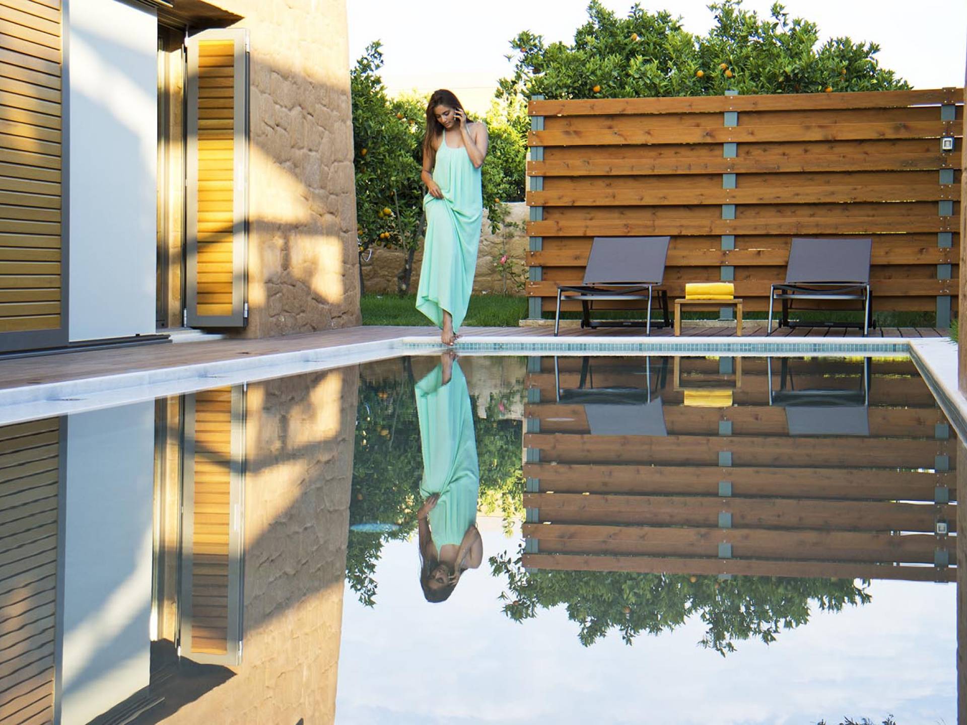 Mandarina Villa Chania with its rich garden, comfortable rooms and atmospheric lounge is a villa with three bedrooms, three bathrooms, two stories that can accommodate 6 guests. With three bathrooms, a private shinning swimming pool and garden full of citrus ready to be picked, walking through Villa Mandarina will leave guests the impression of walking outdoors. The incomparable quality of Villa Mandarina is the emphasis placed on constructing the Villa around the aromatic orange trees, thus bringing the grove within the home. Swim in Mandarina’s Diamond Brilliance pool, as you smell the herbs and pick splendid oranges dotted along the wooden deck. An aromatic and salty experience you have to enjoy.