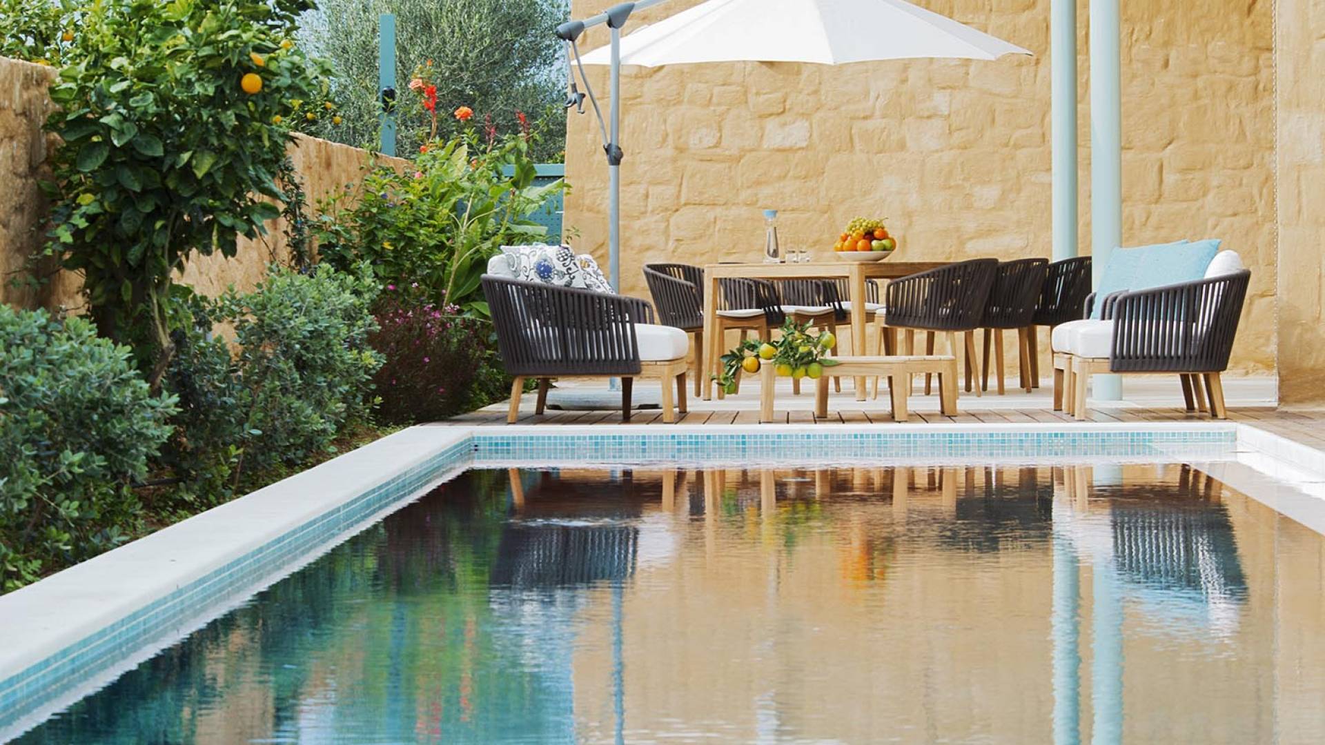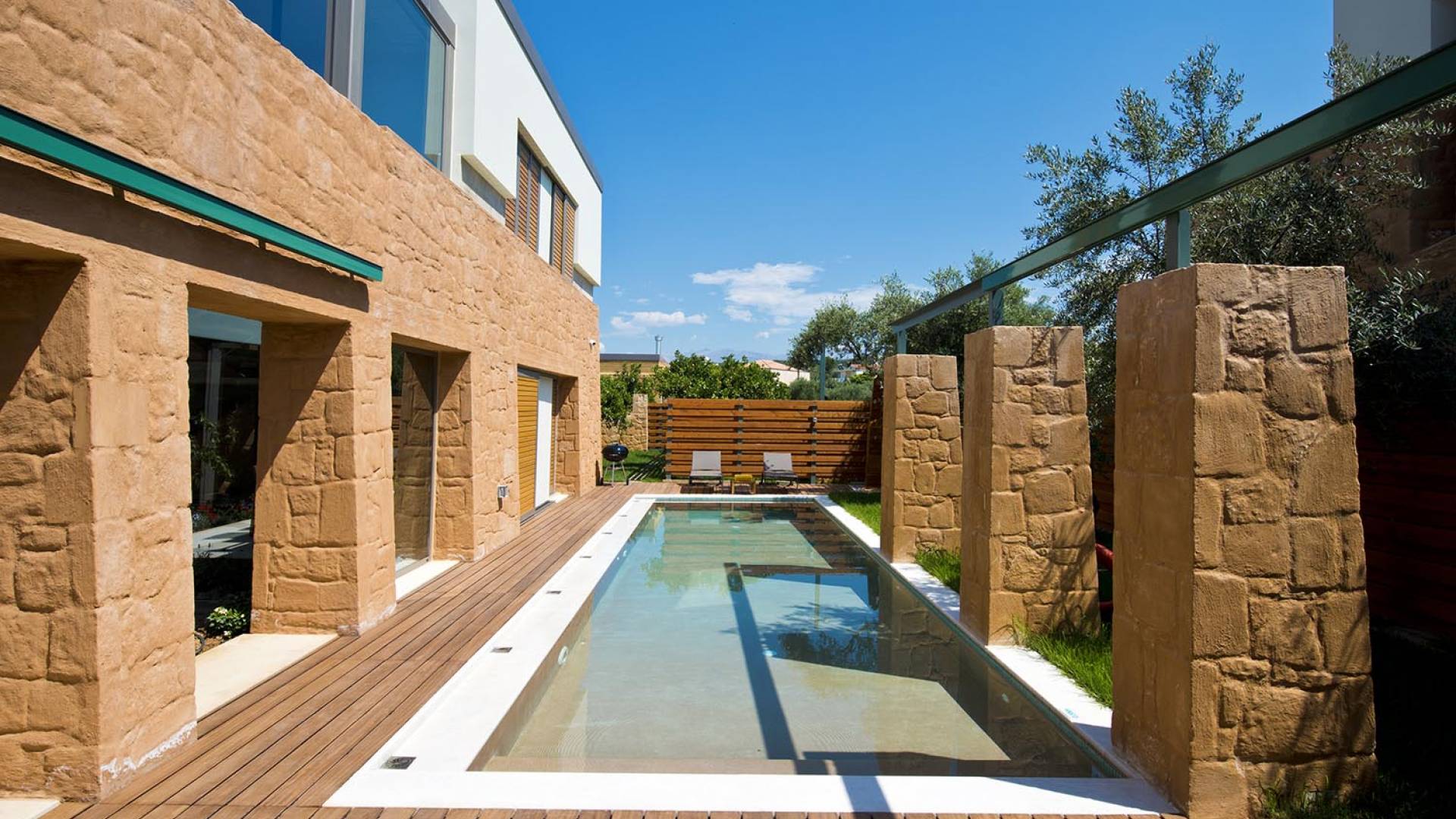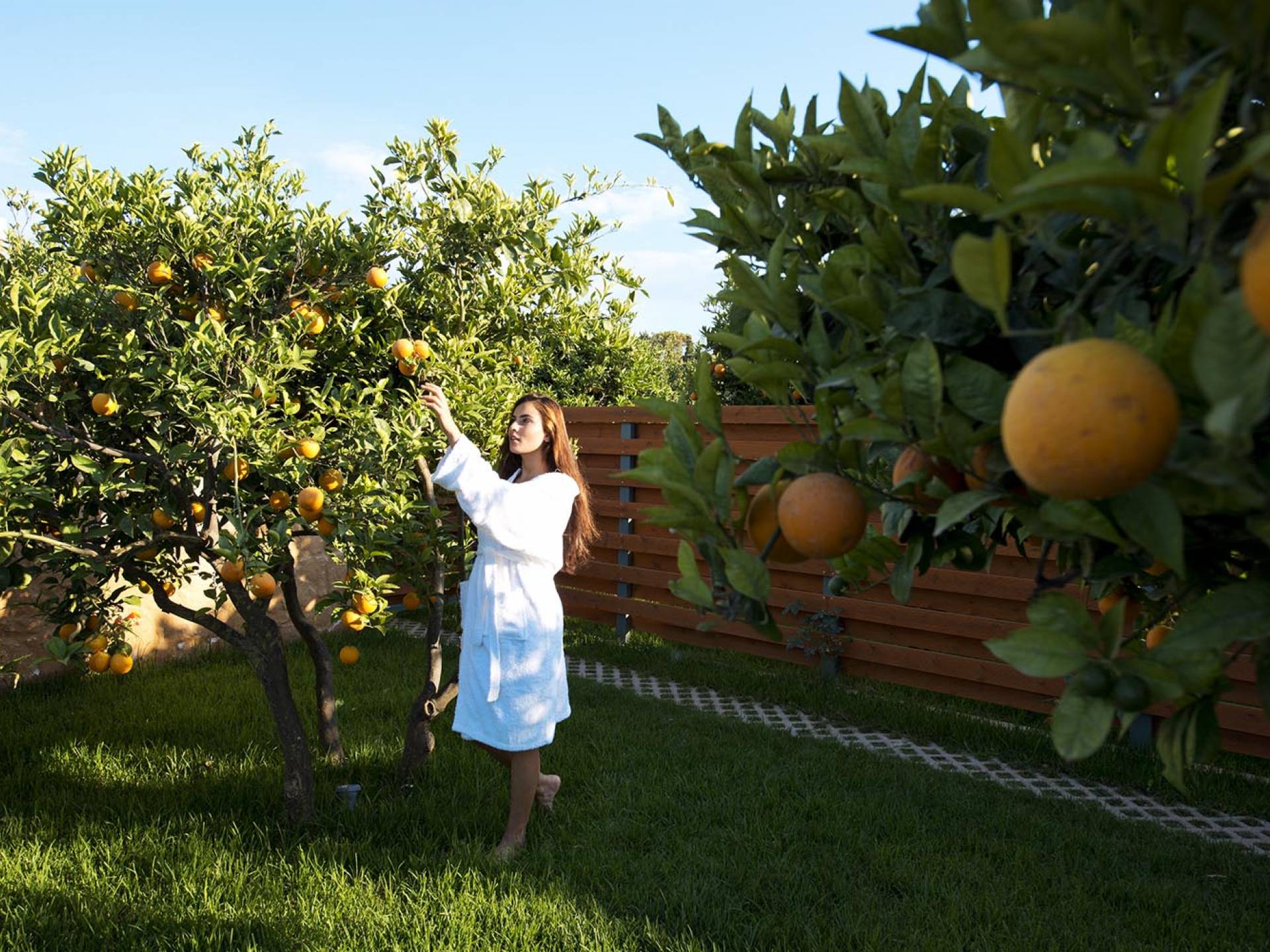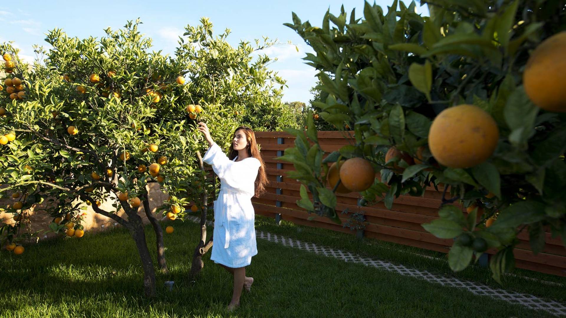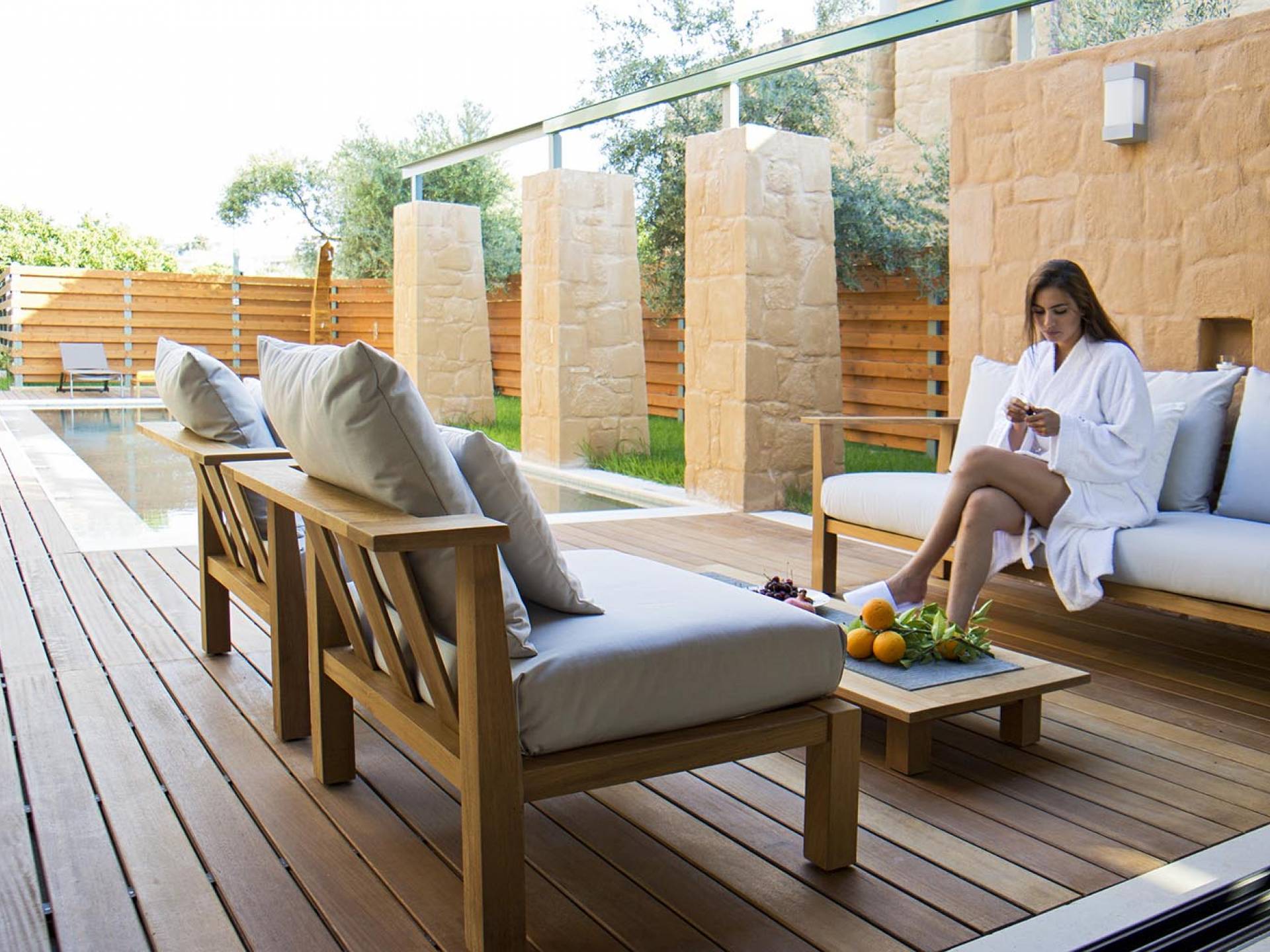 Mandarina Villa Chania with its rich garden, comfortable rooms and atmospheric lounge is a villa with three bedrooms, three bathrooms, two stories that can accommodate 6 guests. With three bathrooms, a private shinning swimming pool and garden full of citrus ready to be picked, walking through Villa Mandarina will leave guests the impression of walking outdoors. The incomparable quality of Villa Mandarina is the emphasis placed on constructing the Villa around the aromatic orange trees, thus bringing the grove within the home. Swim in Mandarina’s Diamond Brilliance pool, as you smell the herbs and pick splendid oranges dotted along the wooden deck. An aromatic and salty experience you have to enjoy.