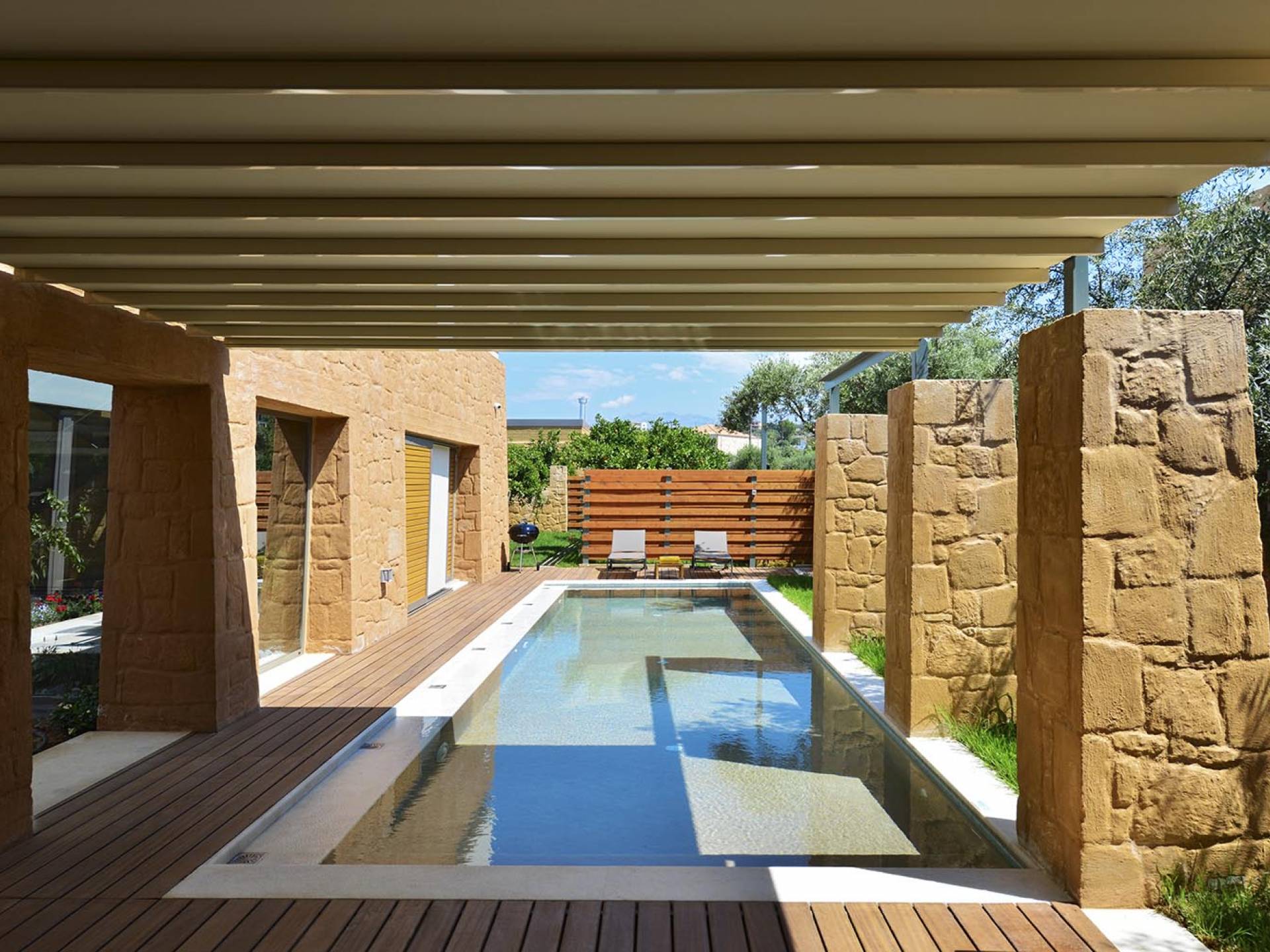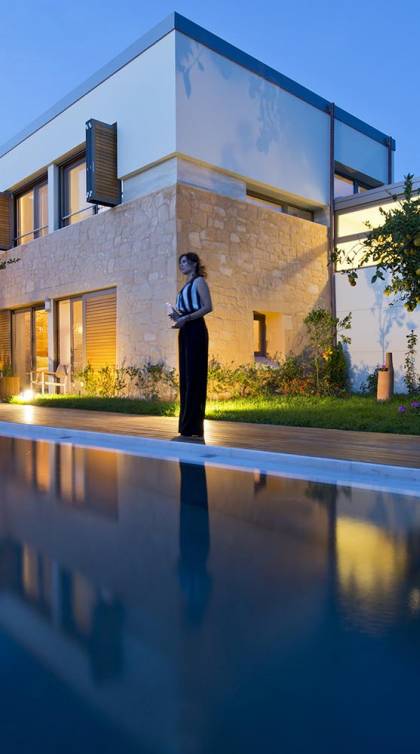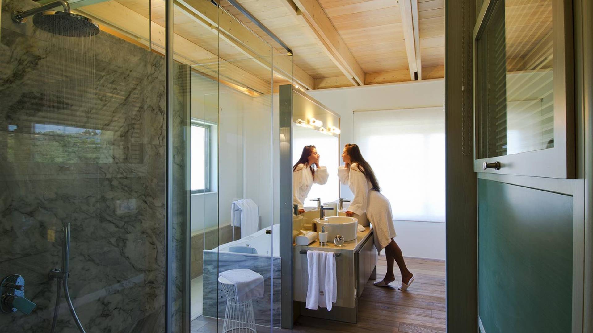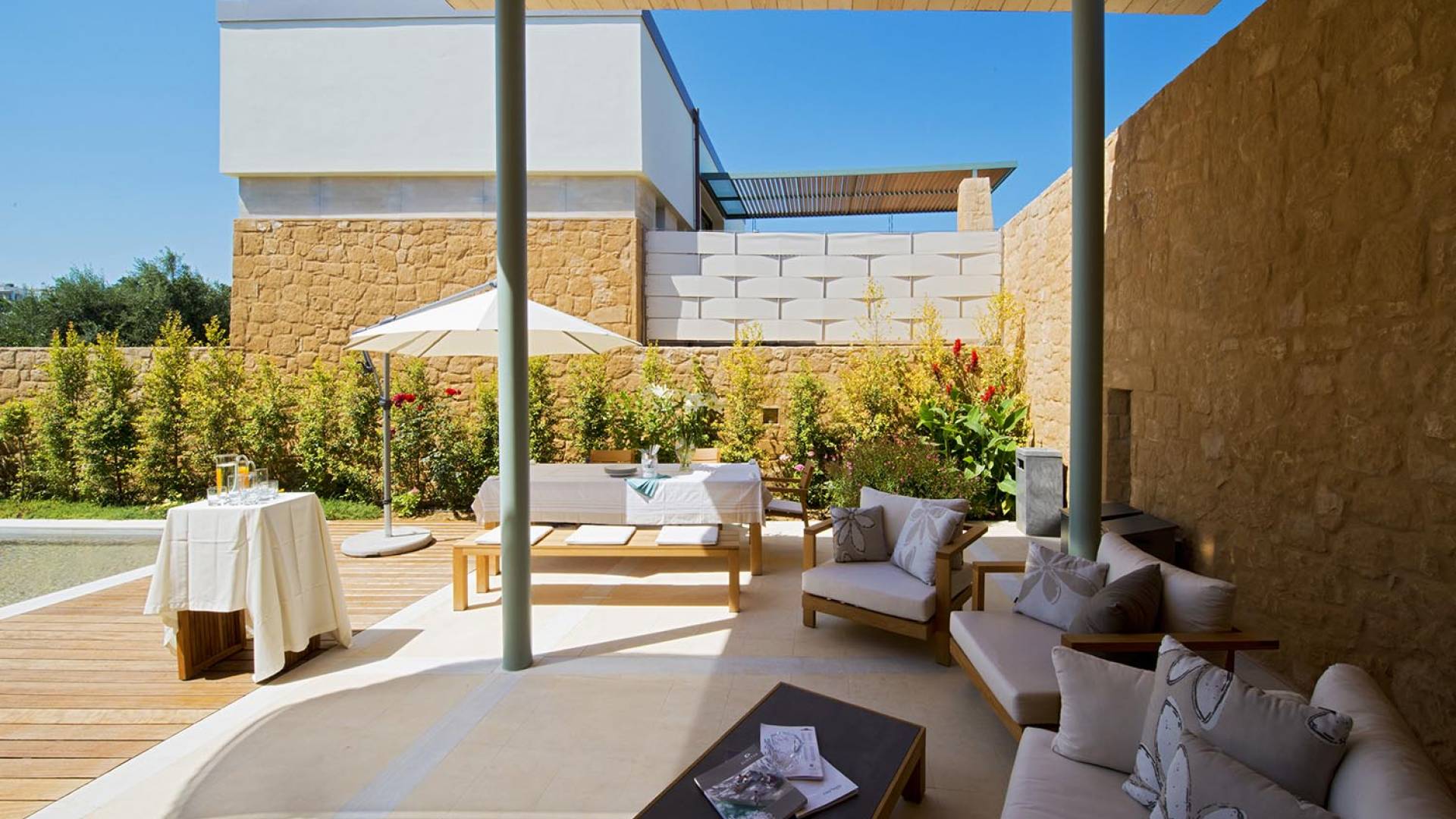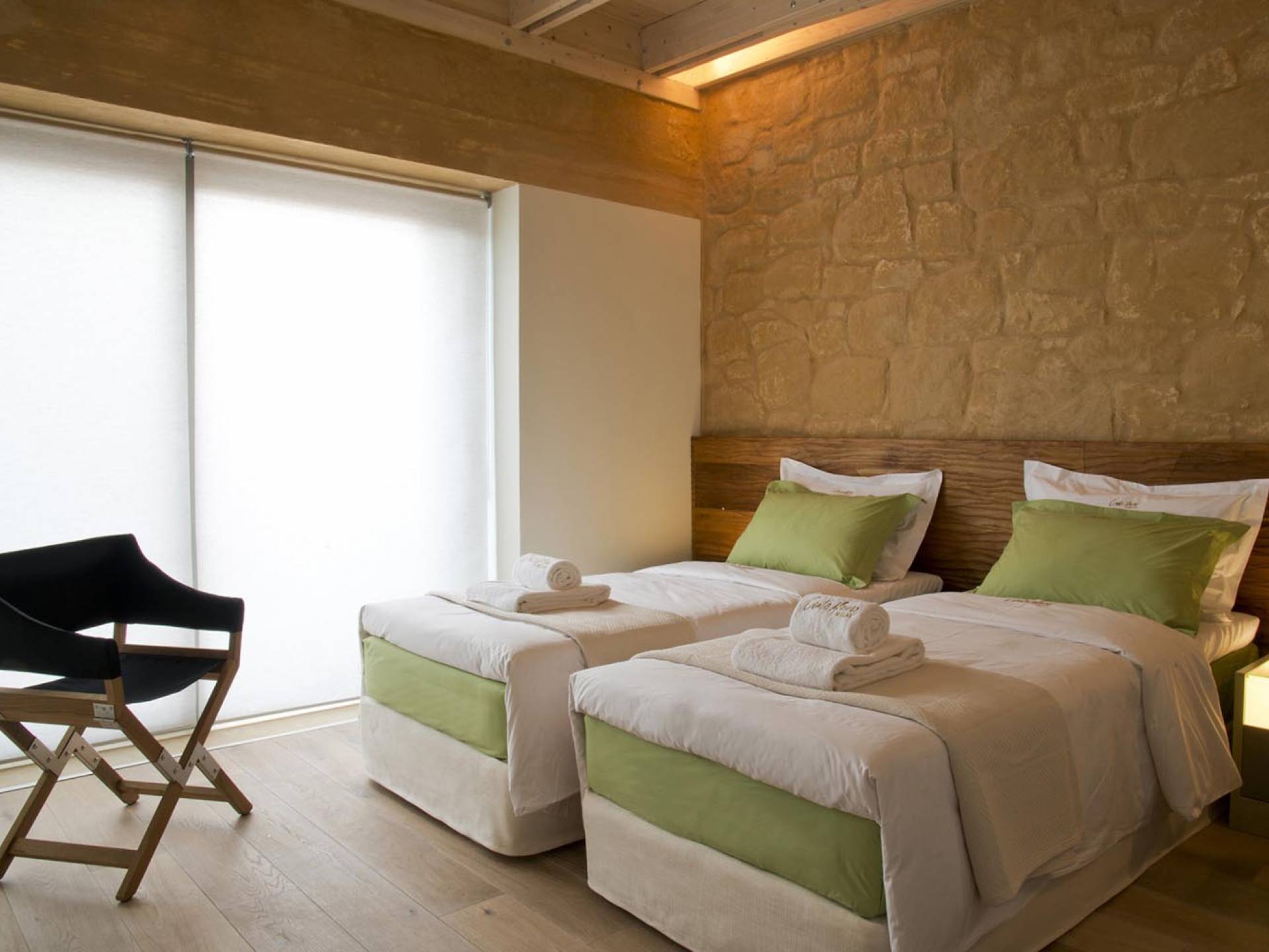 Combining stone, marble, wood, glass, earth and metal to detail, we have invited nature in, so that indoor and outdoor become one co-existing in harmony and peace. Such achievement in design, paired with furnishing’s hand-selected and exclusively designed by interior decorators, luxurious bedding and modern appliances throughout, set Mandarina Villa Chania as the ultimate get-away destination in Crete. Privately surrounded by stone-walled courtyards, the Villa provides a full view of the panoramic Cretan Hills, vast olive and orange groves and the white Cretan Mountains. Reflective of this view, the Villa is built transparently with rich stone and flooded with natural light creating a peaceful ambience within.