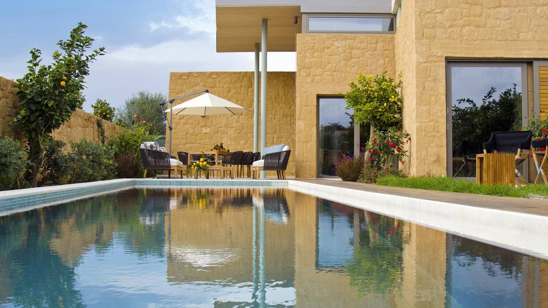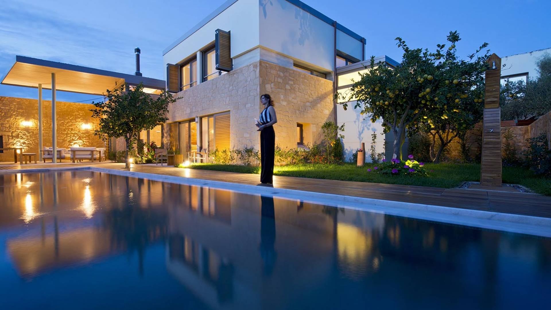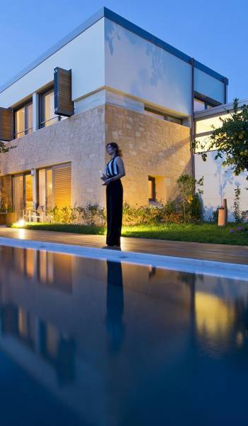 Conte Marino Villas Crete is 3 luxury villa rentals with 9 bedrooms and a private pool. Conte Marino Villas in Chania, West Crete, is built in the traditional Cretan architectural style of combining modernity with earthy outdoor elements welcoming the outdoors in. Hand-selected luxurious furnishings with thought-through interior design set Conte Marino apart as the ultimate get-away destination in Crete. Privately surrounded by stone-walled courtyards overlooking the panoramic Cretan hills, vast groves and breathtaking white Cretan Mountains, the Villas offer privacy and tranquillity. Ideal for families, couples, or business travellers with escape in mind.