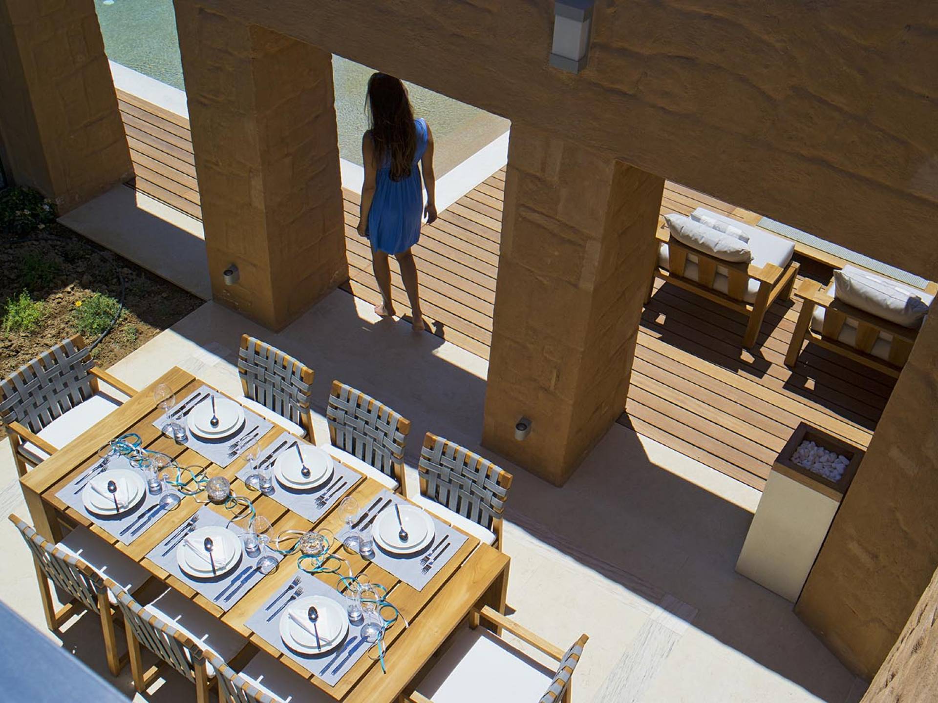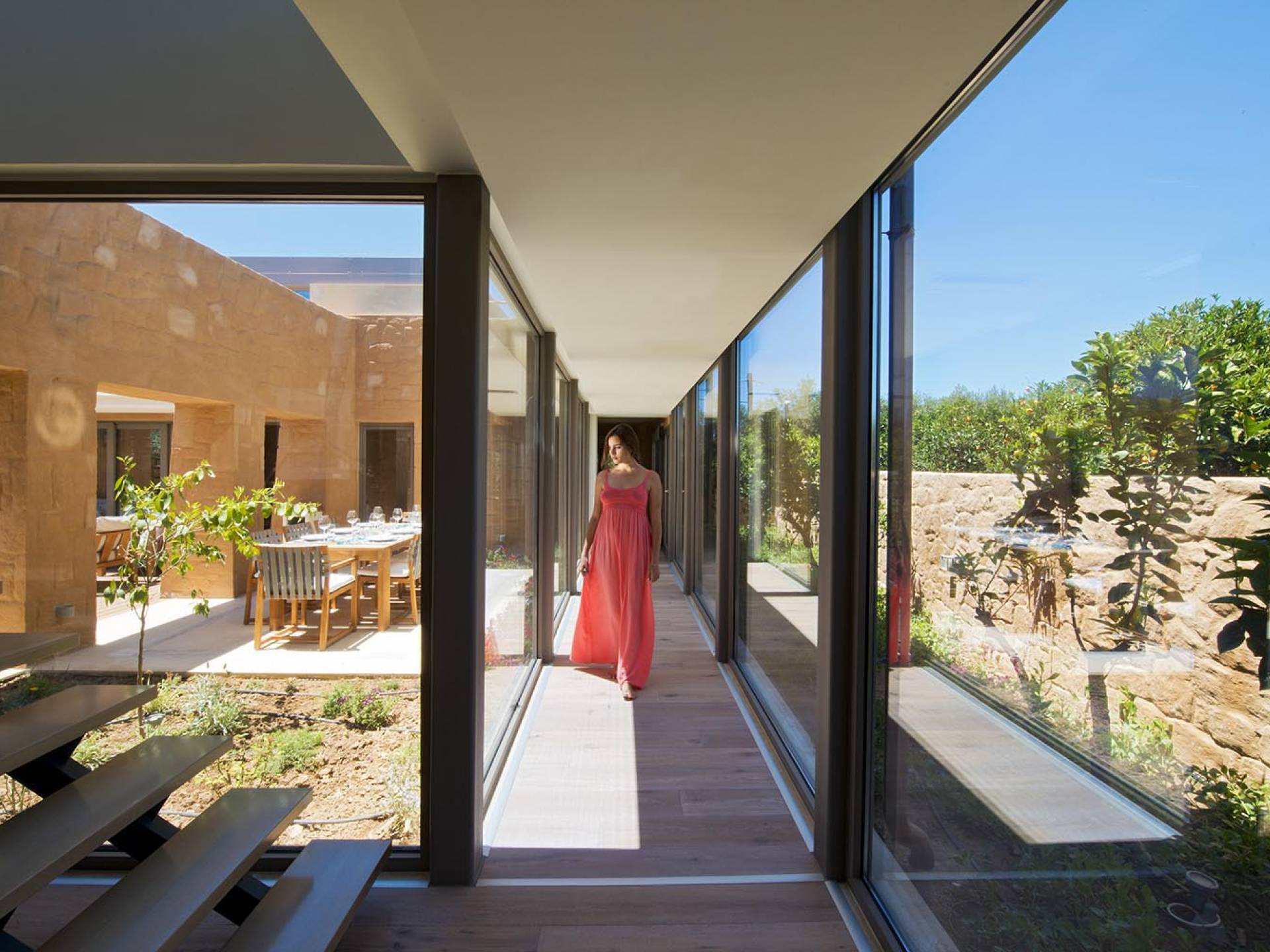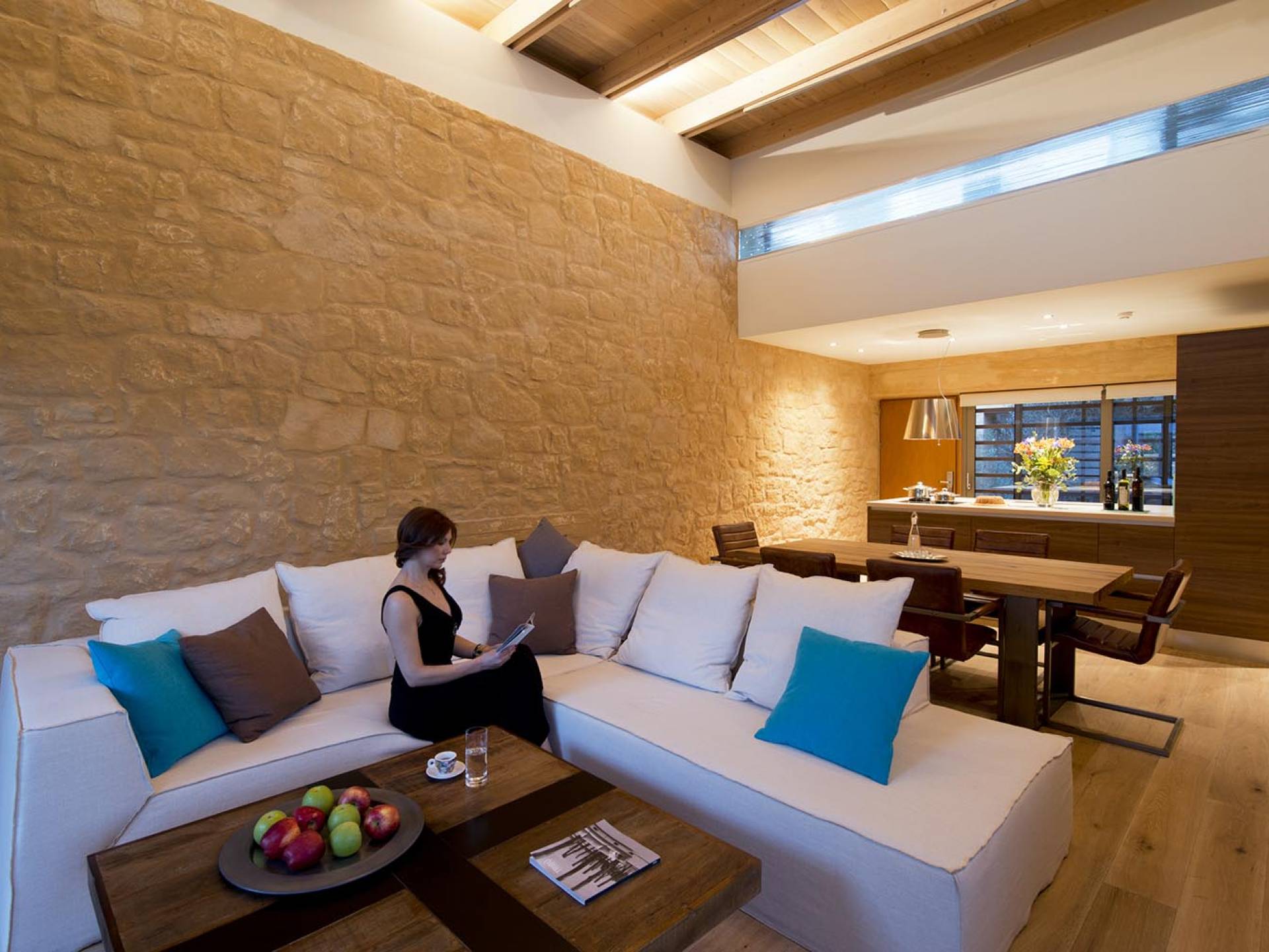 Such achievement in design, paired with furnishing’s hand-selected and exclusively designed by interior decorators, luxurious bedding and modern appliances throughout, set Orangia Villa as the ultimate get-away destination in Crete. Privately surrounded by stone-walled courtyards, the Villa provides full view to the panoramic Cretan Hills, vast olive and orange groves and the white Cretan Mountains. Reflective of this view, the Villa is built transparently with rich stone and flooded with natural light creating a peaceful ambience within.