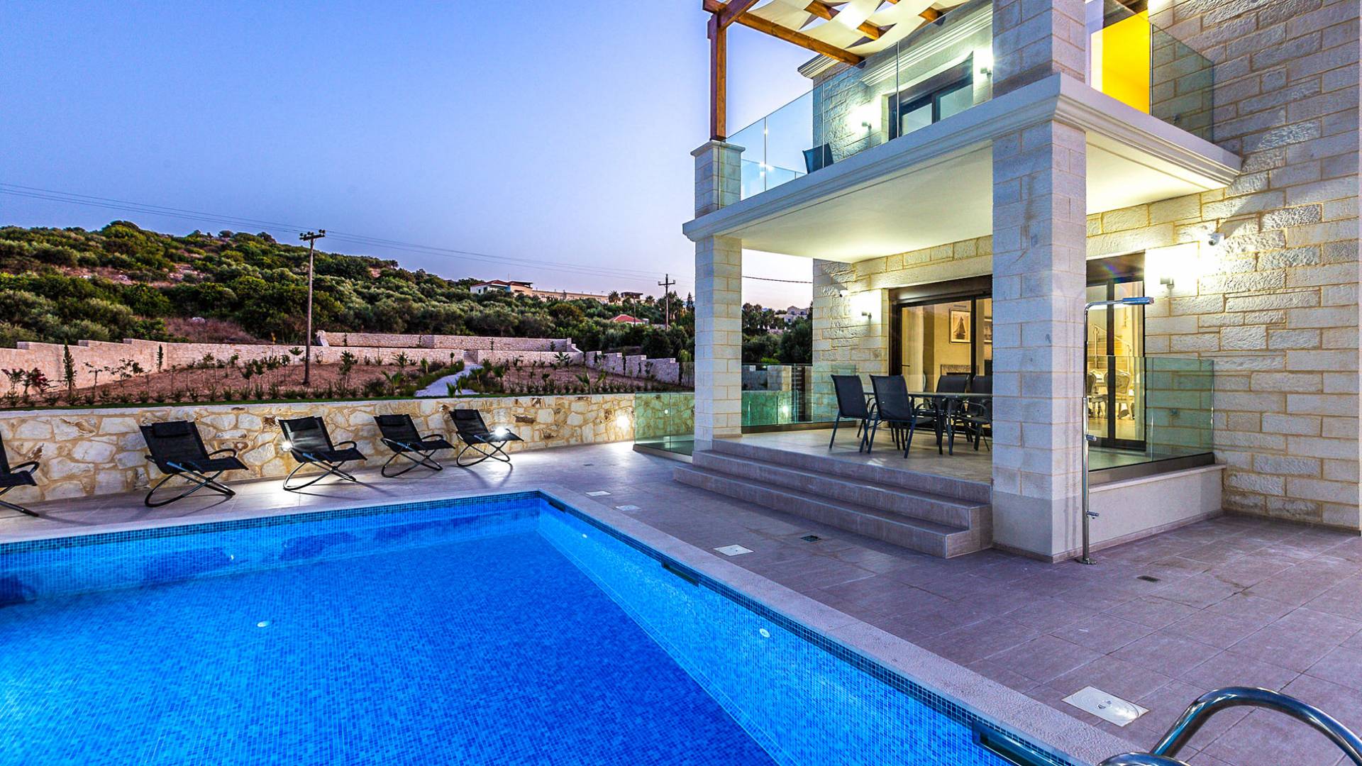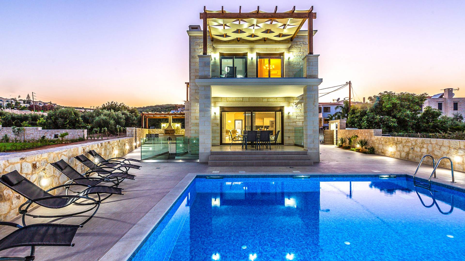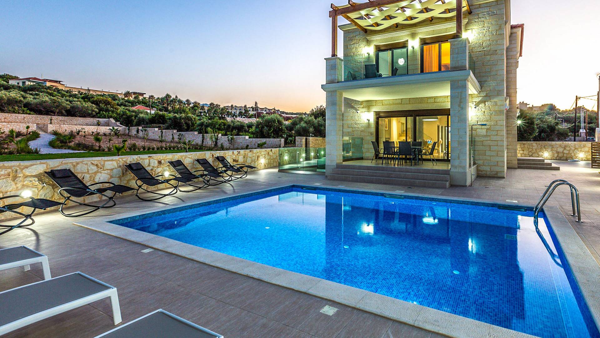 Eudora Villa Chania is located in the center of the Almirida village, just 300 meters from the popular sandy beach. Classic elements that perfectly match with the luxury and grace of white and beige stone, and a good location make this villa a successful and profitable investment!