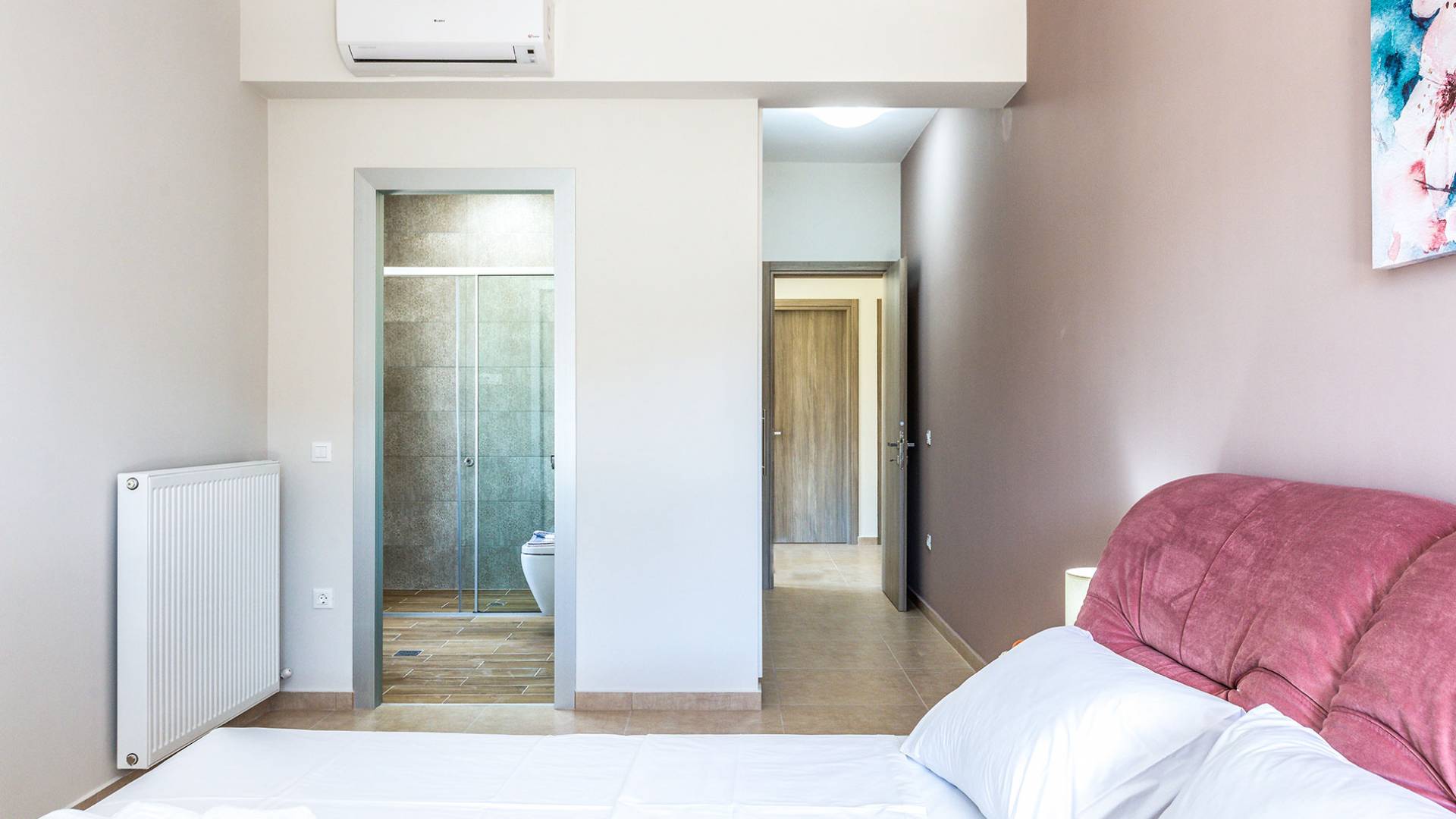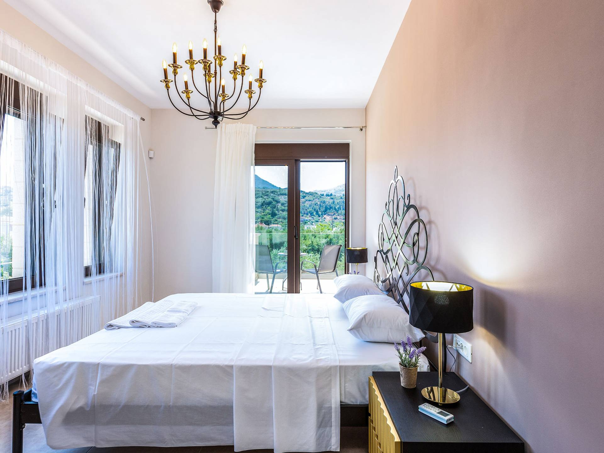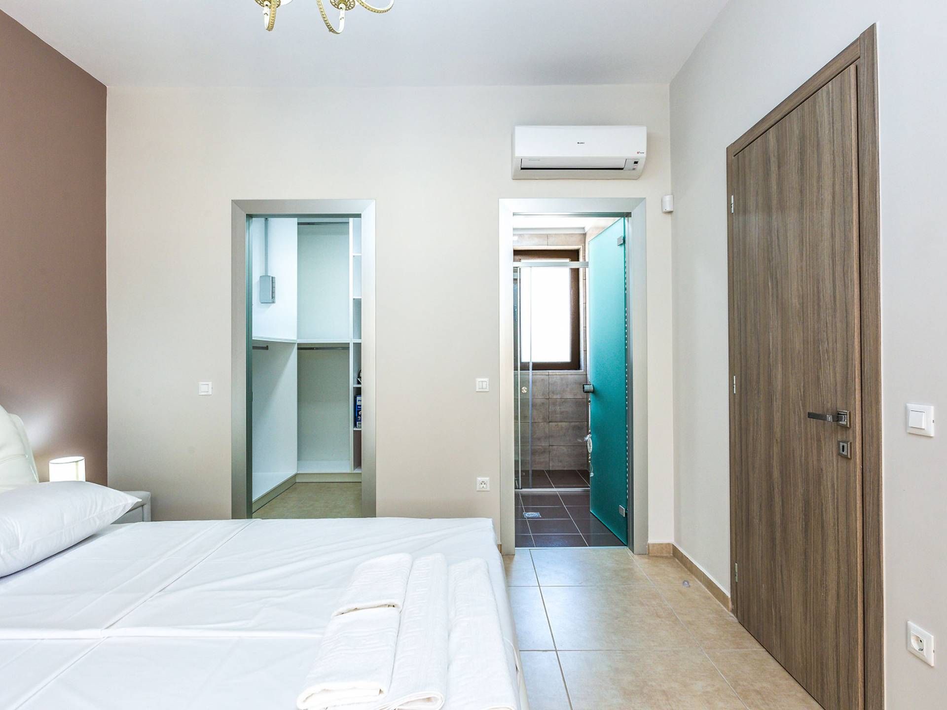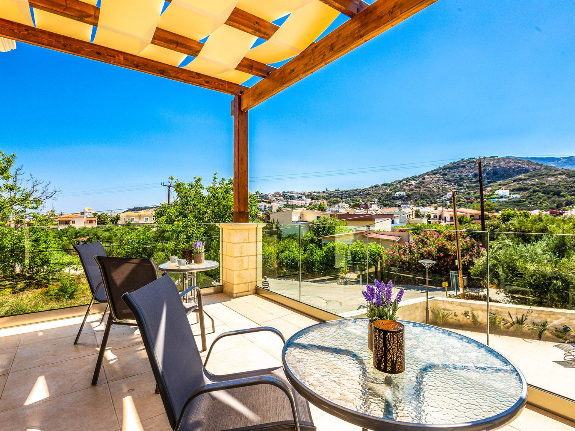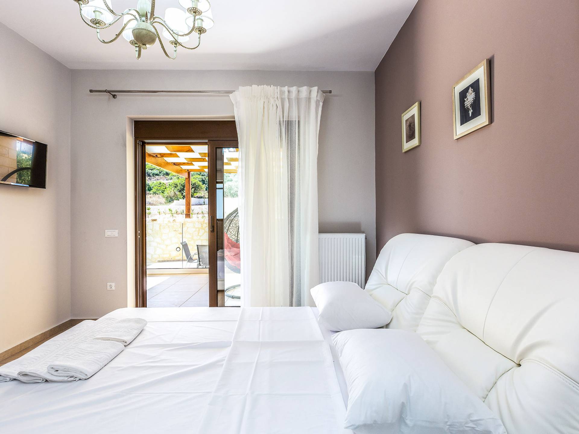 Eudora Villa Chania is built on a plot of 3.300 sqm. and the building area is 256 sqm. On the ground floor of Eudora Villa Chania, there is a spacious open-plan living room, dining room and open-plan kitchen, guest bathroom, and a storage room. There is also one bedroom with a bathroom. The living room and bedroom have access to a spacious sunny terrace. The second floor includes four bedrooms with a bathroom in each one. Every bedroom has wardrobes. Three of the bedrooms open into a balcony with the sea and mountains views. The private swimming pool is 38 sqm. with a barbeque area, wooden pergola and oven, and well-kept garden are located in a beautiful patio. The plot is surrounded by a stone wall for more privacy.