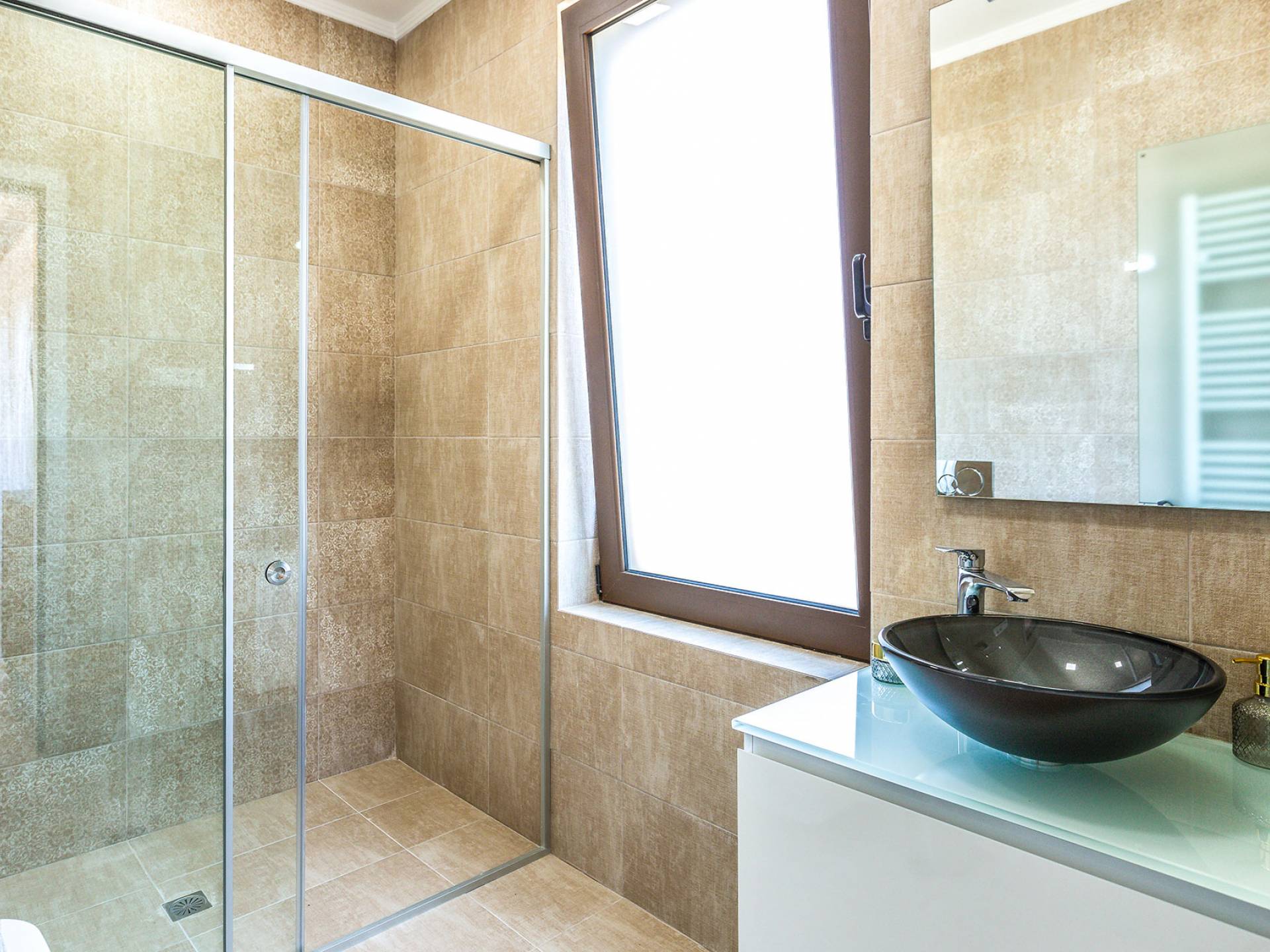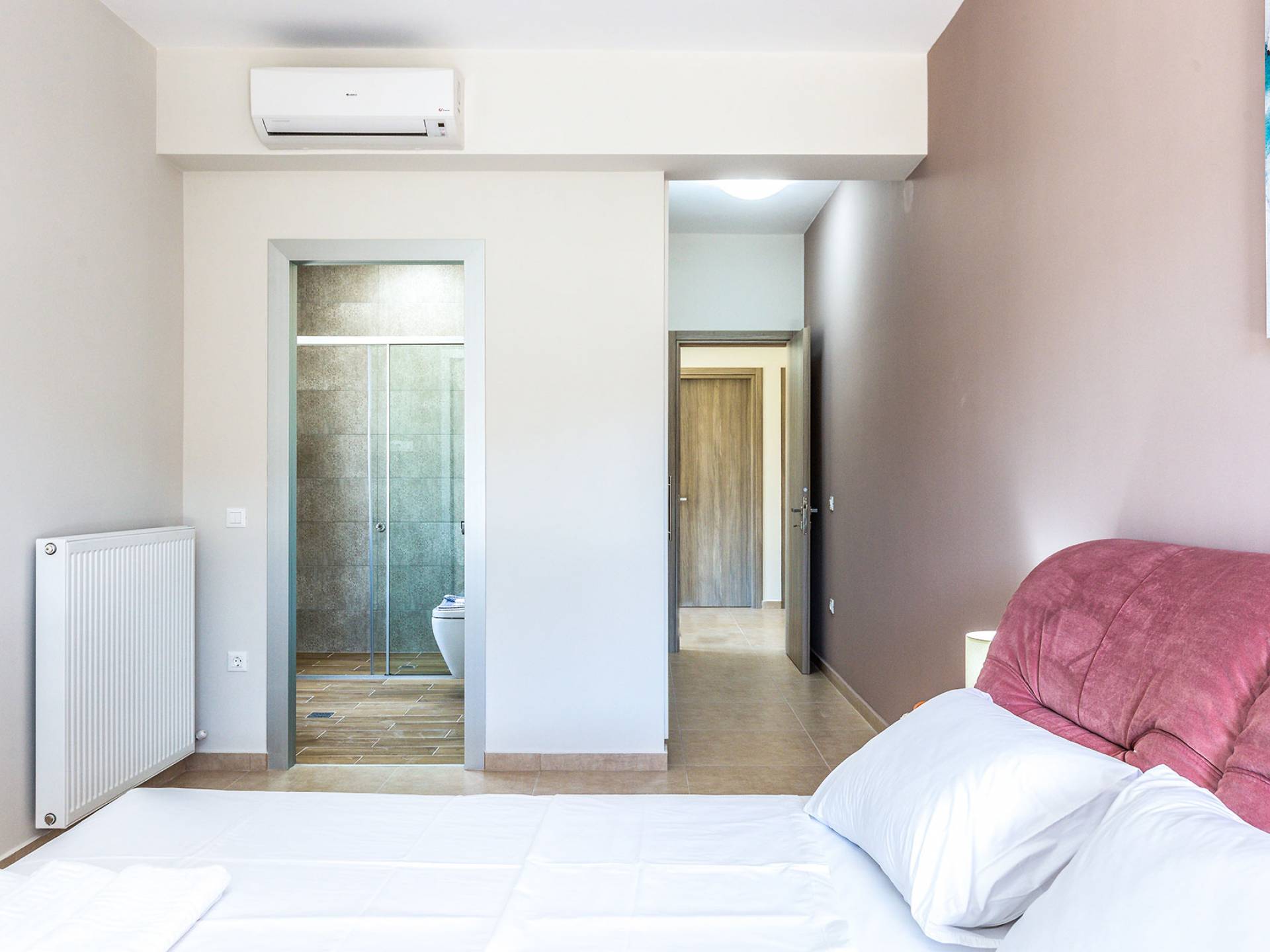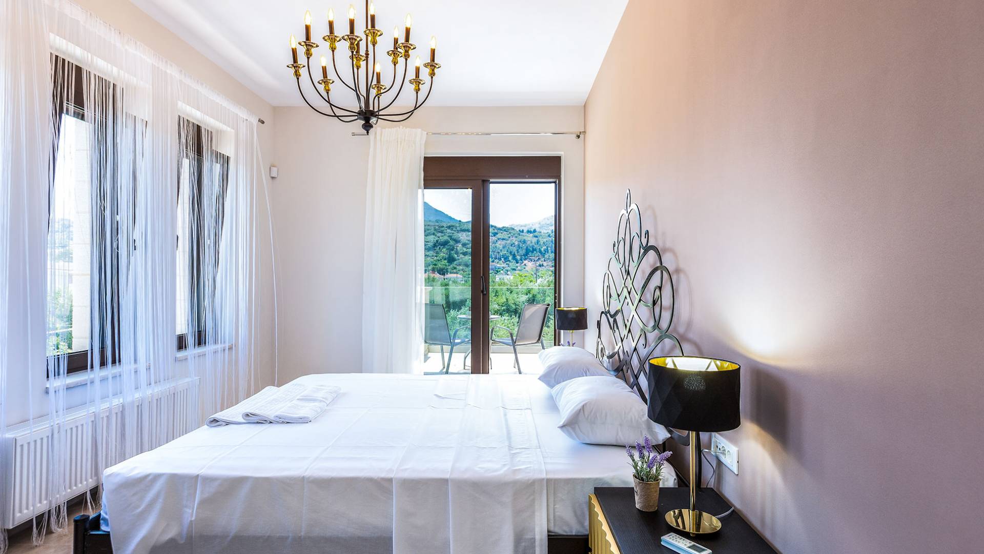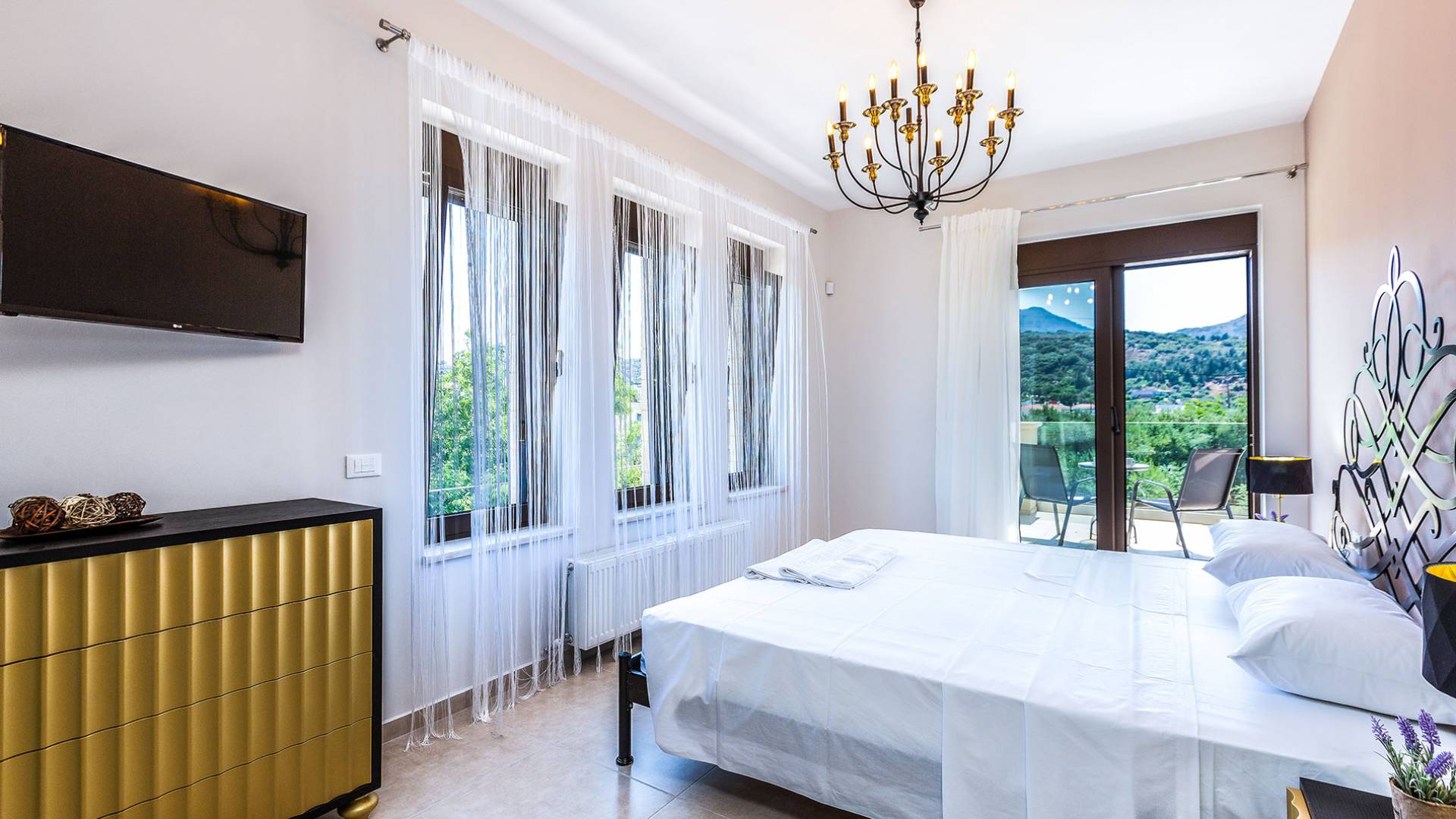 Eudora Villa Chania is built on a plot of 3.300 sqm. and the building area is 256 sqm. On the ground floor of Eudora Villa Chania, there is a spacious open-plan living room, dining room and open-plan kitchen, guest bathroom, and a storage room. There is also one bedroom with a bathroom. The living room and bedroom have access to a spacious sunny terrace. The second floor includes four bedrooms with a bathroom in each one. Every bedroom has wardrobes. Three of the bedrooms open into a balcony with the sea and mountains views. The private swimming pool is 38 sqm. with a barbeque area, wooden pergola and oven, and well-kept garden are located in a beautiful patio. The plot is surrounded by a stone wall for more privacy.