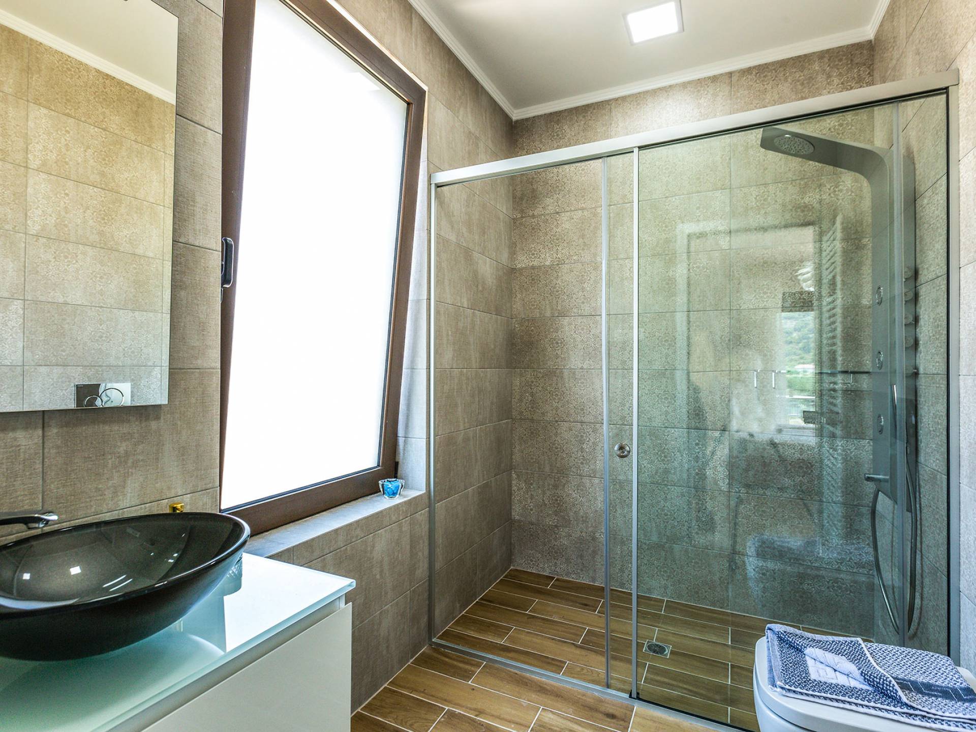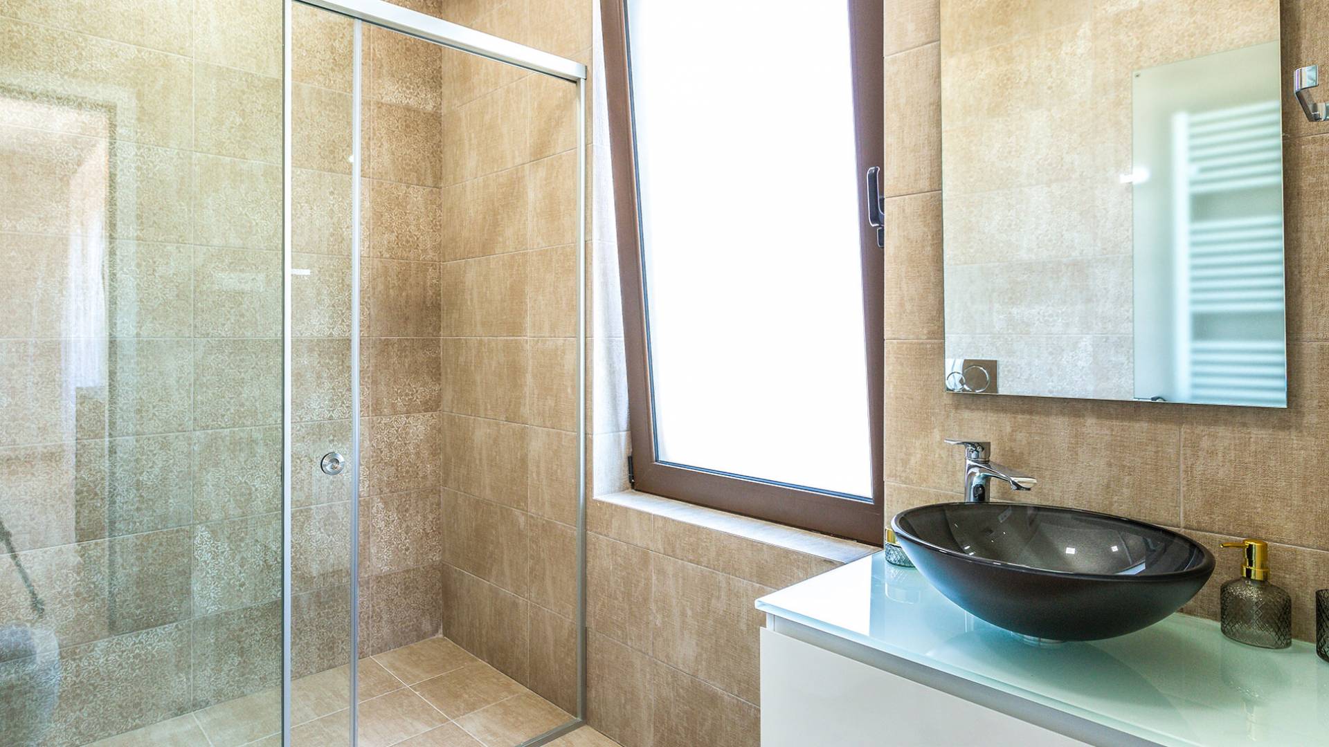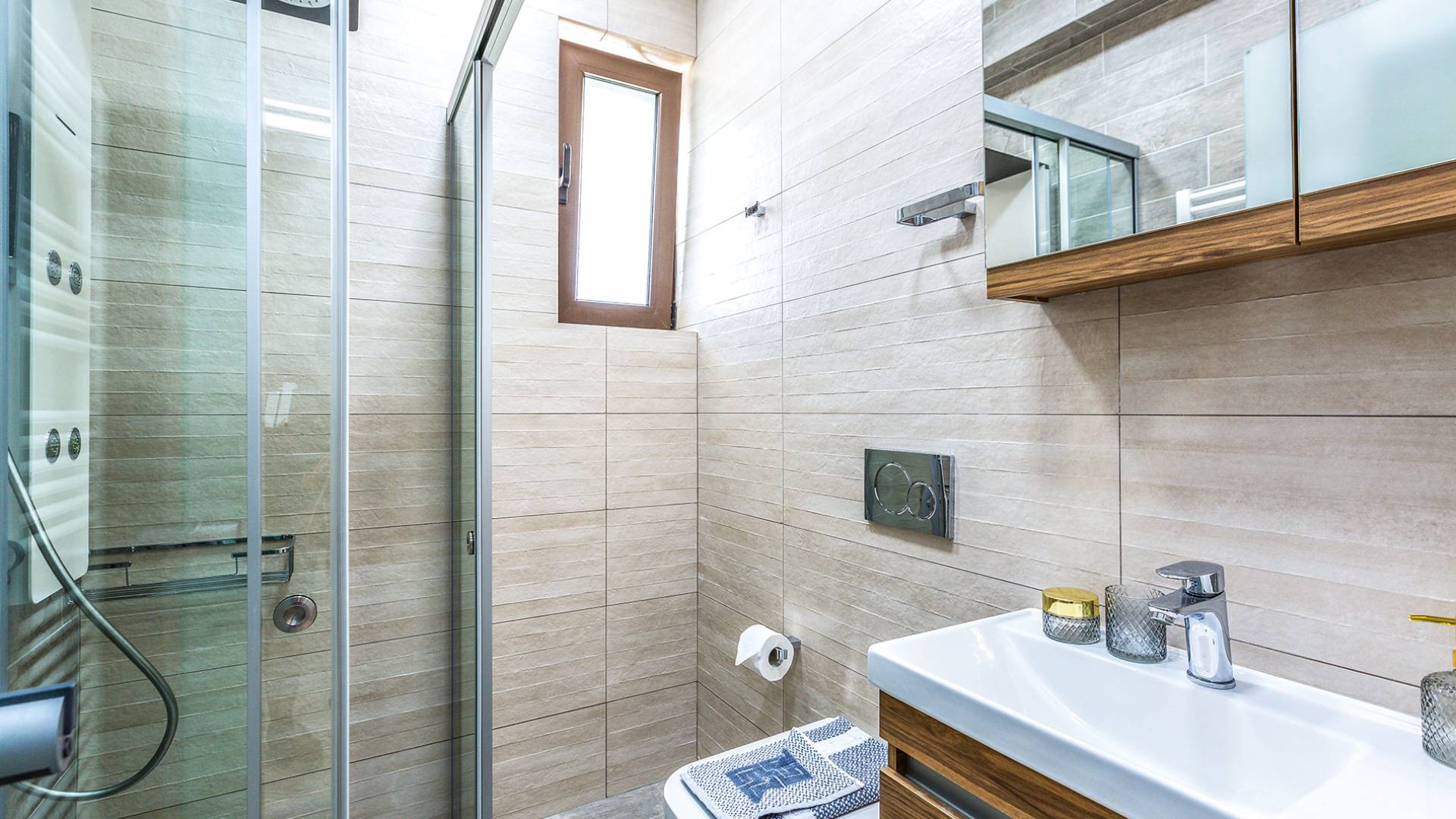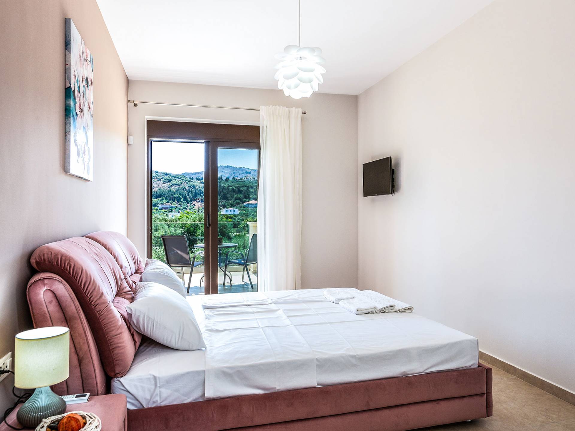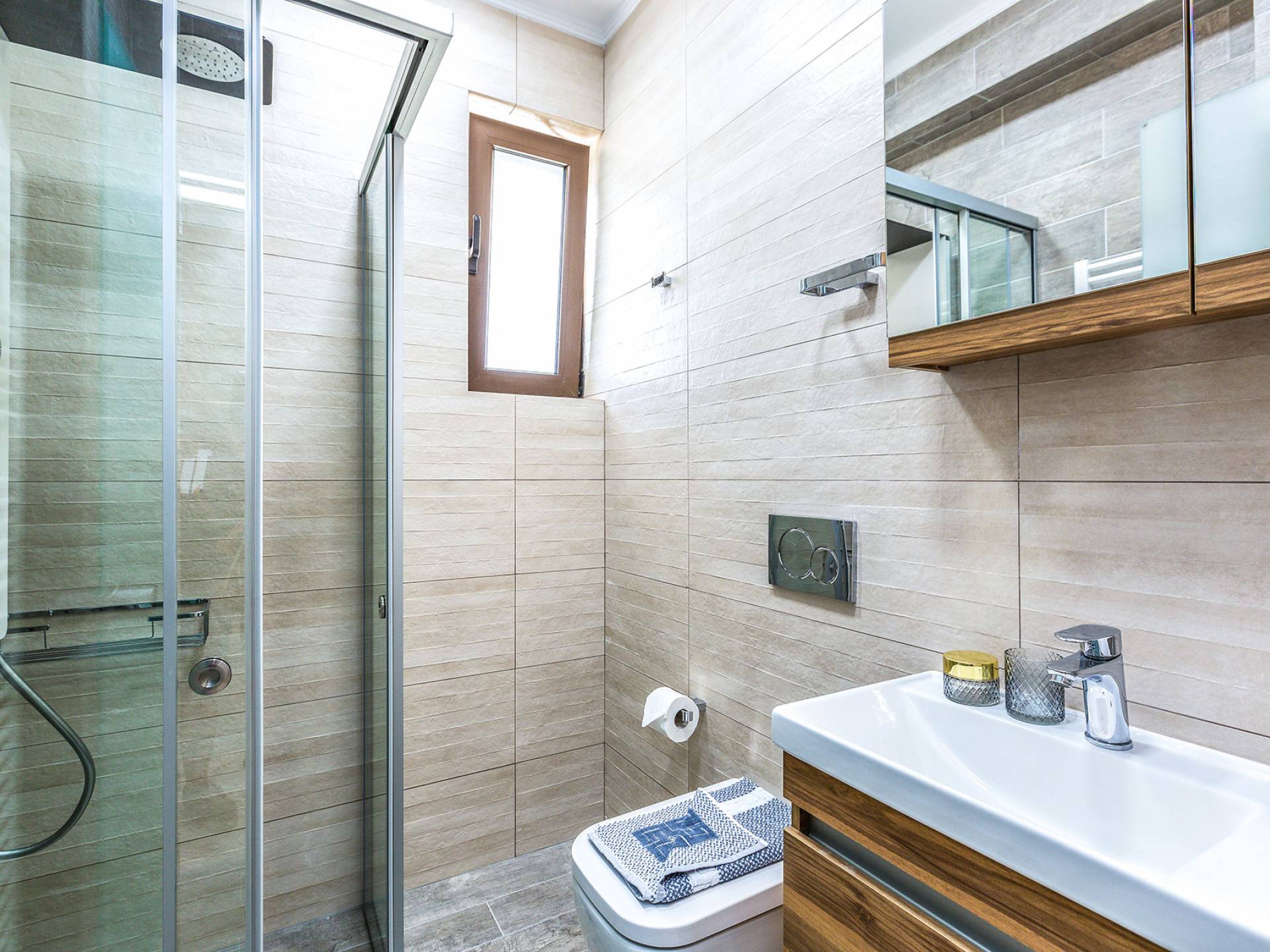 Eudora Villa Chania is built on a plot of 3.300 sqm. and the building area is 256 sqm. On the ground floor of Eudora Villa Chania, there is a spacious open-plan living room, dining room and open-plan kitchen, guest bathroom, and a storage room. There is also one bedroom with a bathroom. The living room and bedroom have access to a spacious sunny terrace. The second floor includes four bedrooms with a bathroom in each one. Every bedroom has wardrobes. Three of the bedrooms open into a balcony with the sea and mountains views. The private swimming pool is 38 sqm. with a barbeque area, wooden pergola and oven, and well-kept garden are located in a beautiful patio. The plot is surrounded by a stone wall for more privacy.