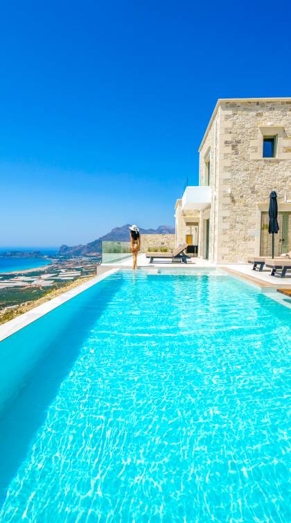 Luminia Villa Chania is perched on a peaceful hillside with sweeping Aegean views, just minutes from one of Greece’s most spectacular beaches.