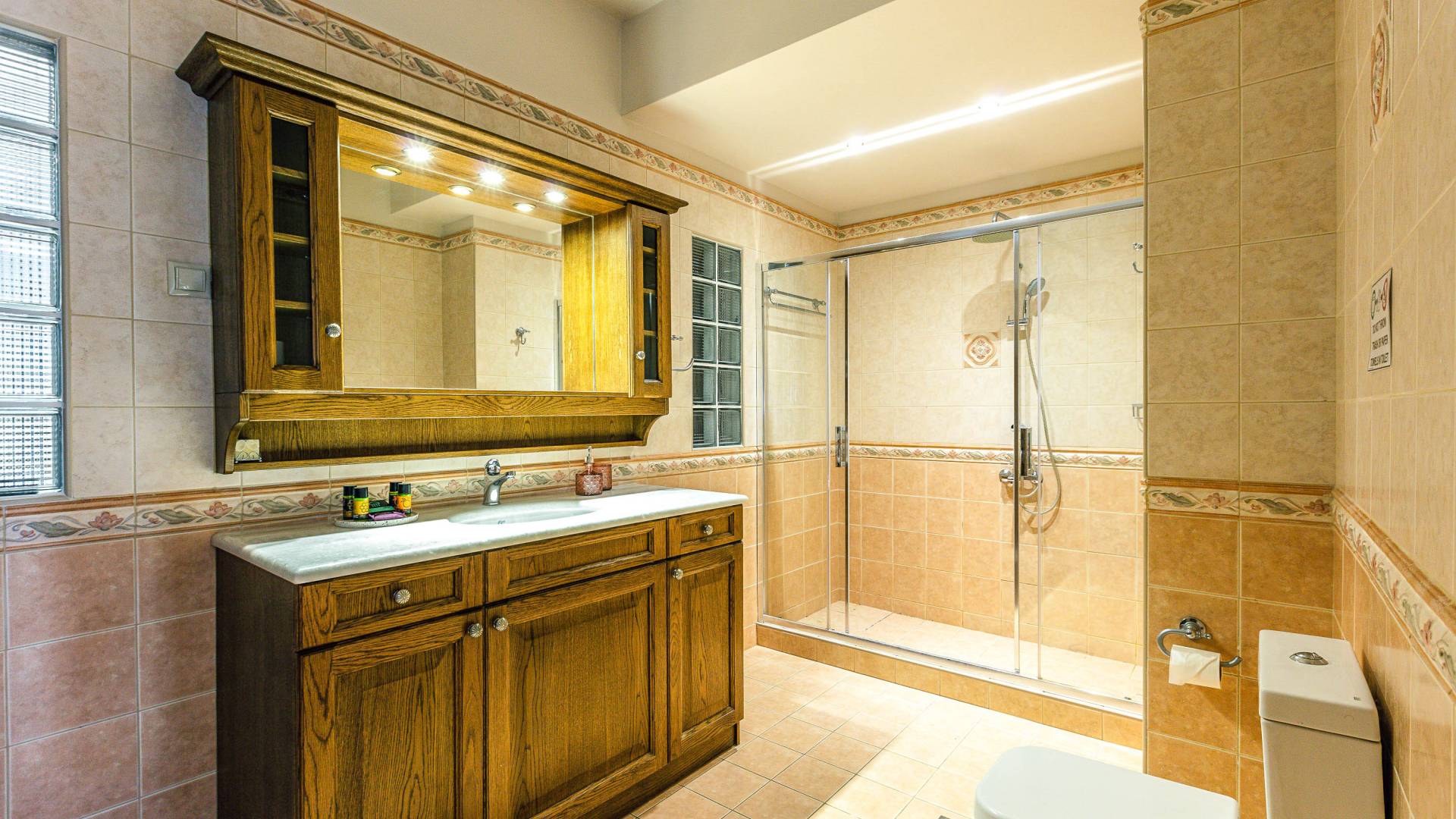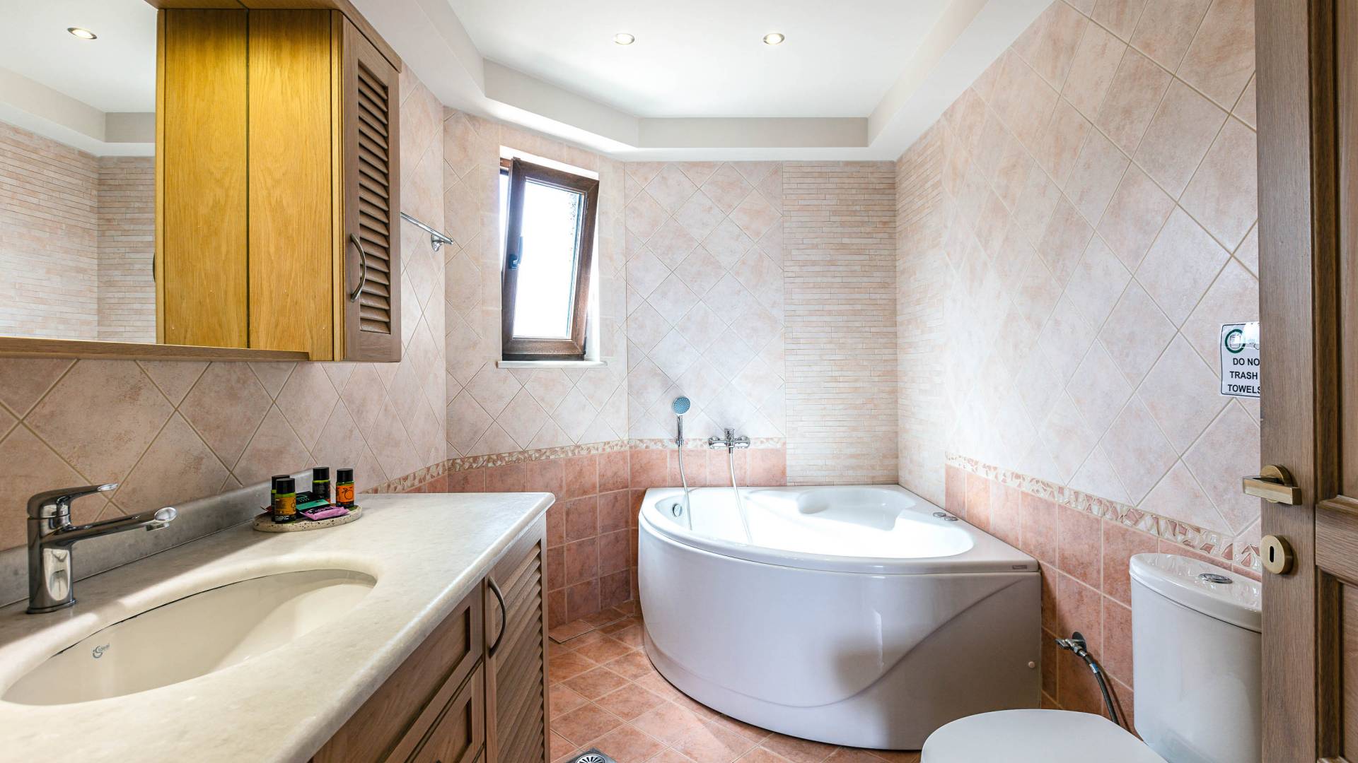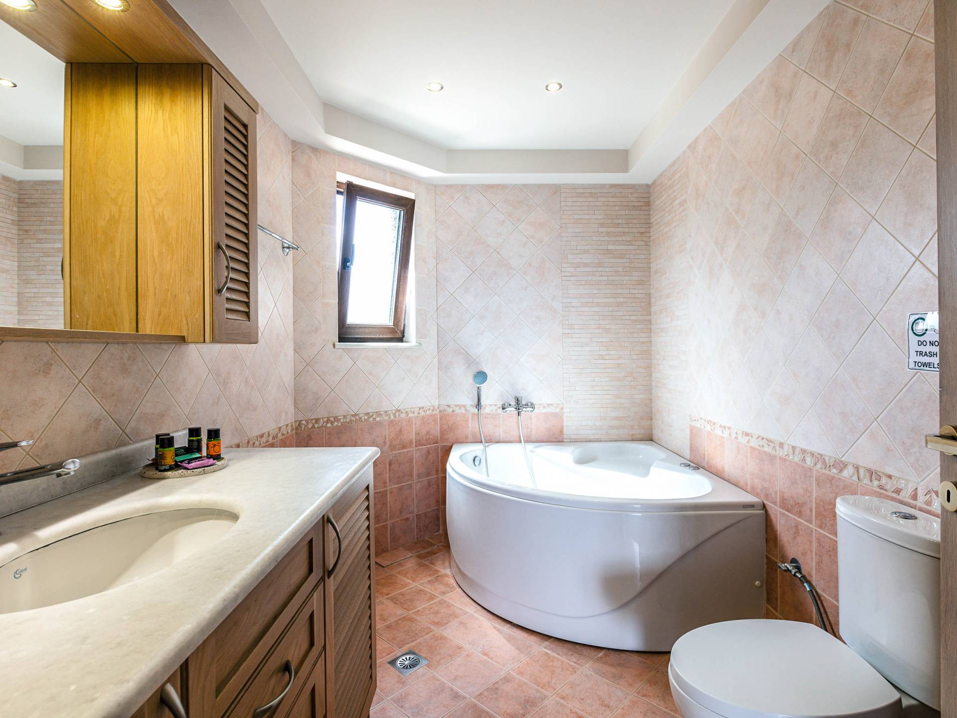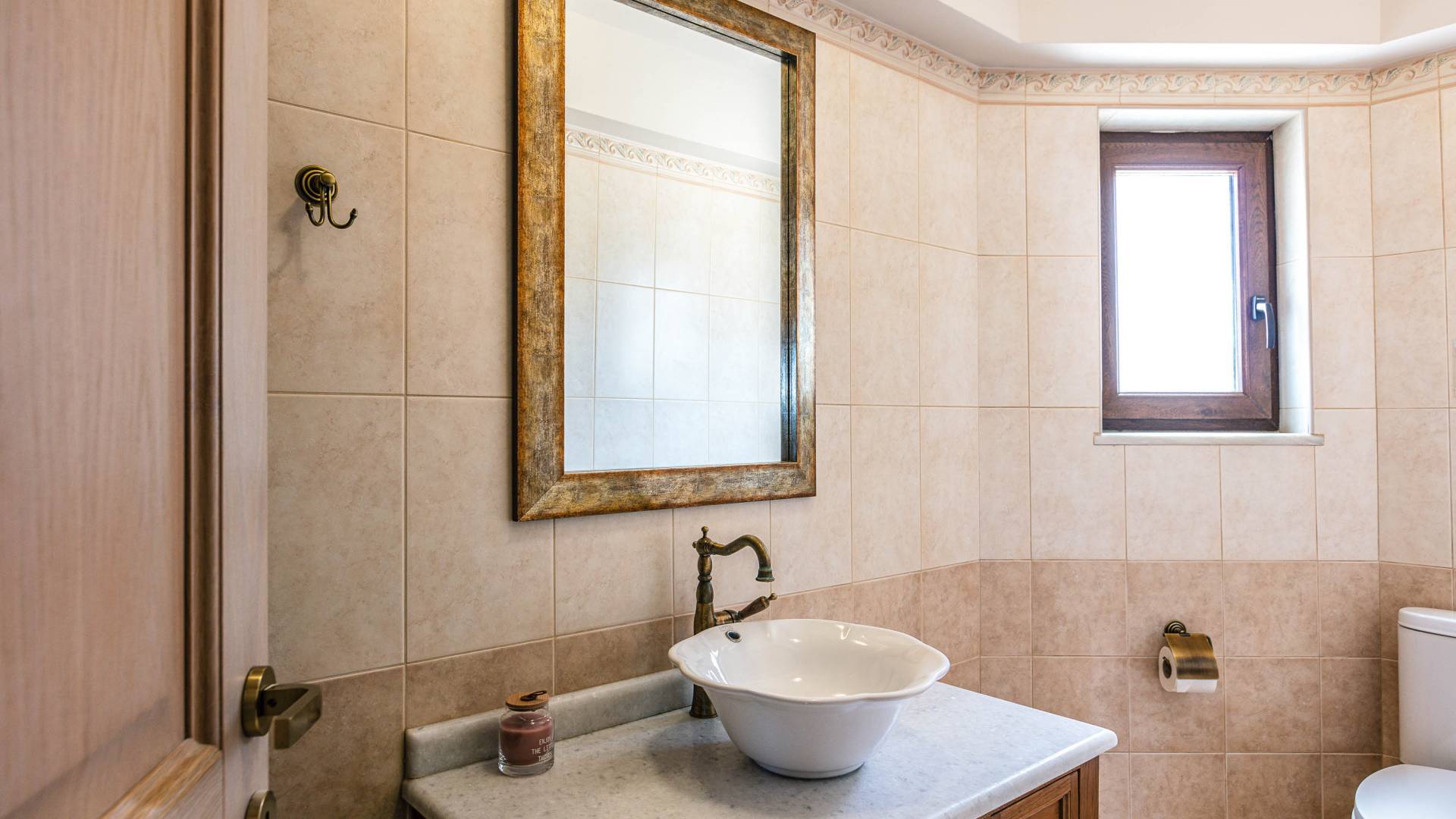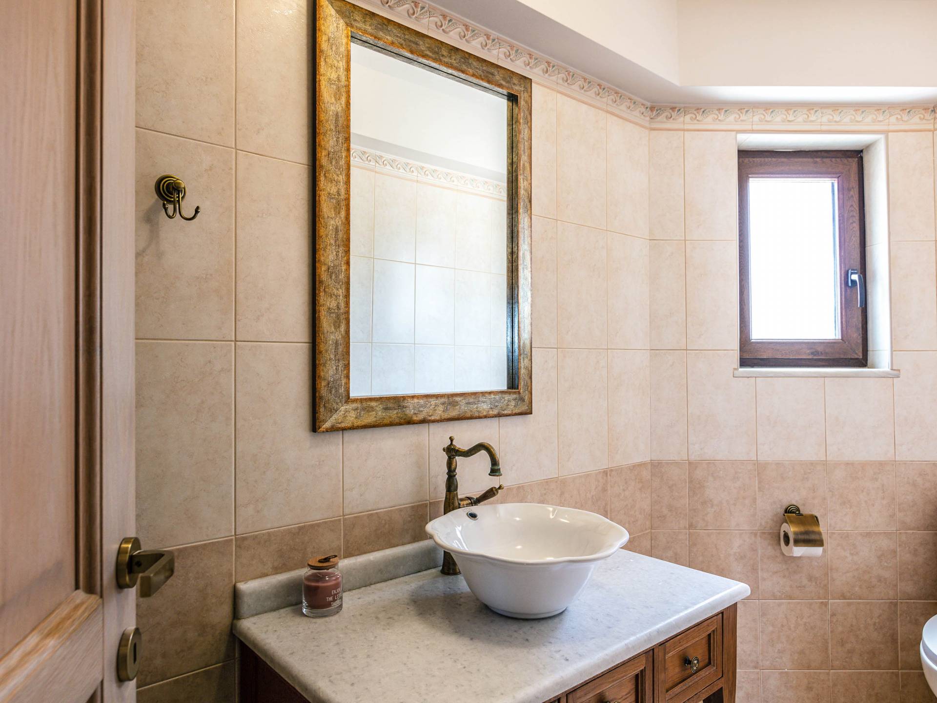 Reaching the first floor there are three bedrooms, two with a double bed and the other with two single beds. One of the double bedrooms has an en-suite bathroom with a shower. There is also the main bathroom with a Jacuzzi on the same floor. Amazing sea views can be given from all the bedrooms on the first floor.