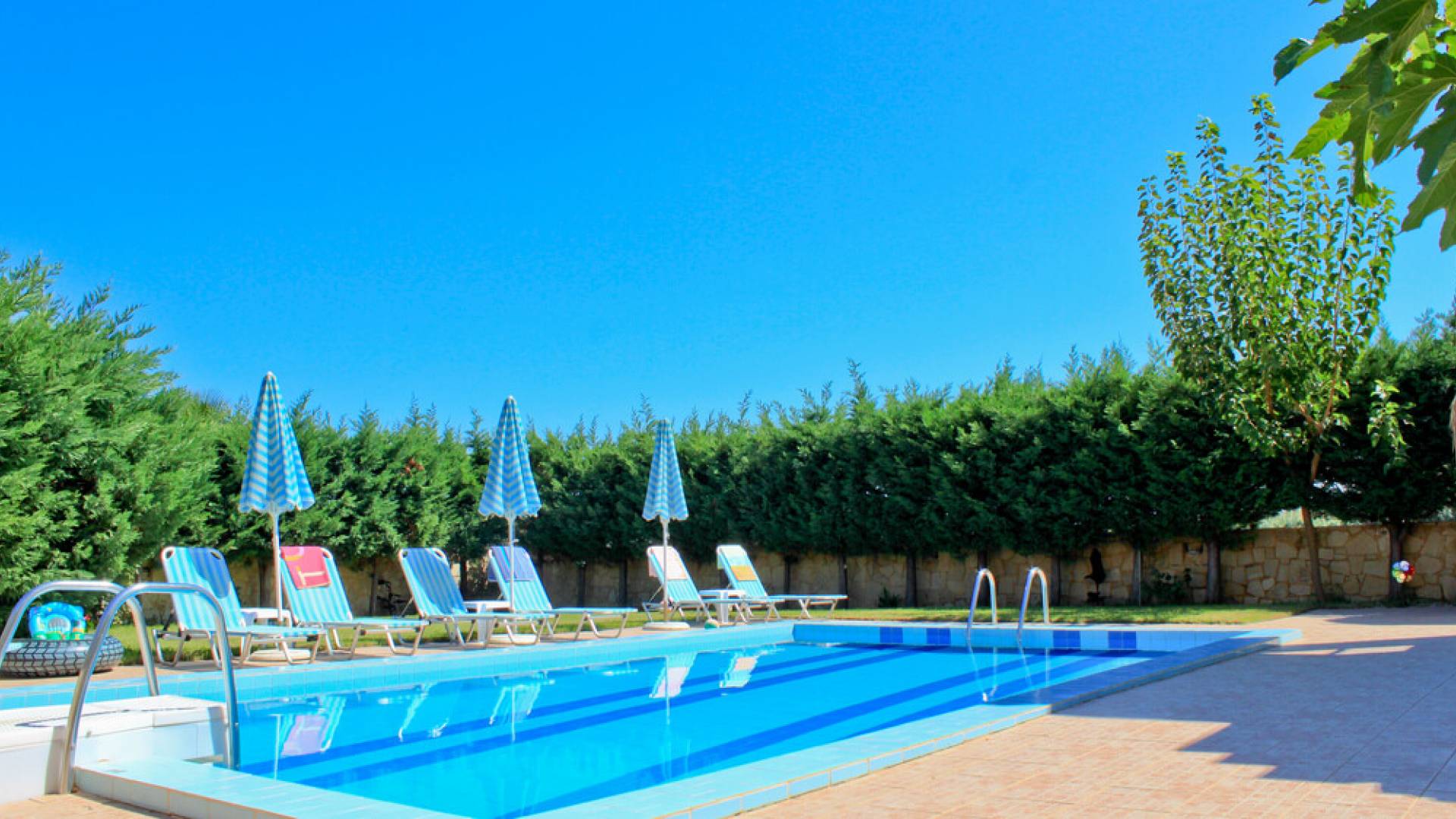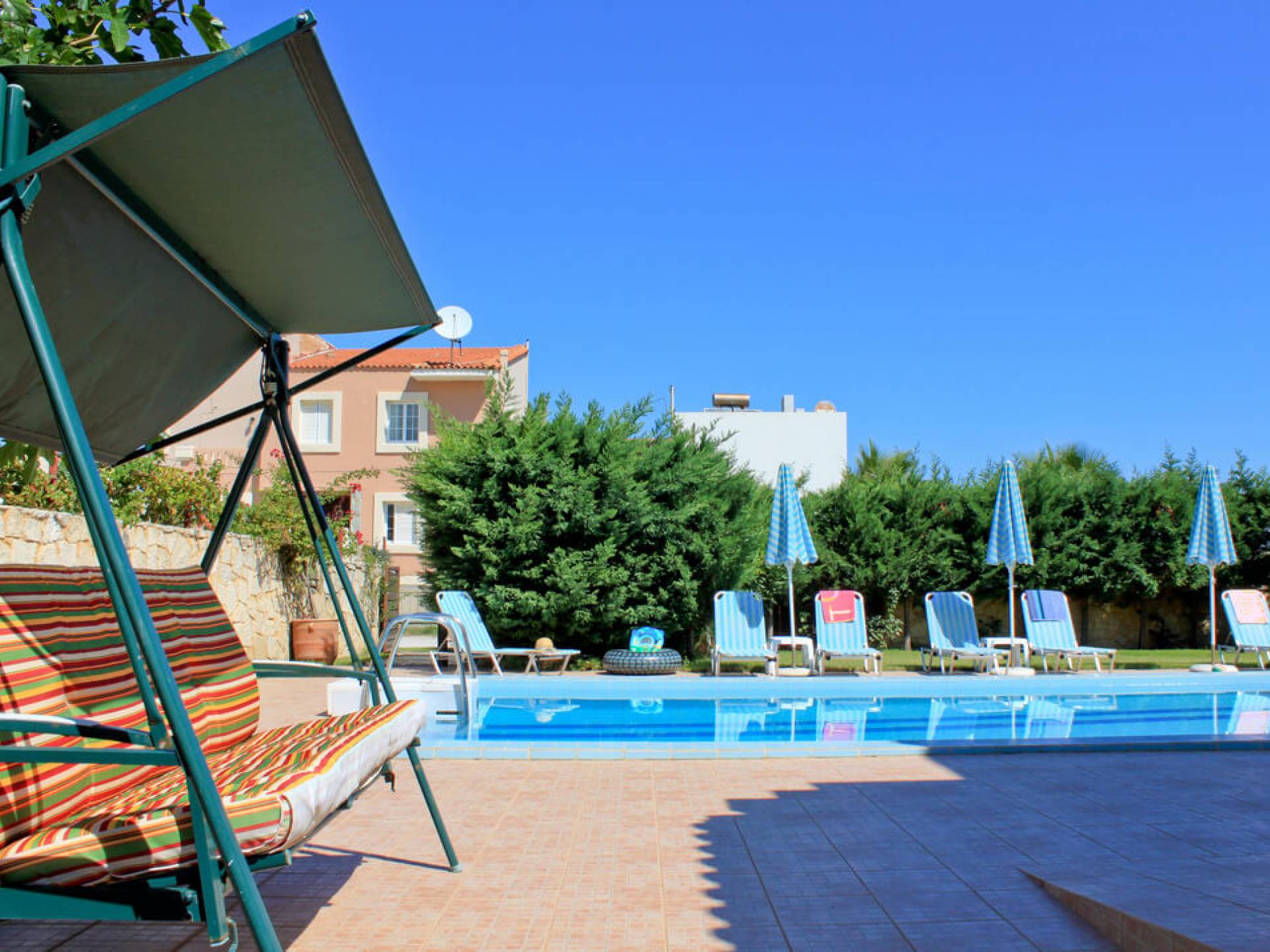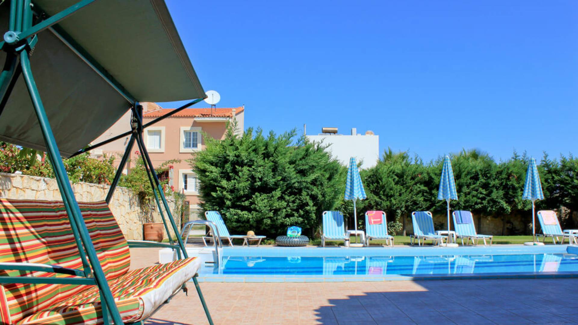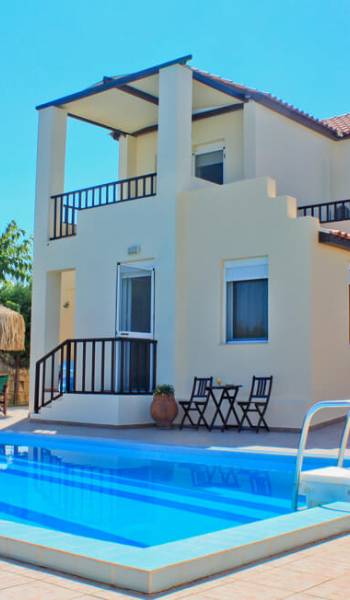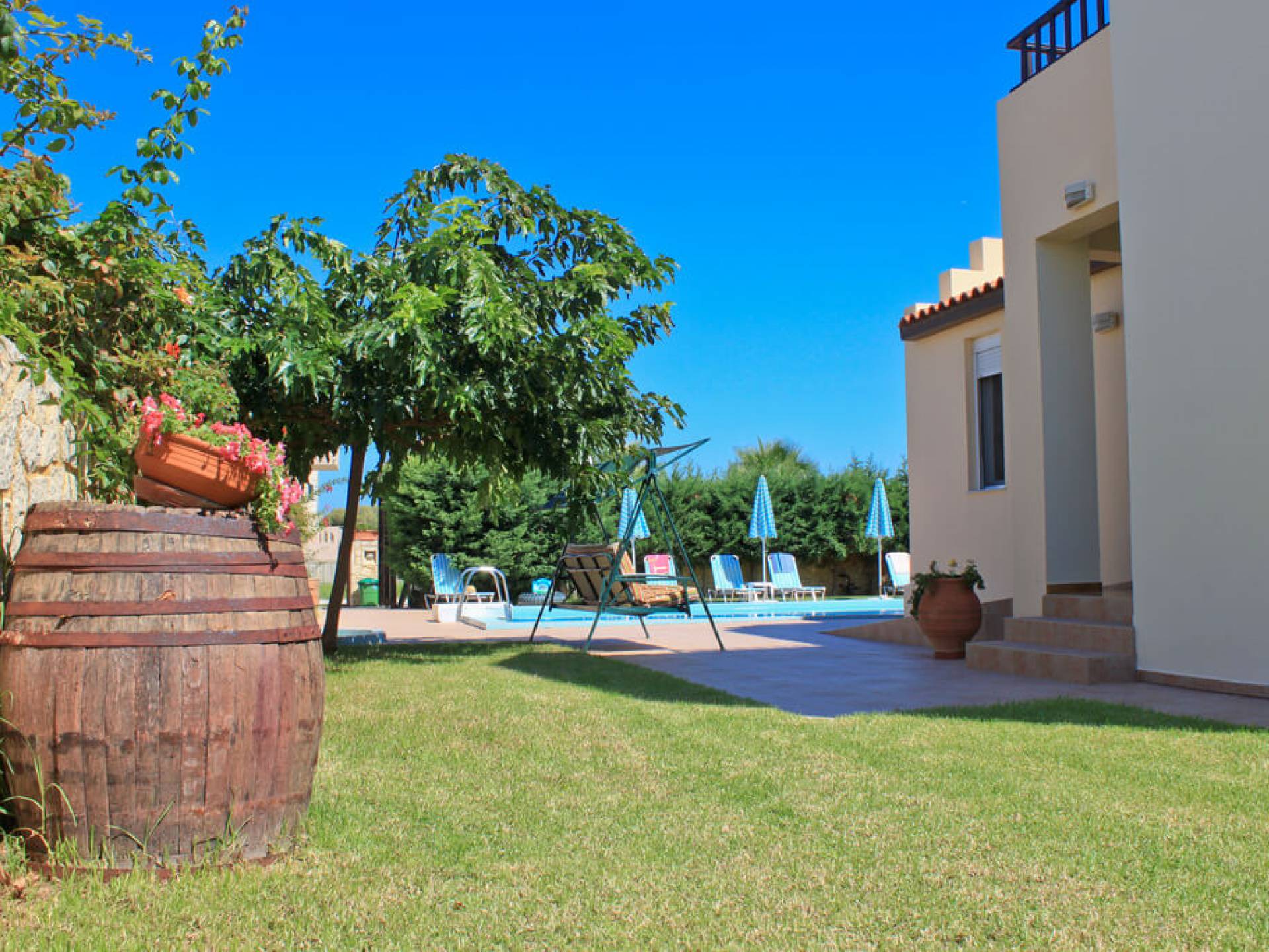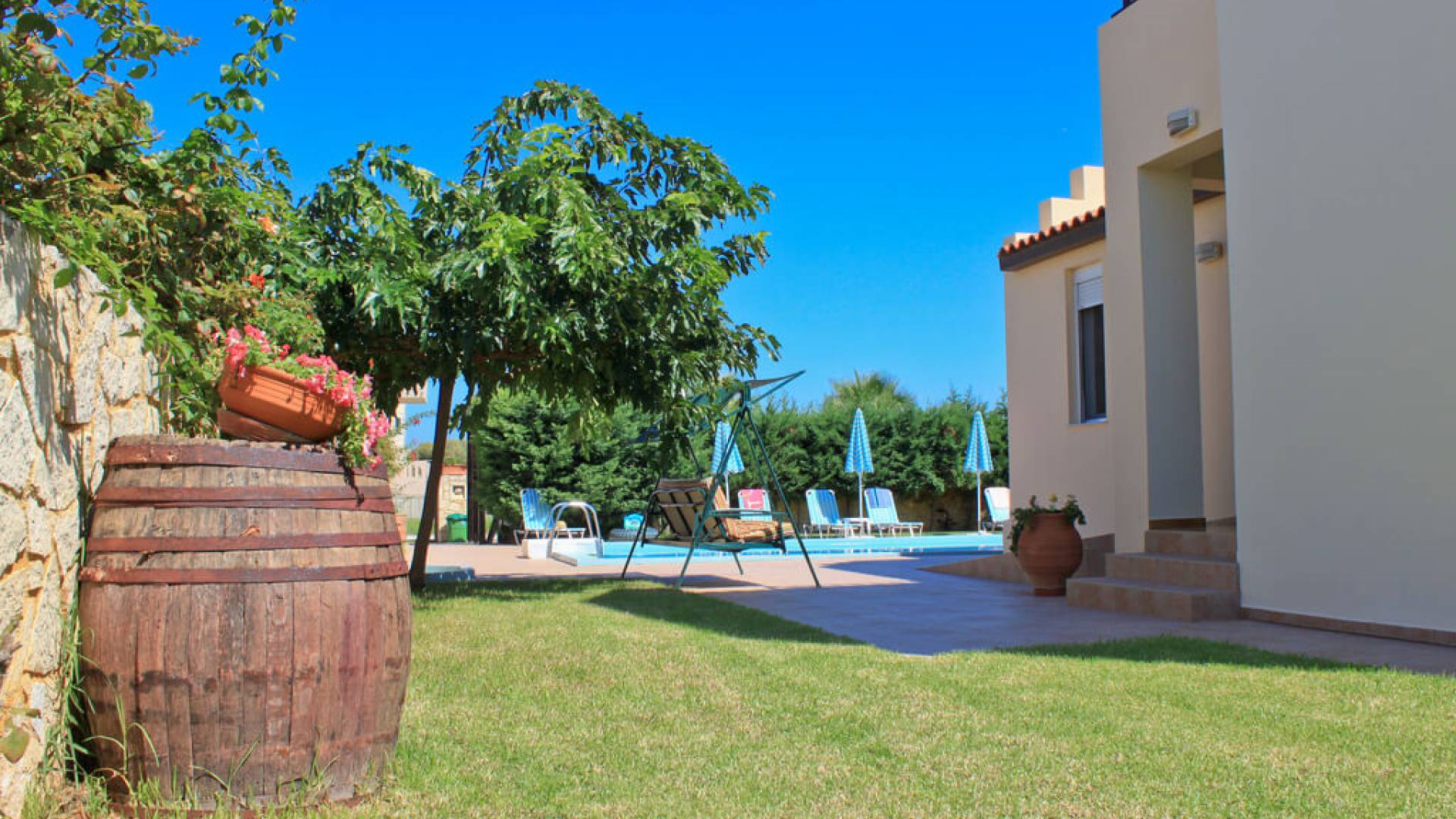 For the complete relaxation and comfort of the clients, the villas are throughout equipped with air/conditioning (cooling + heat for the cooler months), satellite TV, washing machine, dishwasher, and a telephone. Helios villa Chania is surrounded by a stone wall. Within the garden and on the front of the villa there is a 38 m2 private pool, having adequate sun lounges, umbrellas, and a dining place.