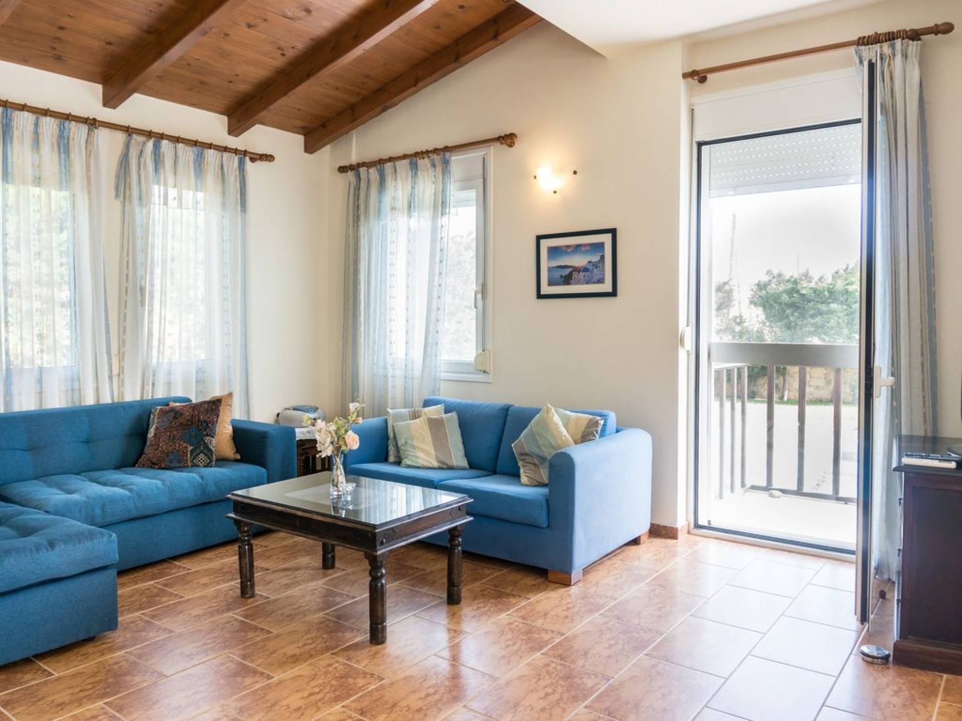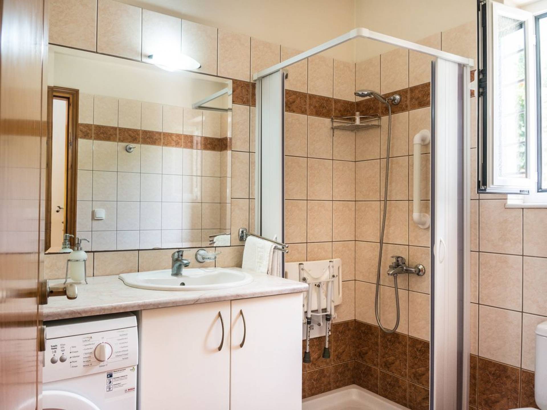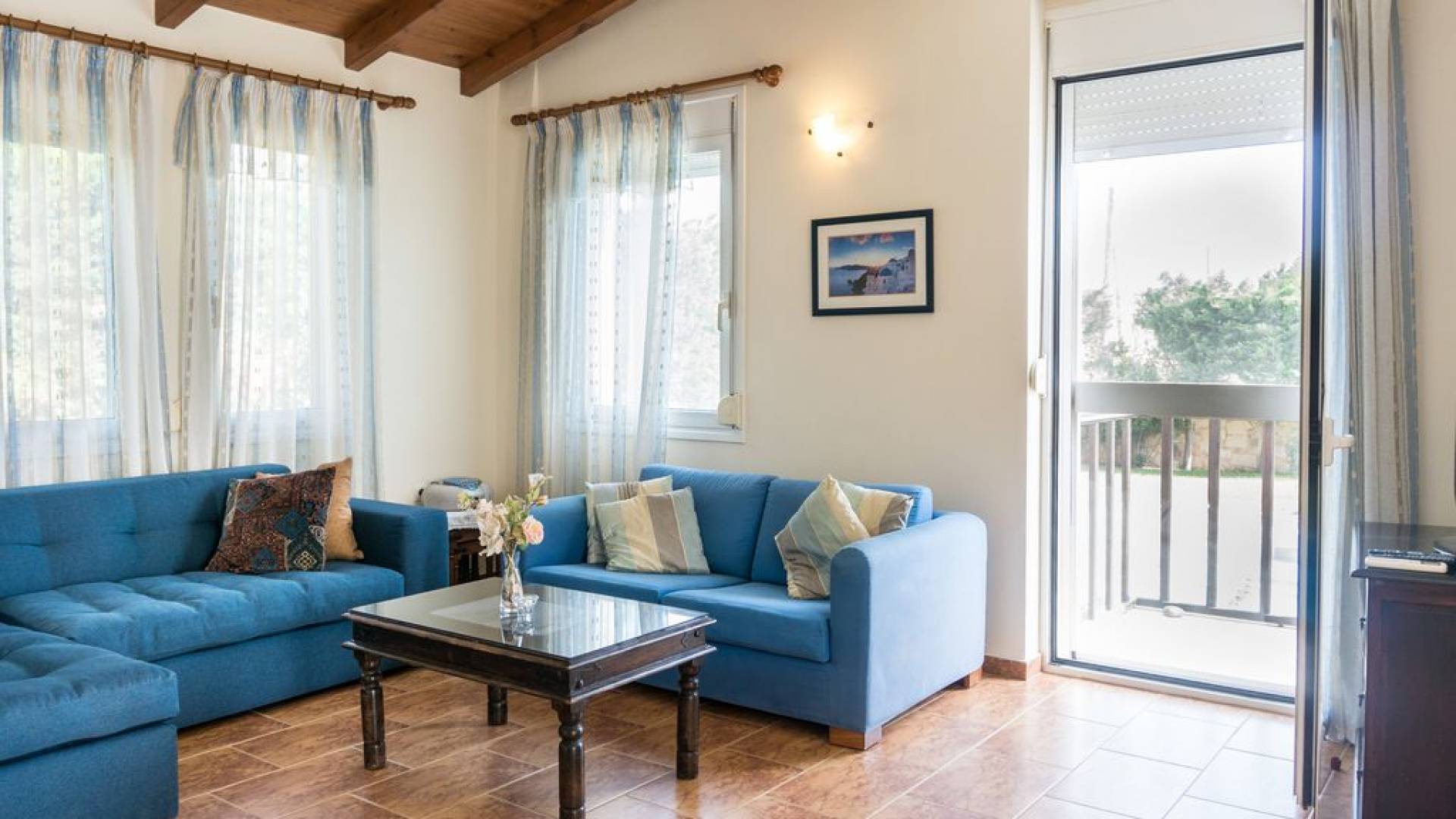 Helios Villa Chania is a holiday villa rental with 2 bedrooms and a private pool. The ground floor consists of an entrance hall, which leads into a spacious open plan sitting/dining room tastefully furnished with comfortable sofas, dining room furniture, and a very well equipped kitchen having a full-size cooker, fridge/freezer, microwave, dishwasher, electric kettle, coffee maker and a toaster. On this floor, there is a bedroom with 2 single beds and a bathroom with shower, WC and a washbasin.