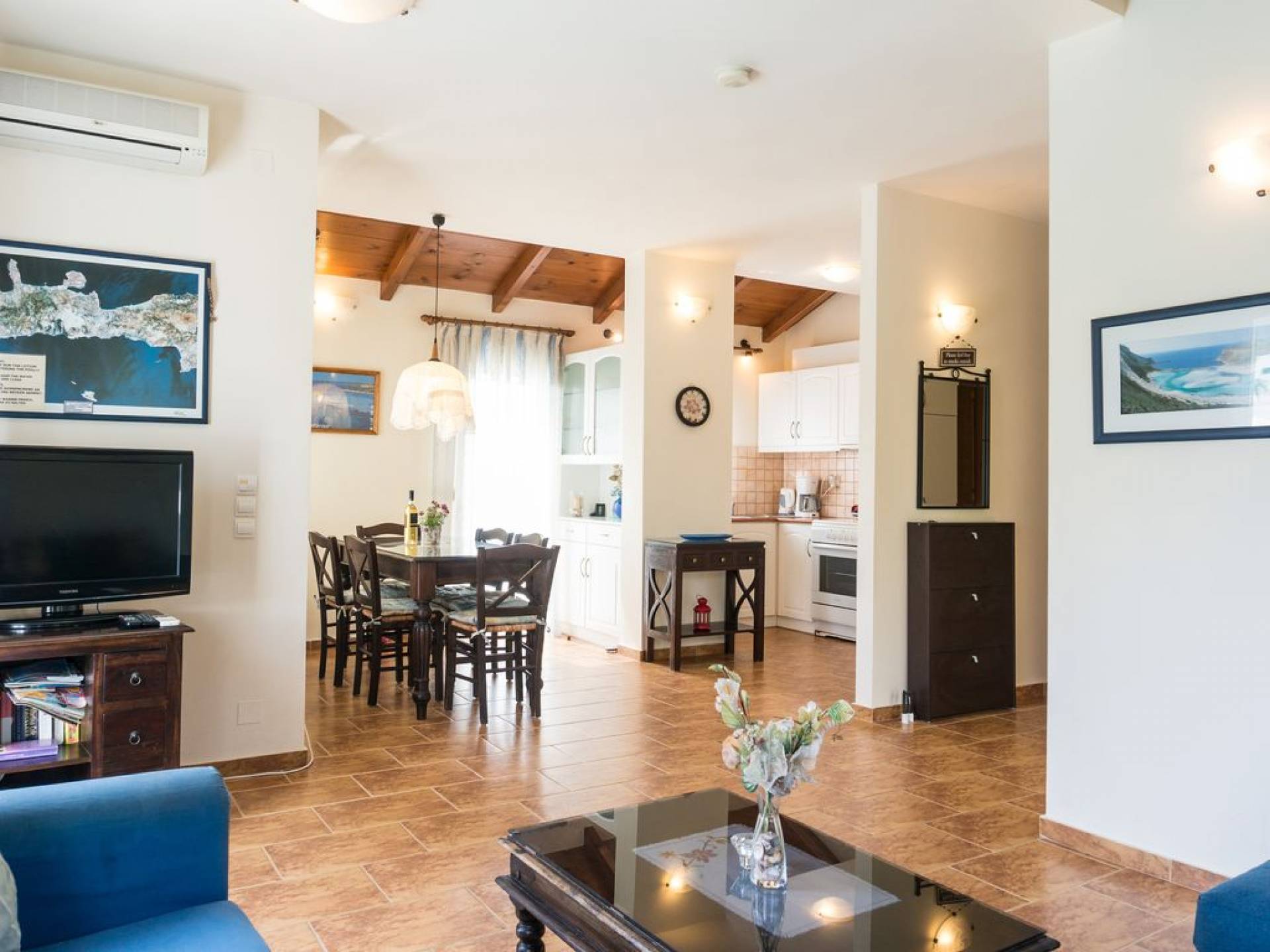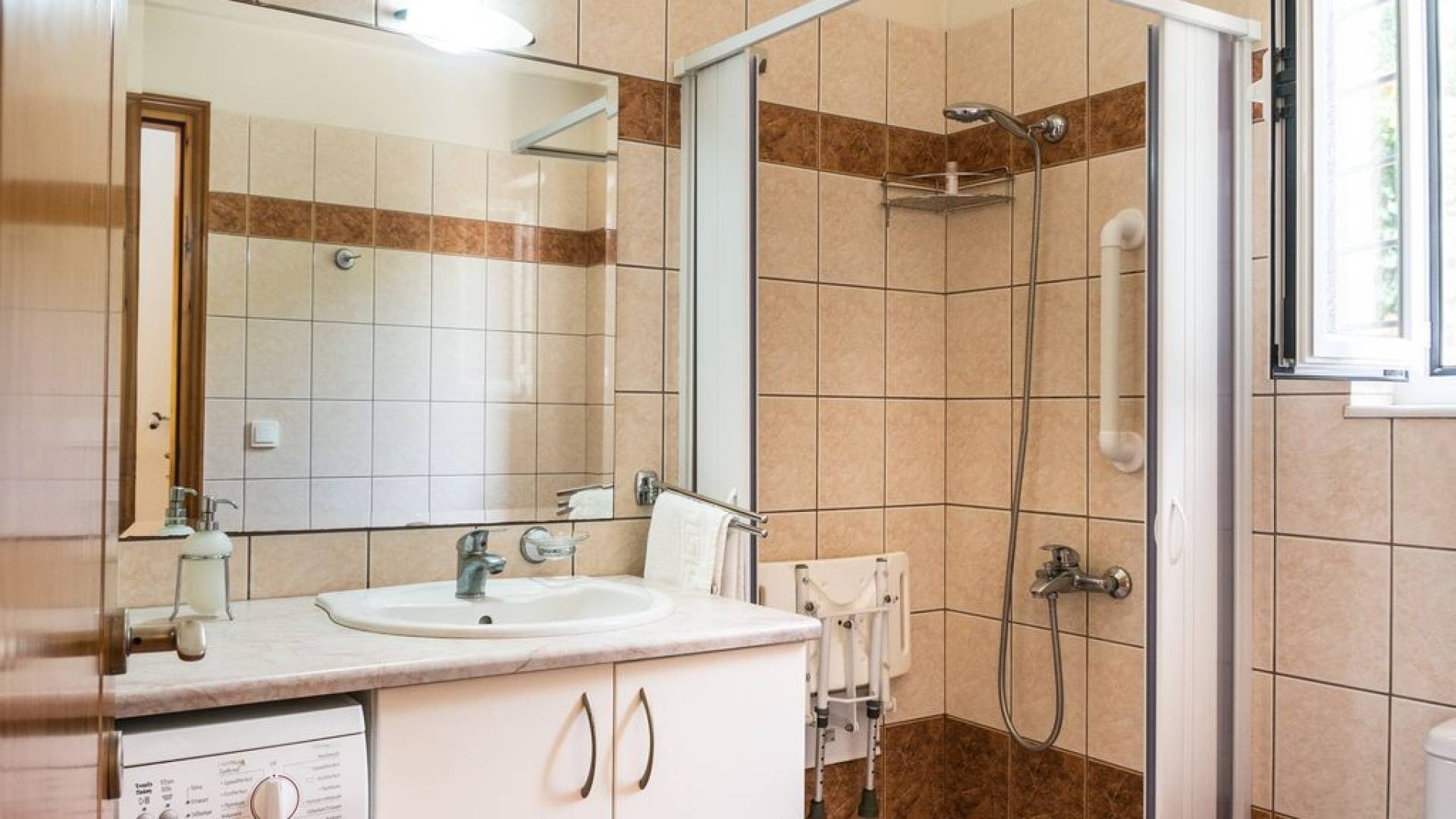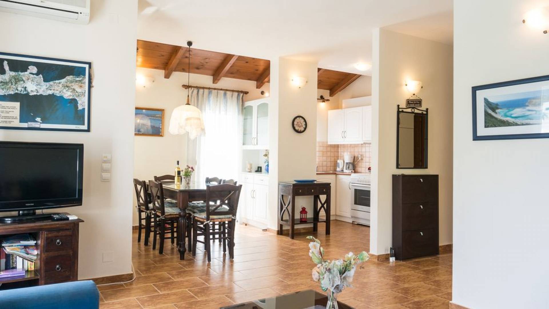 Helios Villa Chania is a holiday villa rental with 2 bedrooms and a private pool. The ground floor consists of an entrance hall, which leads into a spacious open plan sitting/dining room tastefully furnished with comfortable sofas, dining room furniture, and a very well equipped kitchen having a full-size cooker, fridge/freezer, microwave, dishwasher, electric kettle, coffee maker and a toaster. On this floor, there is a bedroom with 2 single beds and a bathroom with shower, WC and a washbasin.