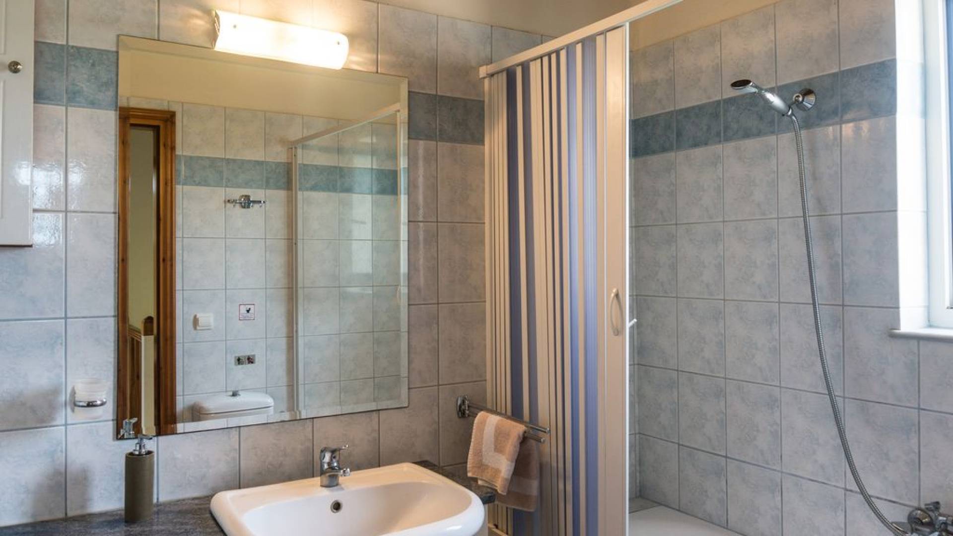 A staircase leads to the first floor with 2 bedrooms, one of which has a double bed and the other two single beds, a good-sized bathroom, WC and a washbasin. The bedrooms open onto balconies with sea views in both directions, while the windows at the rear of the bedrooms have views towards the impressive "white mountains".