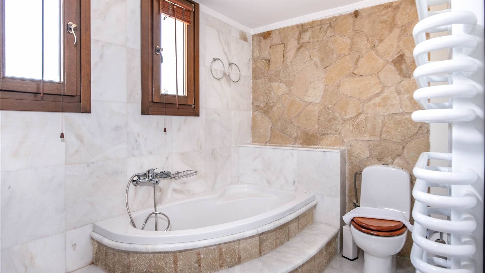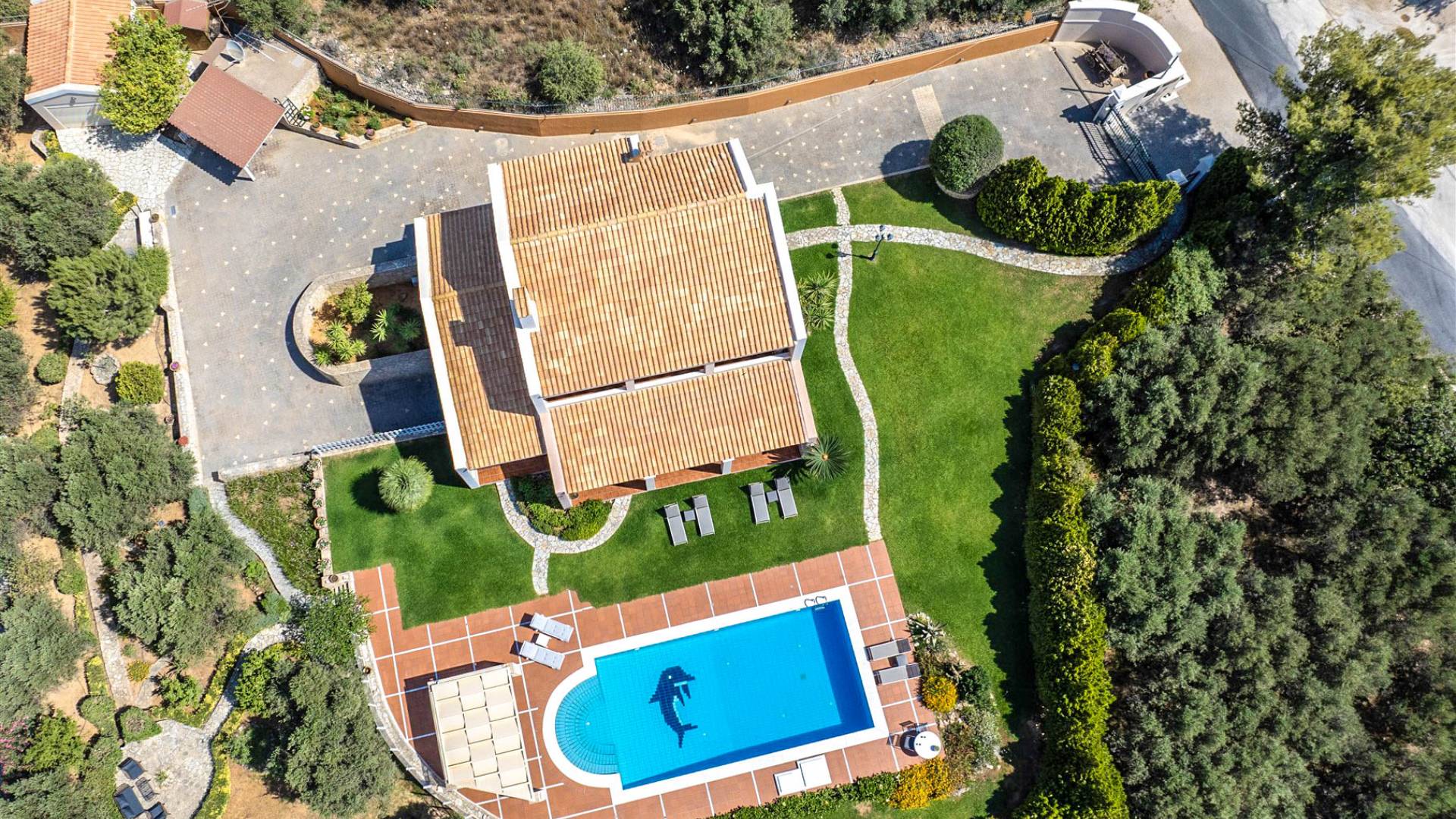 Recently refreshed with stylish new furnishings, the home is both modern and inviting. Outside, guests will enjoy shaded lounge spaces, a built-in BBQ, and absolute seclusion, enhanced by a neighboring 1,700m² olive grove that ensures your views will never be obstructed. With full insulation, two garages, and ample storage, the villa is also ideal for year-round living.