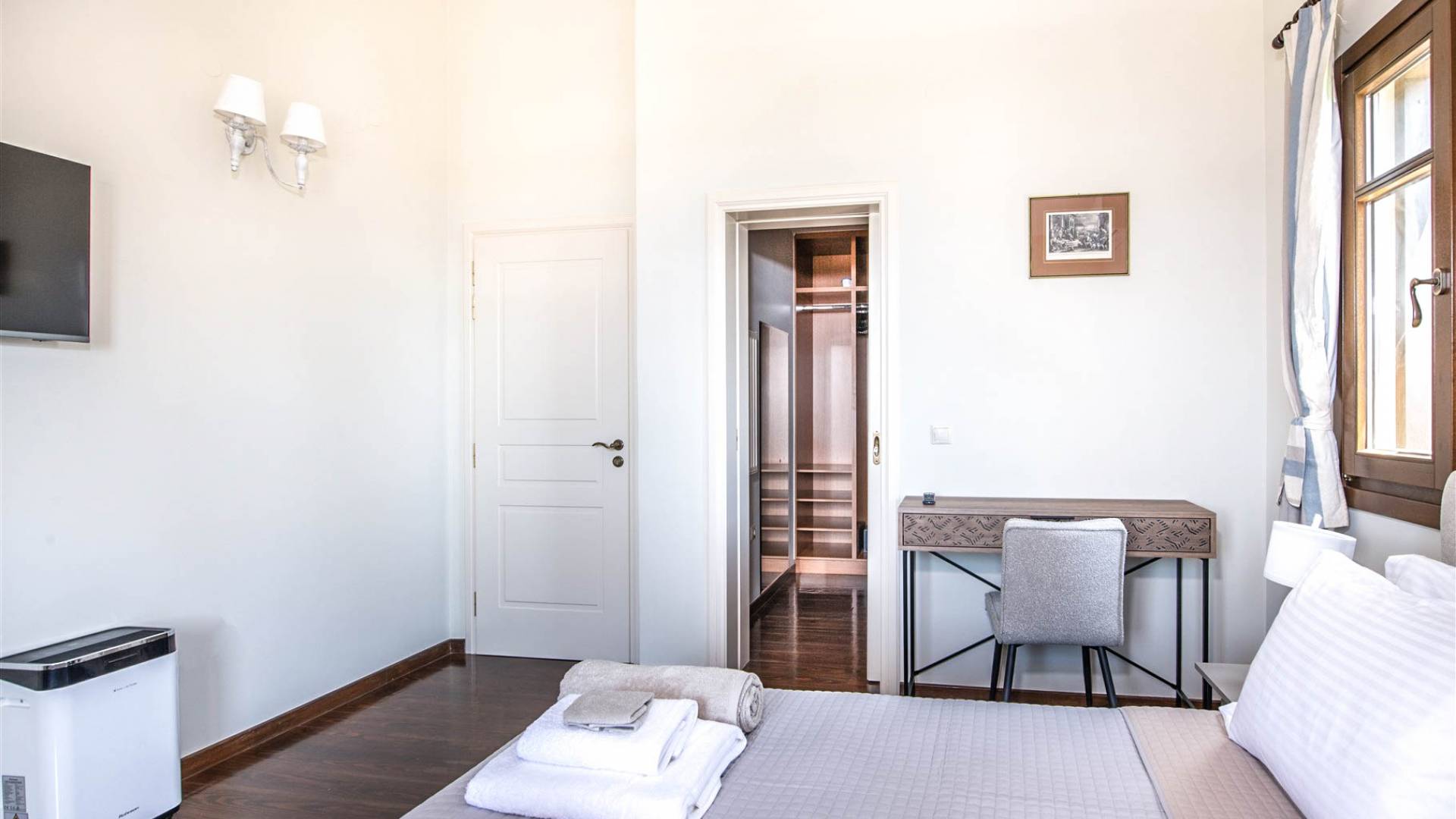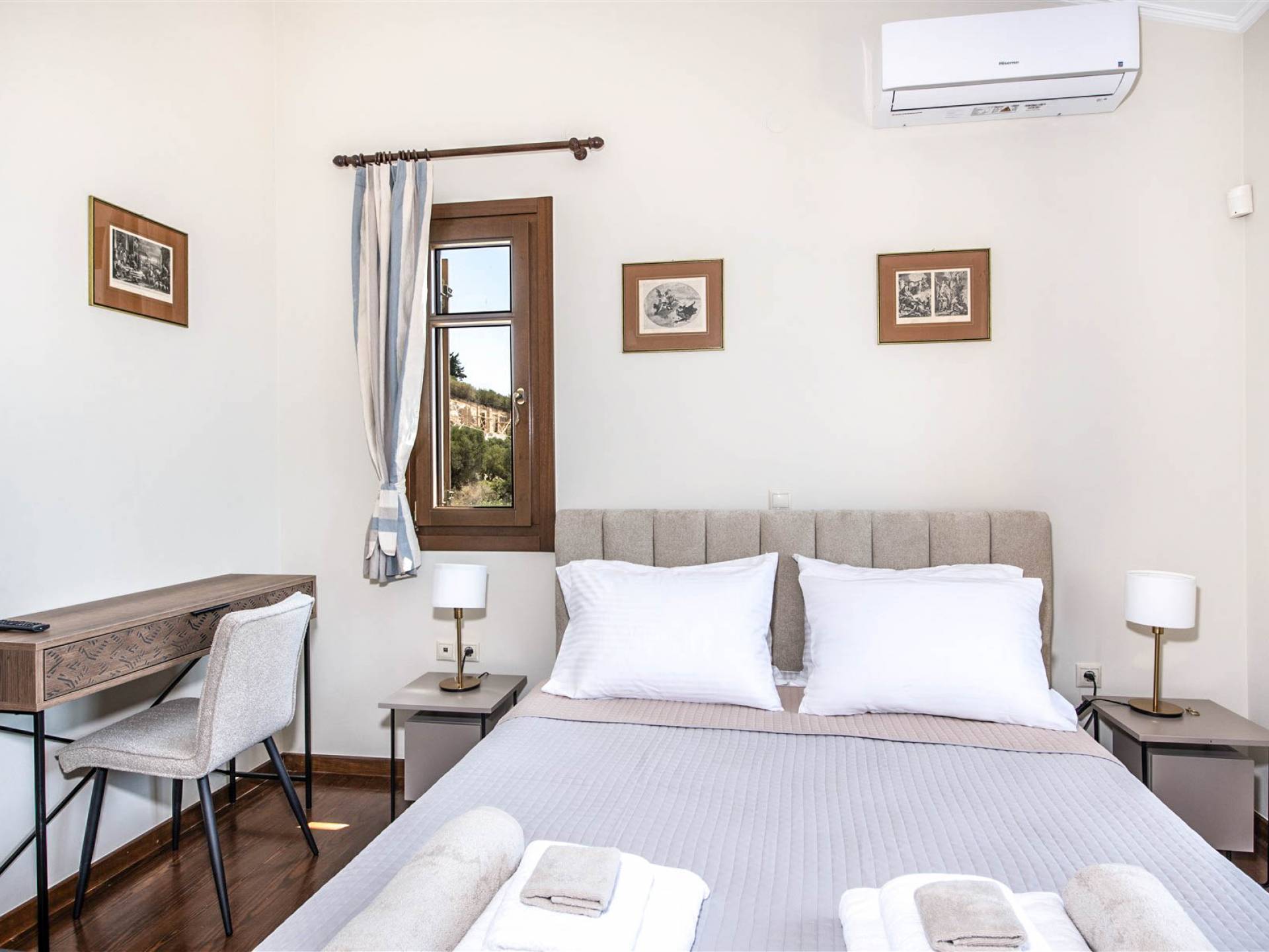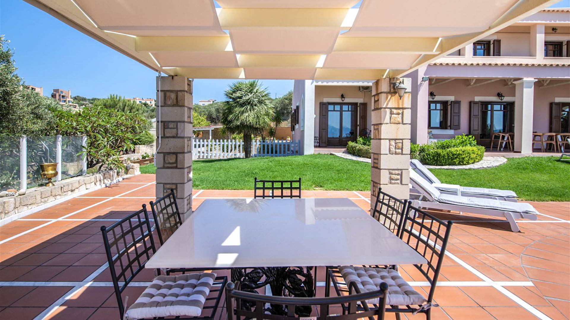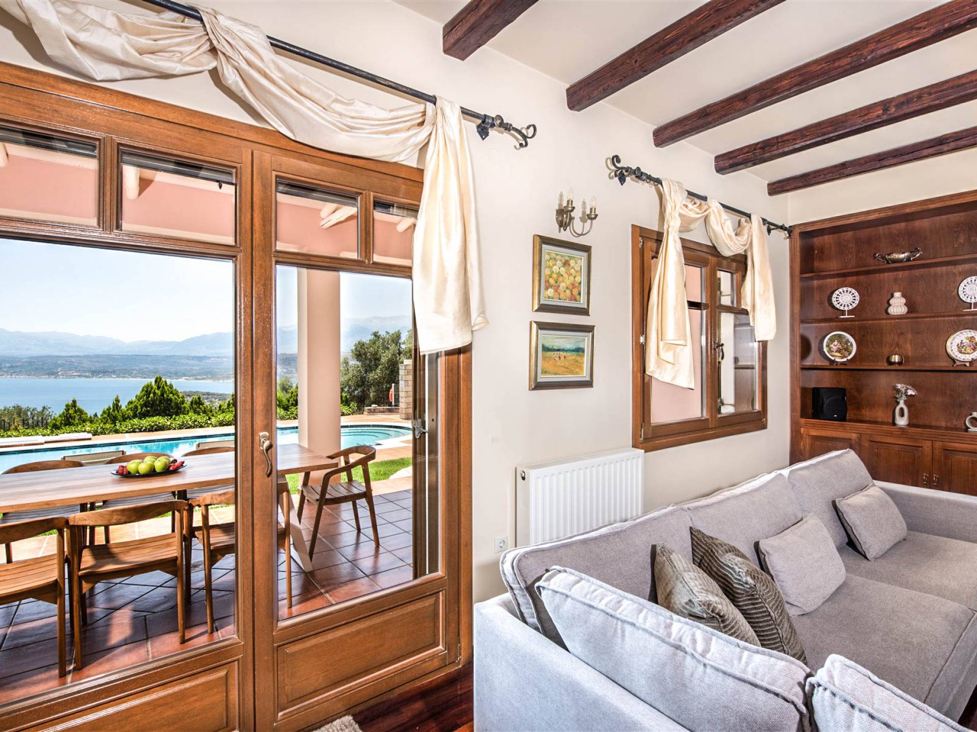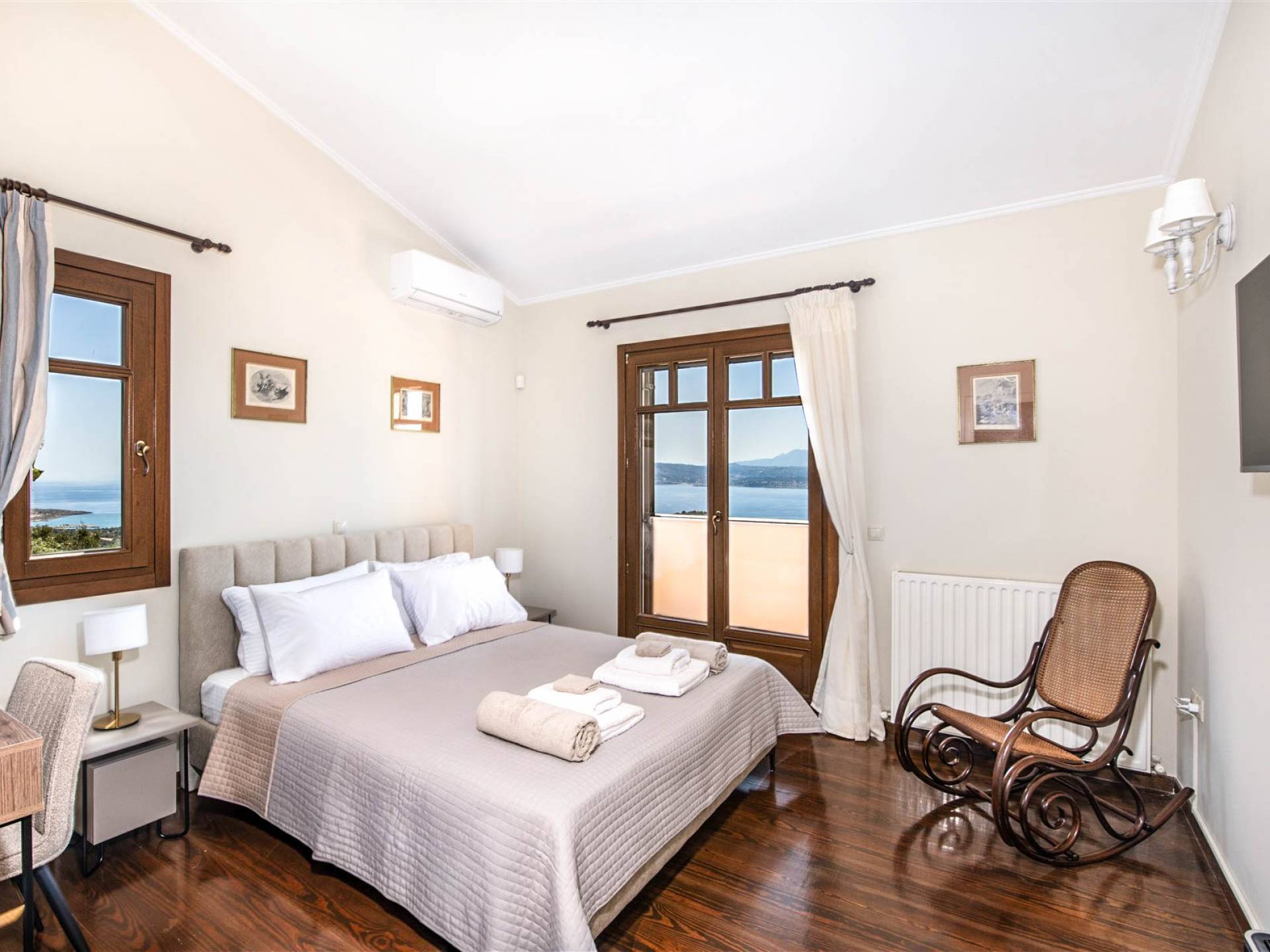 Set within a private 3,800m² estate adorned with 50 olive trees and manicured gardens, the property features a generous 70m² tiled swimming pool. Its elevated position offers uninterrupted panoramic views of Souda Bay and the majestic White Mountains.