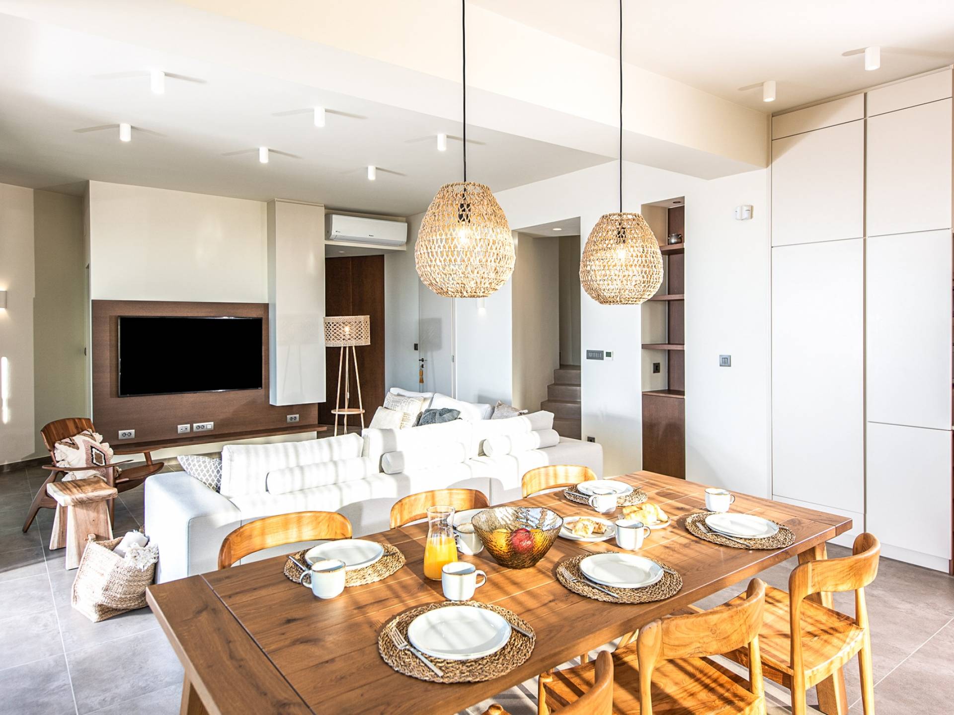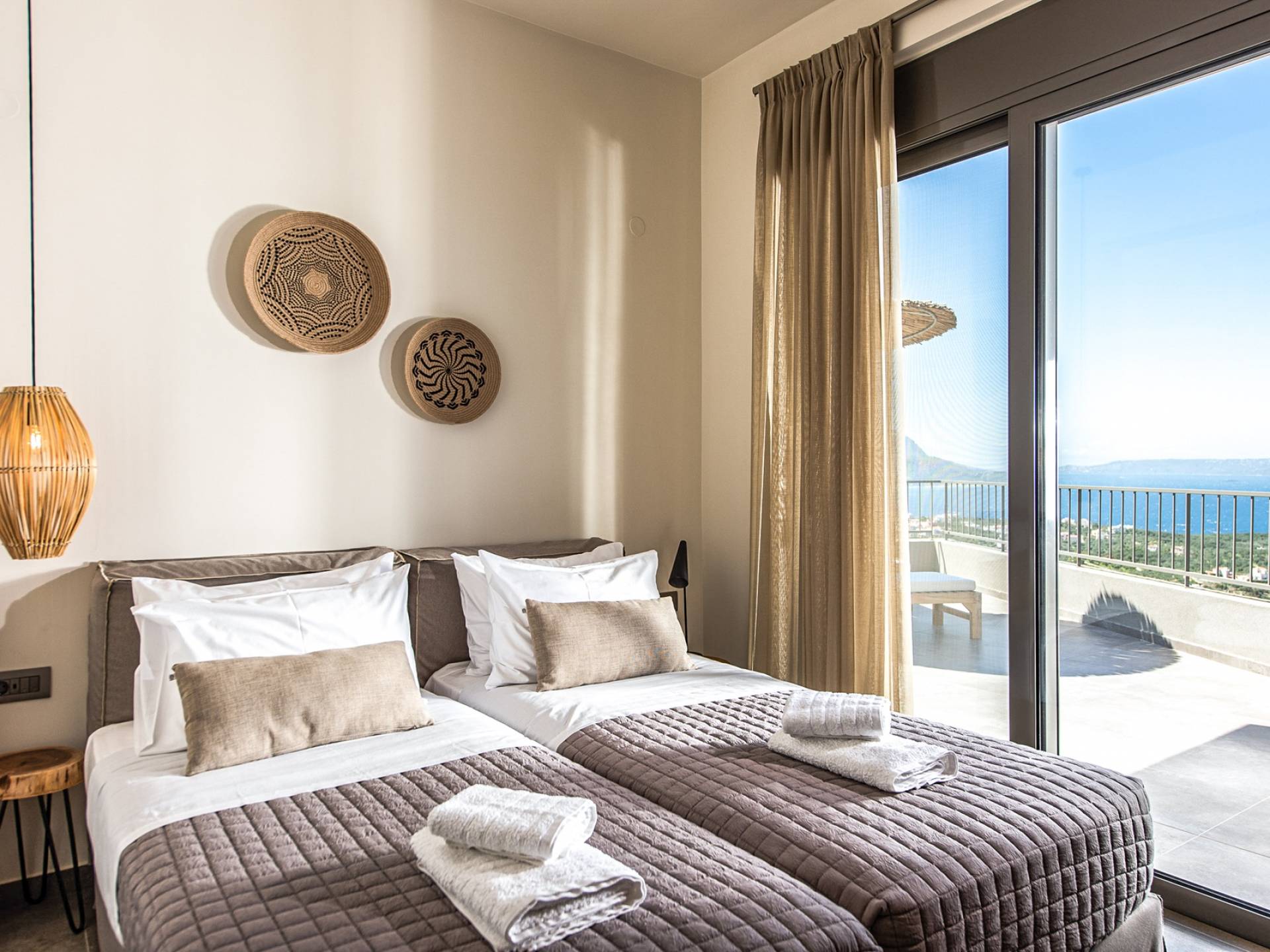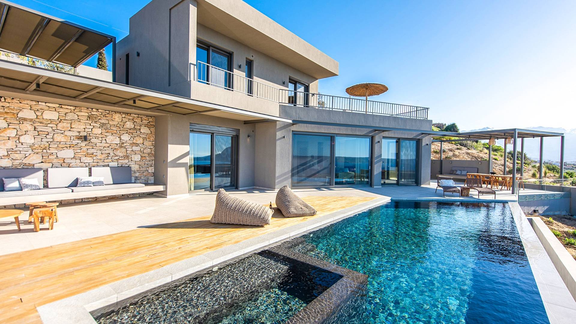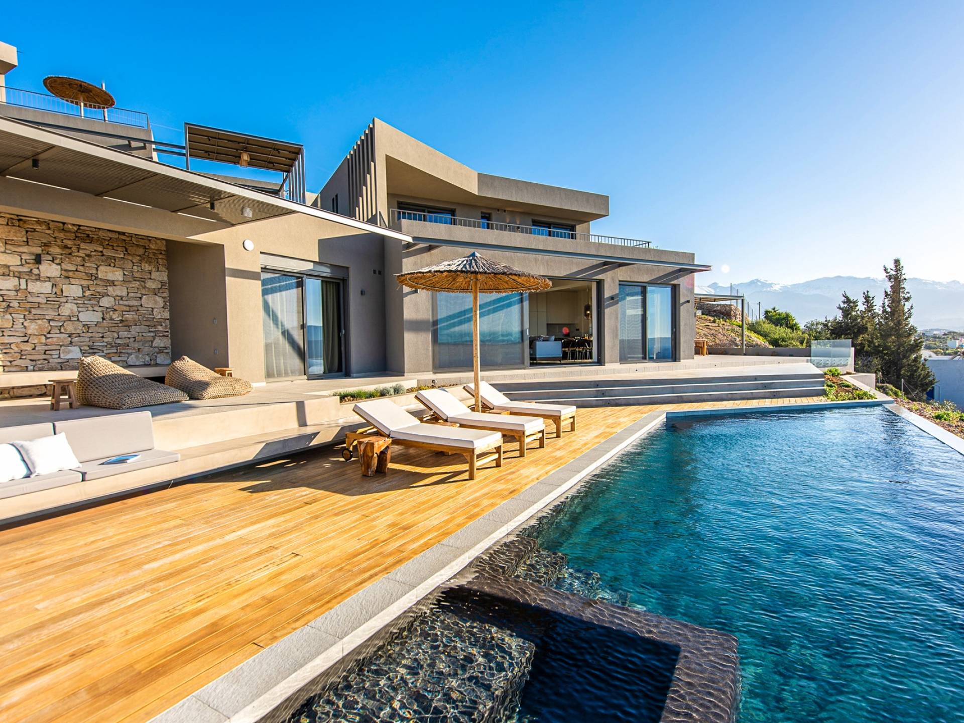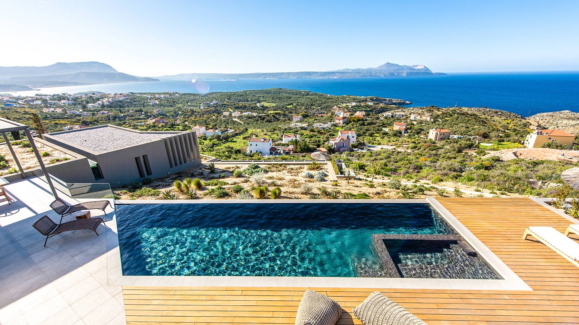 Melania & Kokomo are 2 brand new designer villas right next to each other with a connecting pathway and their own private pools. They are ideal for large groups and families and sleep up to 14 people. Luxury and comfort in a secluded natural setting define life at Melania & Kokomo. The complex comprises two stunning villas perched high up on a cliff in the area of Plaka in Chania.