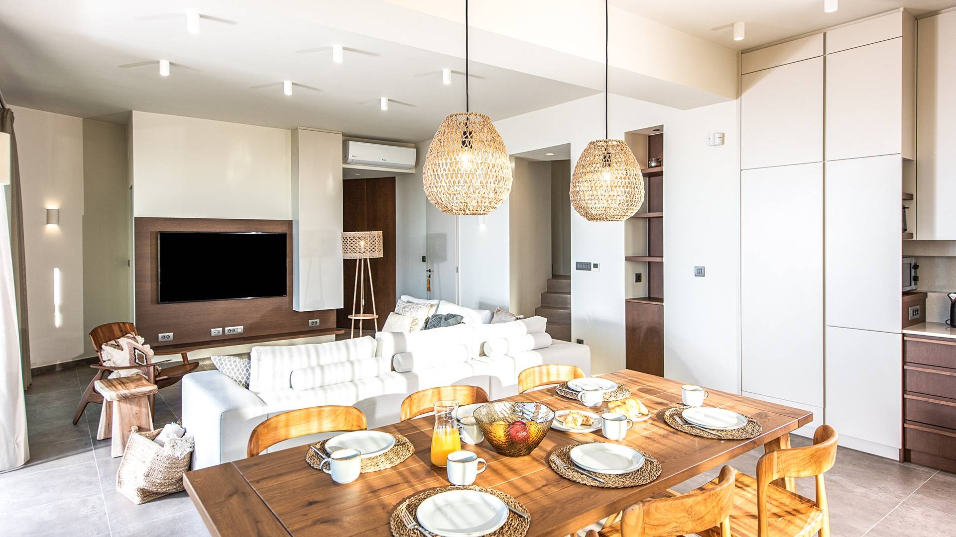 The unique position of the villa affords guests beautiful views of the sun rising over the village with spectacular sunset views across the sea. Worlds away from the hustle and bustle of Crete, Melania & Kokomo offer a private, secluded stay for guests looking to unwind in a refined atmosphere with direct beach access.