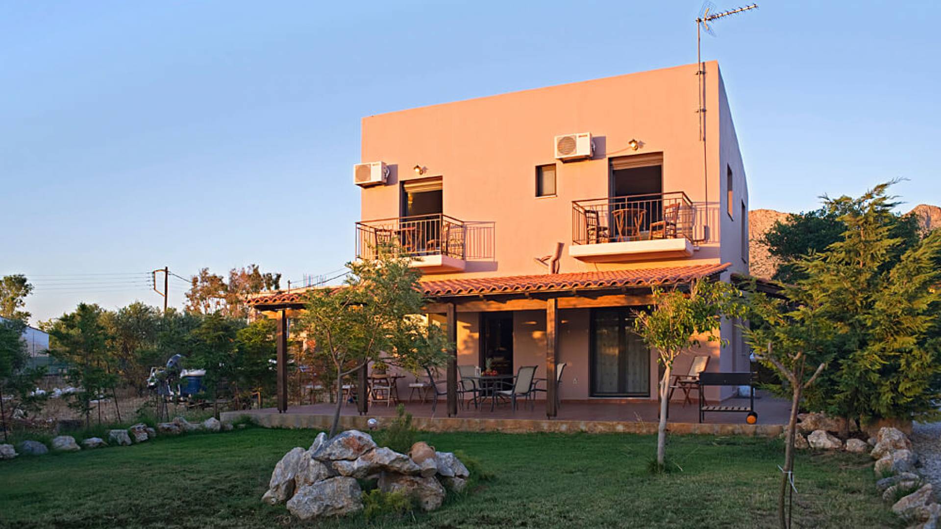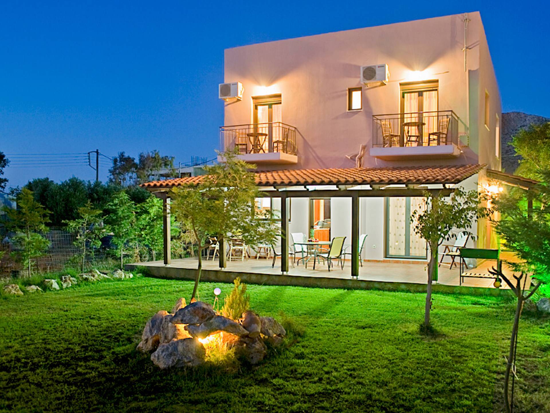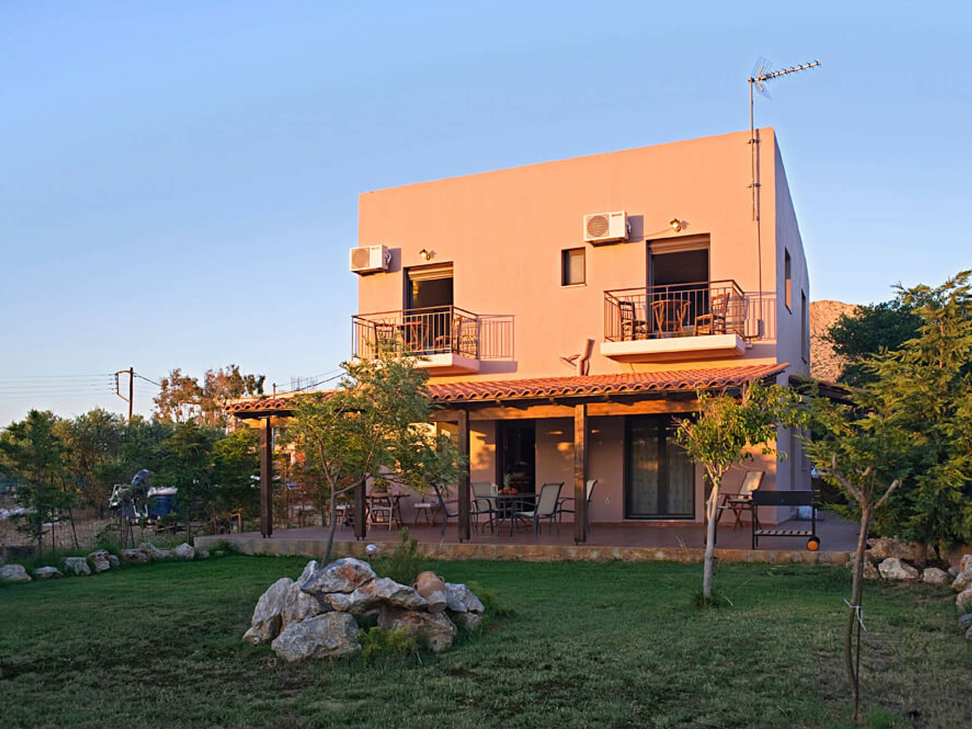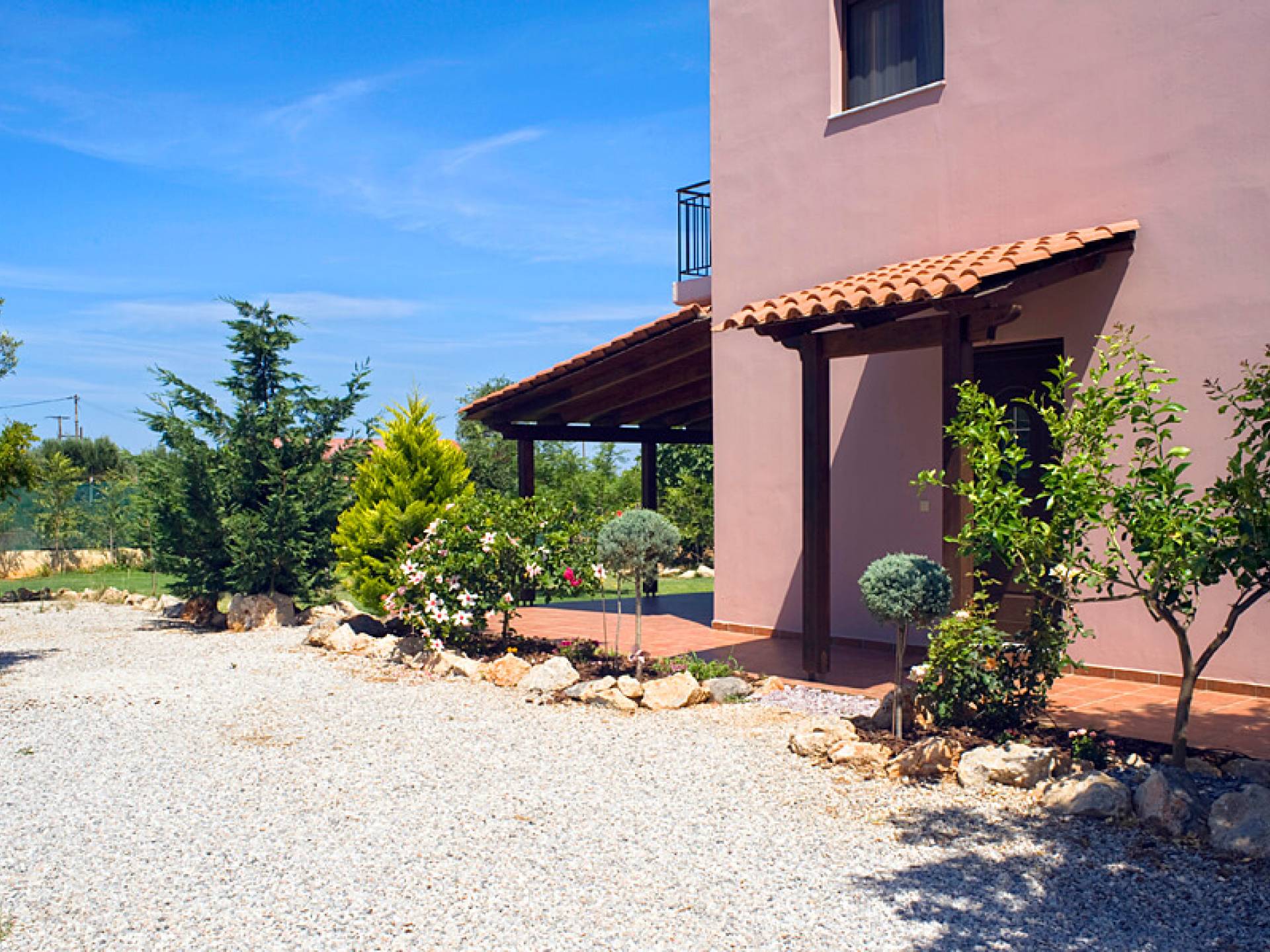 On the first floor there are three bedrooms with one double bed each. On this floor there is also one large bathroom with tub, an office room that a sofa-bed can be added for a ninth person. Stavros villa has a large garden with barbeque, veranda with sunbeds, tables and chairs, a balcony with view and private parking. The villa is an ideal choice for families and friends and has easy access to sandy beaches just in 20 minutes’ drive from Chania City.