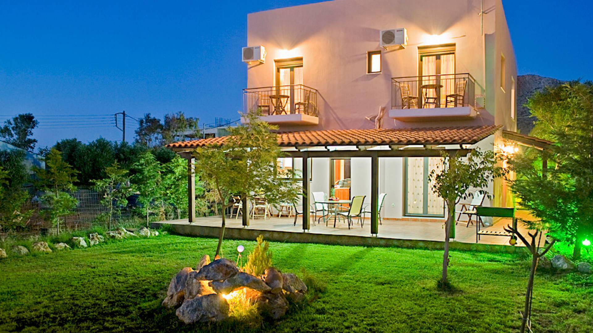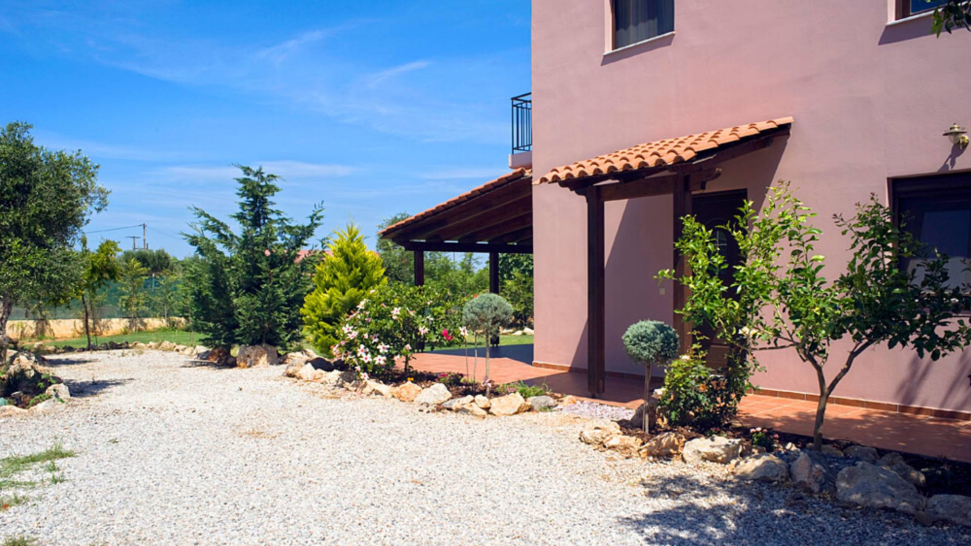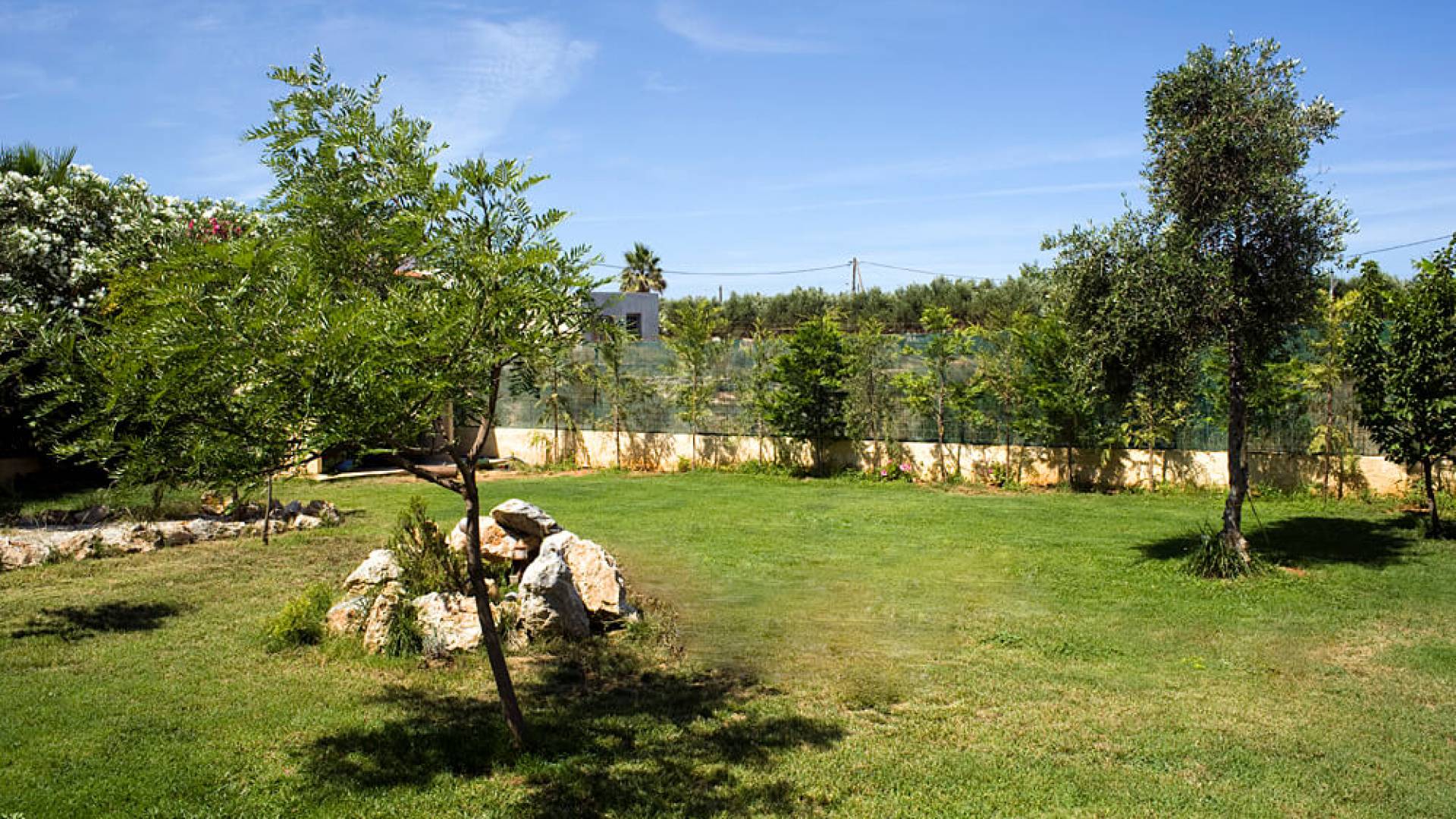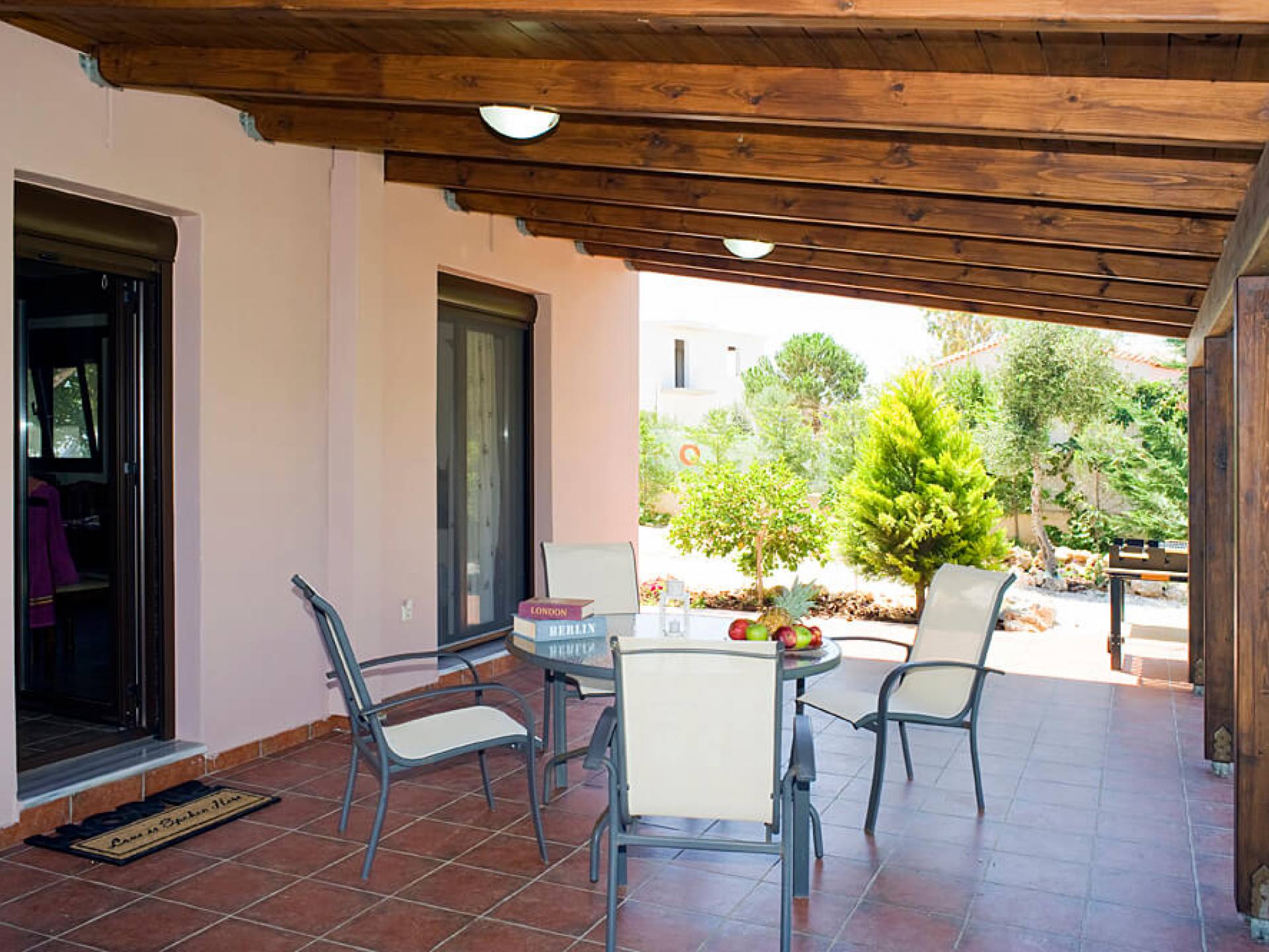 On the first floor there are three bedrooms with one double bed each. On this floor there is also one large bathroom with tub, an office room that a sofa-bed can be added for a ninth person. Stavros villa has a large garden with barbeque, veranda with sunbeds, tables and chairs, a balcony with view and private parking. The villa is an ideal choice for families and friends and has easy access to sandy beaches just in 20 minutes’ drive from Chania City.