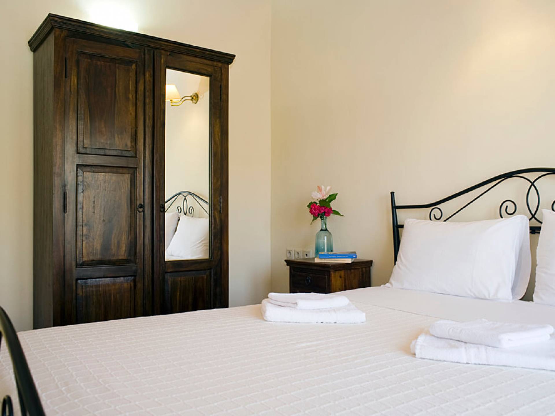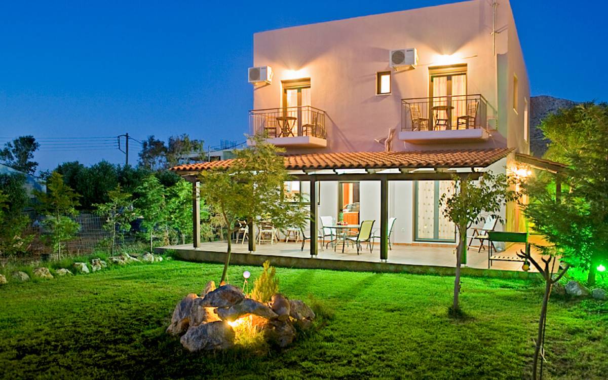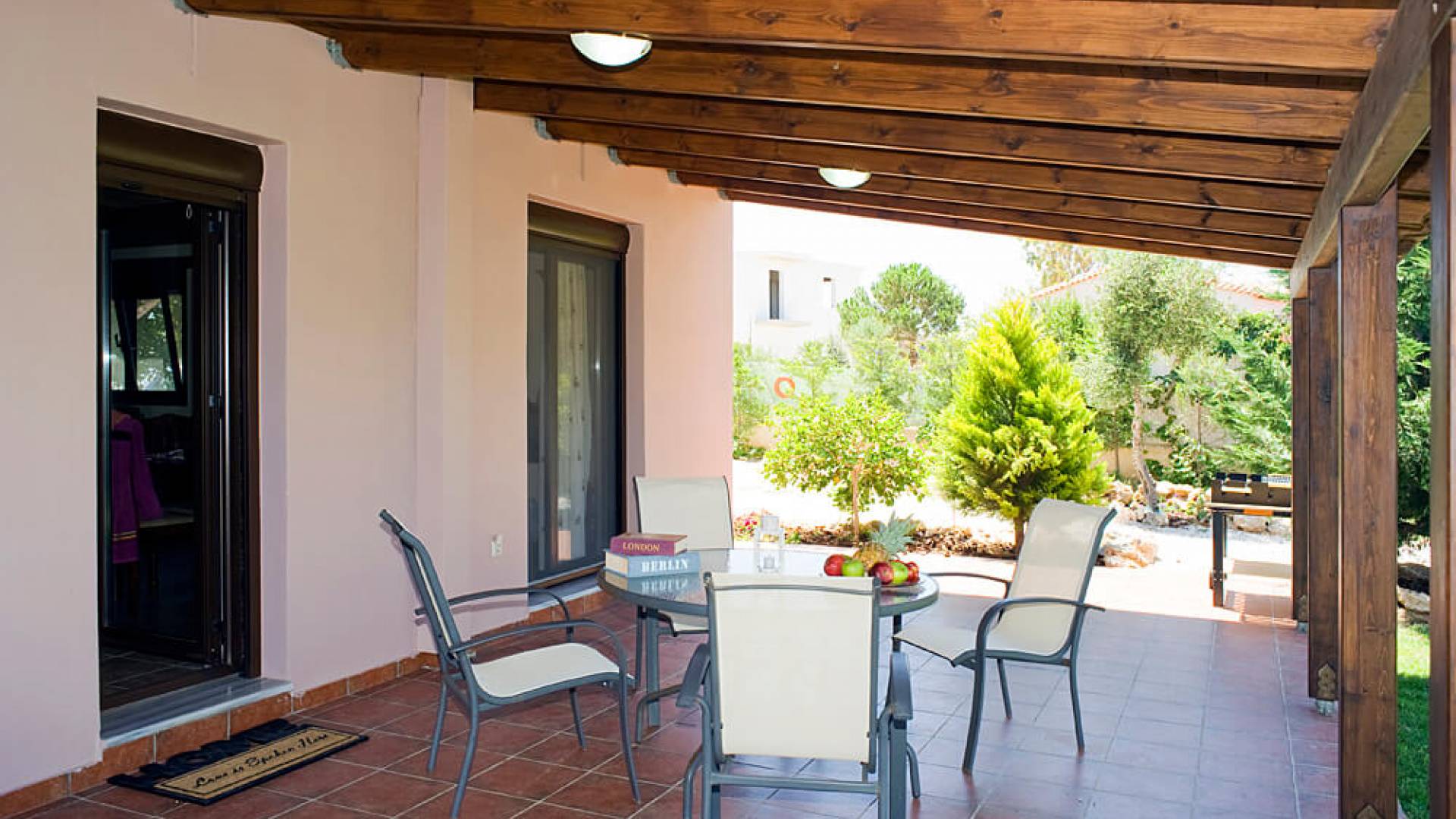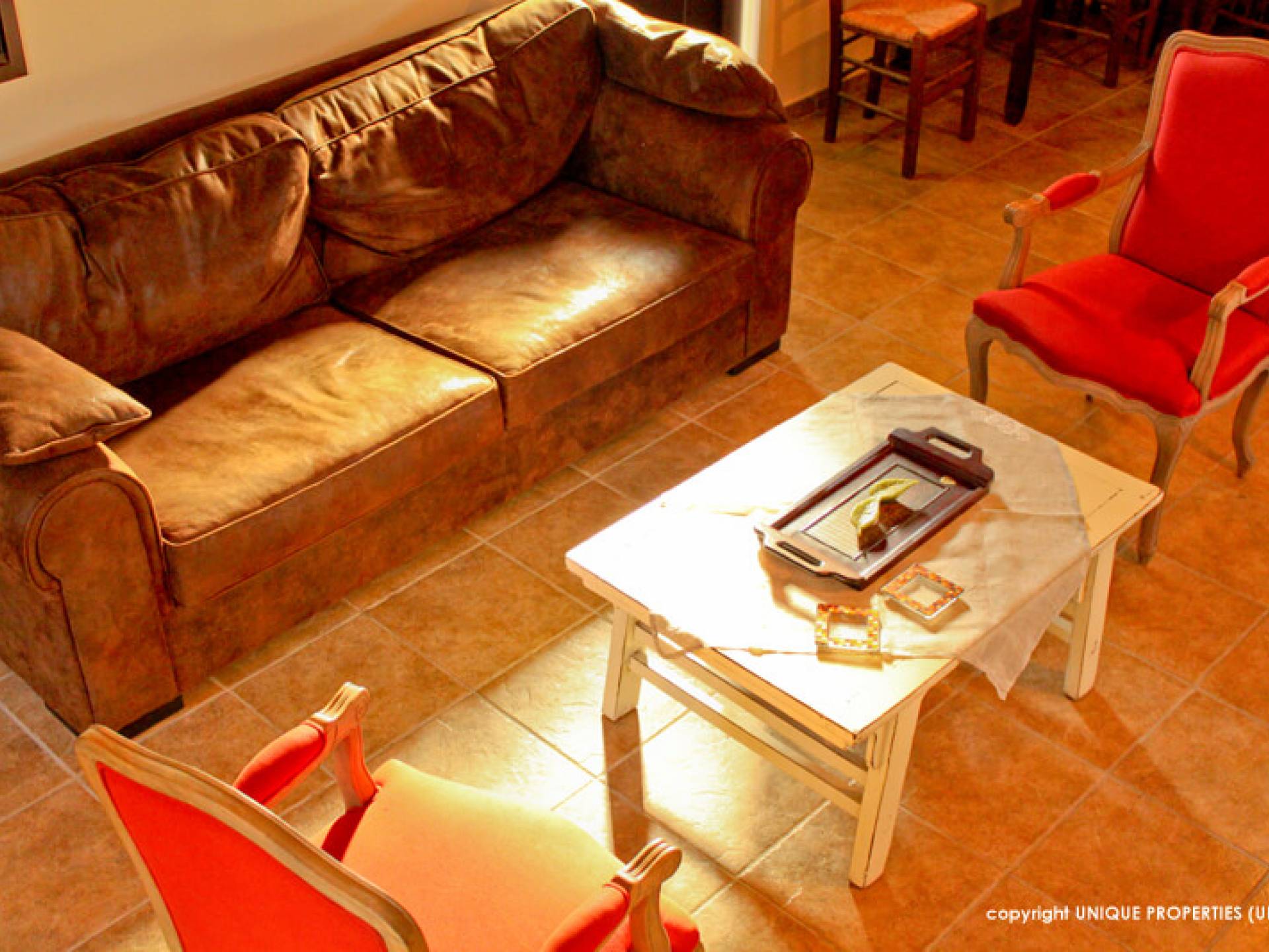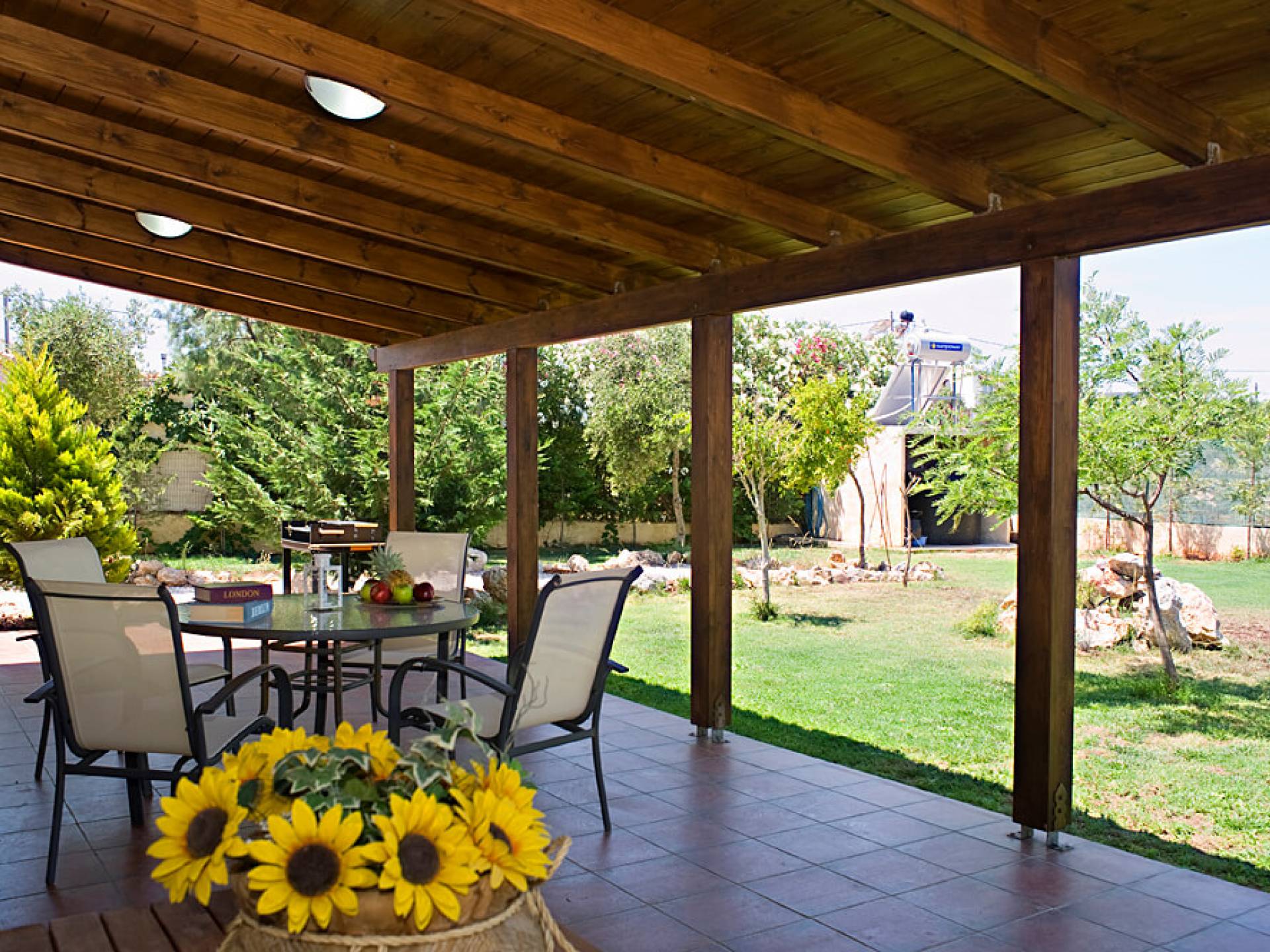On the first floor there are three bedrooms with one double bed each. On this floor there is also one large bathroom with tub, an office room that a sofa-bed can be added for a ninth person. Stavros villa has a large garden with barbeque, veranda with sunbeds, tables and chairs, a balcony with view and private parking. The villa is an ideal choice for families and friends and has easy access to sandy beaches just in 20 minutes’ drive from Chania City.