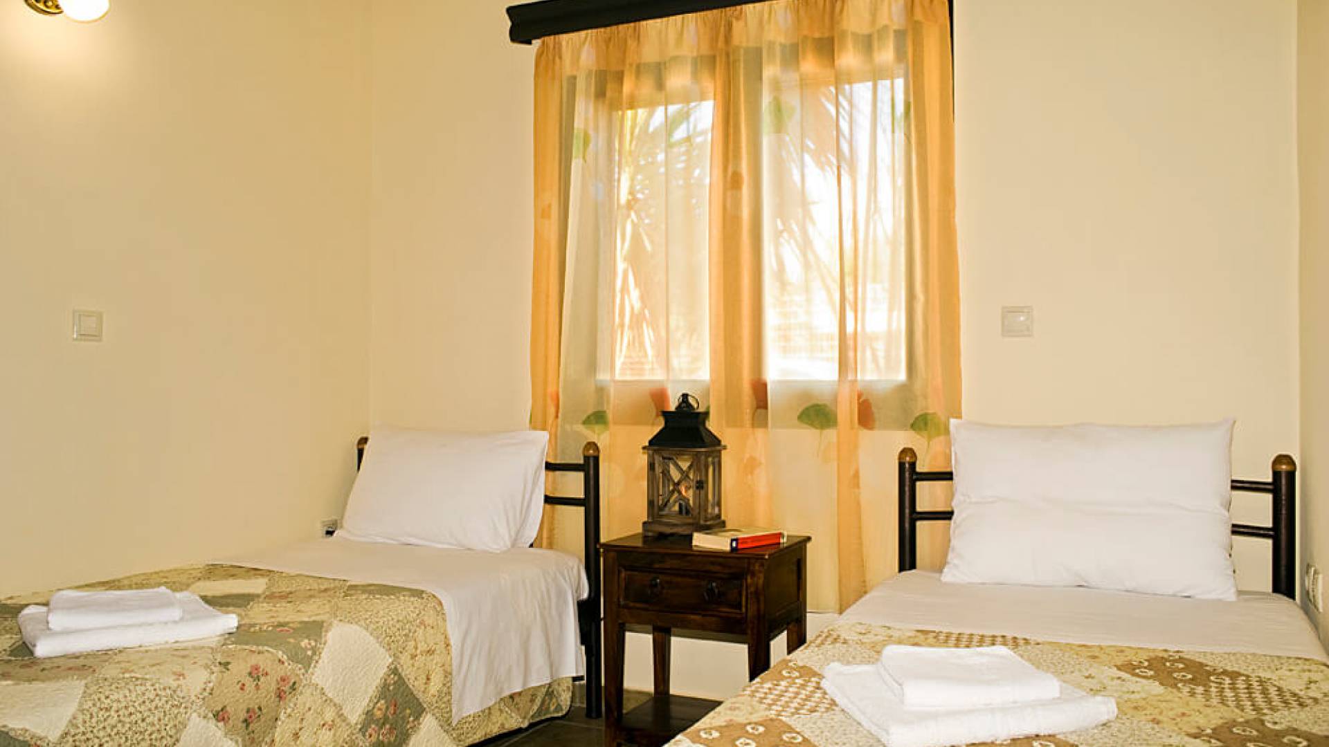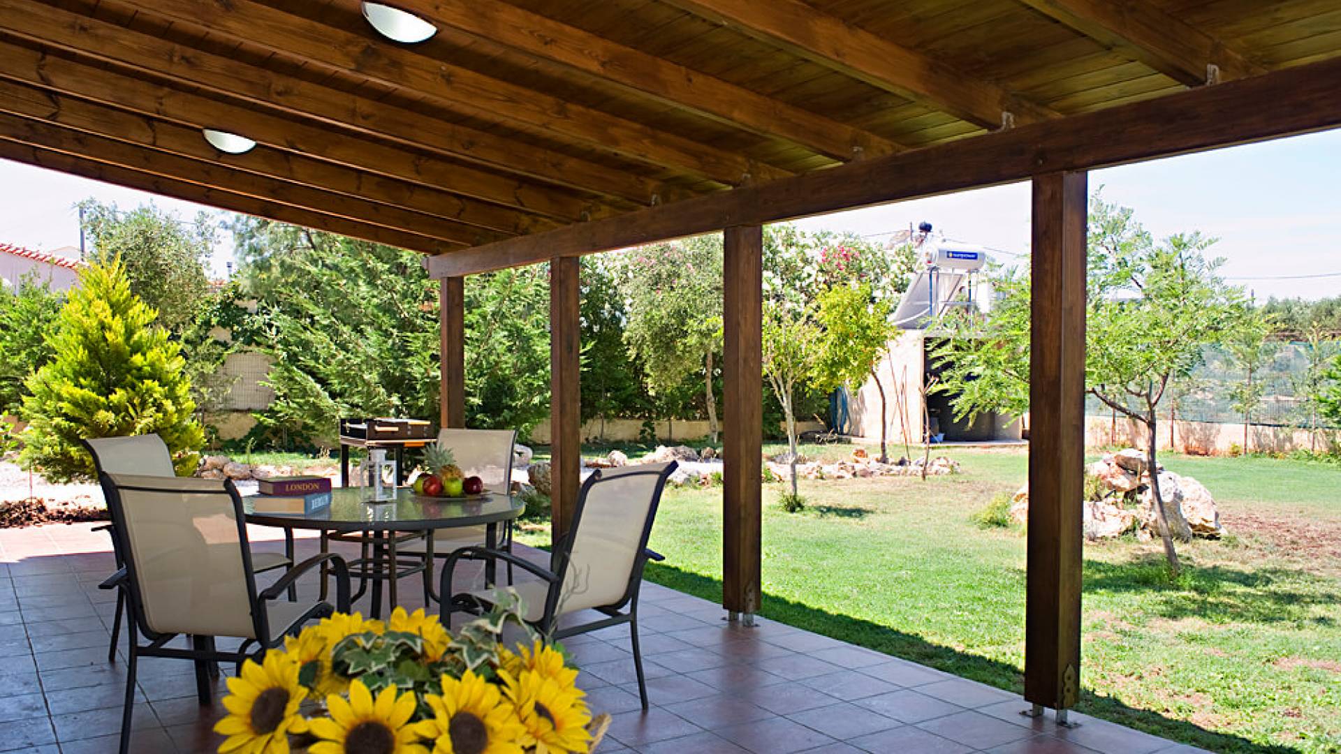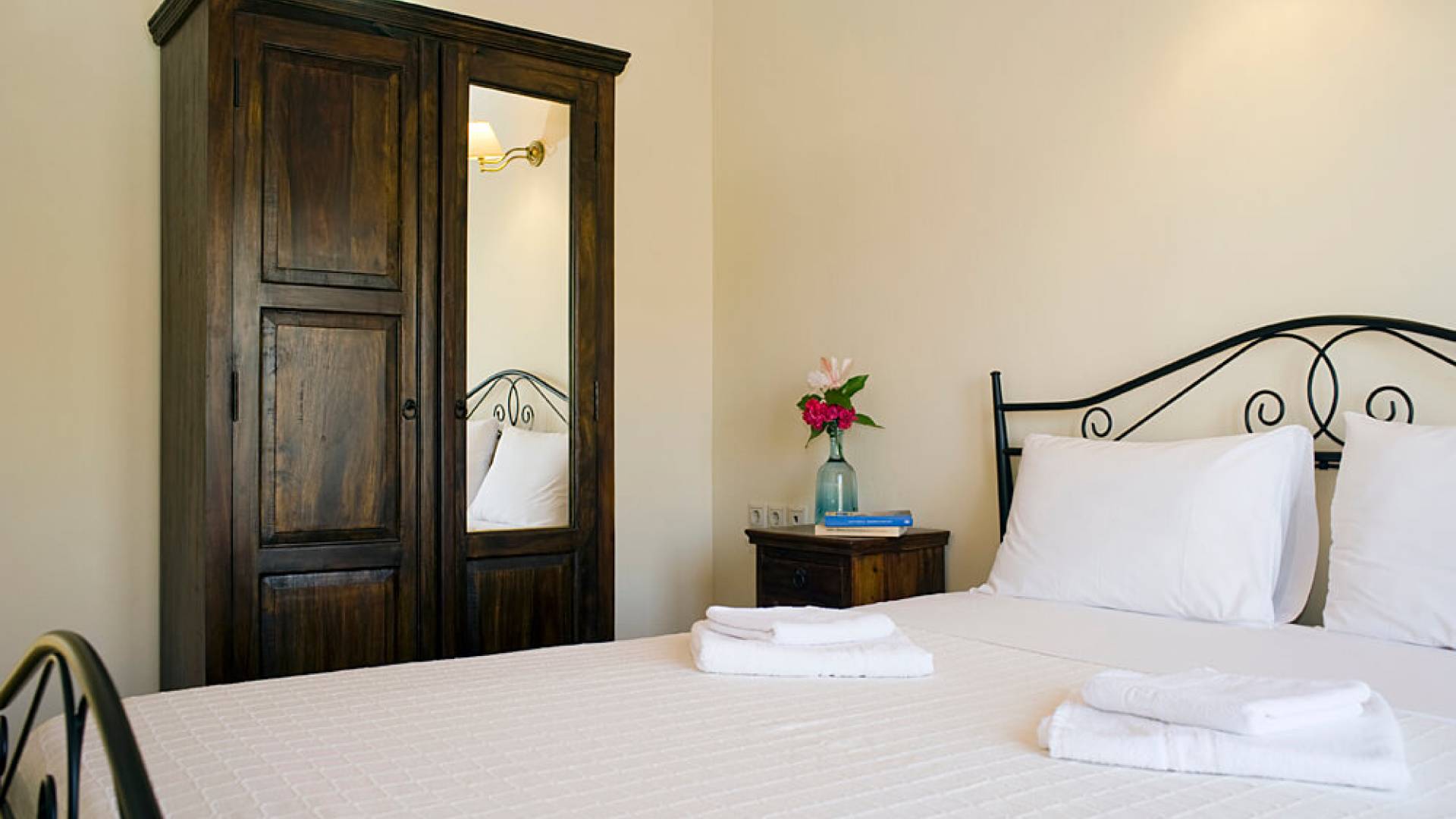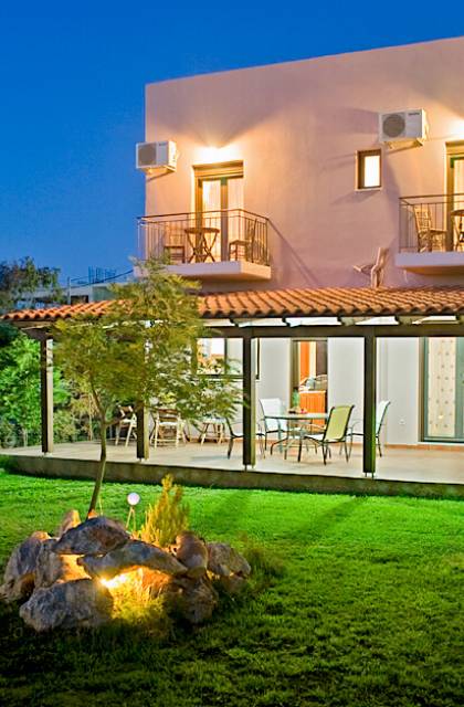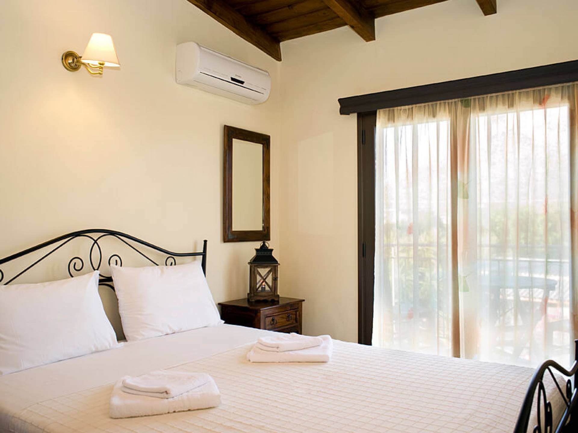 On the first floor there are three bedrooms with one double bed each. On this floor there is also one large bathroom with tub, an office room that a sofa-bed can be added for a ninth person. Stavros villa has a large garden with barbeque, veranda with sunbeds, tables and chairs, a balcony with view and private parking. The villa is an ideal choice for families and friends and has easy access to sandy beaches just in 20 minutes’ drive from Chania City.