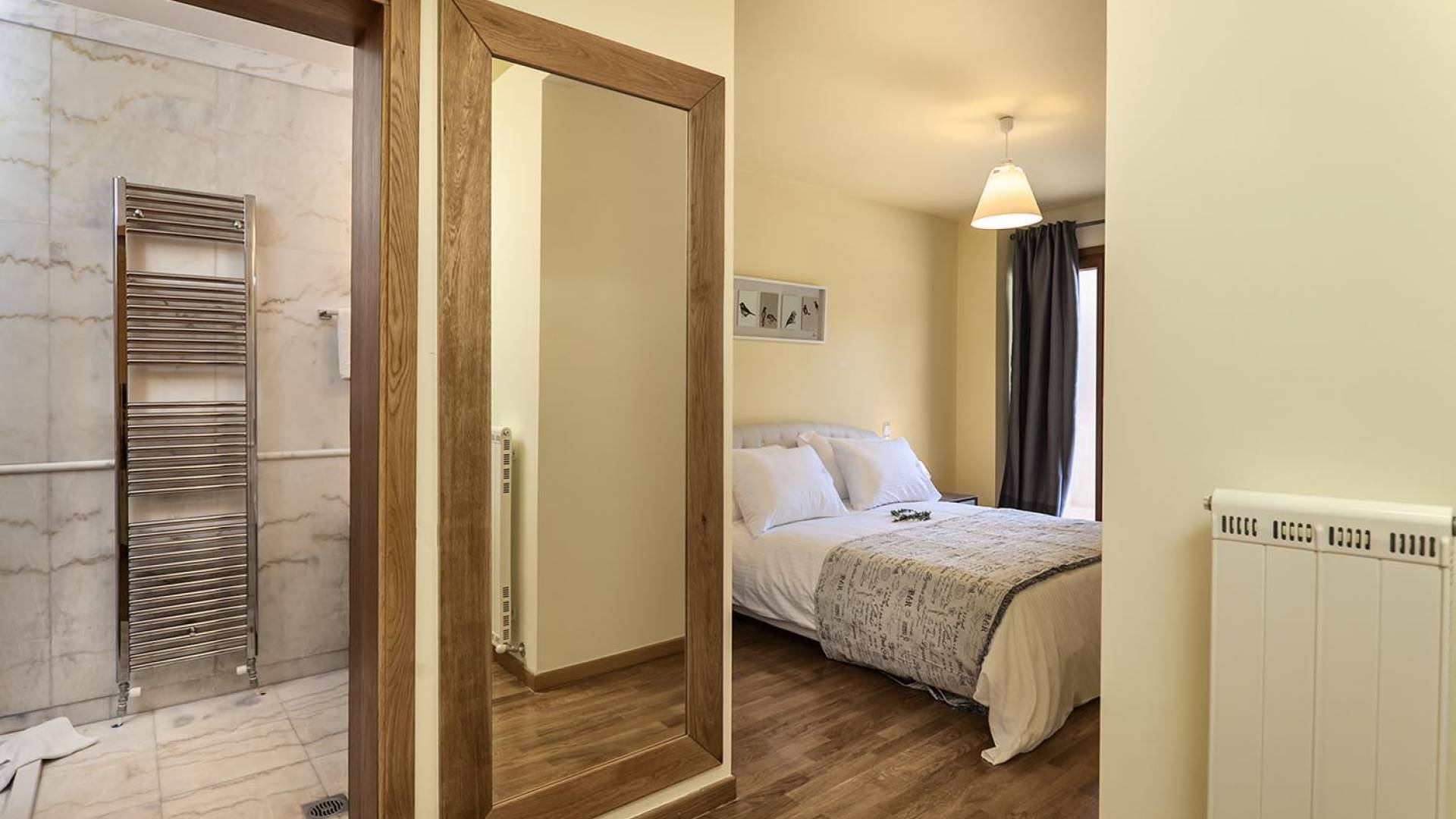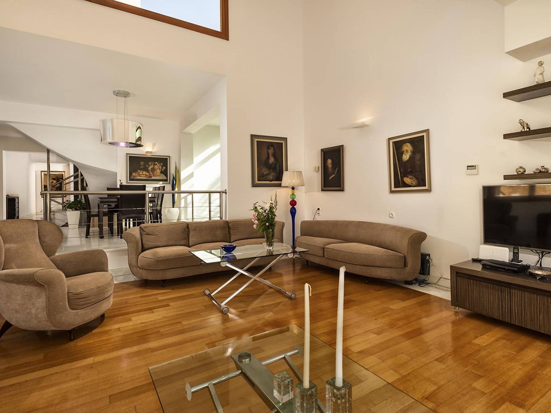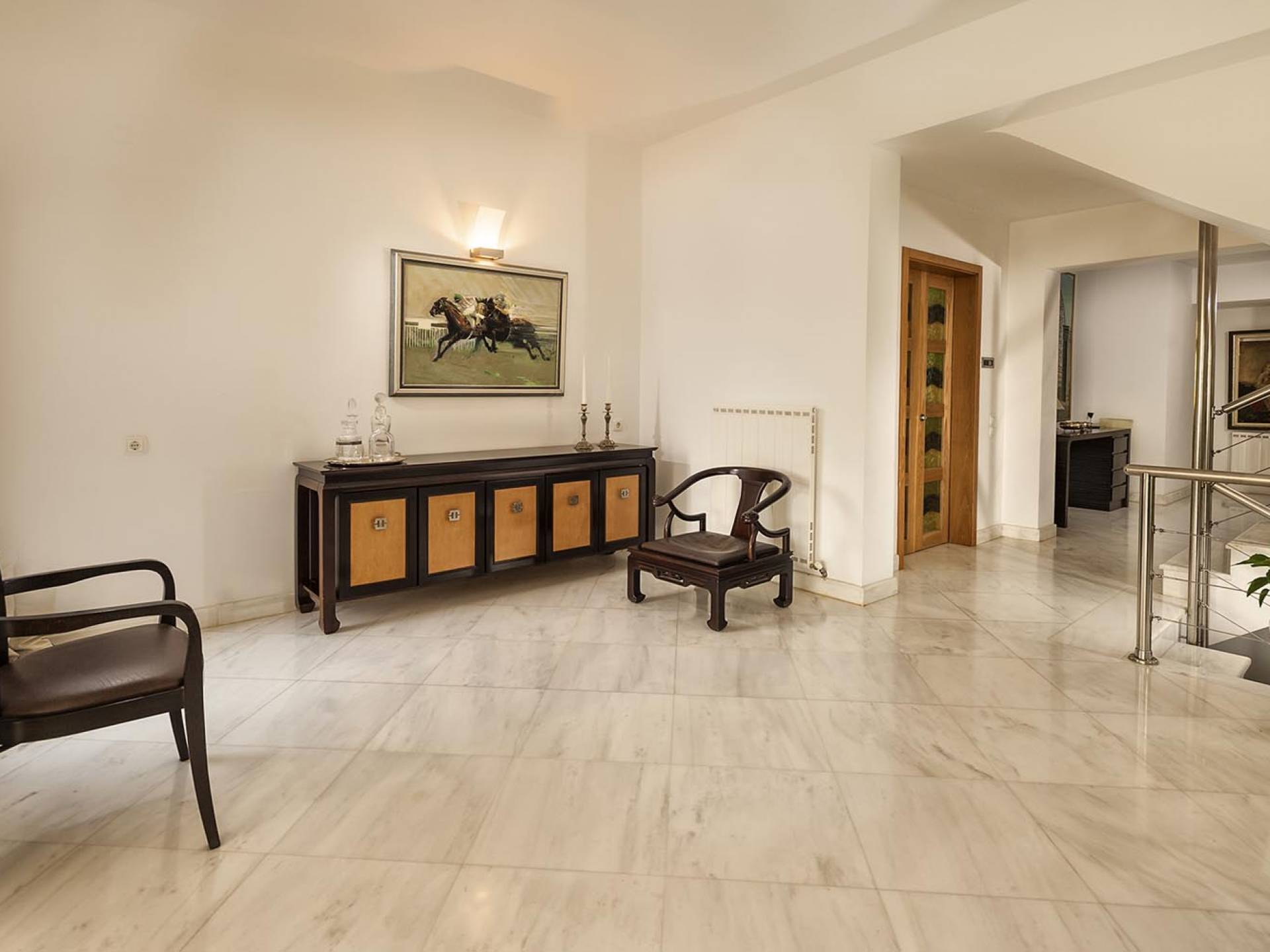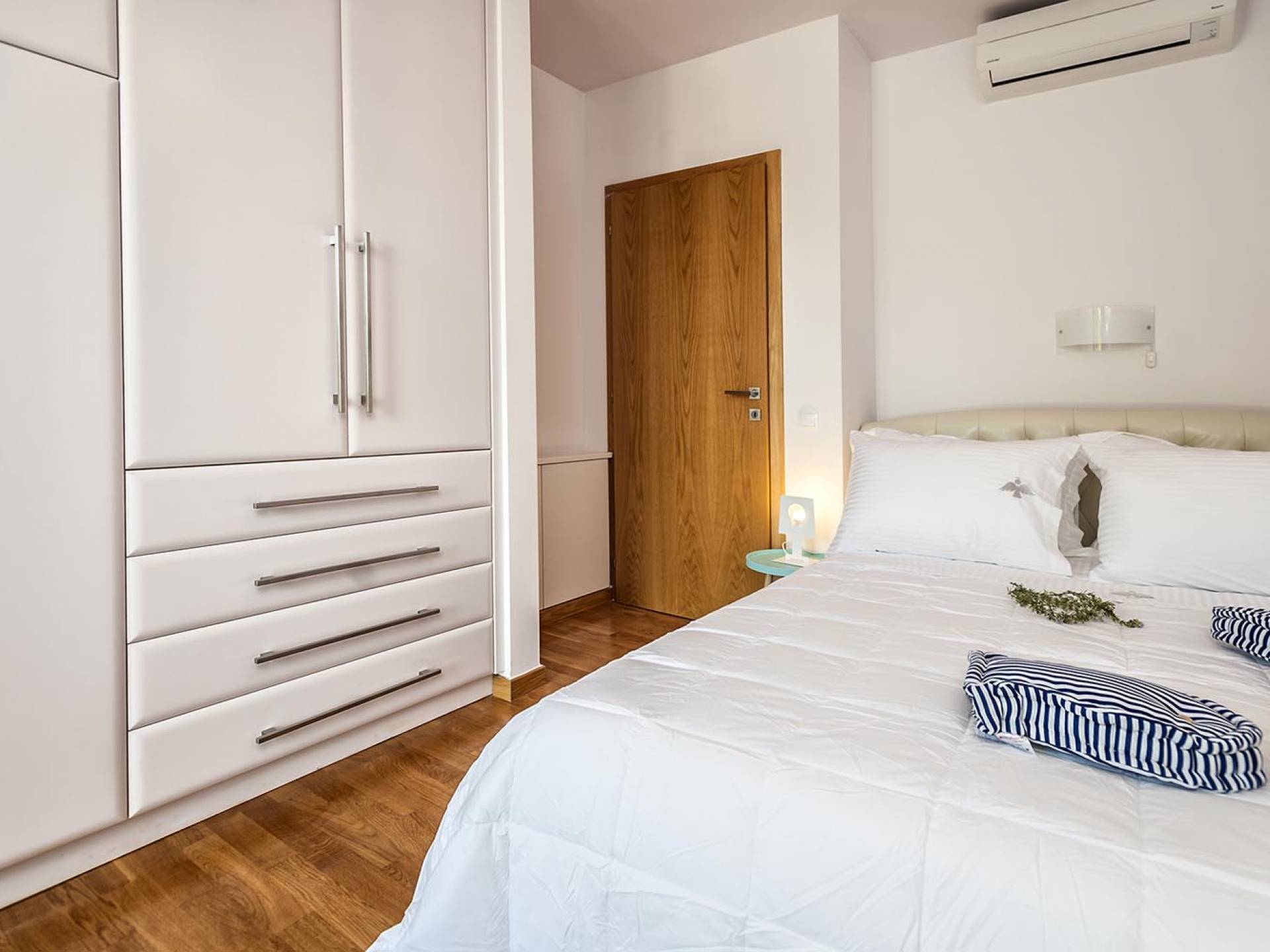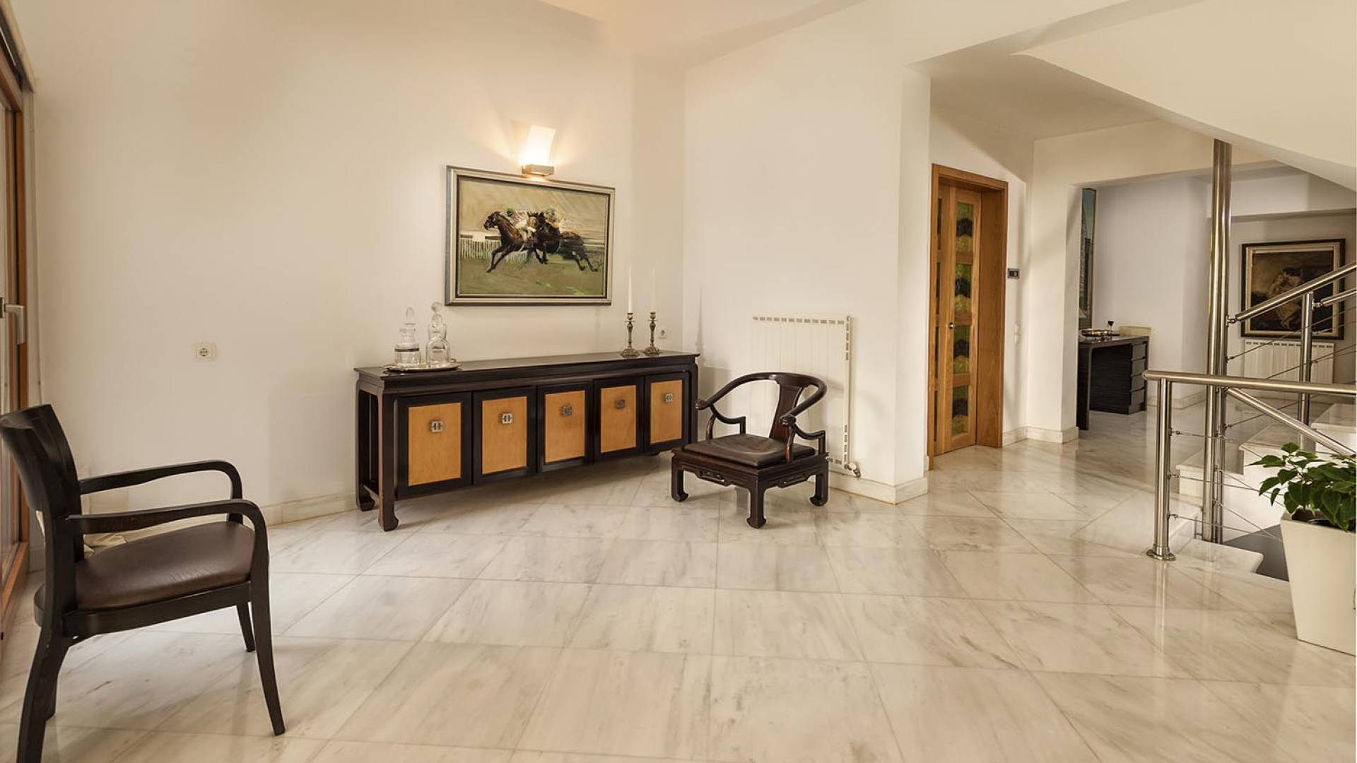 On these two levels, the accommodation areas are established: six elegant bedrooms, four luxury bathrooms, and two comfortable sitting rooms. All the guest rooms have direct access either to the pool or to the garden with the BBQ. More specifically, on these levels, the villa contains Two 25m² bedrooms with a double bed, nightstands, luggage table, couch, fitted closets, wooden floors, heating, and A/C. One offers a garden view and the other a pool view. Each of these rooms has a personal en-suite marble 5m² bathroom, with a bathtub, high-end sanitary appliances, and accessories.