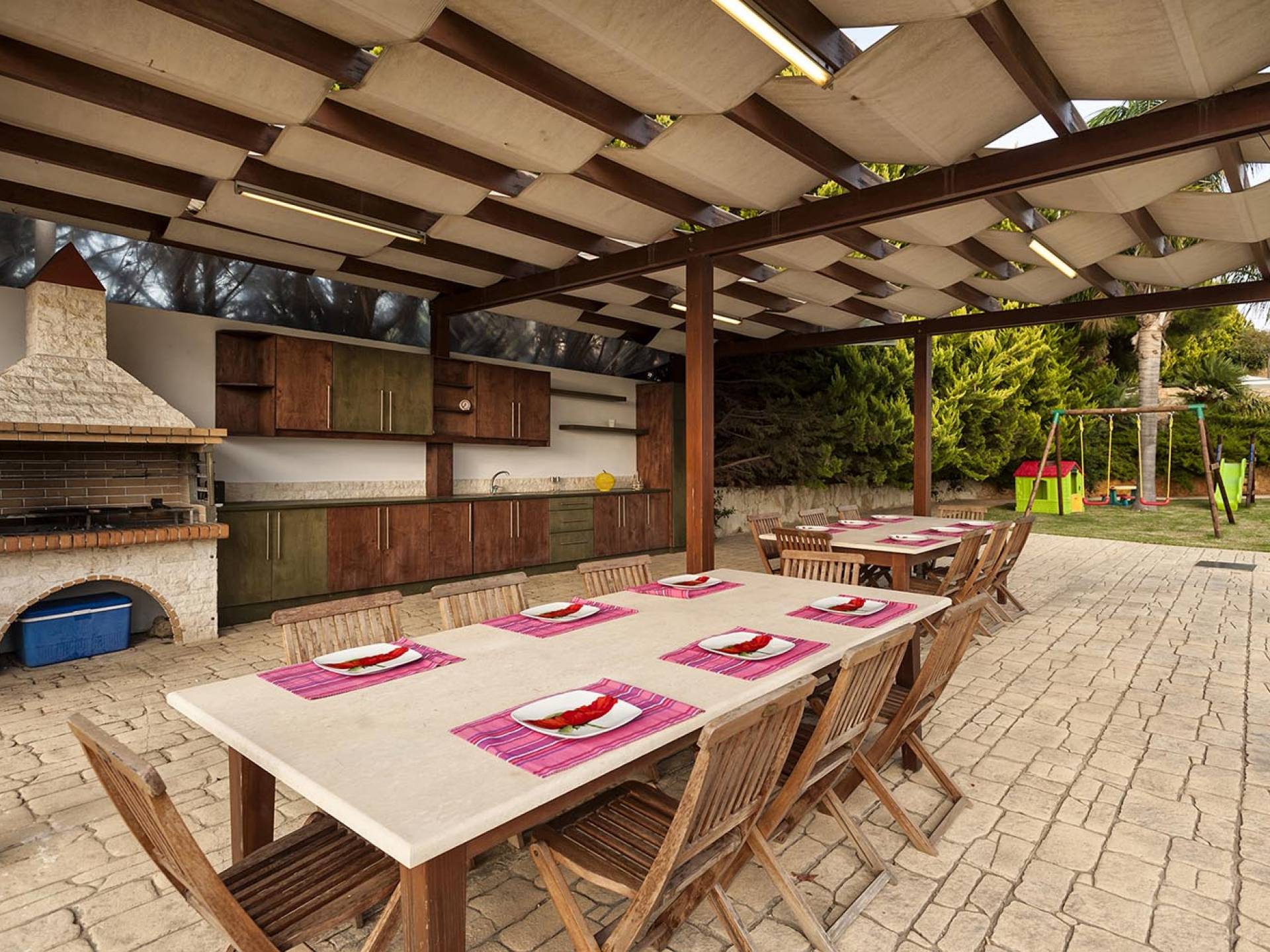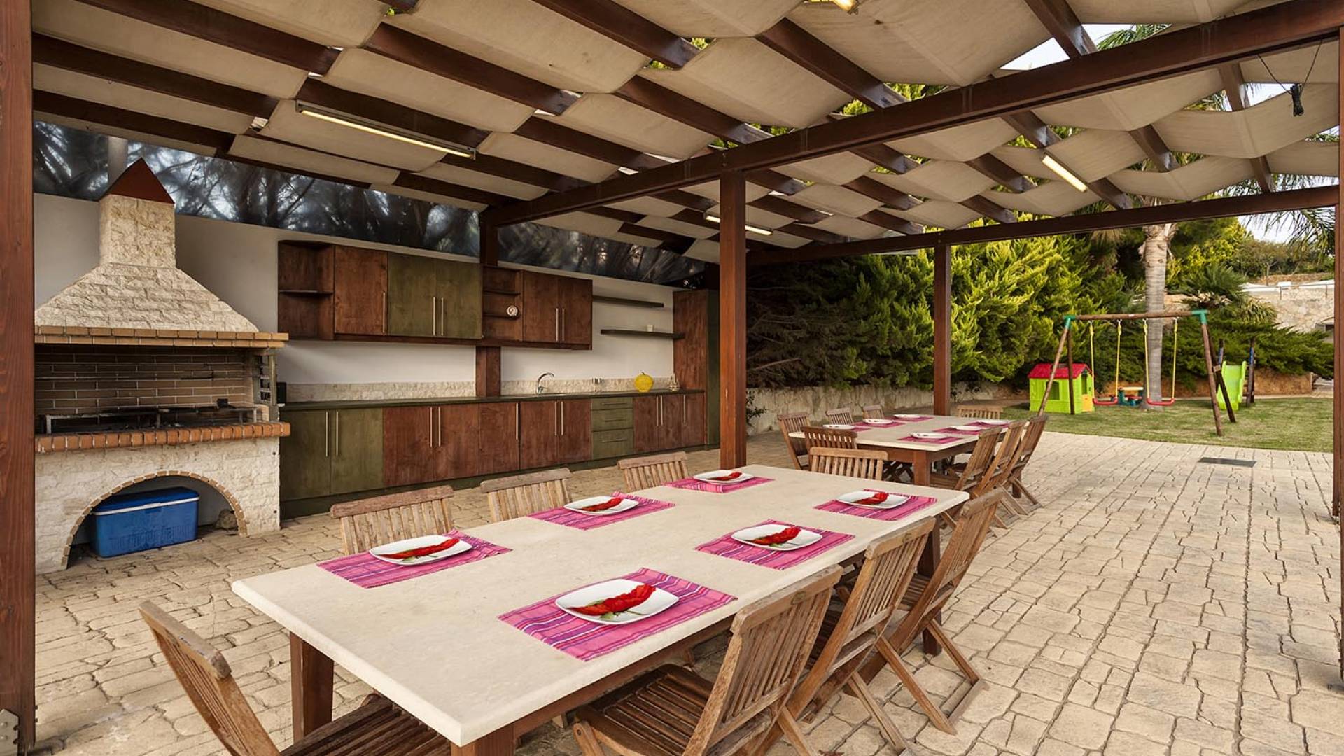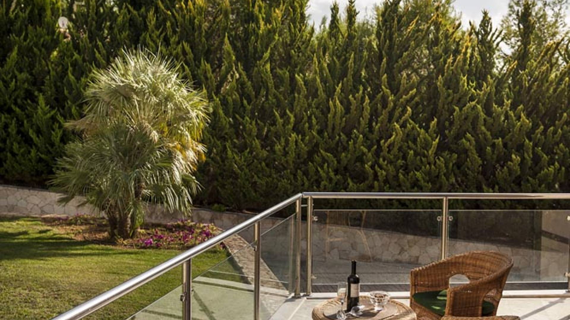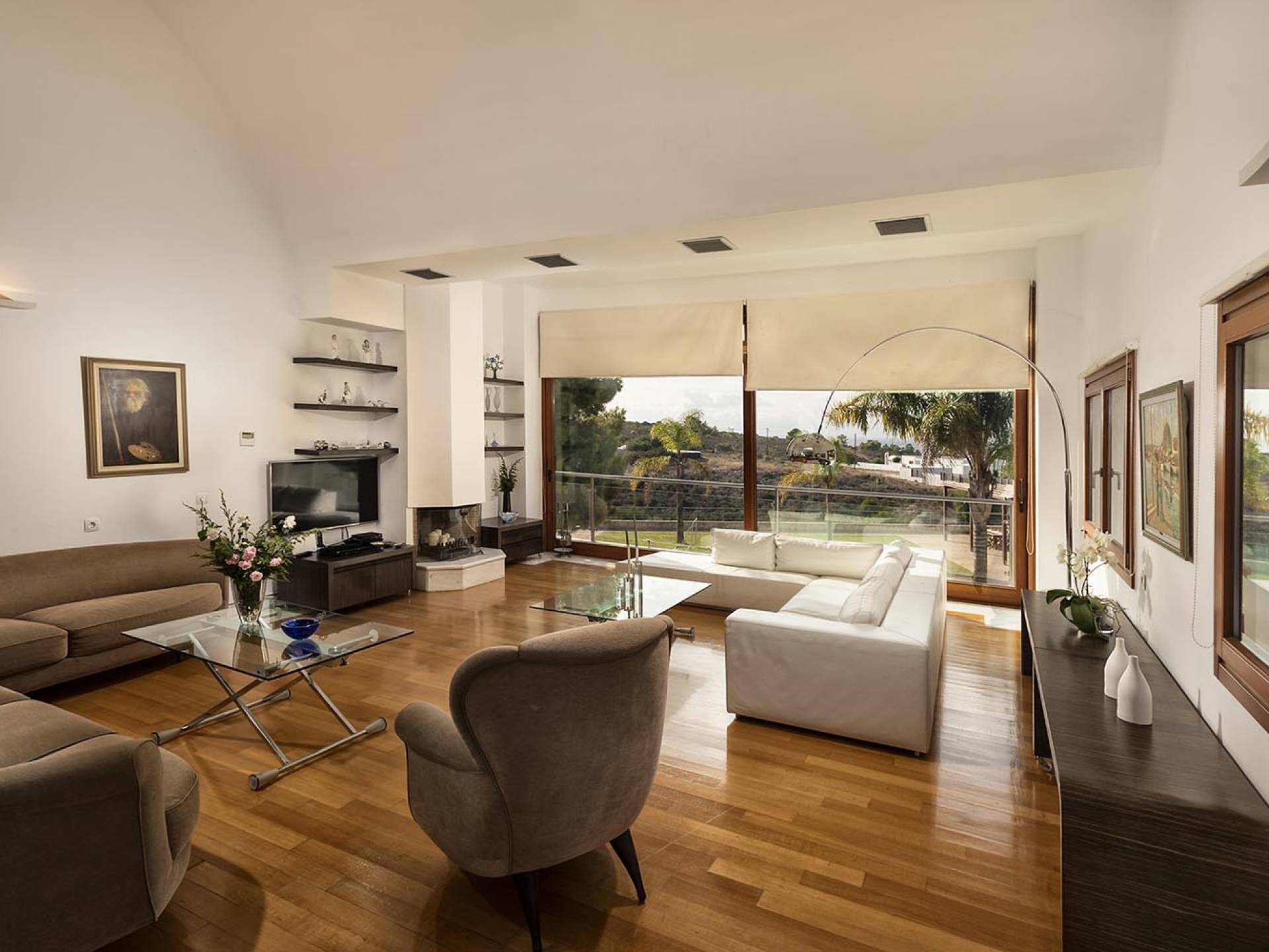 This is actually the center of the villa. The grand living area of 50m² in the exterior of the house welcomes you, through its large window panels, to wide verandas with a stunning view of the entire estate up to the Kalatha’ s bay. Designed with wooden floors, underfloor heating, and centrally air-conditioned, equipped with three couches, sitting up to 12 people, an LCD TV 50”, this living room will become your favorite point of gather with your family and friends. Of course, you cannot ignore the stylish modern fireplace.