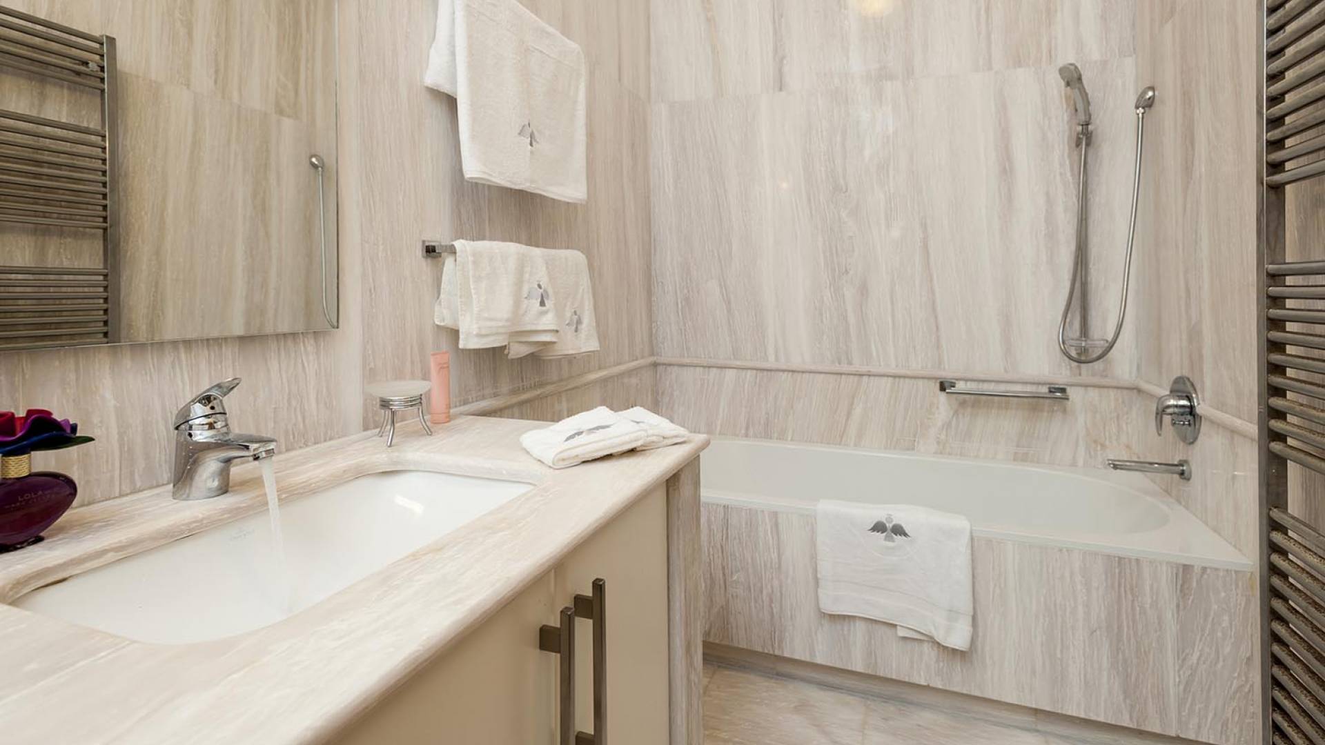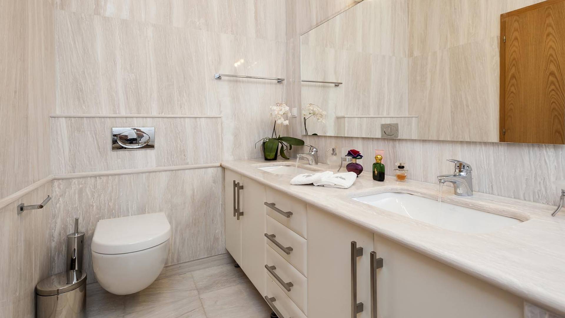 If the living room is the heart of the villa, this is its personality, concentrated in a luxurious bedroom composed of three independent spaces. The main 35 m² bedroom contains an exquisitely elegant en-suite marble 6 m² bathroom and a 16 m² attic. Further, the spacious veranda around the floor has a cozy exterior sitting area so you can enjoy the astonishing view of the gardens and the bay beyond.
