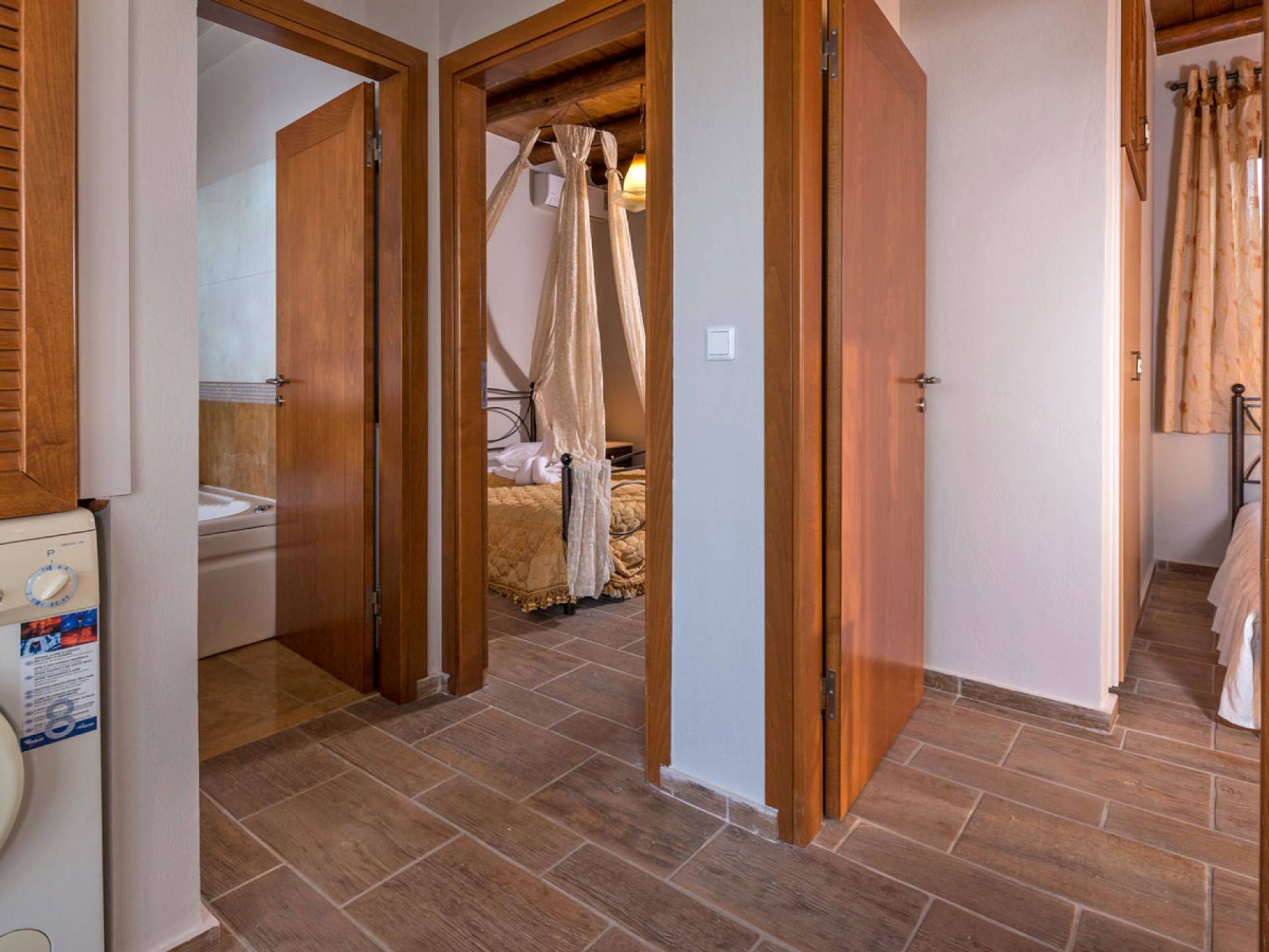 Myrtia Villa Chania has its own private pool (80 m²), parking space. It is equipped with a Satellite TV, DVD & CD player, wireless internet access, a bathroom with Jacuzzi and luxury cosmetics, a Fully equipped Kitchen, Washing Machine, Fridge, Freezer, Fireplace, Air. Conditioning, Heating. Both floors have spacious verandas where you can enjoy your breakfast or light snacks with a view of the sea. It is ideal for romantic get-a-ways and absolute relaxation as guests can enjoy a true vacation cherishing the tranquility of the scenery while close to all major attractions. Guests can enjoy daily maid service & change of embroidered linen and towels, beach towels, massage, aromatherapy sessions in the marble hammam, room service, and babysitting.
