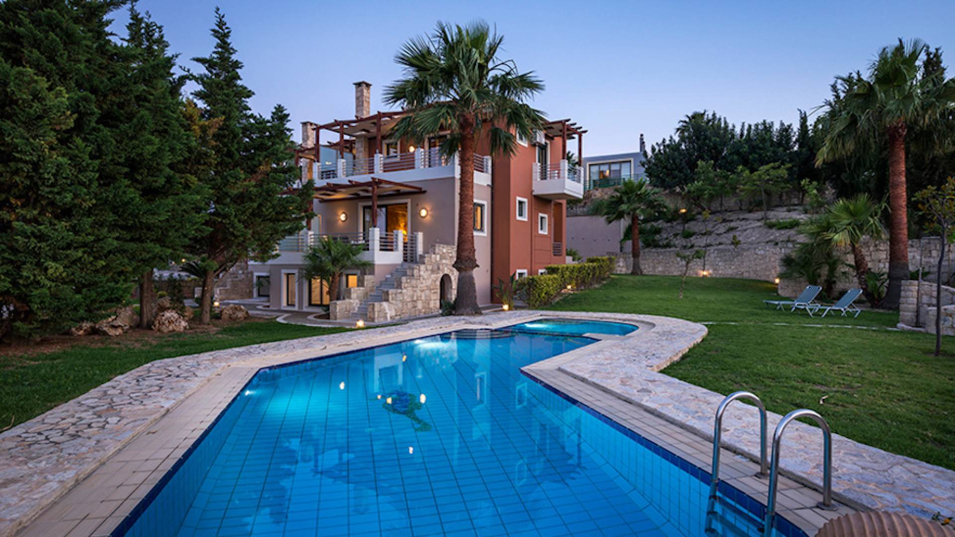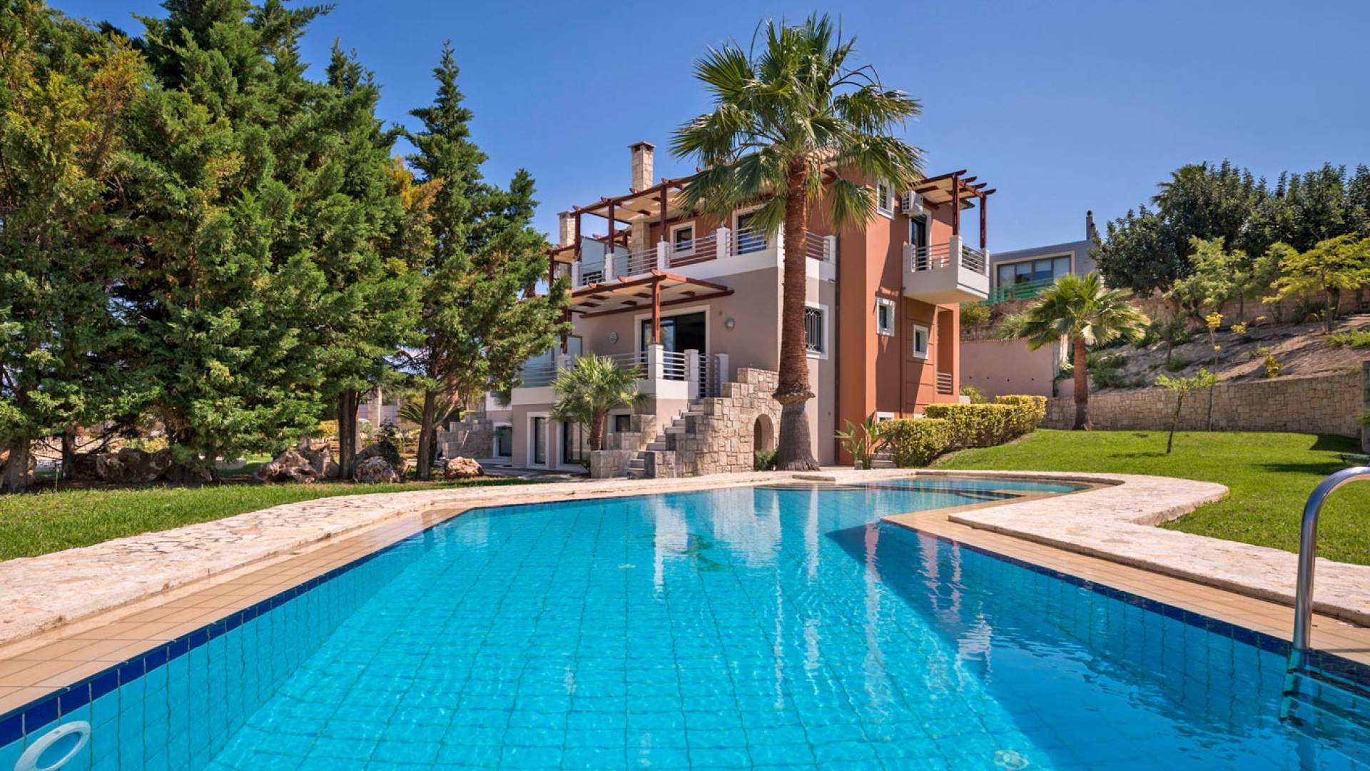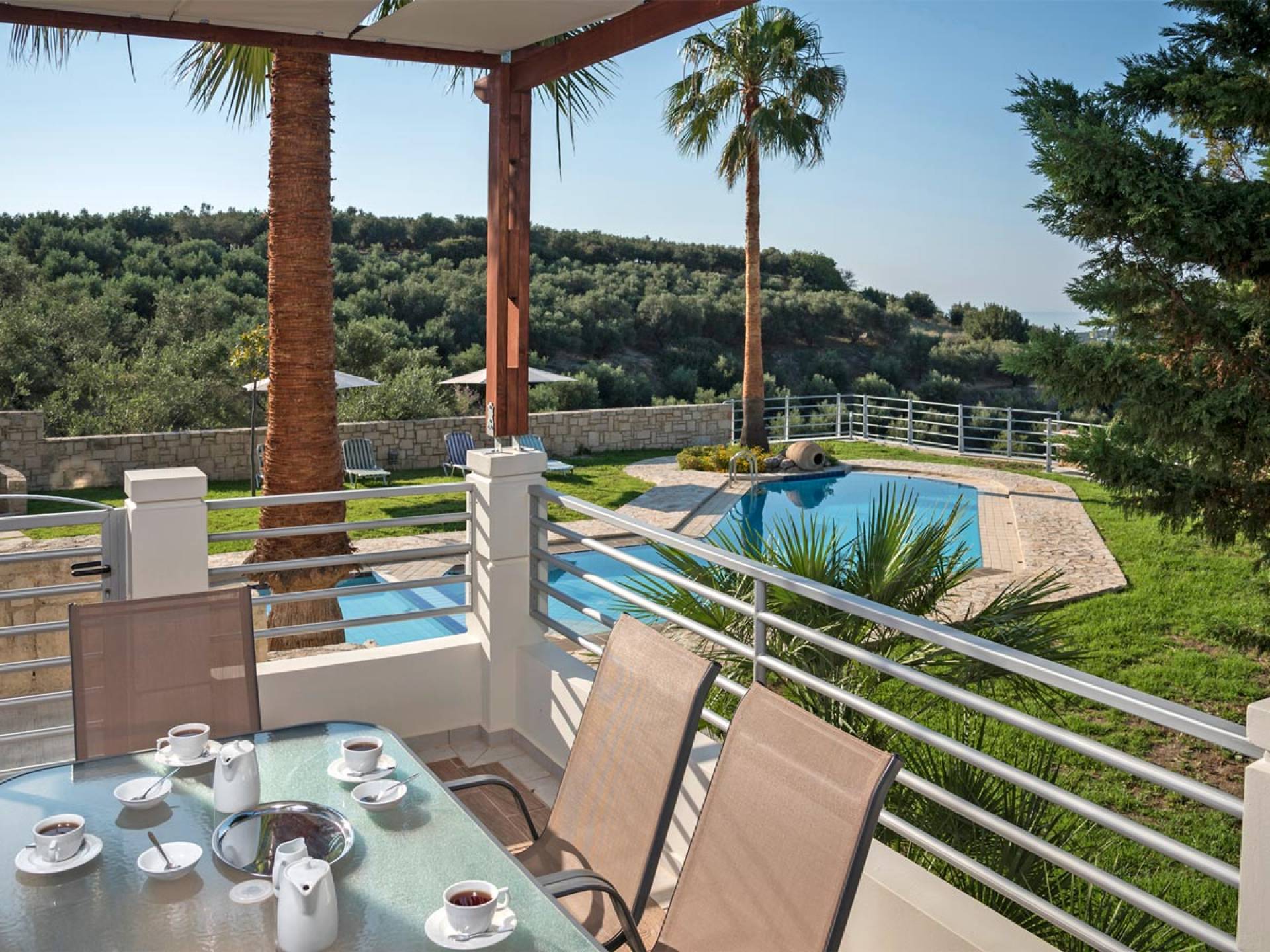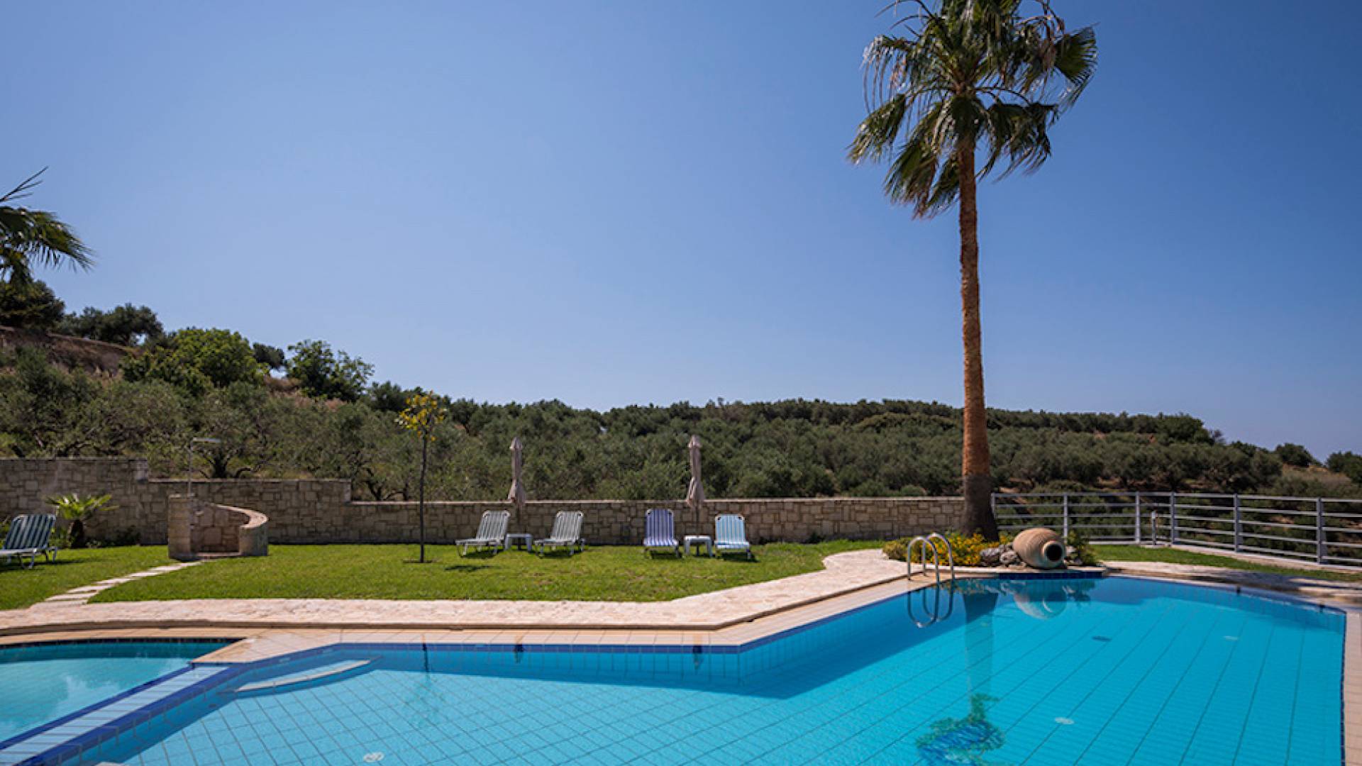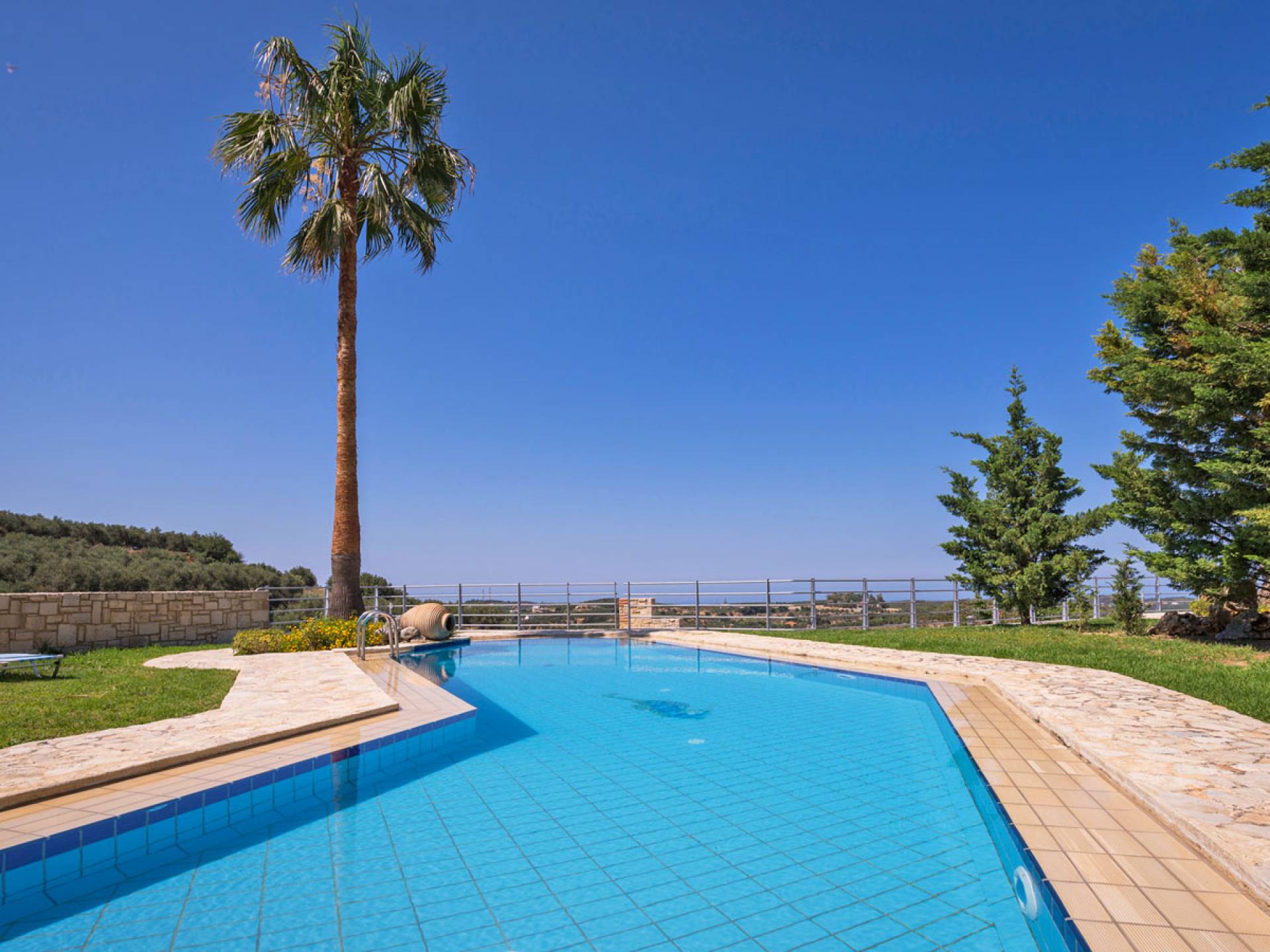 Secluded villa with garden, pool, 3 bedrooms, 2 bathrooms, sleeps up to 7. Myrtia Villa Chania, is a luxurious maisonette of 110 m² built amongst huge lavish gardens offering great sea view and services in absolute privacy.